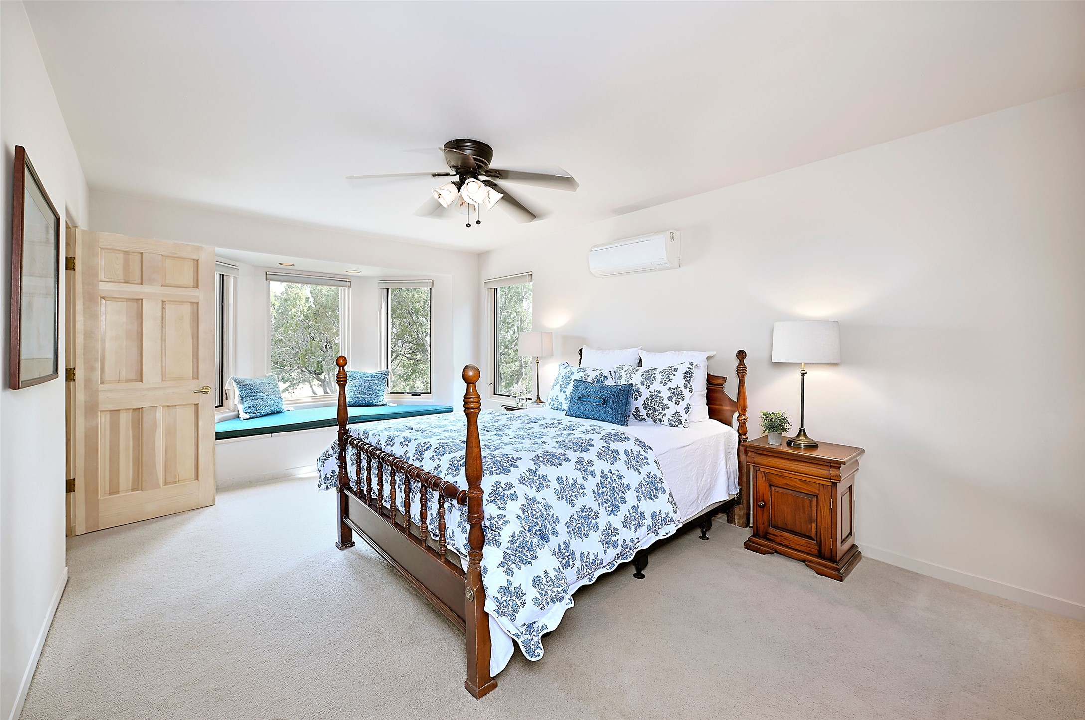 SIMPLY THE BEST VIEWS! Like being in your own private IMAX theater at sunset and on starry, starry nights! Vista Sandia means a 180 degree gigantic, overlooking viewscape featuring the Sandia mountains 50 miles south, and Sangre and Jemez views to the east and west; you can even watch 4th of July fireworks in Santa Fe and Los Alamos from the portal! Inside, simply sophisticated luxury awaits, an oversized great room with a high ceiling and extra large windows sited to take advantage of the views from the entry foyer stops visitors in their tracks. Plastered thick and round pumice-crete walls surround and lead to long, tall hallways to a well separated large owner's suite one way, and to the dining room and kitchen the other way. Santa Fe style with all the southwest charm, light and airy, soft and grand. Guest rooms at the far end provide privacy and distance. And a den off the foyer completes the functional floor plan all on one level. A two car attached garage up a couple steps gives easy access. In floor radiant heating is complemented by mini-splits. Pex tubing and on demand, high efficiency Navien tankless boiler system. All on a 1.82 acre lot in La Mariposa, an active and welcoming HOA which is a short drive to town, yet far enough away for privacy and serenity with easy access to the La Tierra trails. Close to the Club at Las Campanas and a short drive to the Plaza or the Santa Fe Regional Airport. Diligently maintained and presale inspected, this sanctuary is ready to enjoy. Watch the video, take the virtual tour, but you must see in person to believe.
