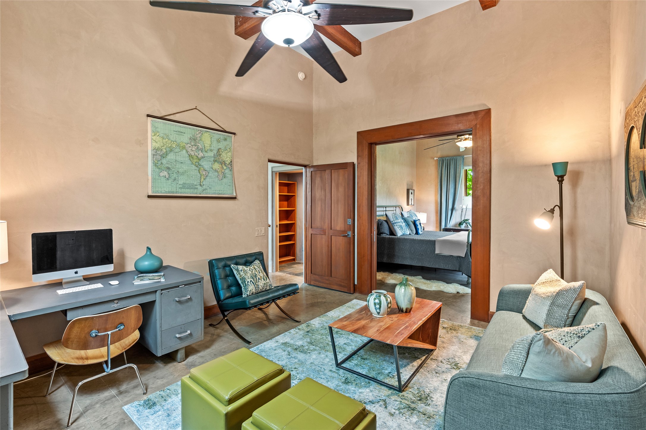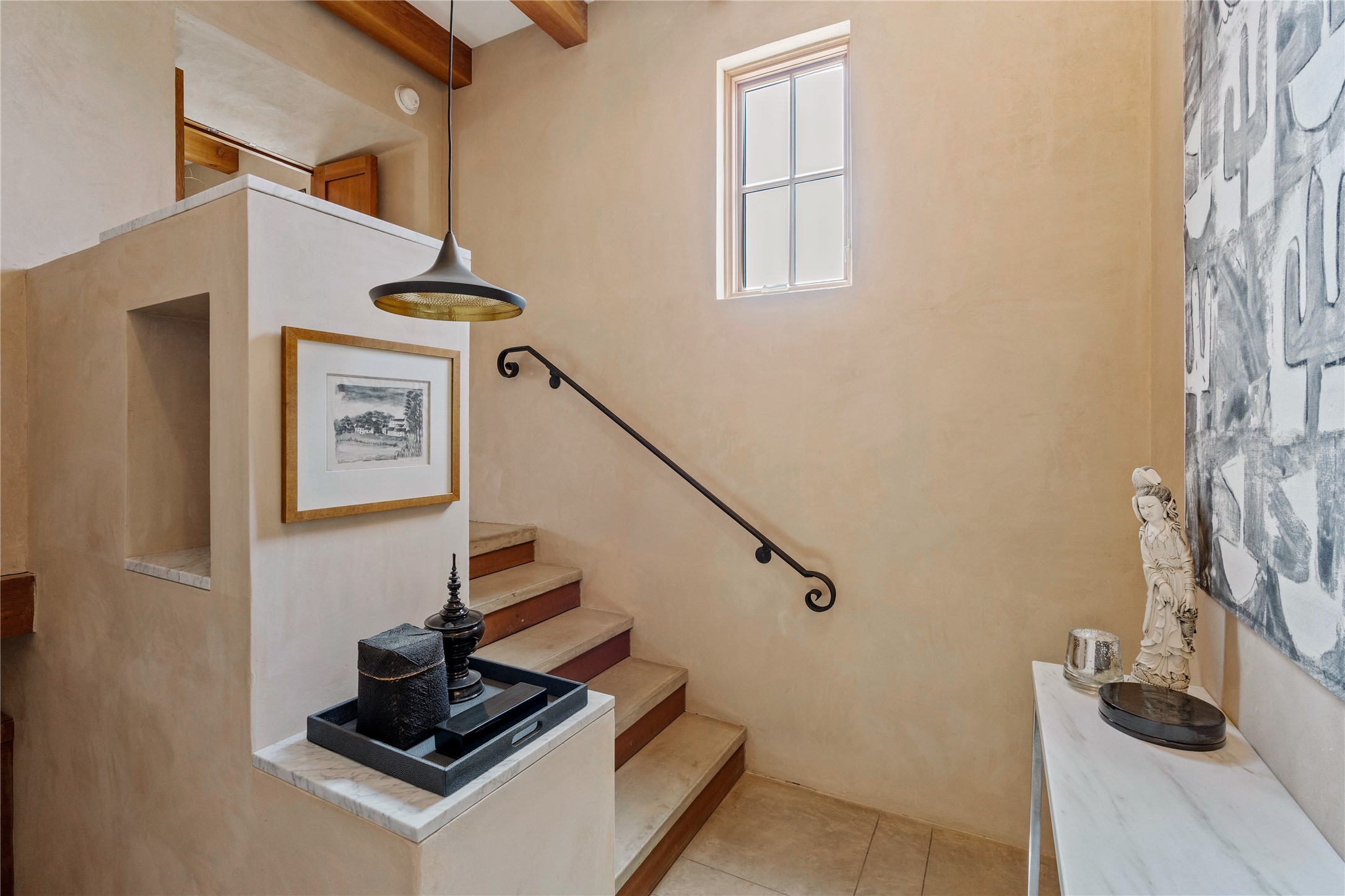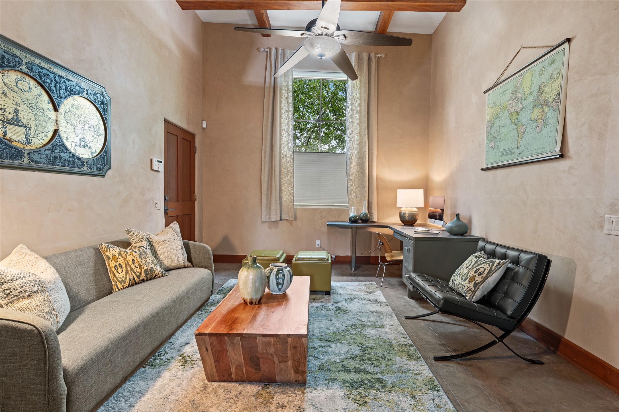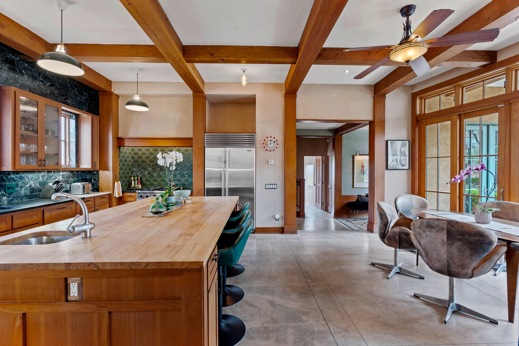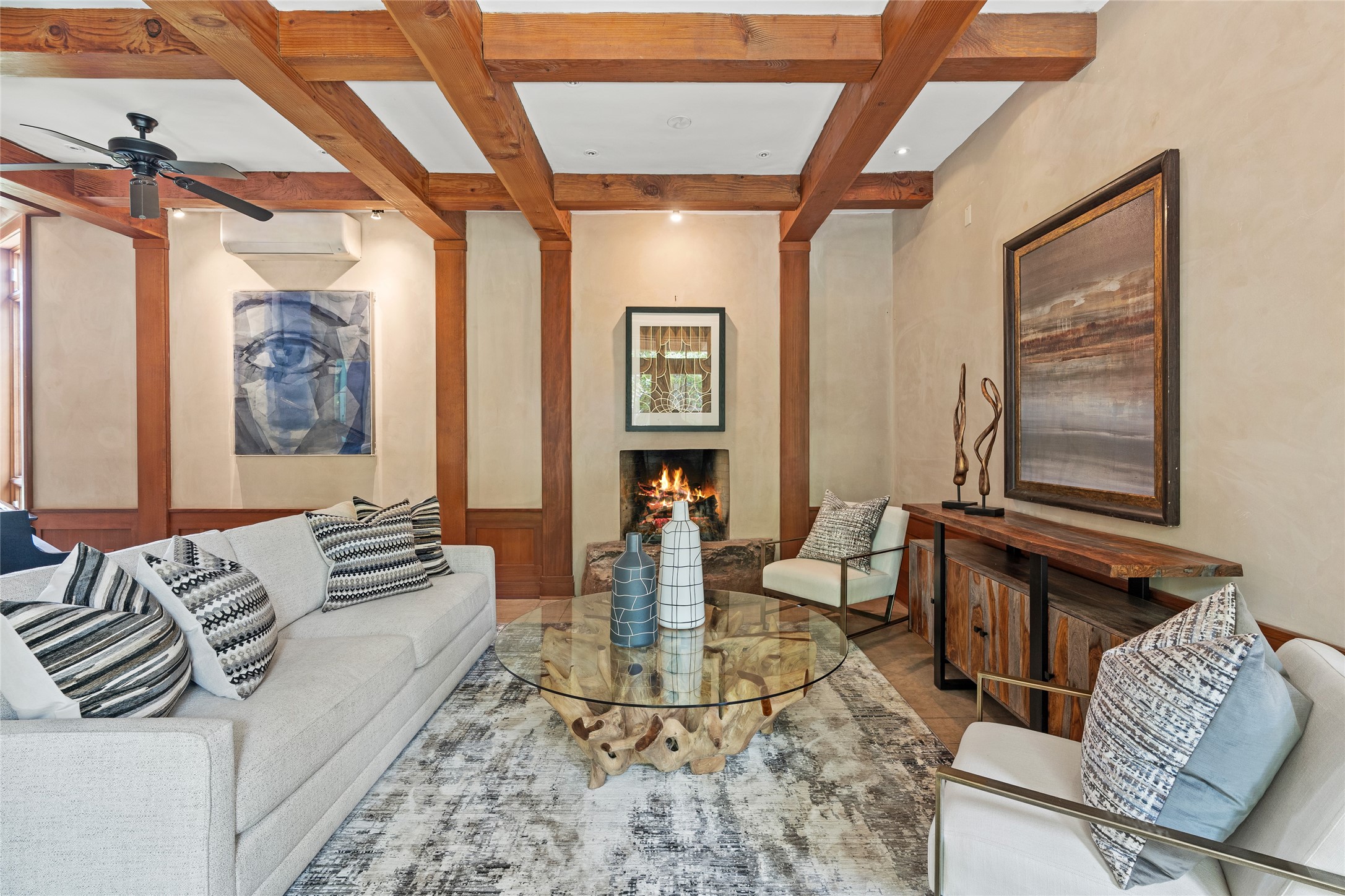 A rare and refined offering in the heart of Santa Fe, this extraordinary 6-bedroom, 6-bath gated compound is a seamless blend of architectural brilliance, design sophistication, and functional versatility. Encompassing two distinctive yet complementary residences, this private estate is nestled in the coveted South Capitol and Eastside neighborhoods--just moments from the Plaza, Canyon Road, museums, and Santa Fe's world-class dining and shopping.The main residence is a serene 4-bedroom, 4-bath sanctuary where timeless elegance meets exceptional craftsmanship. Soaring ceilings, natural American Clay plaster walls, and Douglas Fir coffered wood beam ceilings enhance the grand interiors, while floor-to-ceiling transom windows invite in abundant light. The stunning chef's kitchen--complete with Subzero refrigerator and new Viking appliances--opens to a beautifully landscaped central courtyard with a tranquil waterfall fountain, lush gardens, alfresco dining areas, and multiple verandas perfect for entertaining.The gracious living and dining rooms are anchored by a natural stone fireplace and expansive glass doors overlooking a verdant courtyard adorned with mature Wisteria, Aspen, and Cherry trees. Upstairs, the luxurious primary suite features breathtaking views of Picacho Peak, a spa-like bathroom with Jacuzzi tub, steam shower, and private rooftop terrace with fireplace, cedar hot tub, sauna, and wrap-around deck.The adjacent property, designed by an architect for both residential and commercial use, adds a flexible 2-3 bedroom, 2-bath layout ideal for live/work functionality, a creative studio, or income-generating rental. It features 12-foot ceilings, expansive windows, radiant in-floor heating, mini split A/C systems, a modern kitchen with polished granite countertops, and a spacious open-concept living area.Together, these two properties form a unique and cohesive compound with separate utility metering, multiple private entrances, 2.5-car garage plus two additional parking spaces, and the rare opportunity to live, work, and entertain in one of Santa Fe's most desirable locations. Whether as a private estate, multi-generational retreat, or mixed-use investment, this compound is a true Santa Fe masterpiece.These properties may be purchased together as a compound or separately. For individual details, please see listing MLS# 202501407 and MLS# 202501401.