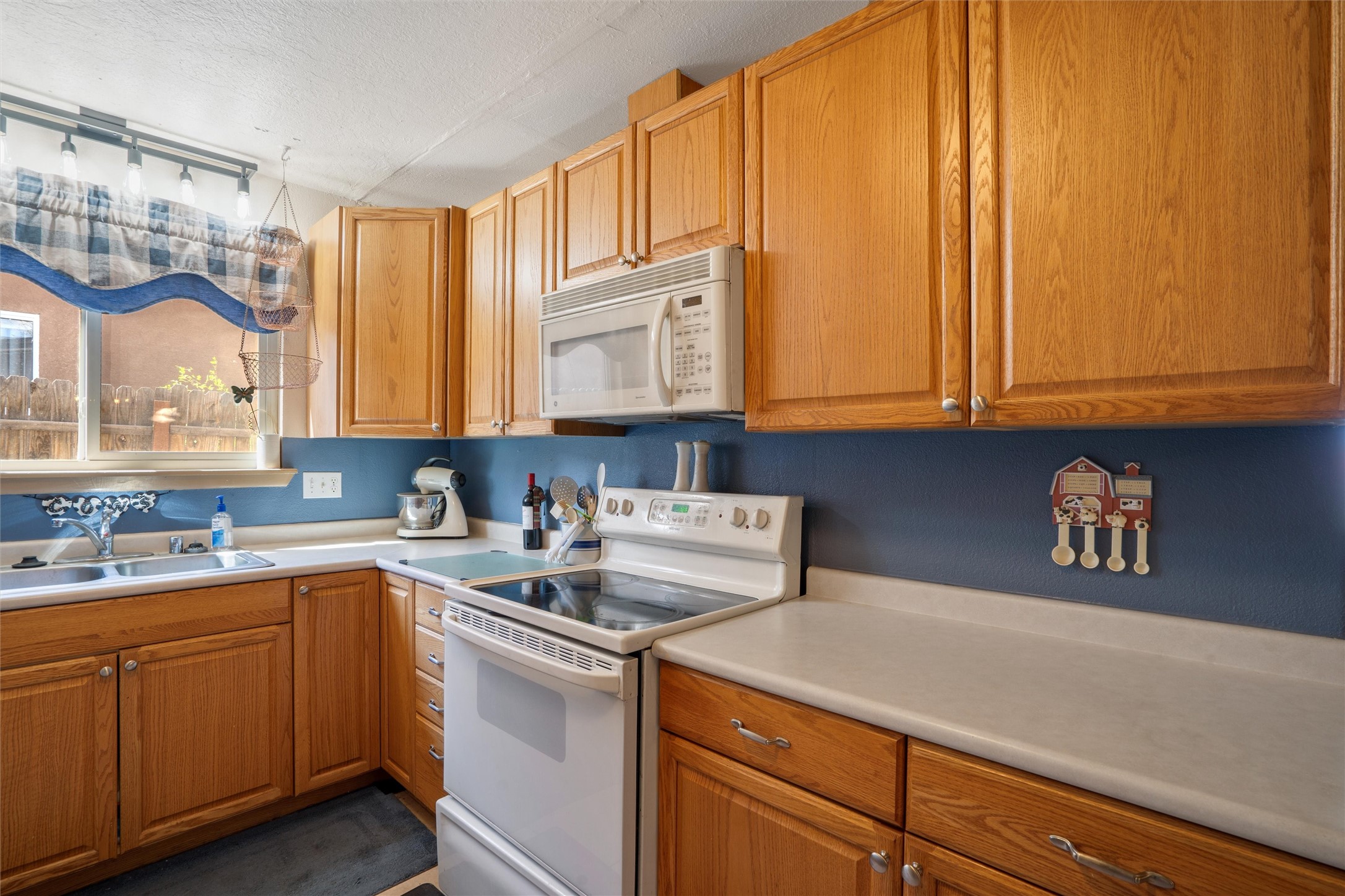 Now is the perfect time to fall in love with this delightful 4-bedroom, 2-bath home featuring separate living spaces. The kitchen comes complete with modern, updated appliances and a cozy dining area designed for comfort. This property also boasts a newly installed asphalt shingle roof, a spacious two-car garage, and plenty of outdoor parking for your convenience.With its easy-to-maintain xeriscaping and artificial turf, you'll enjoy a beautiful exterior without the hassle of regular upkeep. The expansive yard is perfect for outdoor activities, providing ample room for you to create personalized living spaces. Plus, there's fantastic potential for gardening, giving you the opportunity to nurture your very own garden oasis.The location is a significant advantage, situated conveniently near the Genoveva Chavez Community Center, shopping centers, schools, and parks. Does this sound like the dream home you've been searching for? Don't wait--call today to schedule your viewing. The sellers are excited to begin their next chapter, and you could start yours here very soon!Buyers should confirm square footage and/or dimensions if they are of material interest.Some photos have been digitally altered.