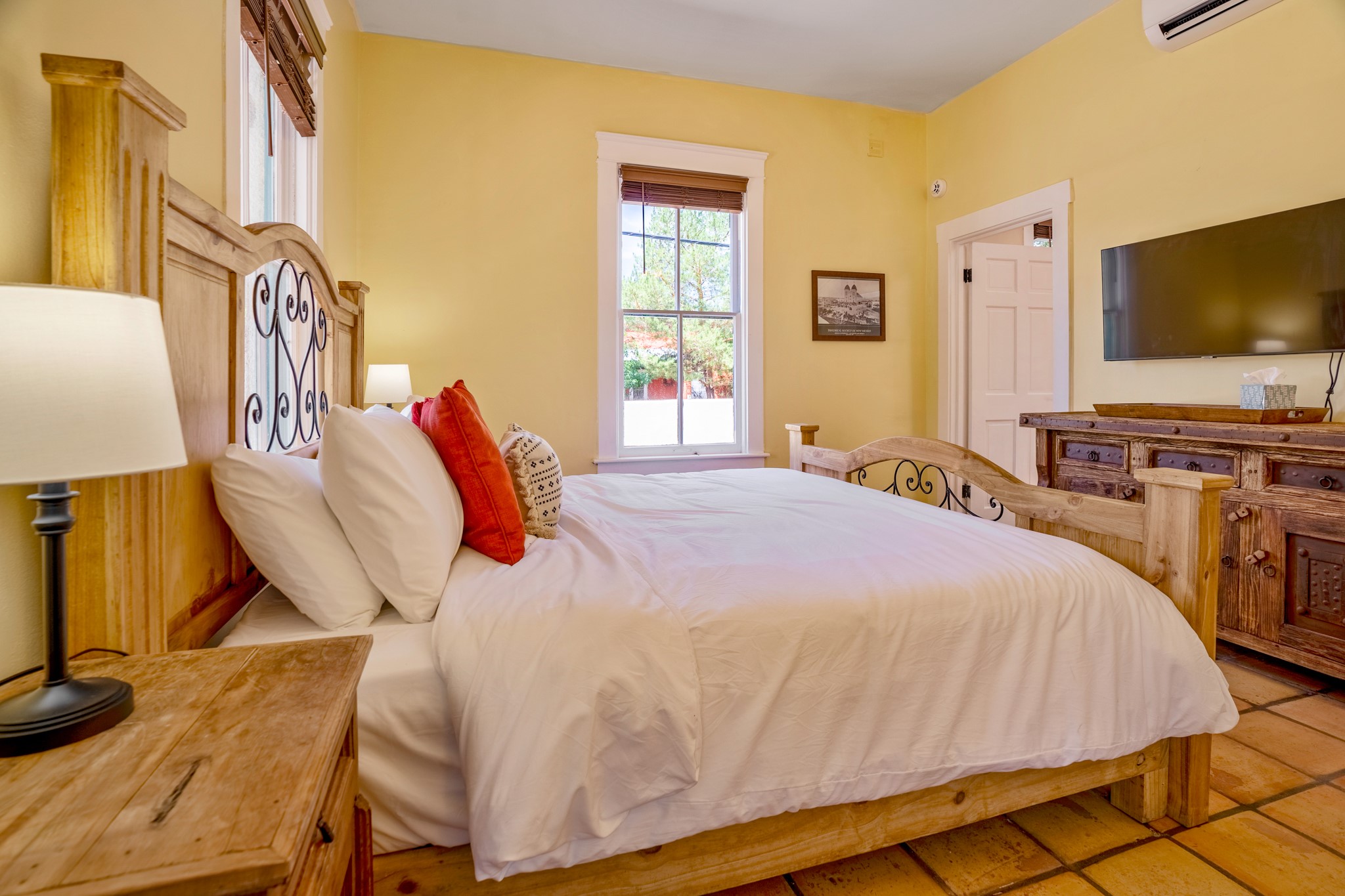 Discover the essence of Santa Fe living at its finest in this beautifully remodeled historic gem, ideally situated just one block from the iconic Eldorado Hotel and mere steps from the bustling Santa Fe Plaza. This exceptional downtown property seamlessly blends turn-of-the-century charm with contemporary luxury, boasting four elegantly appointed bedrooms, each featuring its own private en-suite bathroom, one of which is highlighted by a luxurious tub and fireplace. Two bedrooms offer the additional convenience of private entrances, perfect for guests or flexible living arrangements.Currently thriving as a sought-after vacation rental with impressive revenue , this versatile home has also successfully operated as a bed and breakfast, thanks to its advantageous BCD zoning. Whether you envision a private residence, boutique office space, or a continued income-generating Airbnb investment, this property delivers unmatched flexibility and opportunity.Immerse yourself in Santa Fe's vibrant culture, enjoying easy access to summer concerts, premier events, renowned dining, and art galleries--all within walking distance of your doorstep. Invest in a piece of Santa Fe's storied history and let this downtown treasure fulfill your residential dreams or financial aspirations.