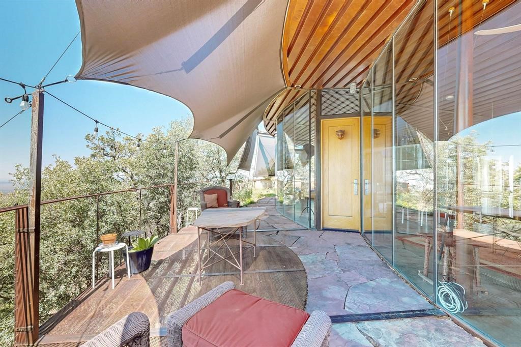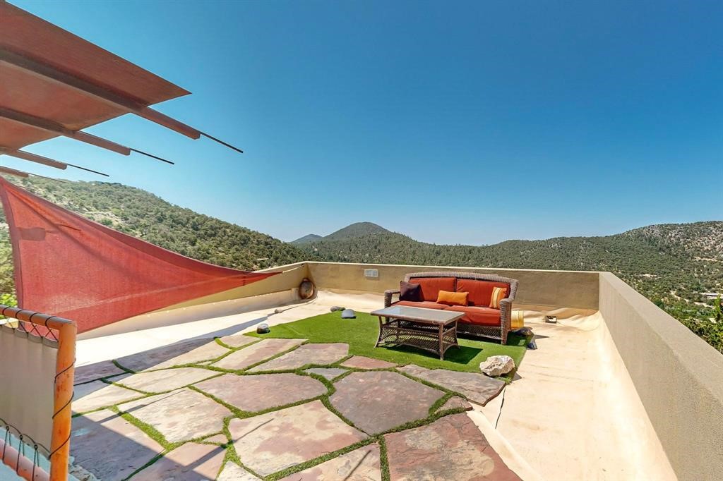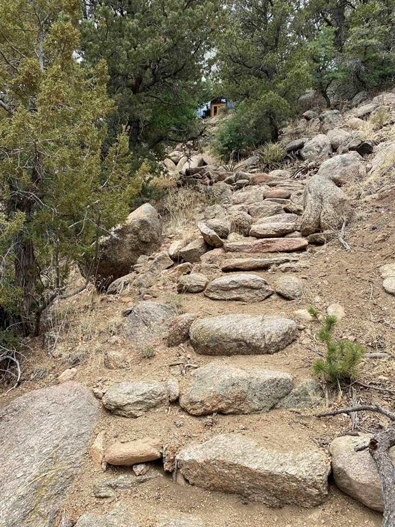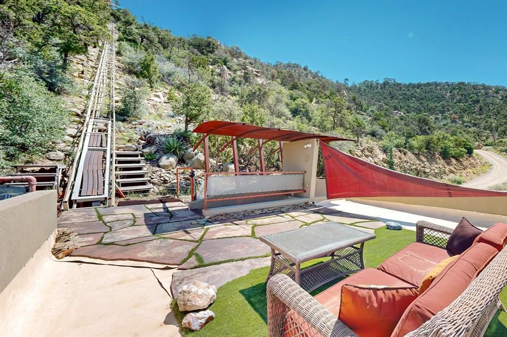 Beyond words to own an inspirational home perched on a mountain side on the Southern end of the Rocky Mountains. Views and wildlife abound! Stunning home seeking that person to take the dream forward. Leave the world behind and experience a lifestyle of rare quality and unprecedented solitude. Immerse your spirit in the beauty of endlessly changing views and sunsets that will bring tears of joy to your eyes. Once there, it's impossible not to feel the love, passion and vision that took a decade to accomplish. A brilliantly creative dwelling that makes 1200 ft. seem vast. This remarkable design exhibits what architectural genius can do to transform even the most challenging sites. Access to this hillside sanctuary is a meandering 500 step path with a vertical gain of 200 feet. Transport your groceries and supplies via the funicular material lift. Set up your trail cam and you'll soon realize you are in the middle of your own private wildlife sanctuary. Built into the mountain side like it was meant to be there, the exterior walls are floor to ceiling undulating insulated glass. Luxuriate in the cleverly situated hot tub. Feed the beautiful goldfish in the large pond below the deck. A two-car garage at the base allows for ample storage and parking.