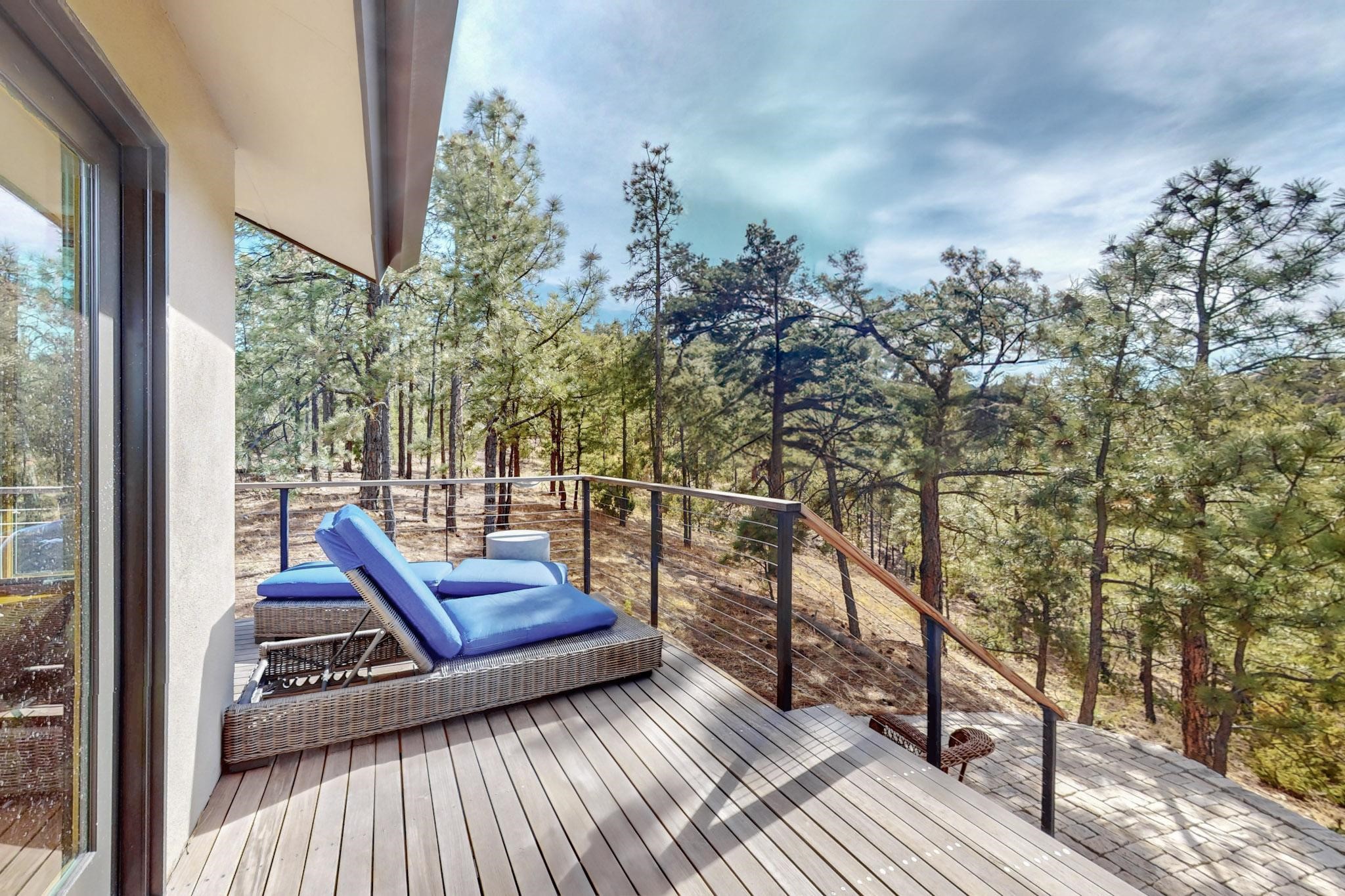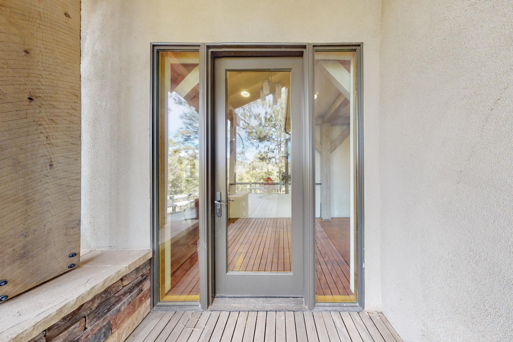 Nestled in the serene mountains of Santa Fe, this stunning 4-bedroom, 3.5-bathroom home offers the perfect blend of modern luxury and natural beauty. Located off the historic Old Santa Fe Trail, the property boasts top-of-the-line Viking appliances, sleek, contemporary finishes, and spacious living areas designed for comfort and style. An extensive renovation in 2020 enhanced the home with a thoughtfully extended primary suite and the addition of a laundry room, mud room, and half bath--bringing both convenience and elevated functionality. The septic system is just 3 years old, adding peace of mind to this well-maintained home. Elegant TOTO toilets throughout further elevate the home's premium features. A fully finished, oversized and painted detached two-car garage provides additional space and versatility, perfect for storage, hobbies, or a workshop. The property is also horse-friendly, offering the opportunity to bring your horses and enjoy the tranquil surroundings. Unwind in the inground hot tub after a day of exploring or take in the stunning night skies while stargazing from one of the home's peaceful decks. Enjoy direct access to scenic hiking trails right from your backyard, allowing for endless outdoor adventures. With its tranquil setting, equestrian potential, and premium features, this home is an exceptional retreat in the heart of the Santa Fe mountains. Open House canceled for Sunday 09/28