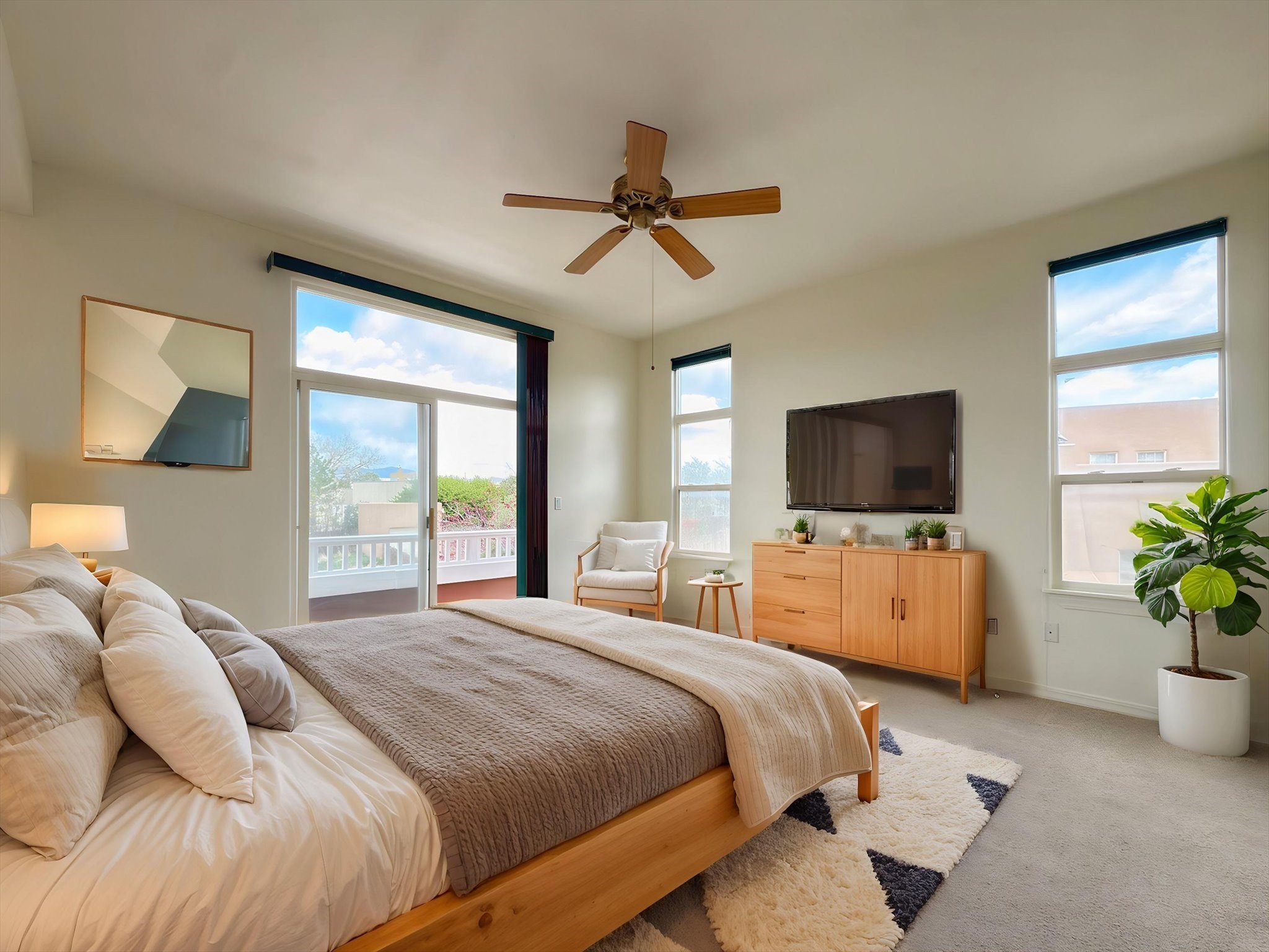 Experience the perfect blend of Southwestern charm and modern convenience in this beautifully maintained home located in the desirable Nava Ade community of Santa Fe. Your new home is a freshly painted and polished gem that offers a lifestyle of comfort and accessibility.Step inside to discover spacious rooms filled with natural light, tile-finished showers and countertops, and a cozy gas fireplace that adds warmth and ambiance. The open floor plan seamlessly connects living spaces, making entertaining effortless. The well-appointed kitchen and bathrooms provide both beauty and functionality.Enjoy the generous yard space and a private outdoor living area--perfect for morning coffee or evening gatherings. The two-car garage offers added storage and convenience, rounding out the home's thoughtful design.As a resident of Nava Ade, you'll have access to a community fitness center, swimming pool, and gathering hall, enhancing your lifestyle with amenities just steps from your door. The neighborhood boasts mature landscaping, walking trails, and parks, creating a serene environment for families and individuals alike.Conveniently located near Santa Fe Community College, Santa Fe Place Mall, and the Cerrillos Road corridor, you'll find shopping, dining, and entertainment options within easy reach. Proximity to I-25 and public transportation makes commuting a breeze, while nearby parks and recreational facilities offer ample opportunities for outdoor activities.Don't miss the opportunity to own this move-in-ready gem in one of Santa Fe's most welcoming neighborhoods.This home has been virtually staged to help visualize potential furnishings and layout.