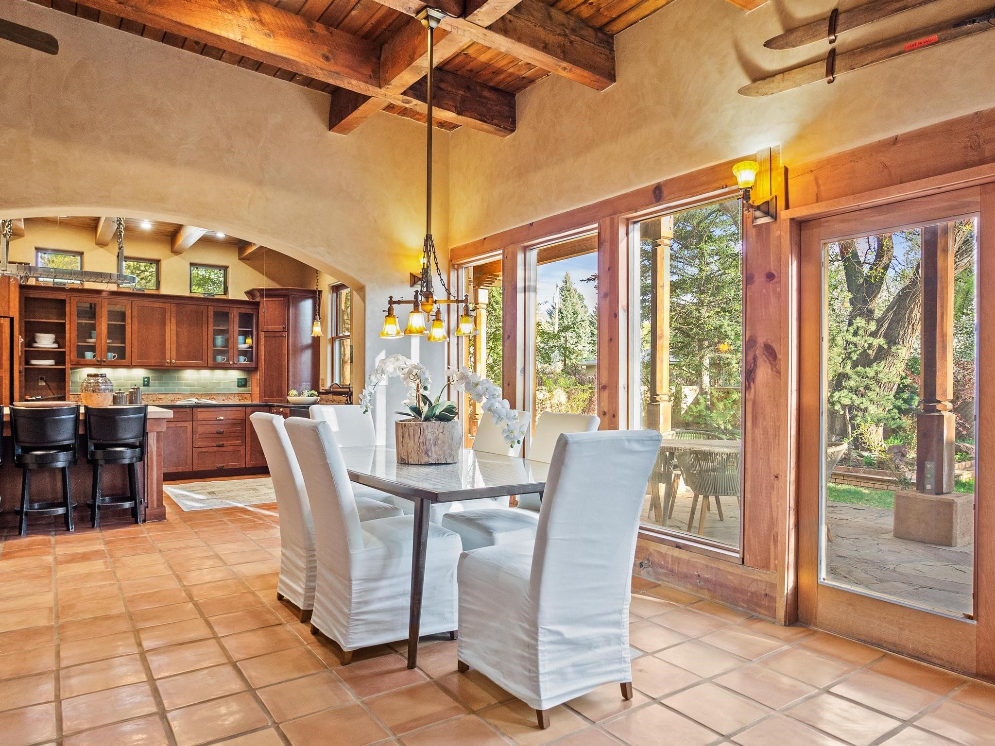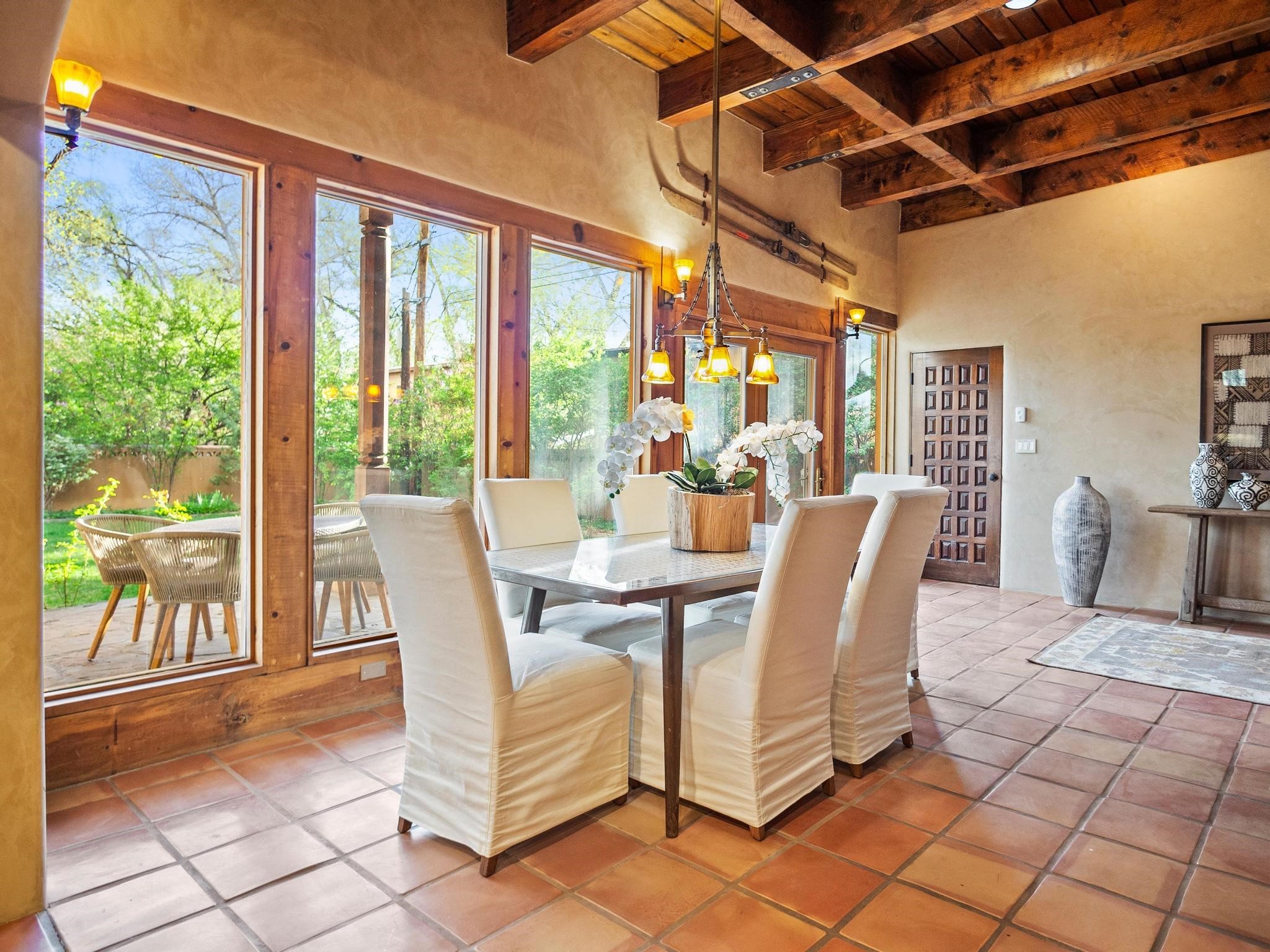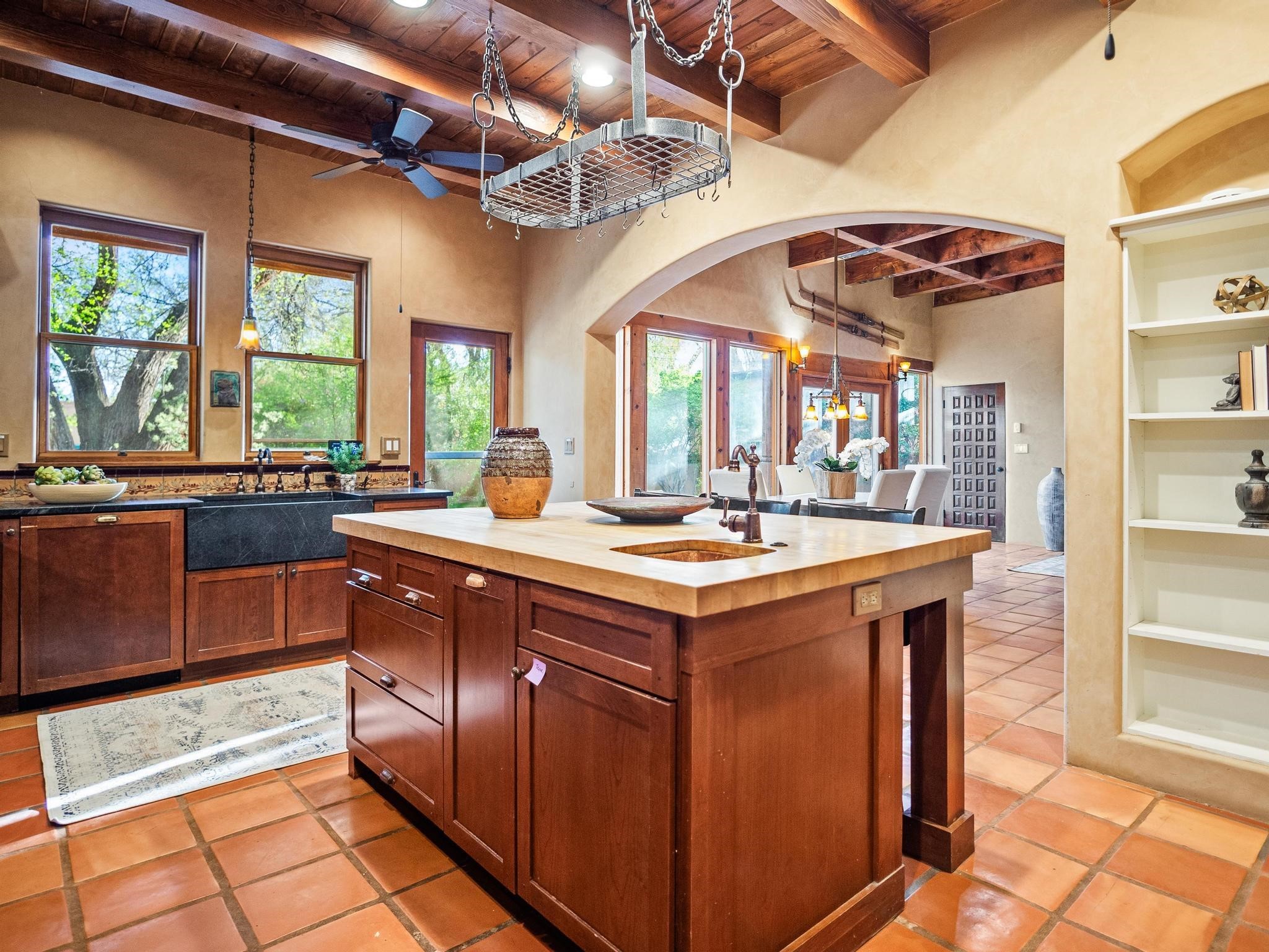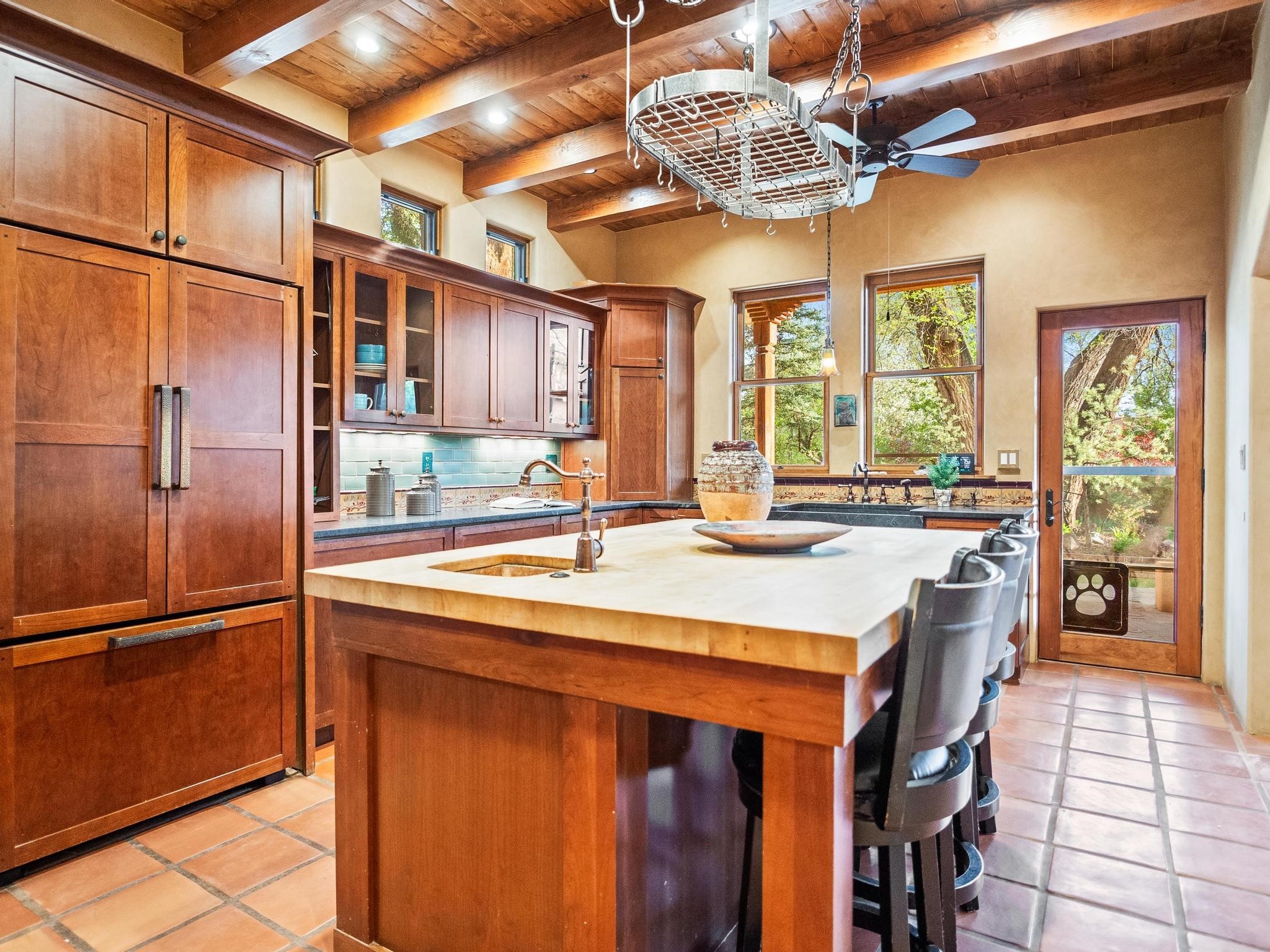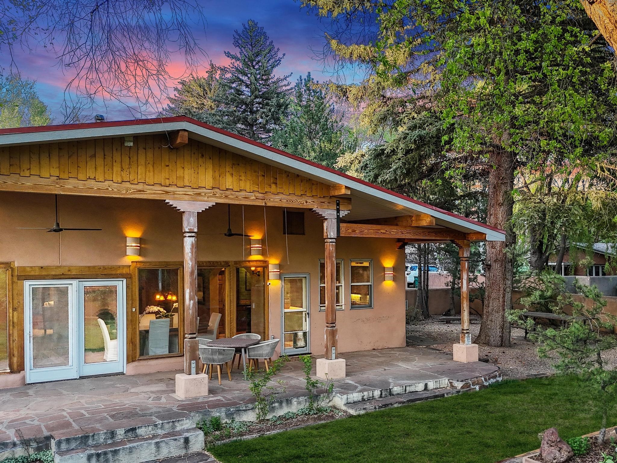 Elegant retreat with Guest Quarters on a quiet, leafy cul-de-sac just a five minute walk from the shops and restaurants of Taos plaza and Kit Carson Park, 310 Ortiz Lane is a stunning, versatile property, blending traditional charm with modern comforts - as a primary home, ski lodge, art studio, retirement haven and family getaway. With well over 4,000 square feet of living space across a main house, a lock-off "second home" - the original house - and a separate guest casita - also perfect for a studio/workshop - this unique home offers exceptional flexibility for multi-generational living, rental income, or live-work needs. MAIN RESIDENCE (Approx. 3,600 SF) Step into a warm, adobe-toned interior great room featuring high ceilings, custom woodwork, arched doorways, and classic Southwest design details throughout. The living and dining areas flow seamlessly, anchored by a cozy double fireplace, built-in shelving, wood floors, and Saltillo tile. To the side, a wide, fan-cooled patio opens onto a flowered adobe-walled Eden shaded by a glorious towering Siberian elm -visible and accessible from the great room interior. The recently added gourmet kitchen is a cook's (and host's) dream - with custom cabinetry, a spacious island with bar-stool seating, ample storage- including a separate multi-shelved pantry room and a coveted AGA stove. Large windows invite morning light and offer garden views. Upstairs, the primary suite includes a private sitting area, walk-in closet, fully remodelled bath with tub and walk-in shower, plus an adjacent office, bedroom or bonus space. The LOCK-OFF IN-LAWDWELLING remains connected to the main home--but has its own private entrance and patio. It features a second kitchen, full bath, open-concept living and dining areas, fireplace, one bedroom with French doors leading to a covered patio and wall fountain. This space offers an ideal setup for extended family, guests, or even rental use. CASITA (Approx. 400 SF) across the front courtyard is a charming detached guest suite with vaulted ceilings, wood floors, built-in shelving, and a bath--also perfect as an art studio, short-term rental, or private retreat. And a 100-square-foot workshop has its own separate entrance. OUTDOORS & AMENITIES Fully enclosed and beautifully xeriscaped yard with russet gravel, brick pavers, mature landscaping, and adobe privacy walls Multiple patios, both covered and open, offering outdoor living in every season 4 off-street parking spaces, including 2 under attached carports Whether you're looking for a hidden gem to call home or a flexible compound with income potential, 310 Ortiz Lane delivers exceptional style, thoughtful design, and an unbeatable in-town location.