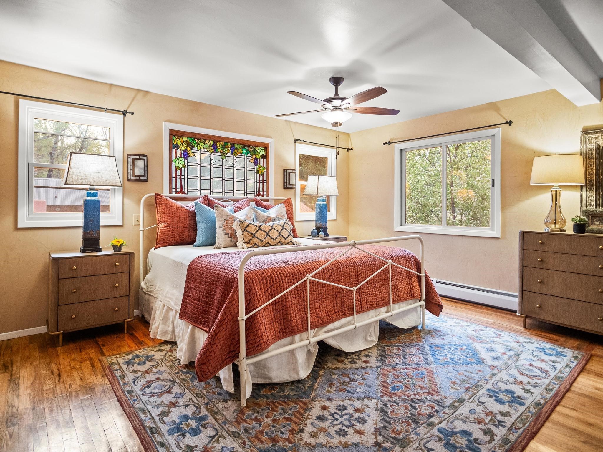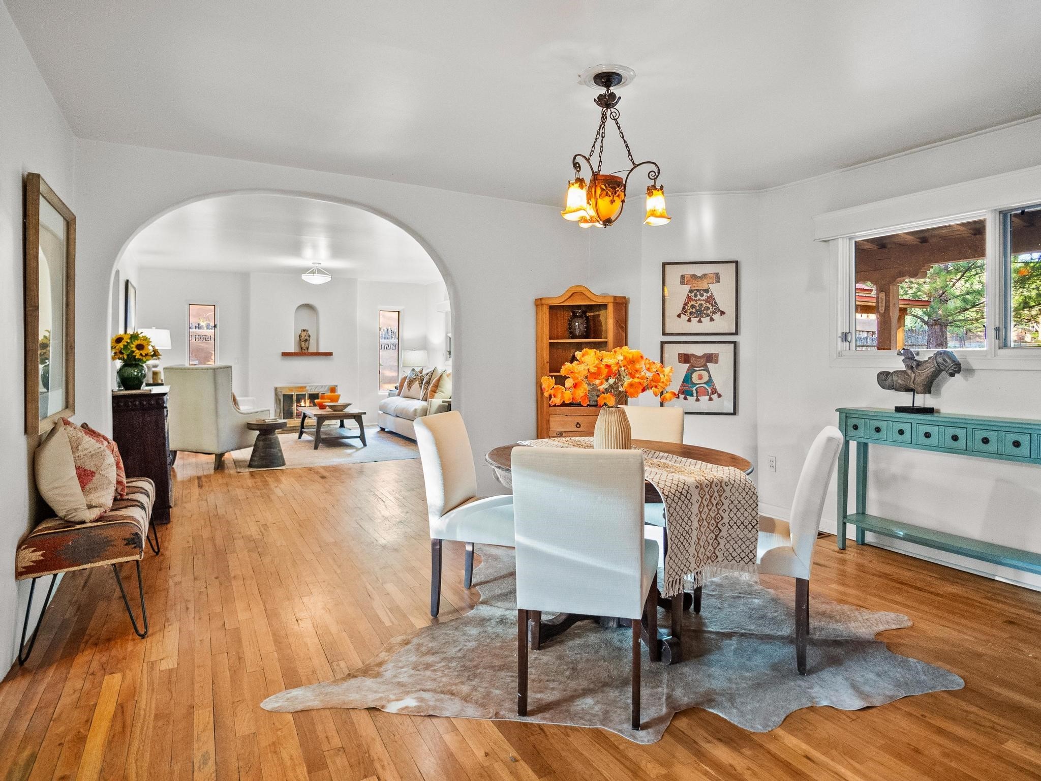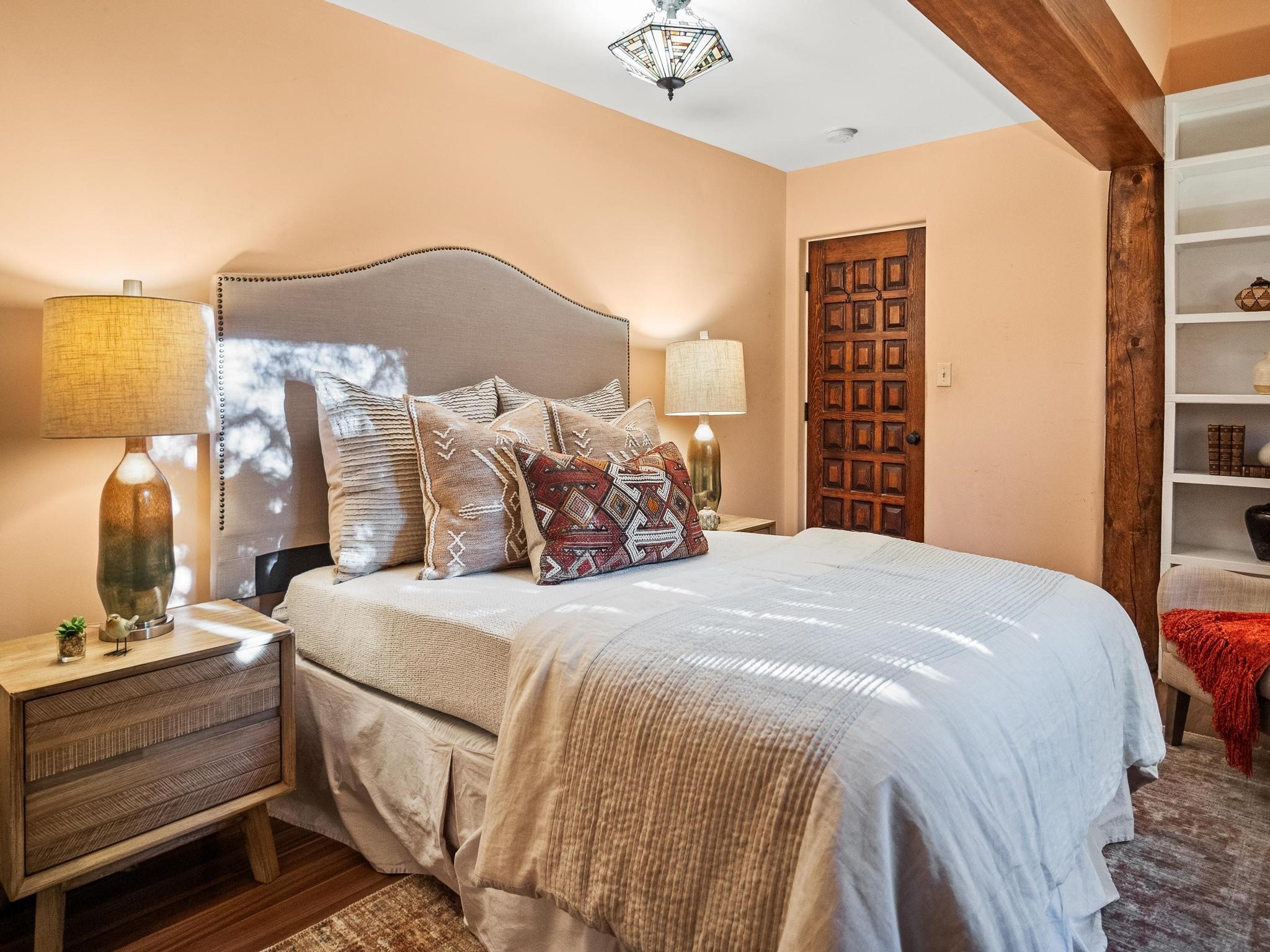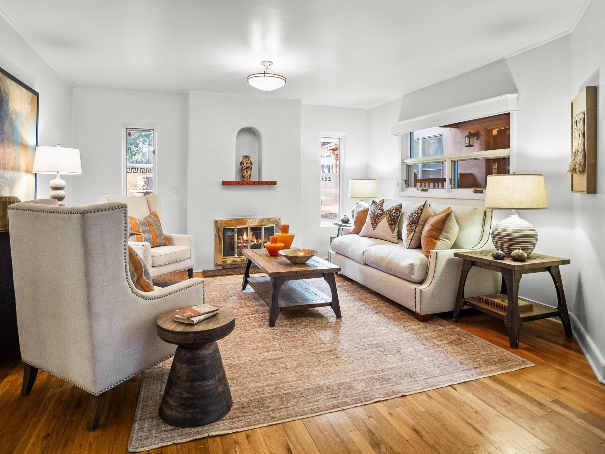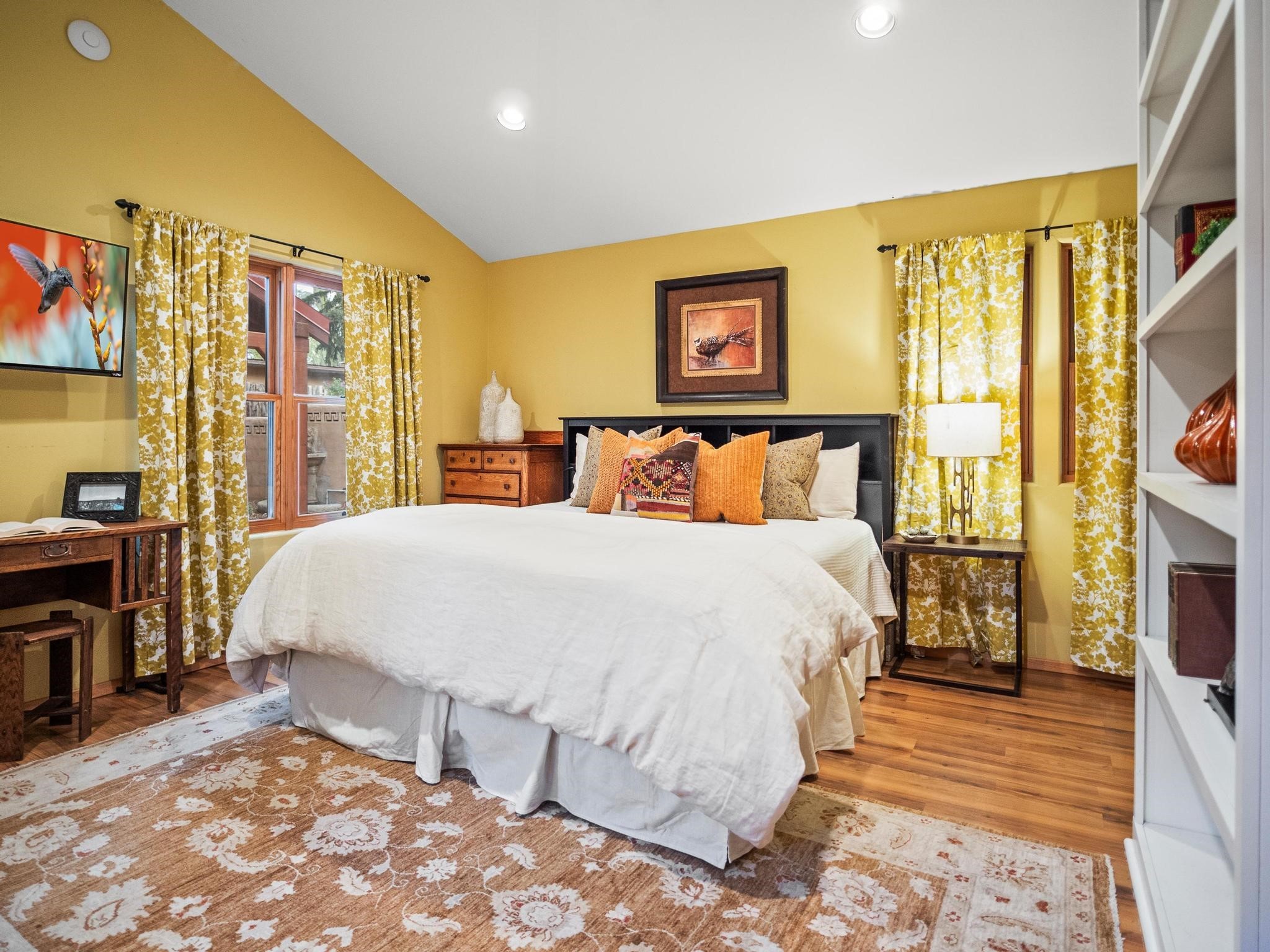 Elegant retreat with Guest Quarters on a quiet, leafy cul-de-sac just a five minute walk from the shops and restaurants of Taos plaza and Kit Carson Park, 310 Ortiz Lane is a stunning, versatile property, blending traditional charm with modern comforts - as a primary home, ski lodge, art studio, retirement haven and family getaway. With well over 4,000 square feet of living space across a main house, a lock-off "second home" - the original house - and a separate guest casita - also perfect for a studio/workshop - this unique home offers exceptional flexibility for multi-generational living, rental income, or live-work needs. MAIN RESIDENCE (Approx. 3,600 SF) Step into a warm, adobe-toned interior great room featuring high ceilings, custom woodwork, arched doorways, and classic Southwest design details throughout. The living and dining areas flow seamlessly, anchored by a cozy double fireplace, built-in shelving, wood floors, and Saltillo tile. To the side, a wide, fan-cooled patio opens onto a flowered adobe-walled Eden shaded by a glorious towering Siberian elm -visible and accessible from the great room interior. The recently added gourmet kitchen is a cook's (and host's) dream - with custom cabinetry, a spacious island with bar-stool seating, ample storage- including a separate multi-shelved pantry room and a coveted AGA stove. Large windows invite morning light and offer garden views. Upstairs, the primary suite includes a private sitting area, walk-in closet, fully remodelled bath with tub and walk-in shower, plus an adjacent office, bedroom or bonus space. The LOCK-OFF IN-LAWDWELLING remains connected to the main home--but has its own private entrance and patio. It features a second kitchen, full bath, open-concept living and dining areas, fireplace, one bedroom with French doors leading to a covered patio and wall fountain. This space offers an ideal setup for extended family, guests, or even rental use. CASITA (Approx. 400 SF) across the front courtyard is a charming detached guest suite with vaulted ceilings, wood floors, built-in shelving, and a bath--also perfect as an art studio, short-term rental, or private retreat. And a 100-square-foot workshop has its own separate entrance. OUTDOORS & AMENITIES Fully enclosed and beautifully xeriscaped yard with russet gravel, brick pavers, mature landscaping, and adobe privacy walls Multiple patios, both covered and open, offering outdoor living in every season 4 off-street parking spaces, including 2 under attached carports Whether you're looking for a hidden gem to call home or a flexible compound with income potential, 310 Ortiz Lane delivers exceptional style, thoughtful design, and an unbeatable in-town location.