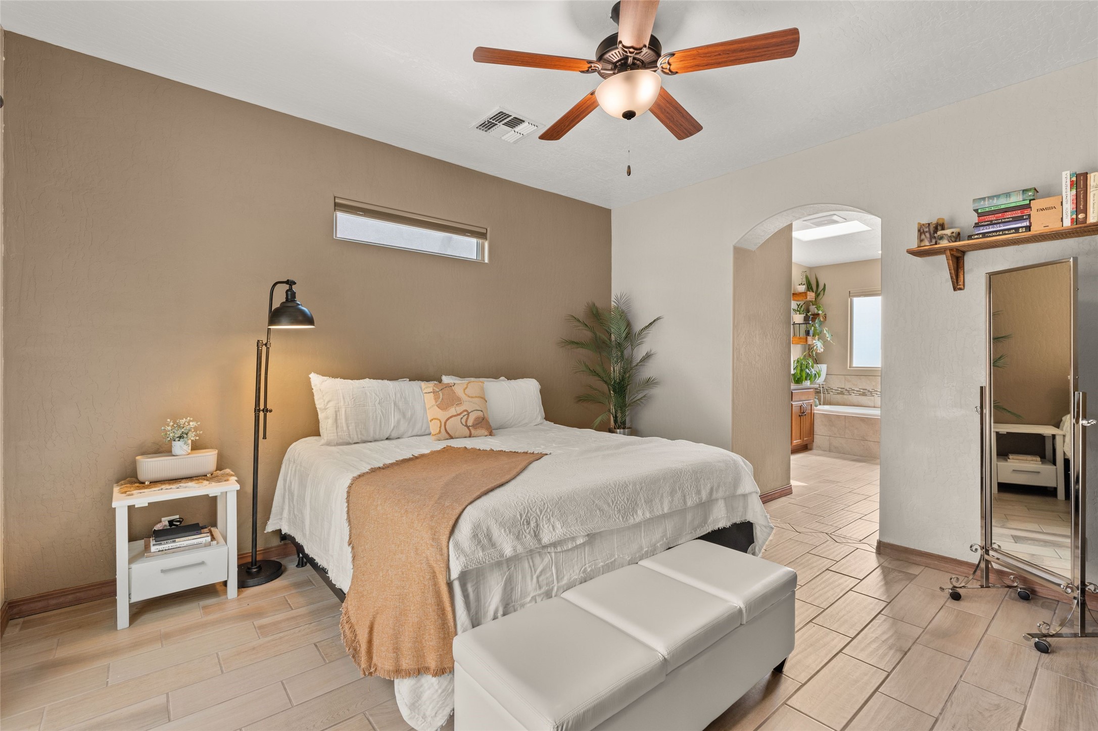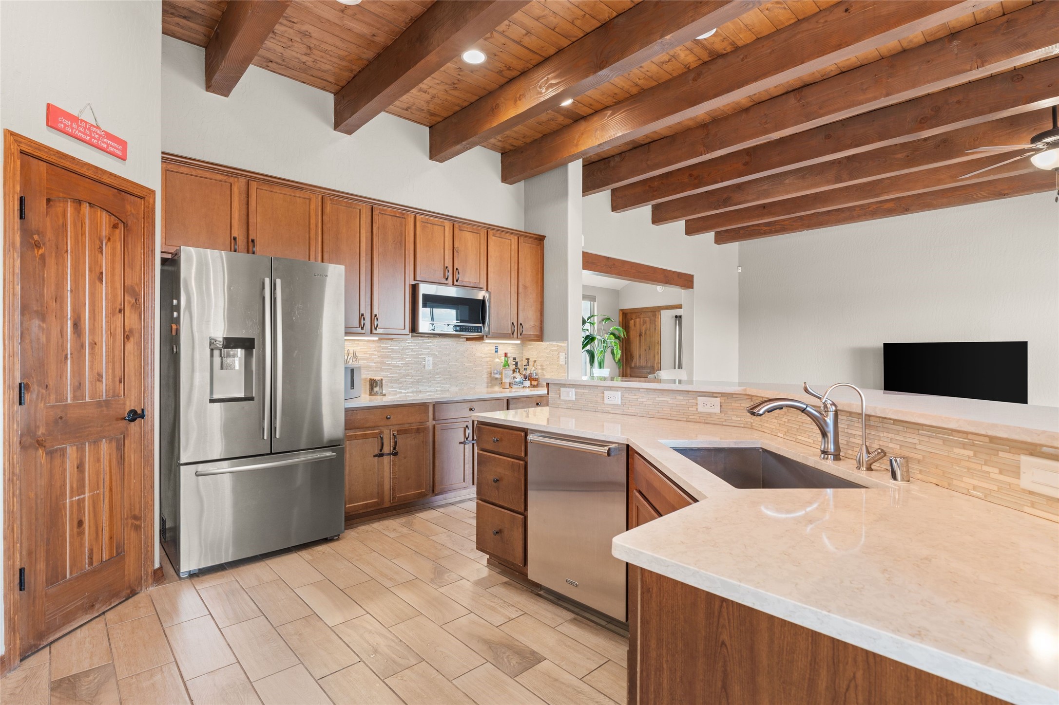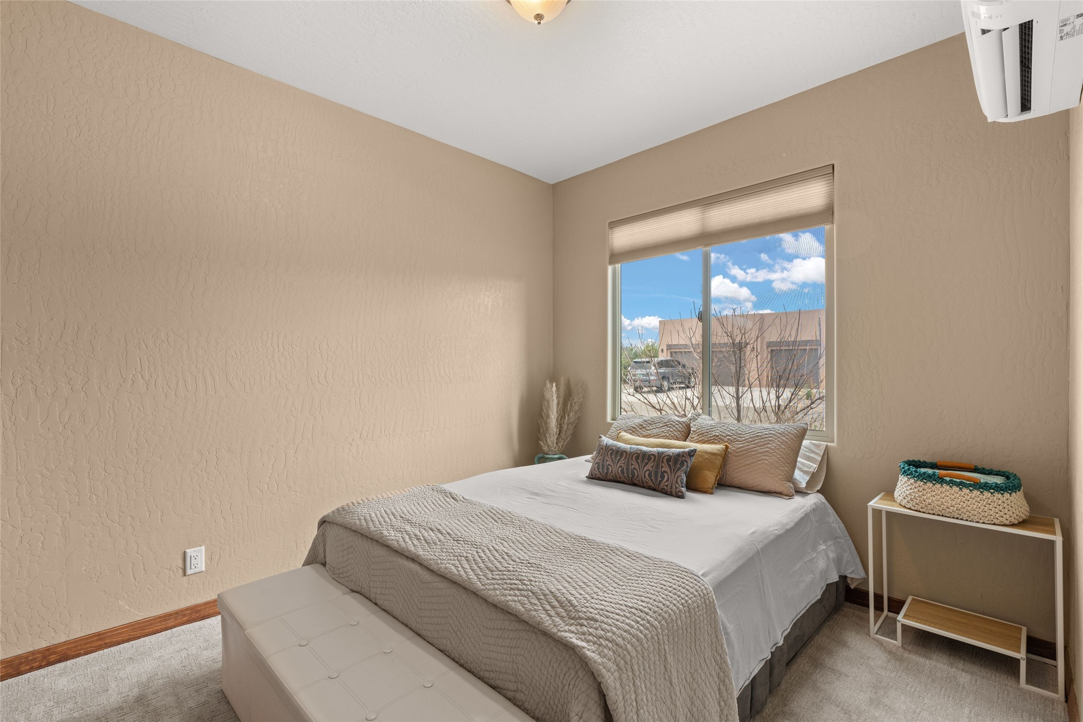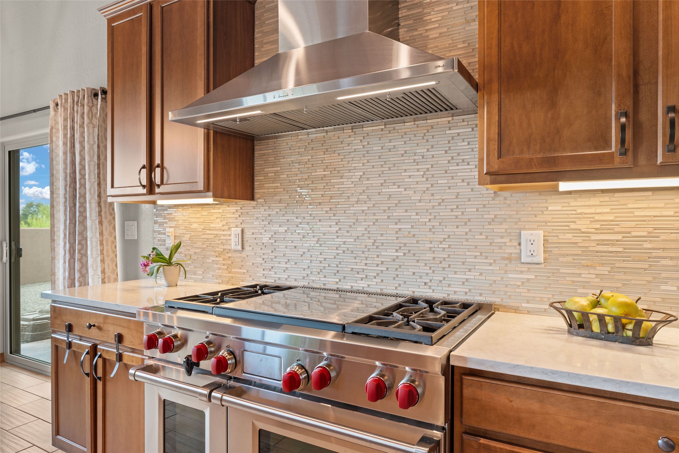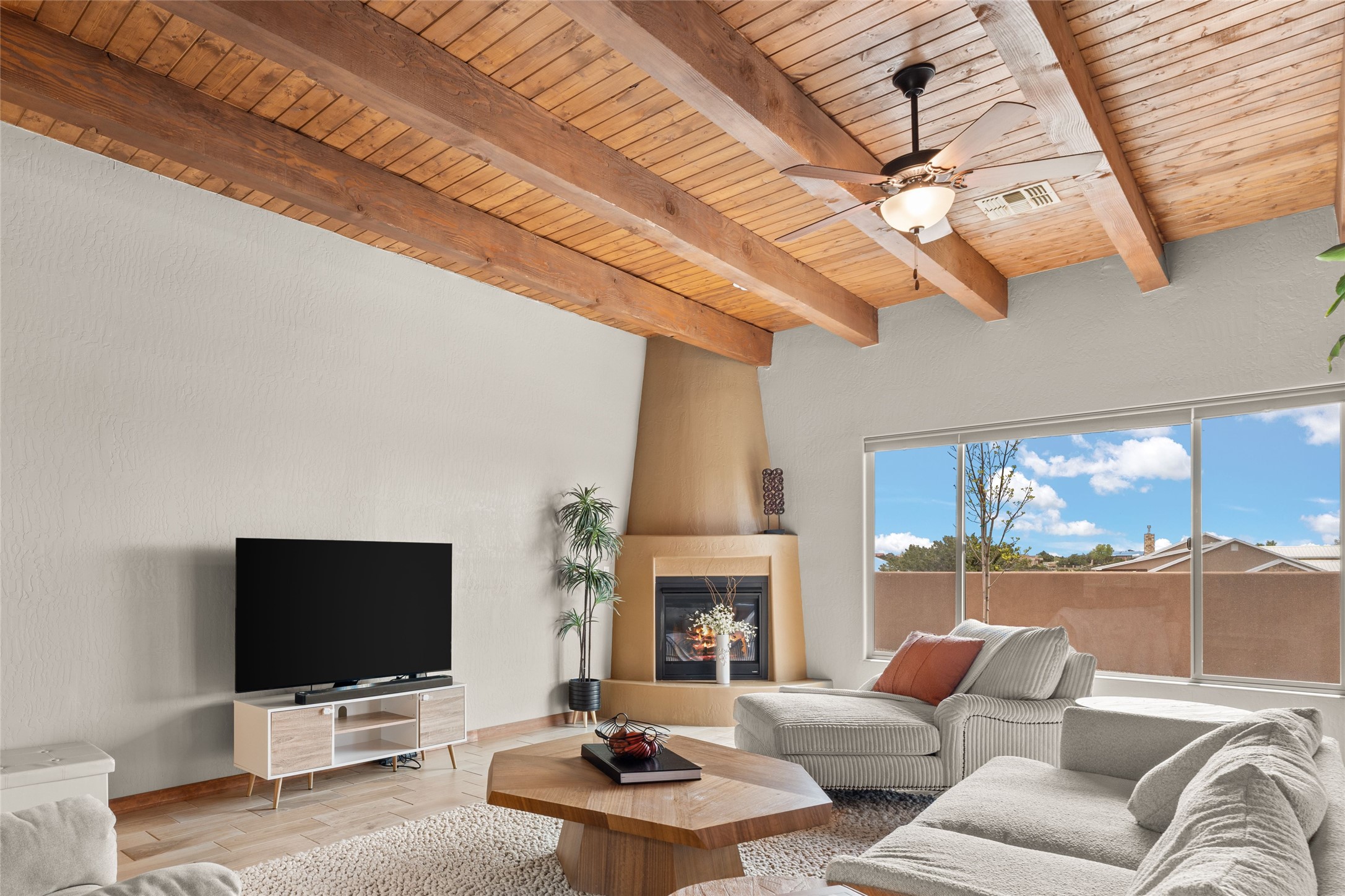 Step inside this move-in ready La Pradera home and enjoy the tranquility and tasteful design found in this award-winning Zaguan floor-plan, offering an unparalleled blend of modern sophistication, premium upgrades, and magnificent sun-filled vistas. Upon entering through handcrafted double cedar gates, you will find a welcoming private courtyard with a soothing water feature and ample space for lush potted plantings.This 3-bedroom, 3-bath home provides flexibility, privacy, and exceptional finishes throughout the home, including a modern Kiva fireplace, porcelain tile flooring and dramatic beamed ceilings. Designed for culinary enthusiasts, the spacious kitchen claims a 4-burner WOLF convection oven with indoor griddle, a professional-grade ventilation system, a Sub-Zero Cove dishwasher, and a counter-depth Jennair refrigerator, all complemented by soft-close cabinetry, elegant Silestone countertops, and shimmer-tiled backsplashThe primary suite features a custom tiled shower, a deep soaking tub, dual walk-in closets, and a private water closet, all designed for ultimate comfort. Within a few steps from here into the courtyard, lies the separate guest suite, with a living room, bedroom, and upsale bath. The second bedroom in the home extends out to the portal and a large yard that is completely surrounded by a custom-made wall for security and privacy.Additional highlights include an oversized, fully finished three-car garage with extra storage, wired EV outlet, and durable epoxy flooring. The home is equipped with tankless hot water system, an in-duct air purification system, a whole-house steam humidifier, and a reverse-osmosis water purification system...all ensuring a high standard of living, located near health care, SFCC, schools and access to major roads.