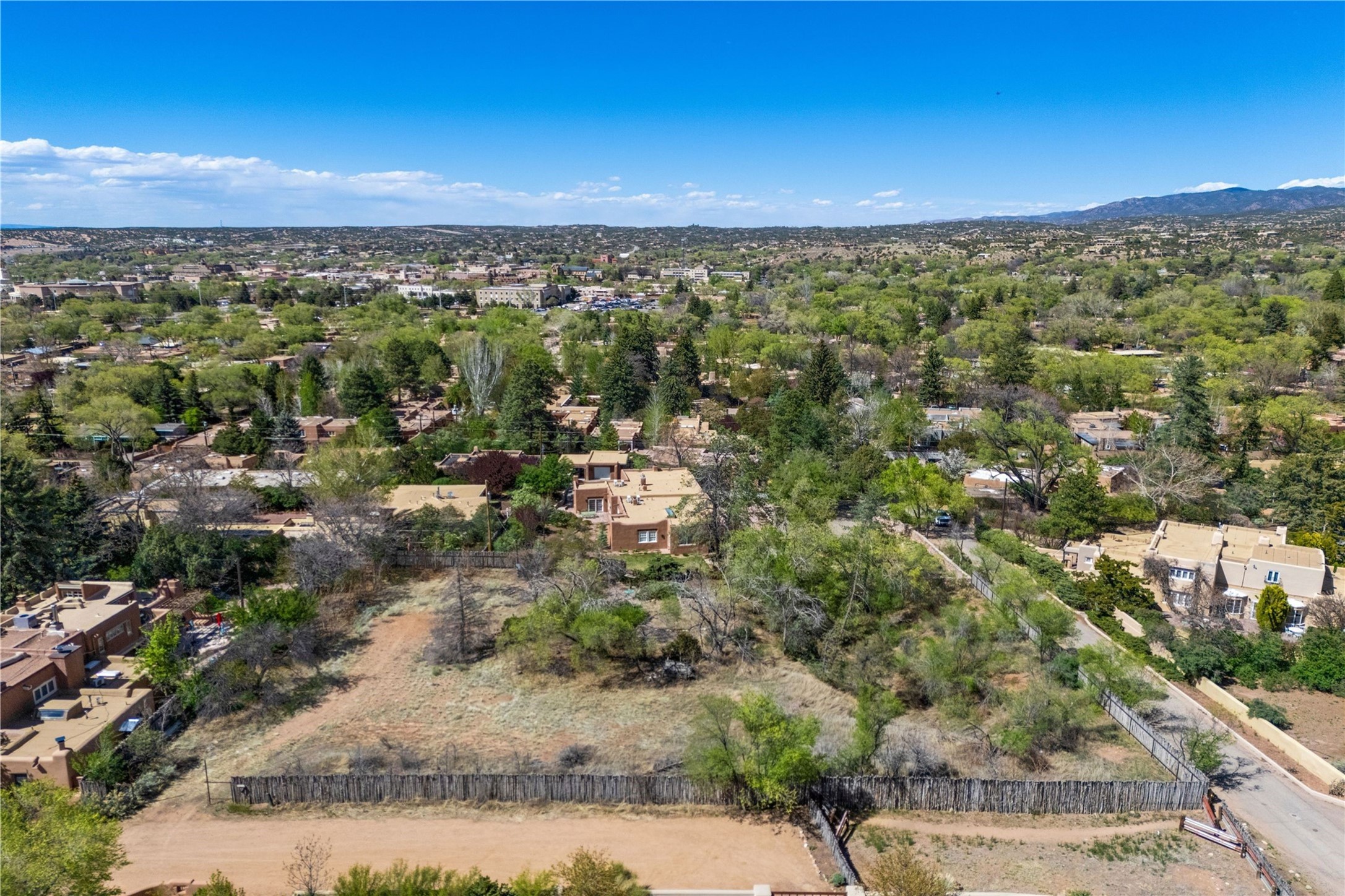 Prime Historic Eastside nearly 3/4-acre residential lot with R-3 zoning located in the heart of the prime Acequia Madre neighborhood. This area is renowned for its unique charm, featuring gracefully curved walls, aged Mexican doors, and lush cascades of wisteria and willows. The Acequia Madre neighborhood represents the essence of Eastside Santa Fe--romantic, time-honored, and rich in history. Here, you will enjoy breathtaking views of the surrounding mountain ranges and the brilliant blue skies that New Mexico is famous for, providing a stunning backdrop for your future home. Lot includes architectural drawings by renowned architect Lorn Tryk for a territorial style 5 bedroom, 5.5 bath home (including casita), surrounded by an abundance of outdoor living spaces, portals and pool. or the home and casita have already been approved by the City of Santa Fe. Award-inning builder Scott Wong of Solterra Design Build is ready to turn these plans into a reality. Convenience is at your fingertips with Downtown Subscription, a popular local coffee shop and gathering spot, just a short distance away. Additionally, Kaune's Neighborhood Market is nearby. The vibrant art scene of Canyon Road and the cultural heart of the Santa Fe Plaza are also within easy reach, allowing for endless exploration and enjoyment. This lot presents a unique chance to create a residence in an iconic neighborhood, where every corner reflects the rich heritage and artistic spirit of of Santa Fe.