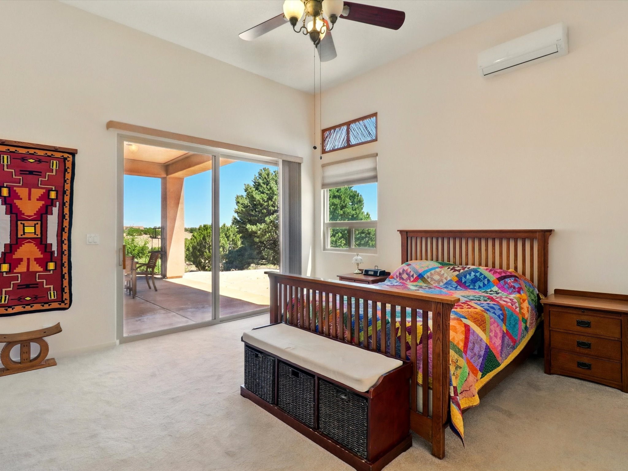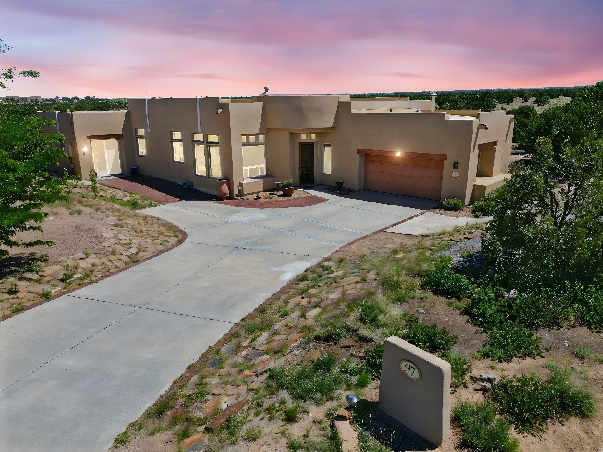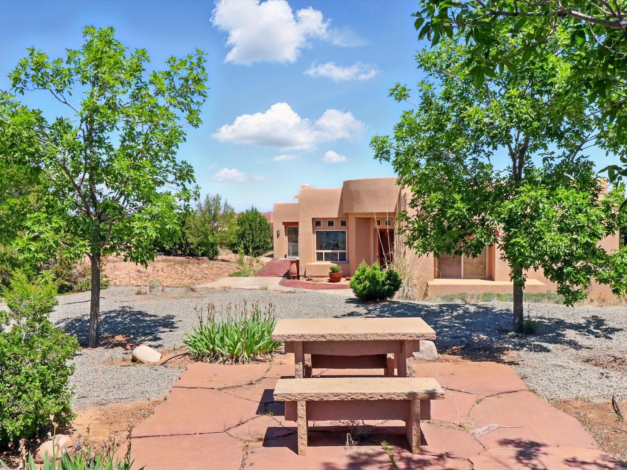 Nestled in the highly desirable Rancho Viejo subdivision, this beautifully maintained, one owner home offers a serene retreat on a conservation lot adjacent to open space--providing ultimate privacy and breathtaking views of the Sangre de Cristo and Jemez Mountains.With high ceilings and a thoughtful floor plan, this residence features two inviting living areas, a spacious formal dining room, and multiple options for casual dining--including a charming eat-in kitchen space and a breakfast bar perfect for morning coffee or quick meals. The cozy kiva fireplace adds warmth and ambiance, making it ideal for Santa Fe's cooler seasons.The primary suite is complete with a large walk-in closet, a bath tub, and a separate shower. Thoughtfully separated from the other bedrooms, it provides a peaceful escape. On the opposite side of the home, you'll find three additional bedrooms and a dedicated office--offering flexibility for family, guests, or remote work needs. One of the bedrooms even includes its own private bath with a curbless shower adding comfort and convenience.A two-car garage rounds out the home's features, while the quiet location ensures a tranquil lifestyle without sacrificing accessibility. Just minutes from Santa Fe Community College and surrounded by scenic parks and trails, this elegant home combines space, style, and location--perfect for entertaining or simply enjoying the beauty of northern New Mexico. Also brand New Boiler and recent maintenance makes this home a great choice.