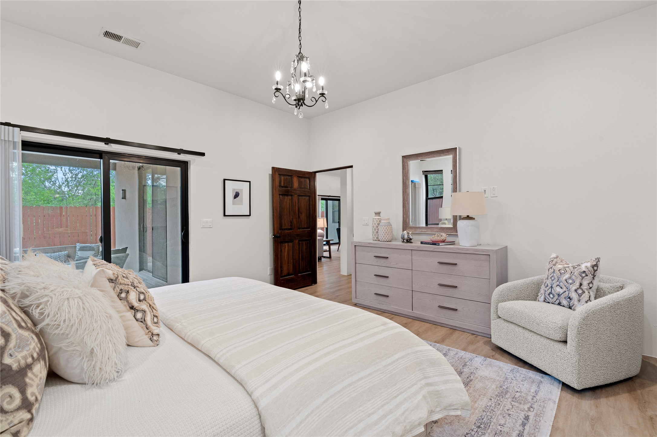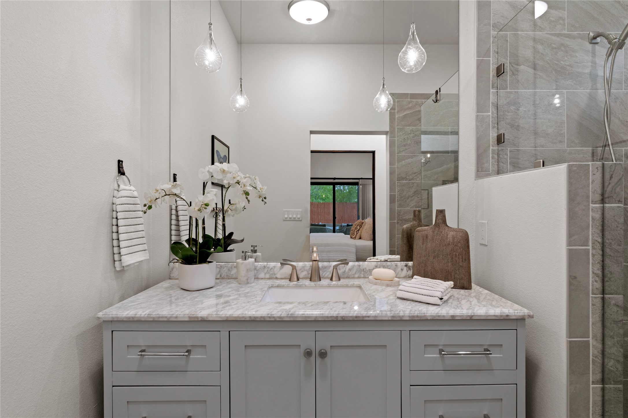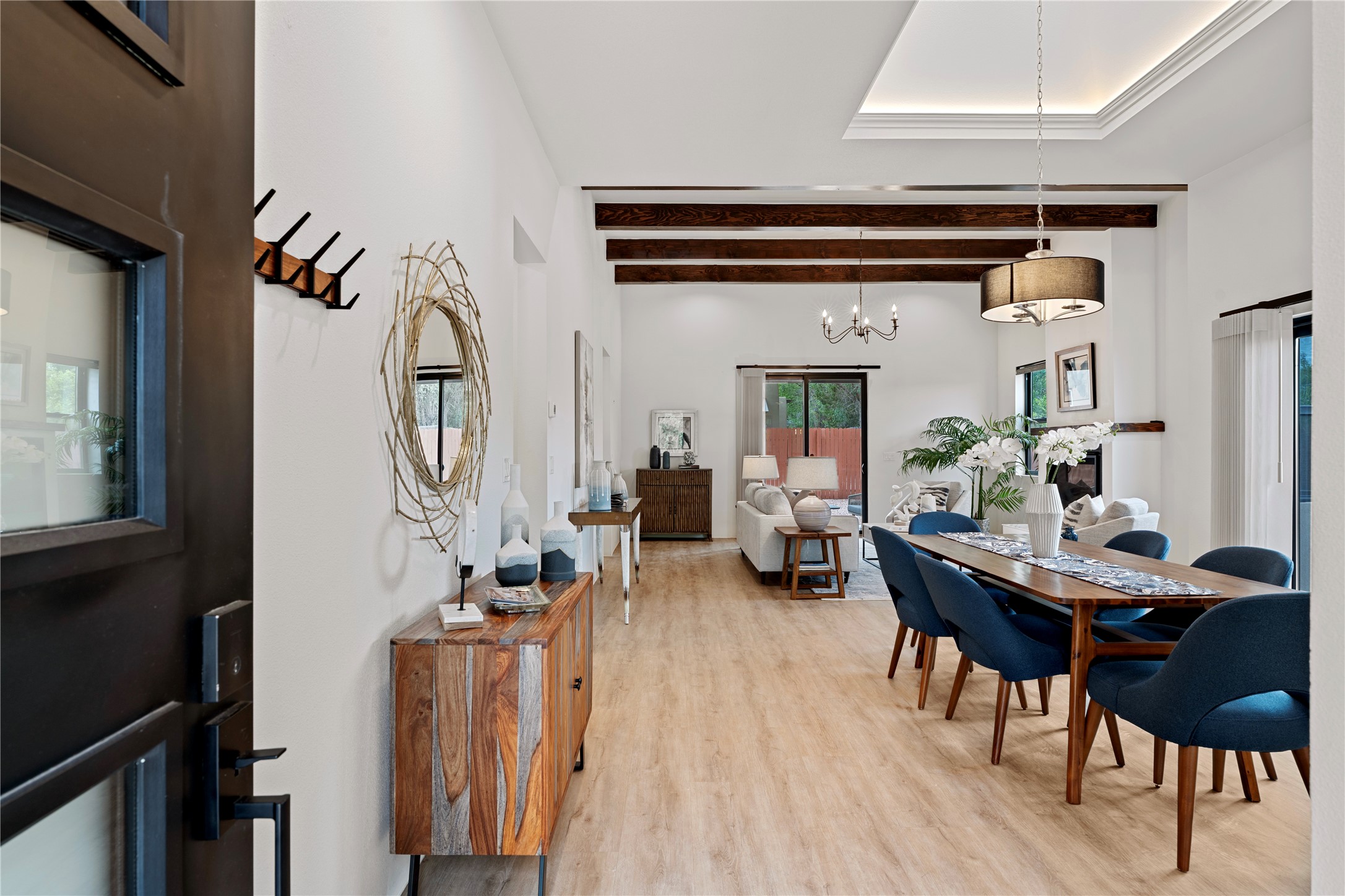 This beautifully crafted single family one story home, built by renowned Master Builder Arch Sproul, combines modern comfort with exceptional energy efficiency. Located in a quiet all custom-built subdivision in central Santa Fe, this home features super-insulated walls and ceilings, on-demand hot water, ultra efficient HVAC systems, skylights, and energy star appliances, making it ideal for sustainable living. With three well-separated bedrooms and two full bathrooms, the layout provides a perfect balance of privacy and functionality. The spacious living room with soaring ceilings, mountain views, and a cozy gas fireplace flows seamlessly to the covered patio and fenced backyard. The custom-designed kitchen boasts solid-surface countertops, custom cabinetry, luxury plank vinyl flooring, designer lighting, and stylish plumbing fixtures. Situated at the end of a peaceful tree-lined street with ample parking, it is a short walk from this home to local shops, schools, and the Genoveva Chavez sport facility. Offering price is lower than the sold price of 2023! This is the deal you won't want to miss! As a perk, it is currently covered with a Home Owners Warranty!