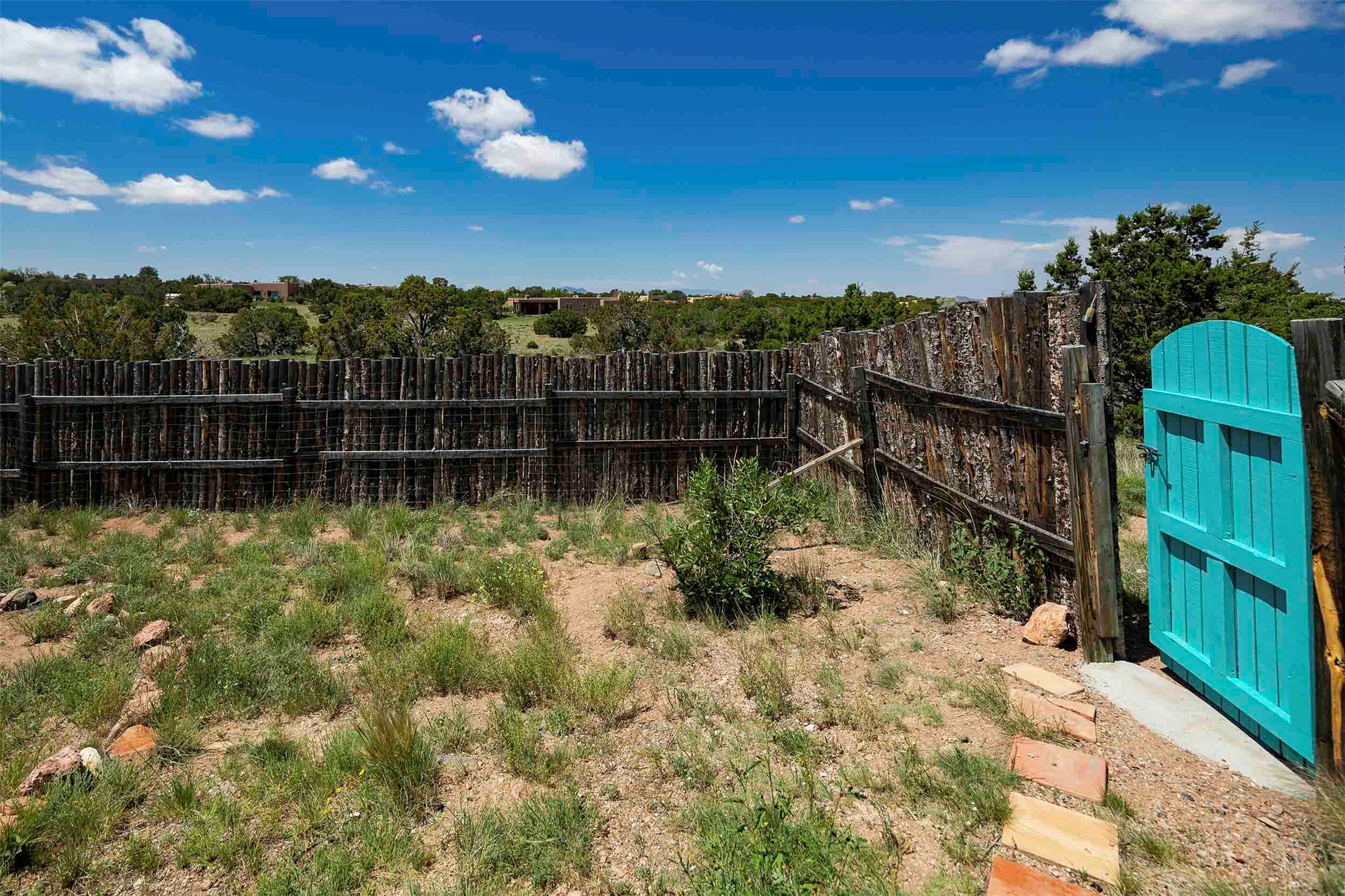 PRICE IMPROVEMENT! Welcome to 11 Balsa Court, where sustainability meets Southwest charm in the heart of Eldorado. This home features a fully owned 22-panel ground-mounted solar system (installed in 2021) that keeps electric bills under $12/month--a rare and valuable benefit.Backed by a greenbelt with stunning views of the San Pedro, Ortiz, and Jemez Mountains, the home offers privacy, open skies, and constant connection to nature. Enjoy sunsets from the bedroom and stargazing from the patio.Inside, the layout is open and comfortable. The great room features beautiful viga ceilings, a kiva fireplace, Saltillo tile floors, and plenty of natural light. The kitchen is equipped with a large center island and modern lighting, and there's a built-in banco for casual dining. All rooms are generously sized, offering flexibility for how you live and work. Out back, a flagstone patio with a ramada creates a shaded outdoor living space ideal for relaxing or entertaining. In addition, there are 17 new windows that were replaced in the spring of 2023, Renewal by Anderson, energy-efficient.The fully fenced yard makes life easy for pet owners, and the garden is already established with native trees and perennials. Living in Eldorado means easy access to miles of trails, a tight-knit community, great schools, local markets and restaurants, and the kind of quiet that's getting harder to find. This is the kind of property that makes it easy to settle in and feel at home.