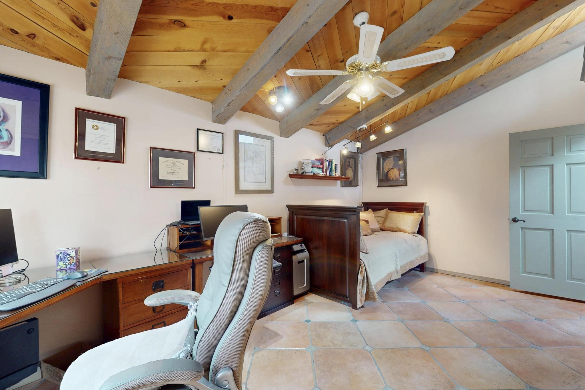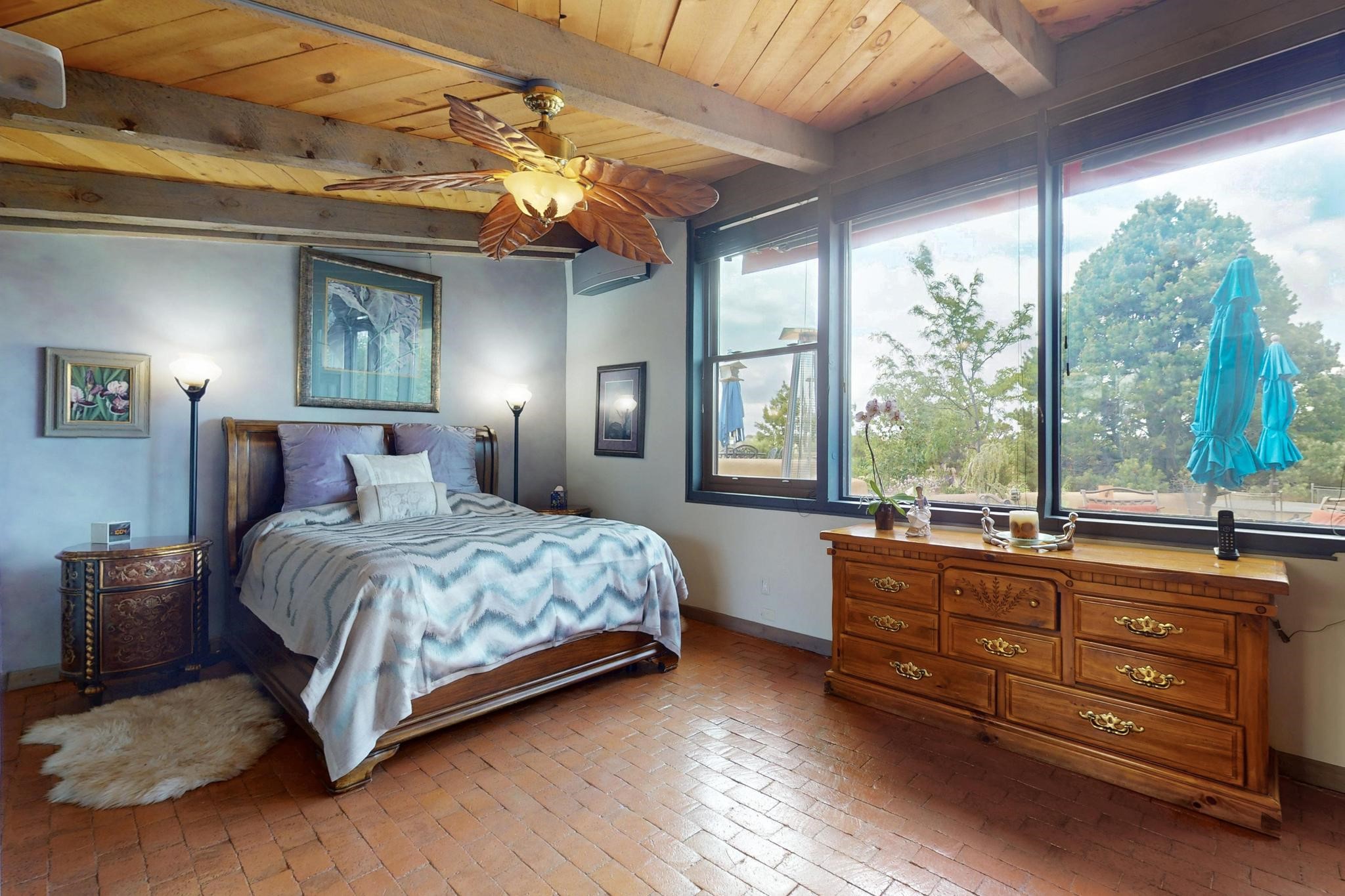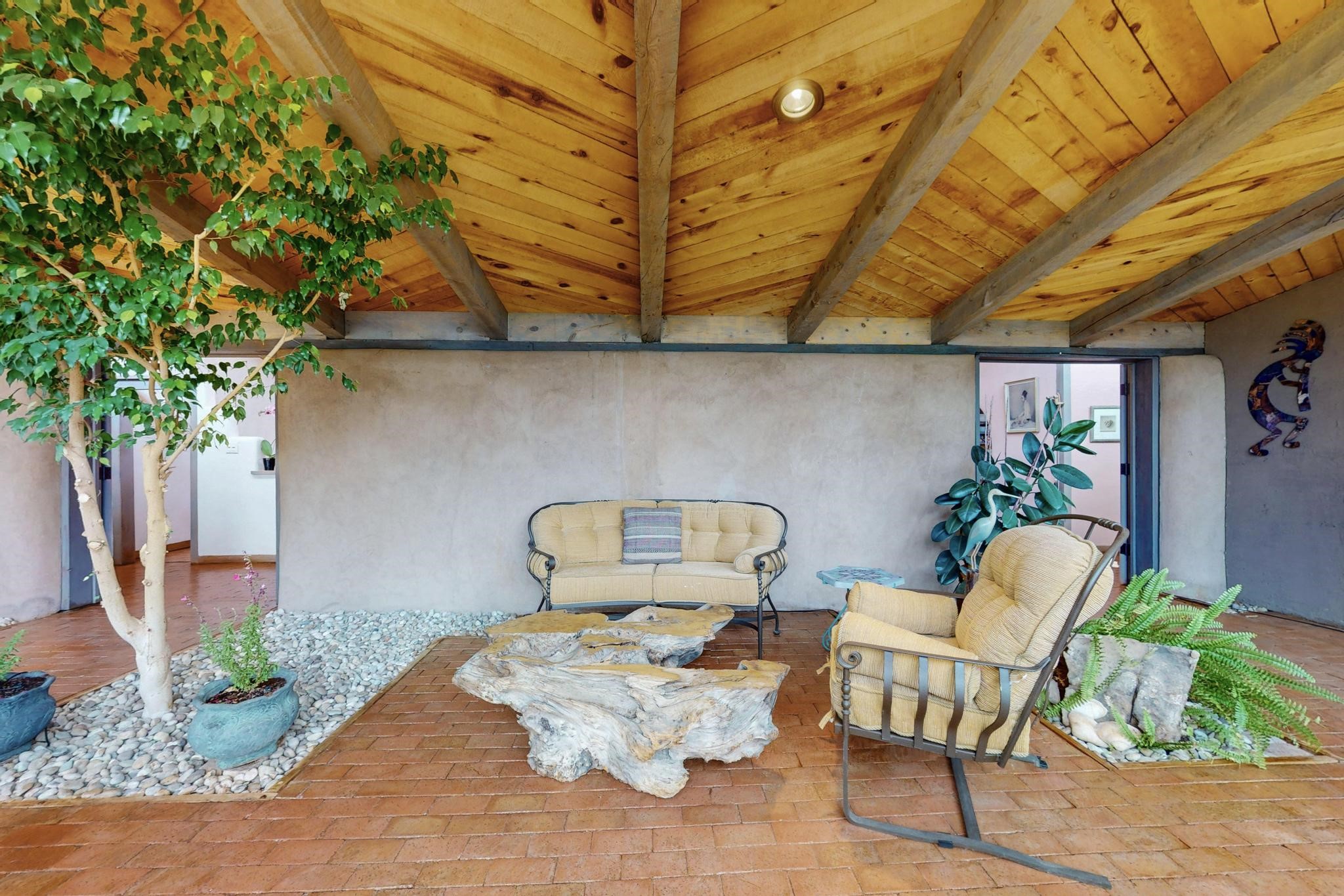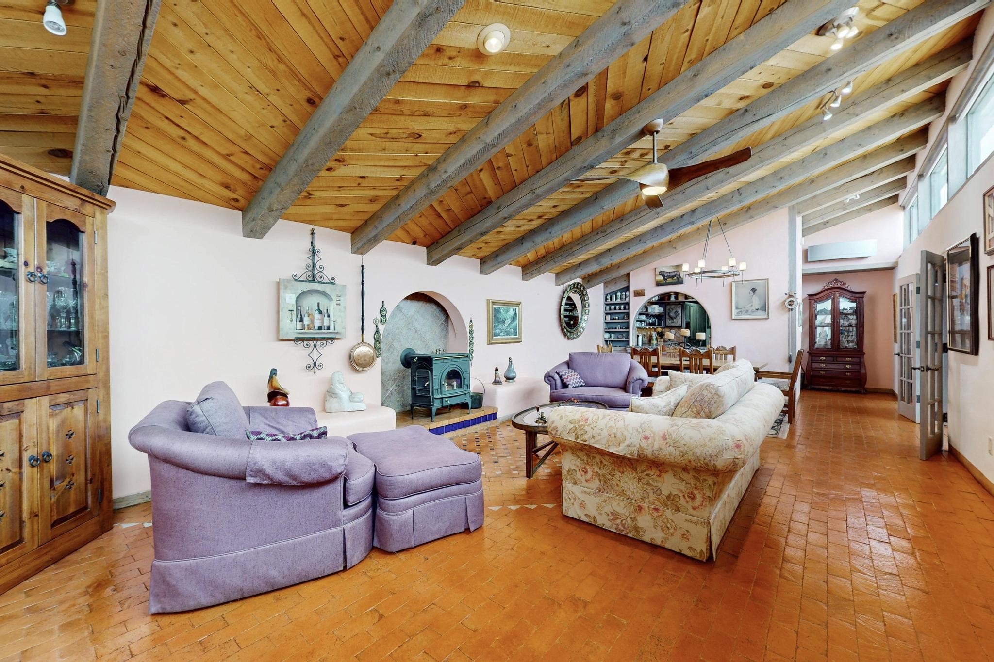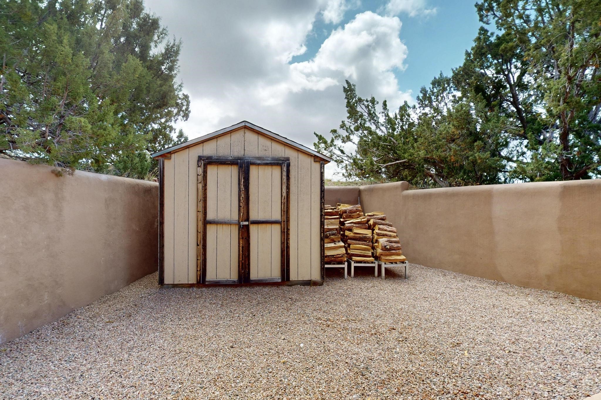 First time on the market! One-of-a-kind pitched roof propanel passive solar beauty with Old World Charm. Like a Swiss Chalet with a dash of Mid-Century Modern. A rarity in Eldorado! Set back off the road on a circular drive, with nary a house in sight, is this gorgeously maintained and landscaped 1.50 acre lot replete with a bubbling Koi and goldfish pond. A multitude of exterior dining and entertaining areas. Meander through the totally dripped irrigated garden which leads the way into a sun drenched, and massive, brick floor Atrium. In fact, the whole house has brick floors and Post and Beam high ceilings with French doors galore! Oversized Living/Dining room with floor to ceiling windows and remote controlled blinds. The wood stove has a catalytic converter which keeps the room toasty through those long winter nights with an 75% to 81% efficiency rating. Split bedroom floor plan. A fabulous Master with a Vermont casting wood stove, en-suite bath with an on-demand gas water heater and a remote controlled awning to keep the bright morning light at bay. Ginormous cedar closet in dressing room/walk-in closet which is the size of a NYC studio apartment! Both the Living Room and Bedrooms have mini-splits and ceiling fans. European-style kitchen has a warming drawer, open shelving and tons of cupboards. A wonderful long pantry with a utility area and space for all your pots, pans, spices and sundries. Outside the kitchen door is a dedicated gas connection for the BBQ. A long and wide two car detached tandem garage has tons of storage and a climate controlled wine room suitable for hundreds of bottles. One of a kind unique beauty.There's nothing like it!