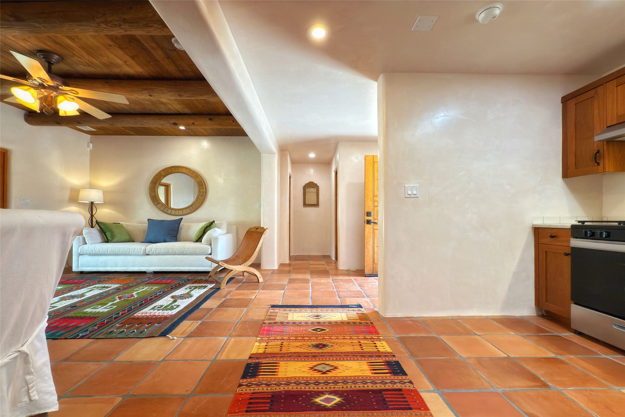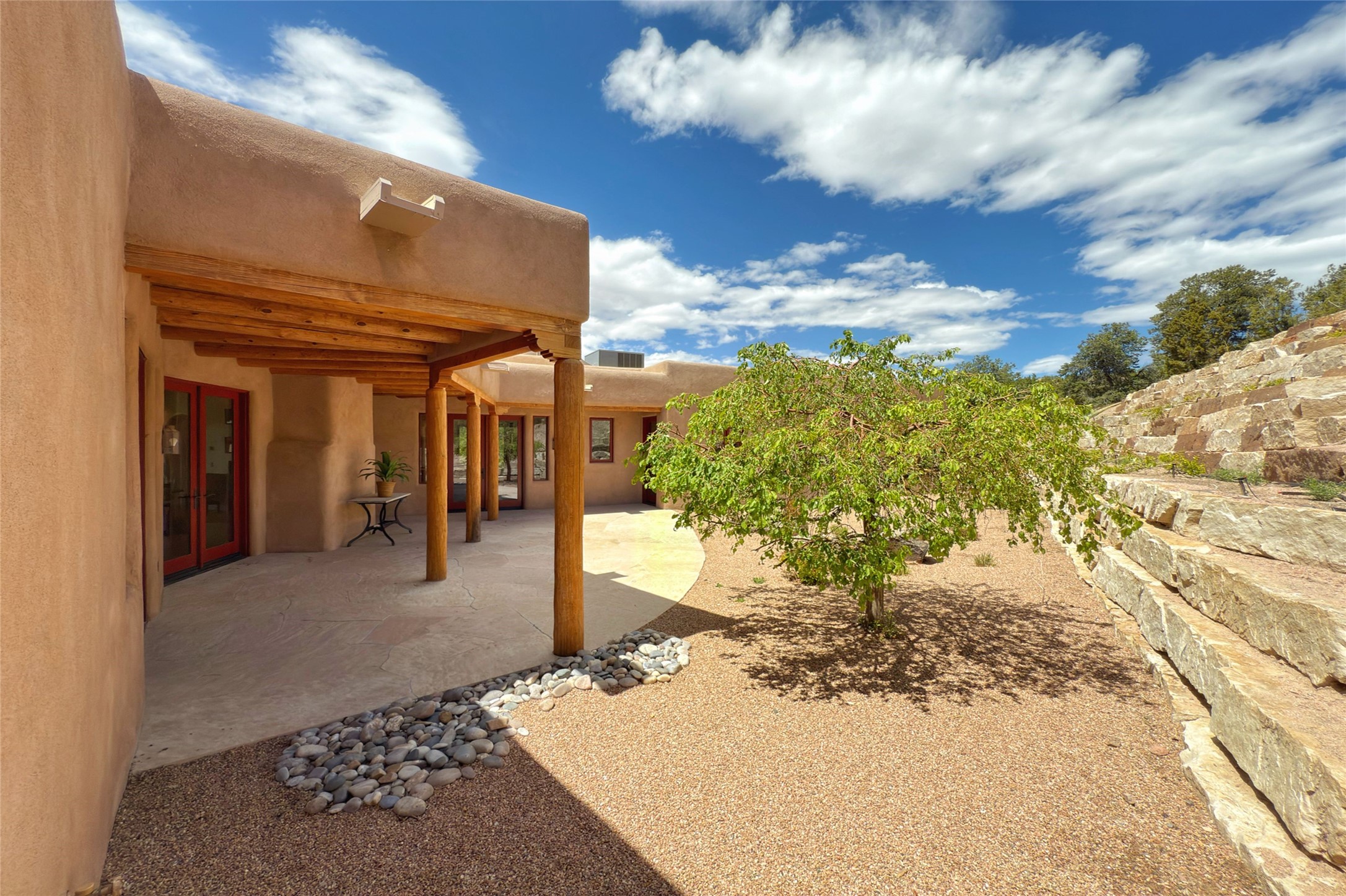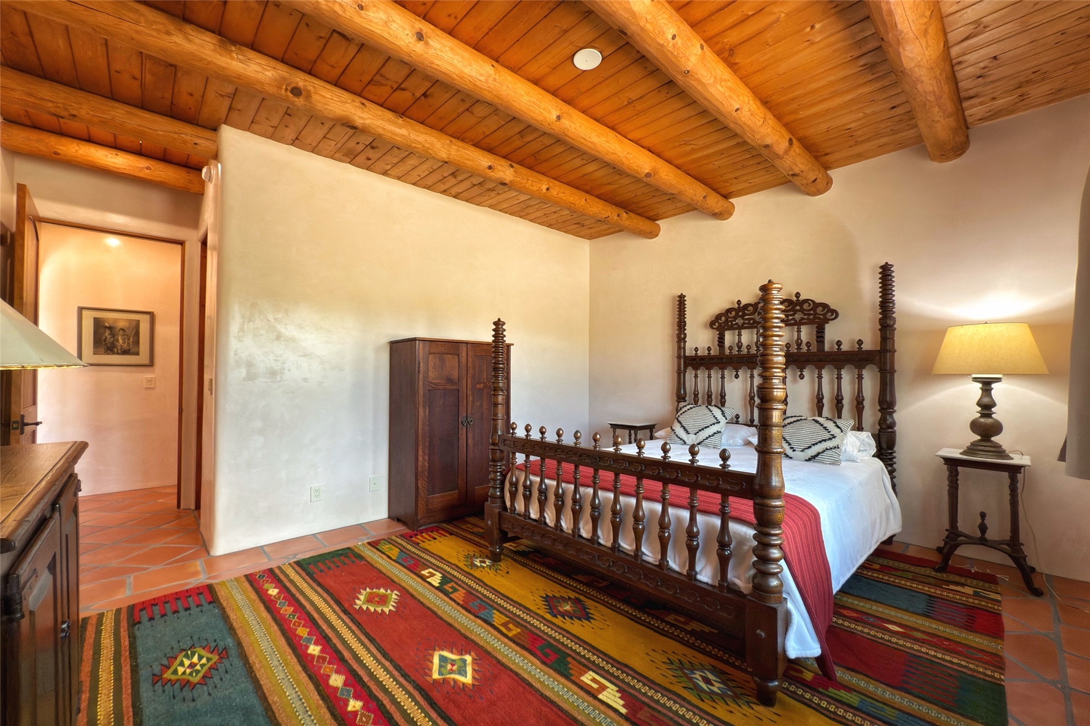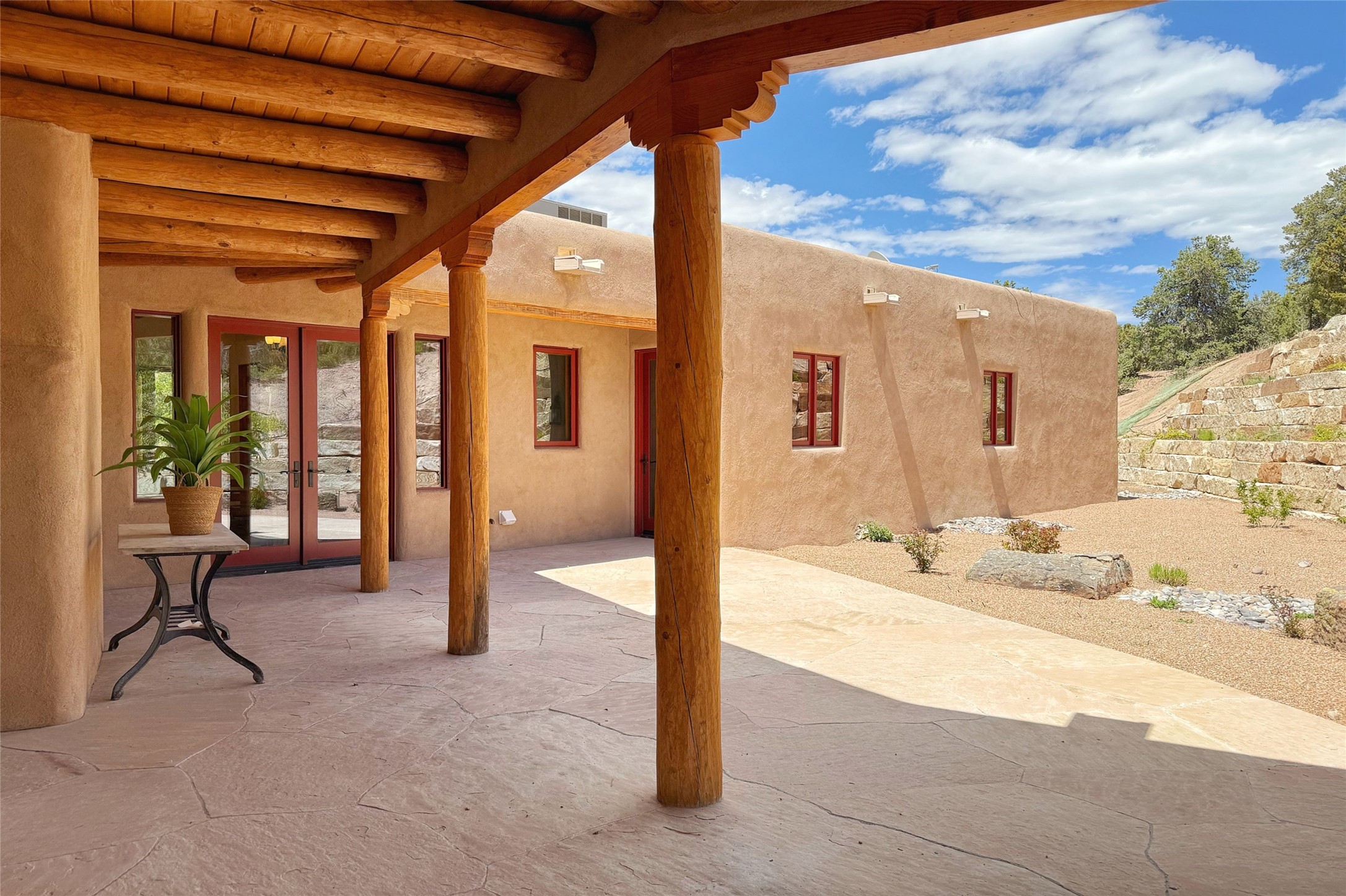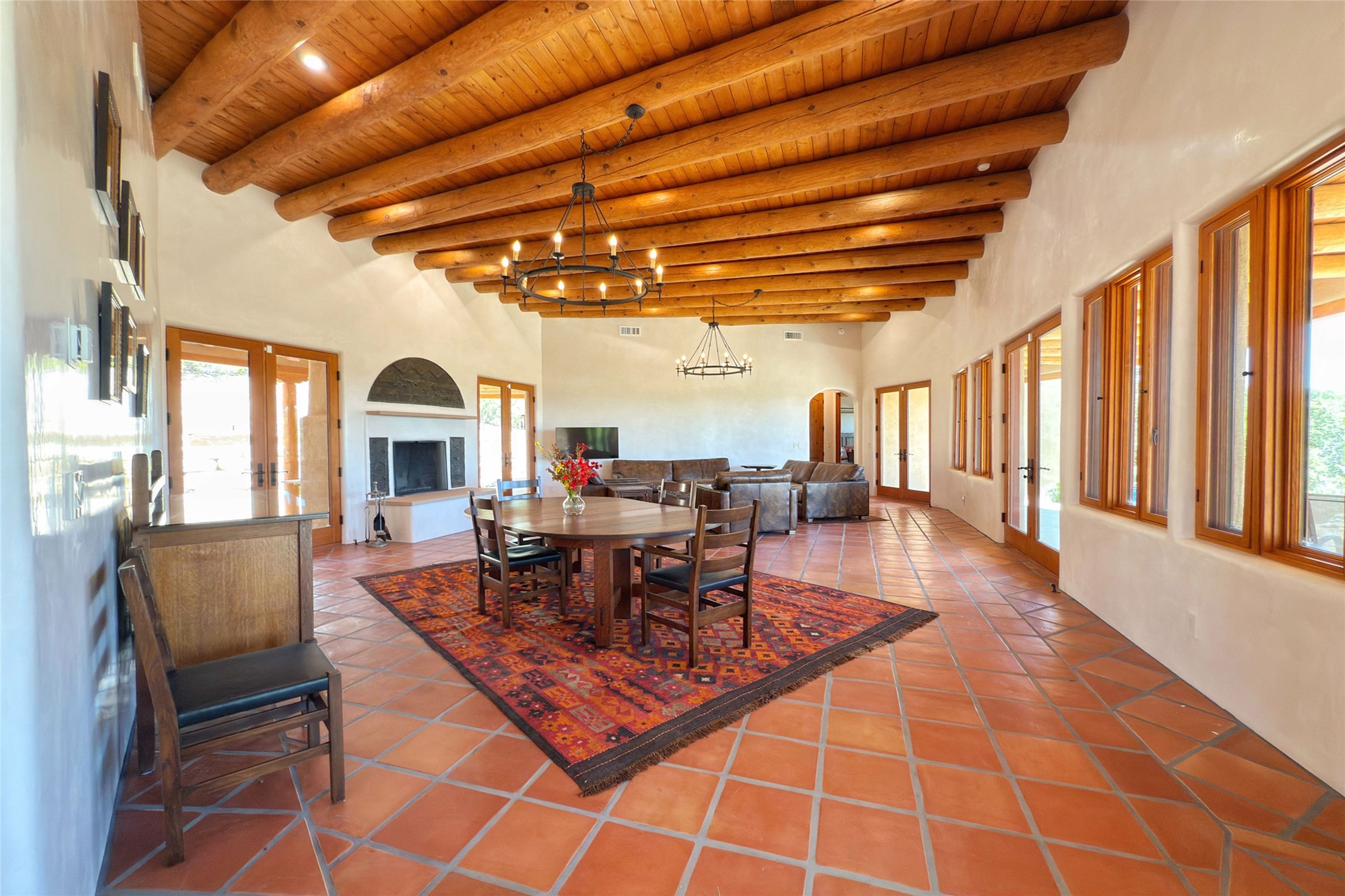 Southwest Elegance Meets Modern Luxury - Tesuque Estate Near Santa FeExperience timeless charm and refined upgrades in this exceptional Tesuque estate just 15 minutes from downtown Santa Fe. The property includes a beautifully renovated main house, a private guesthouse, and a versatile third structure ideal as a studio, barn, or additional guest quarters.The main residence showcases superior craftsmanship with diamond plaster walls, Loewen windows and doors, and Saltillo tile floors. The chef's kitchen features SubZero and Wolf appliances, an Asko dishwasher, an imported porcelain farmhouse sink, and striking Taj Mahal quartz countertops. The great room impresses with soaring ceilings, dual chandeliers, a wood-burning fireplace, and expansive western views, flowing onto two covered flagstone patios--perfect for indoor-outdoor living.The primary suite offers a luxurious retreat with its own fireplace, a spa-like bath with soaking tub, walk-in shower, dual pedestal sinks, and an adjacent study with fireplace and patio access. Two additional bedrooms complete the home--one with ensuite bath, the other with access to a nearby half bath. Comforts include radiant floor heating and central A/C.The guesthouse offers two bedrooms and two baths, with upgrades mirroring the main home: diamond plaster walls, quartz countertops, radiant heating, central A/C, and Loewen windows. Its primary suite features a kiva fireplace, soaking tub, and walk-in shower, while the second bedroom enjoys tranquil western views. A cozy living/dining area with kiva fireplace and a private flagstone patio complete the space.Set on a beautifully landscaped lot with mature junipers, fenced areas, and irrigated gardens, this private estate offers peace and elegance just minutes from the heart of Santa Fe.