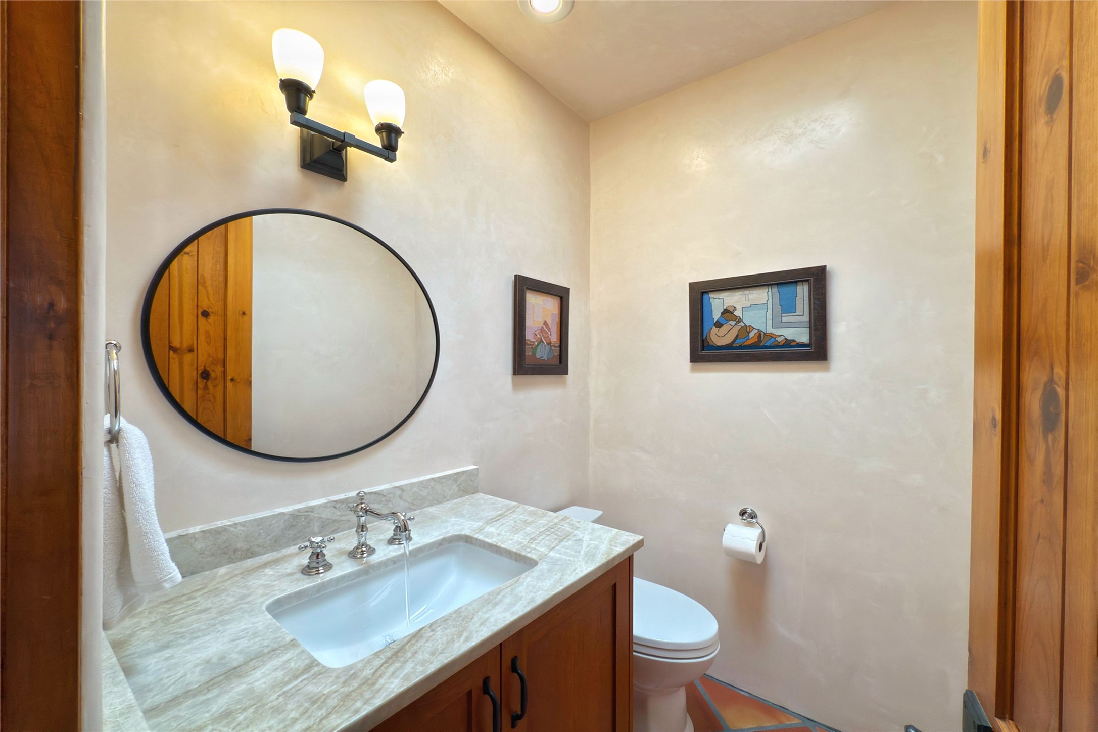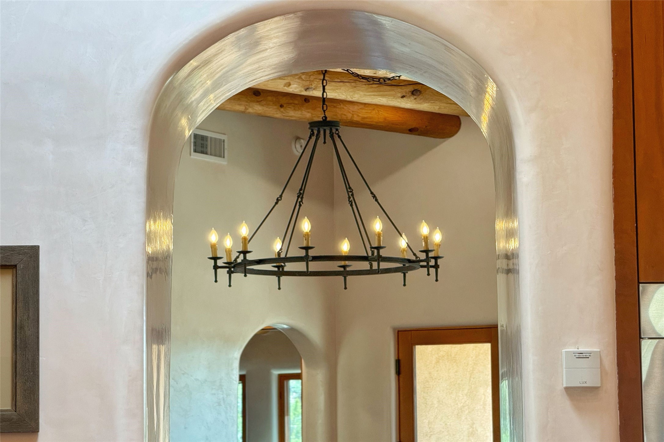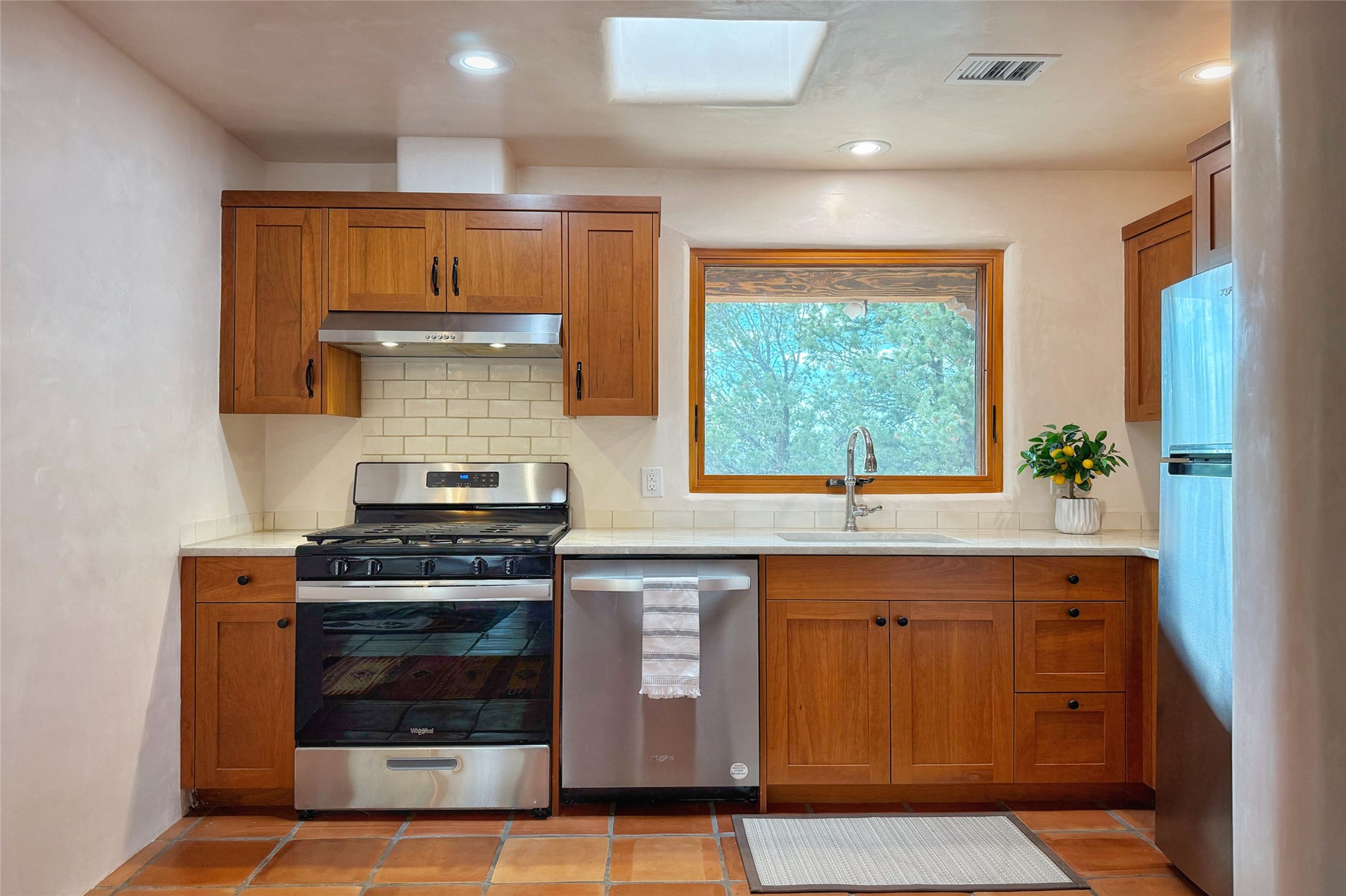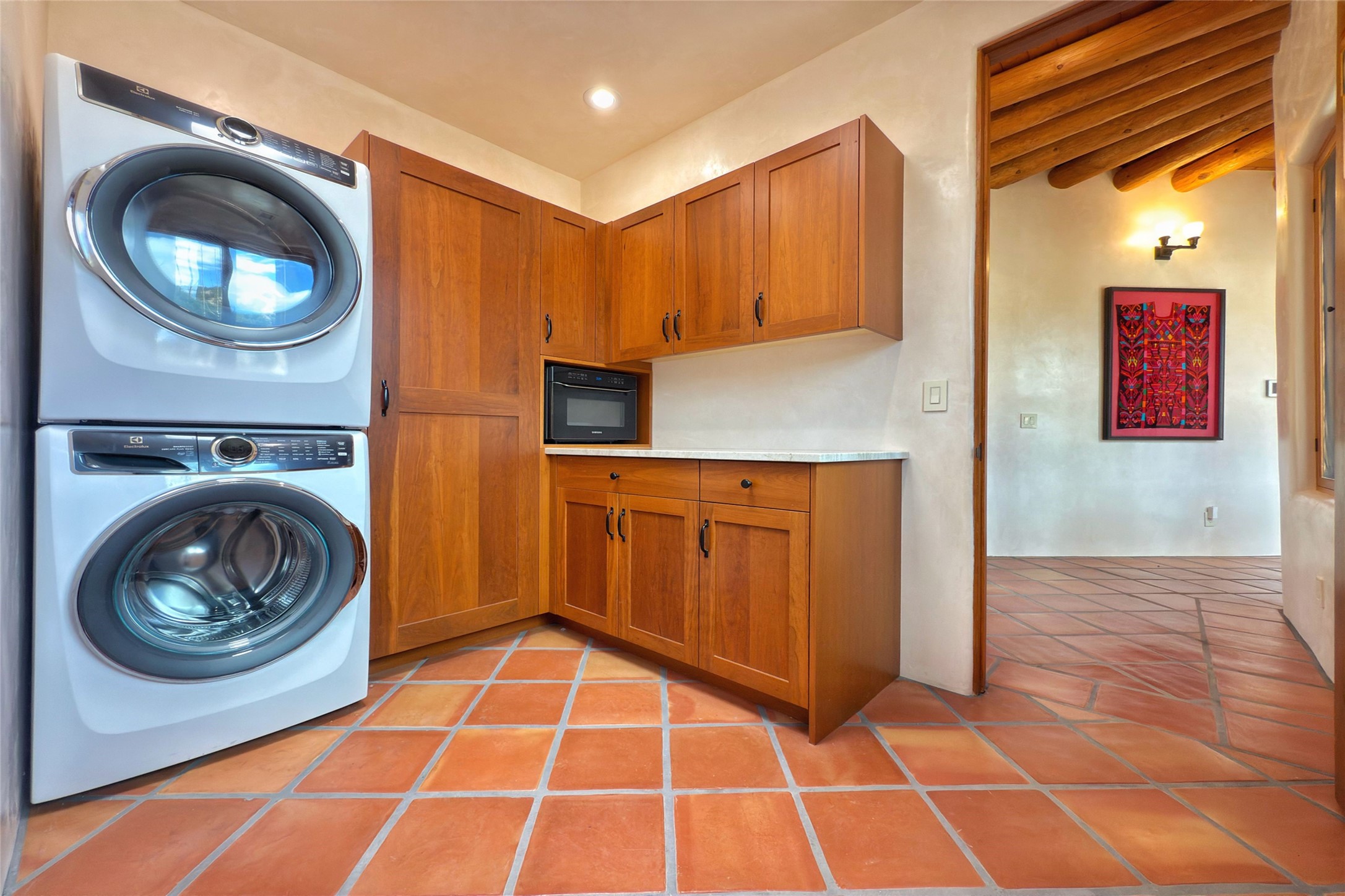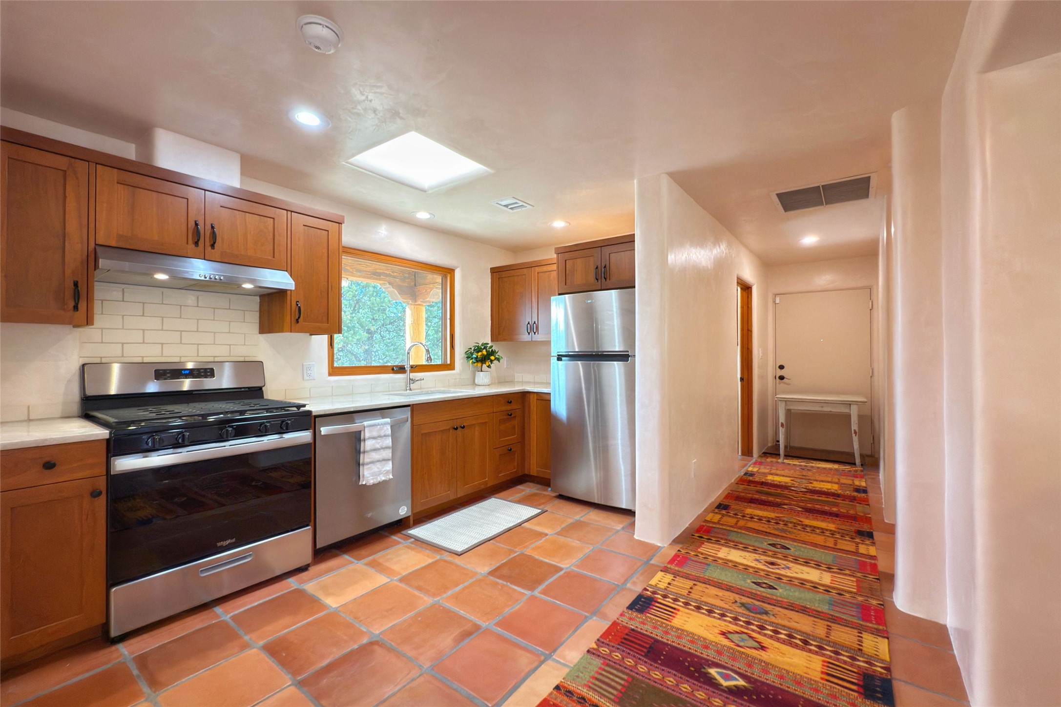 Southwest Elegance Meets Modern Luxury - Tesuque Estate Near Santa FeExperience timeless charm and refined upgrades in this exceptional Tesuque estate just 15 minutes from downtown Santa Fe. The property includes a beautifully renovated main house, a private guesthouse, and a versatile third structure ideal as a studio, barn, or additional guest quarters.The main residence showcases superior craftsmanship with diamond plaster walls, Loewen windows and doors, and Saltillo tile floors. The chef's kitchen features SubZero and Wolf appliances, an Asko dishwasher, an imported porcelain farmhouse sink, and striking Taj Mahal quartz countertops. The great room impresses with soaring ceilings, dual chandeliers, a wood-burning fireplace, and expansive western views, flowing onto two covered flagstone patios--perfect for indoor-outdoor living.The primary suite offers a luxurious retreat with its own fireplace, a spa-like bath with soaking tub, walk-in shower, dual pedestal sinks, and an adjacent study with fireplace and patio access. Two additional bedrooms complete the home--one with ensuite bath, the other with access to a nearby half bath. Comforts include radiant floor heating and central A/C.The guesthouse offers two bedrooms and two baths, with upgrades mirroring the main home: diamond plaster walls, quartz countertops, radiant heating, central A/C, and Loewen windows. Its primary suite features a kiva fireplace, soaking tub, and walk-in shower, while the second bedroom enjoys tranquil western views. A cozy living/dining area with kiva fireplace and a private flagstone patio complete the space.Set on a beautifully landscaped lot with mature junipers, fenced areas, and irrigated gardens, this private estate offers peace and elegance just minutes from the heart of Santa Fe.