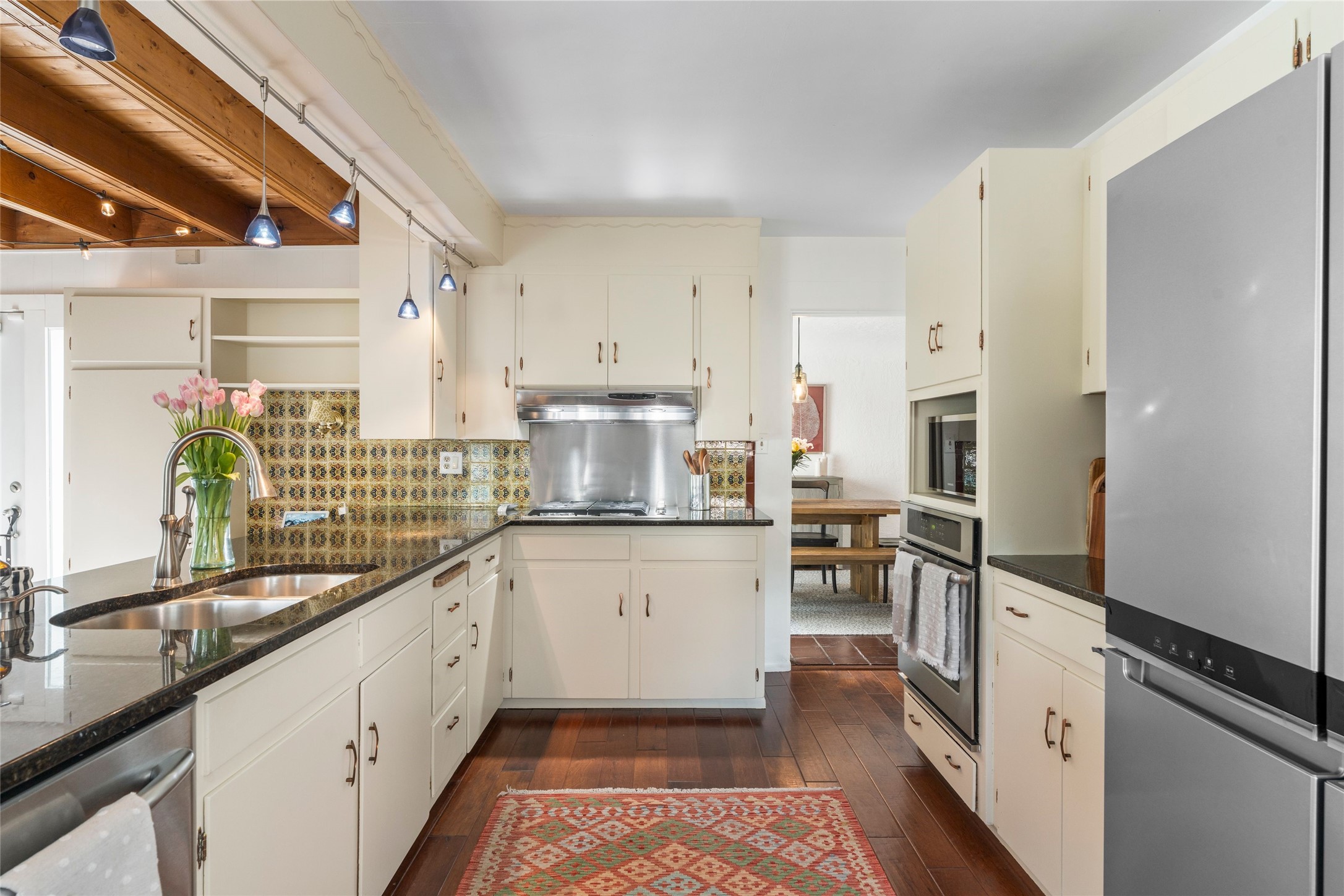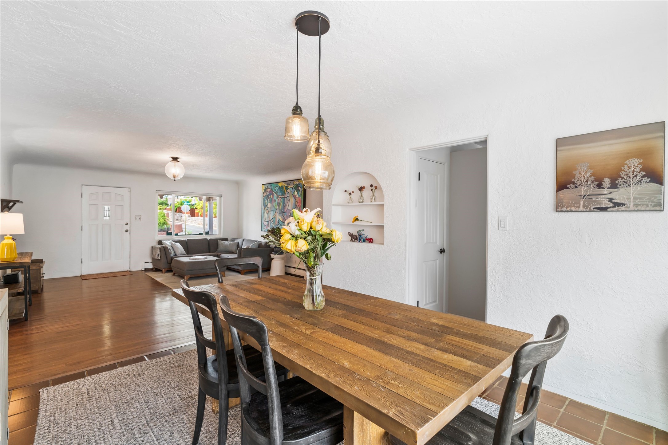 Centrally located in this quiet South Capitol neighborhood, this chic and updated 2,470 sq.ft., two-story single family home is situated on a quiet street with a large landscaped lot and updated interior finishes throughout the home. There are are a total of 3 bedrooms and 3 bathrooms (two bedrooms/1 full bathroom at the entry level, and 1 bedroom and 2 baths on the lower level). The open-concept living/dining room look out onto treed and landscaped views with private walled and gated outdoor space, perfect for seasonal living and plenty of room for entertaining. The nearby kitchen with bar seating, stainless appliances, and granite countertops has another family room adjacent to it with upper deck access and treetop views. A wood burning kiva fireplace centers this living area with an additional kiva wood-burning fireplace in the formal entry living room. Downstairs, a third living area could function as a private guest quarters with its own access, or a flex space/office perfect for growing family or professionals needing additional work space. The home has large view windows, bathing the spaces in natural light. Wood and tile floors cascade throughout adding to the organic warmth of the home. The large back yard has a bubbling fountain, in-ground trampoline and grassed area, ideal for entertaining or quiet privacy. A direct access 1-car oversized garage and off-street parking comes with the property. Accessibility to the downtown and midtown area is what makes this lovingly maintained property an ideal location to call home.