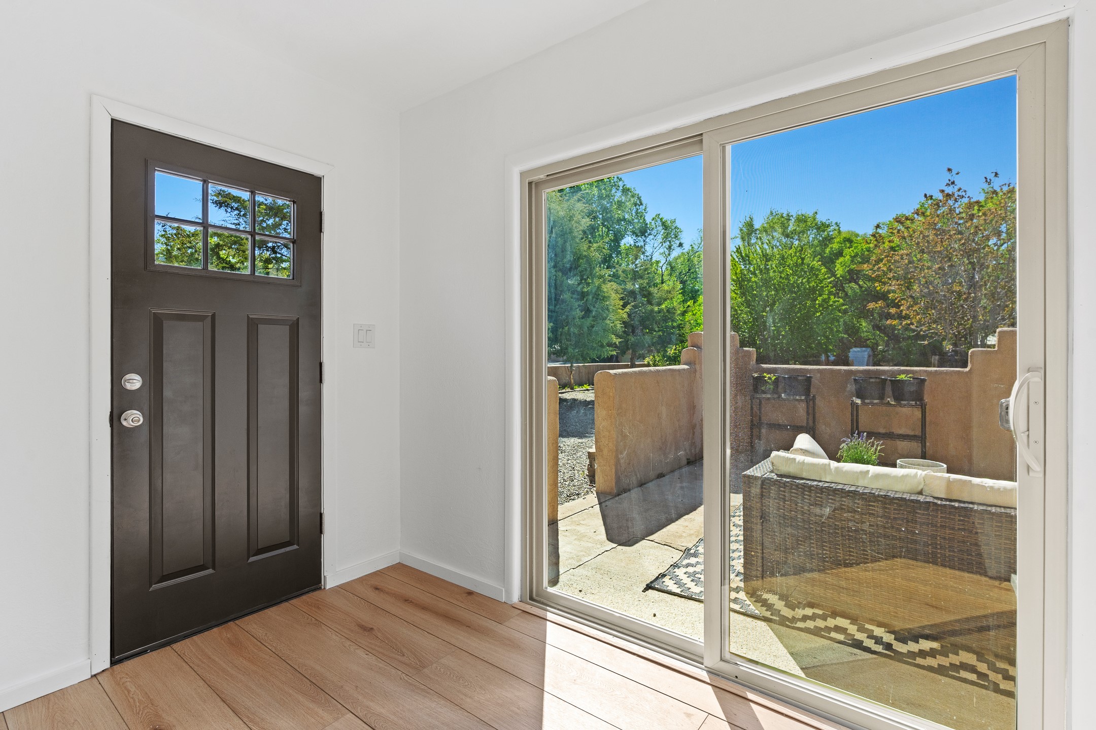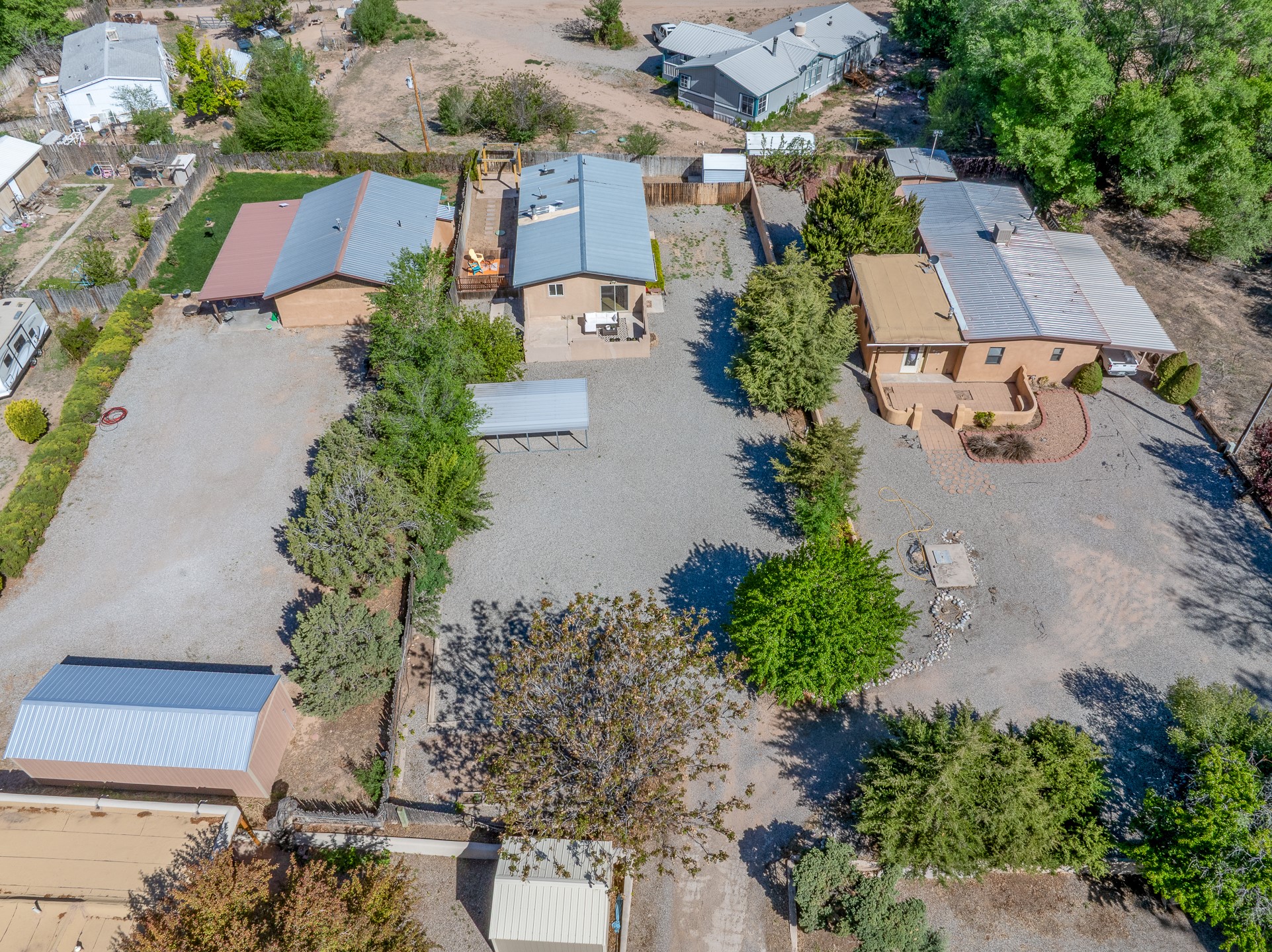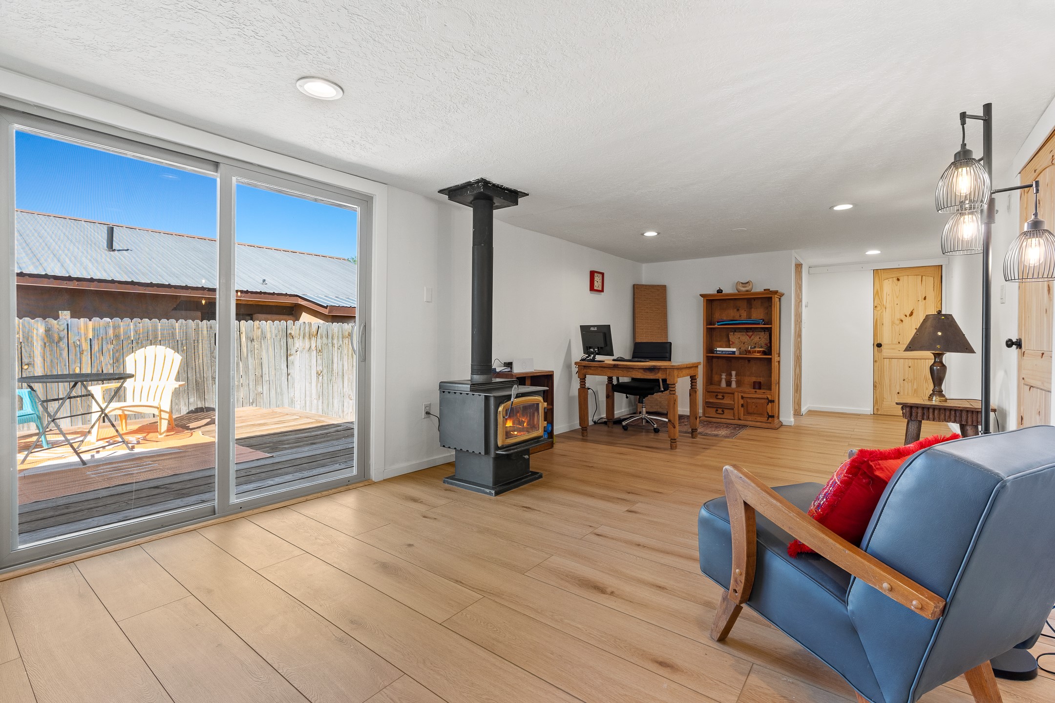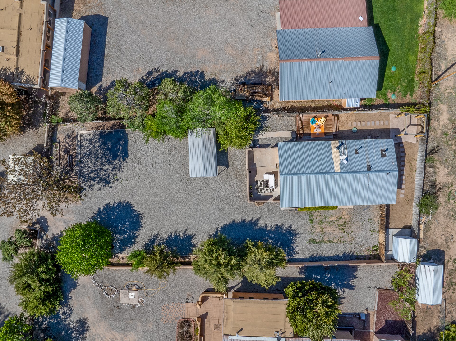 Tucked away in the tranquil beauty of Nambe, this recently renovated 1-bedroom, 1.5-bath home has 1,150 square feet of thoughtfully updated living space and is ideal for anyone seeking peace, privacy, and a connection to the land. Step inside to discover a host of modern upgrades including new flooring, doors, appliances, and efficient mini-split heating and cooling systems. A cozy wood-burning stove adds rustic charm and warmth for the cooler months. The home's layout is open and inviting, ideal for both relaxed living and casual entertaining. Outdoors, enjoy two dedicated entertaining areas perfect for dining under the stars or soaking in the serene surroundings. The fully fenced backyard provides privacy and space for pets or gardening. Green thumbs will appreciate the numerous fruit trees scattered throughout the property, apricot, apple, and cherry. This home proudly boasts a private well and additional surface water rights supplied by the nearby acequia, ensuring a sustainable and reliable water supply. Whether you're looking for a full-time residence, a peaceful retreat, or a smart investment, this Namb gem is ready to welcome you home.