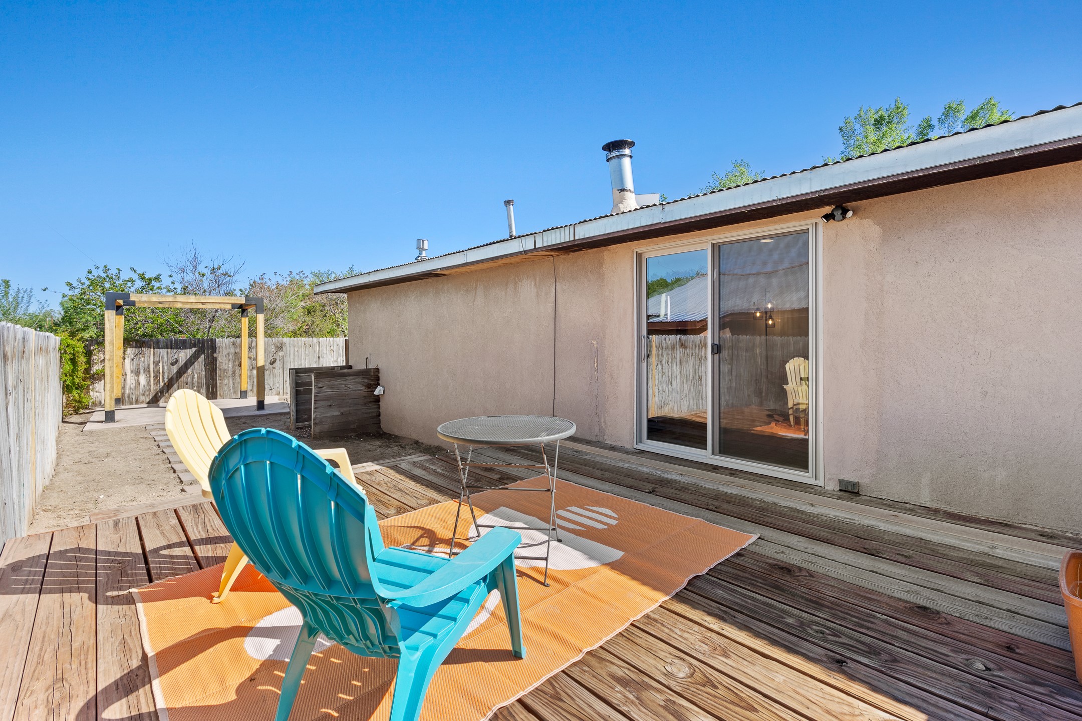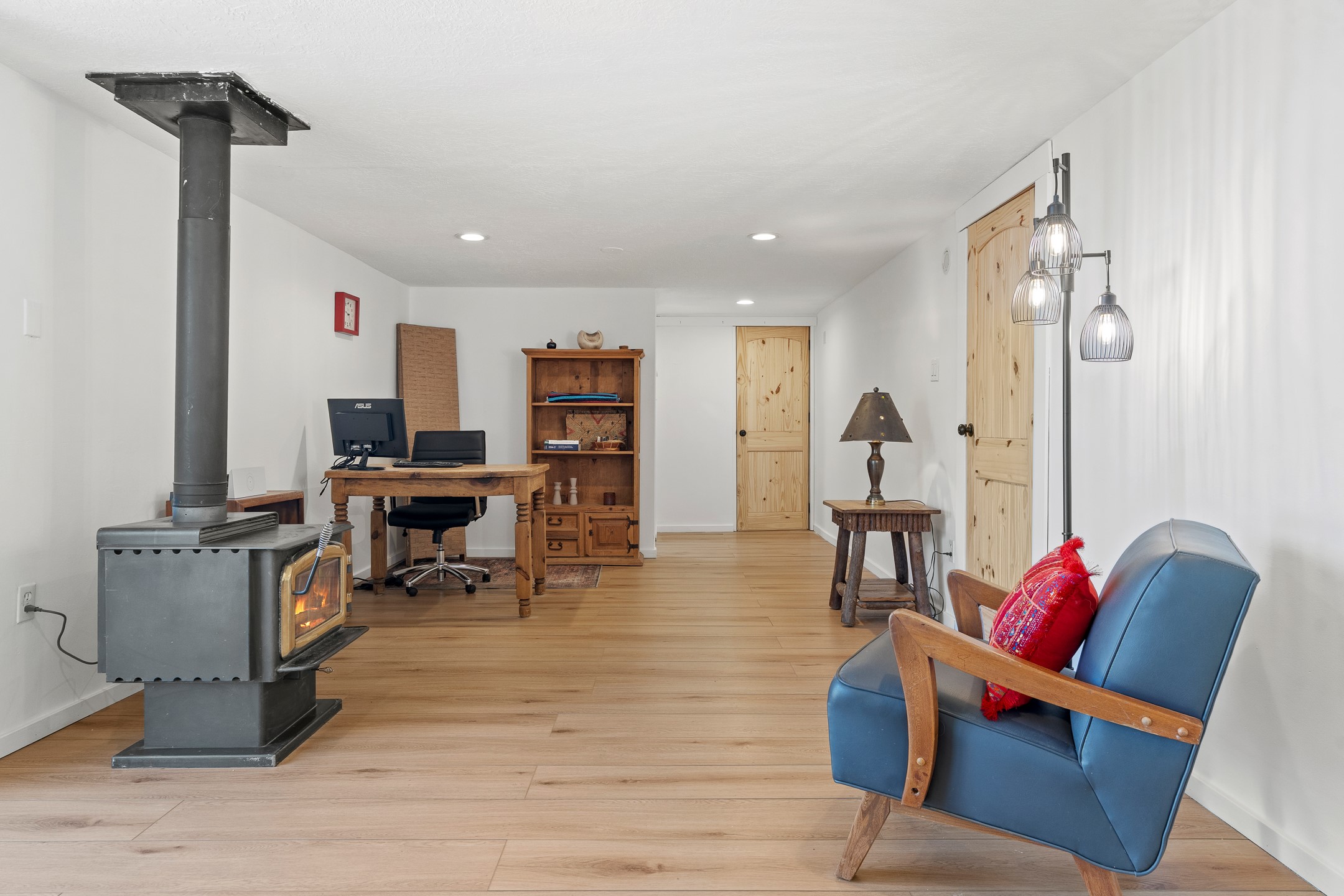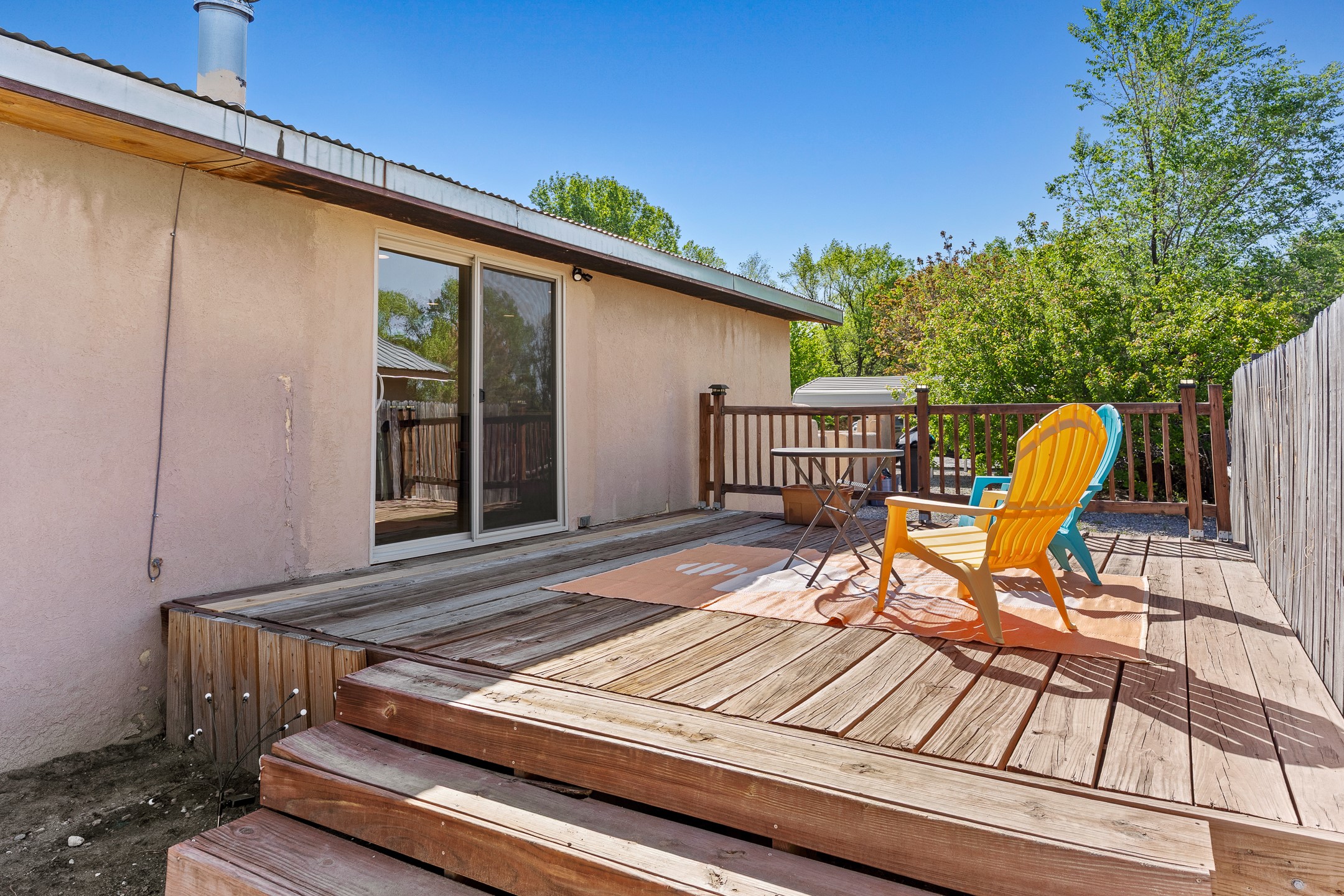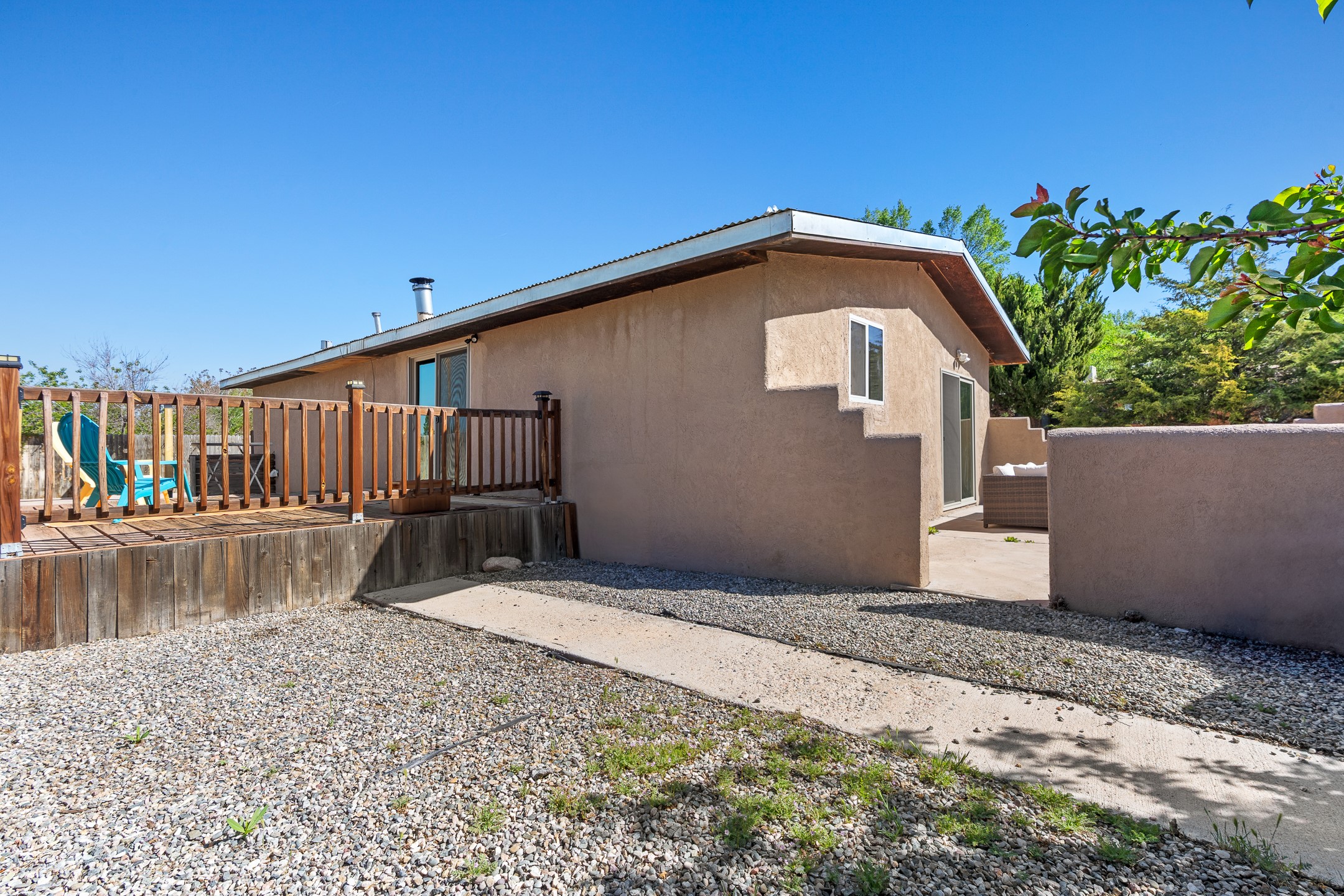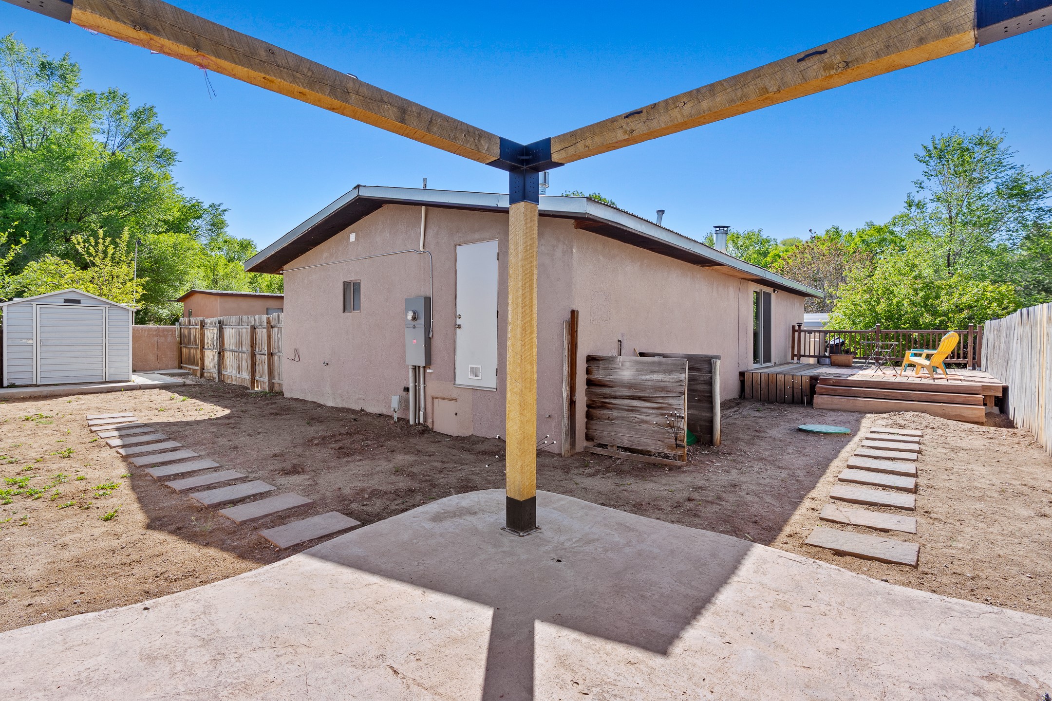 Tucked away in the tranquil beauty of Nambe, this recently renovated 1-bedroom, 1.5-bath home has 1,150 square feet of thoughtfully updated living space and is ideal for anyone seeking peace, privacy, and a connection to the land. Step inside to discover a host of modern upgrades including new flooring, doors, appliances, and efficient mini-split heating and cooling systems. A cozy wood-burning stove adds rustic charm and warmth for the cooler months. The home's layout is open and inviting, ideal for both relaxed living and casual entertaining. Outdoors, enjoy two dedicated entertaining areas perfect for dining under the stars or soaking in the serene surroundings. The fully fenced backyard provides privacy and space for pets or gardening. Green thumbs will appreciate the numerous fruit trees scattered throughout the property, apricot, apple, and cherry. This home proudly boasts a private well and additional surface water rights supplied by the nearby acequia, ensuring a sustainable and reliable water supply. Whether you're looking for a full-time residence, a peaceful retreat, or a smart investment, this Namb gem is ready to welcome you home.