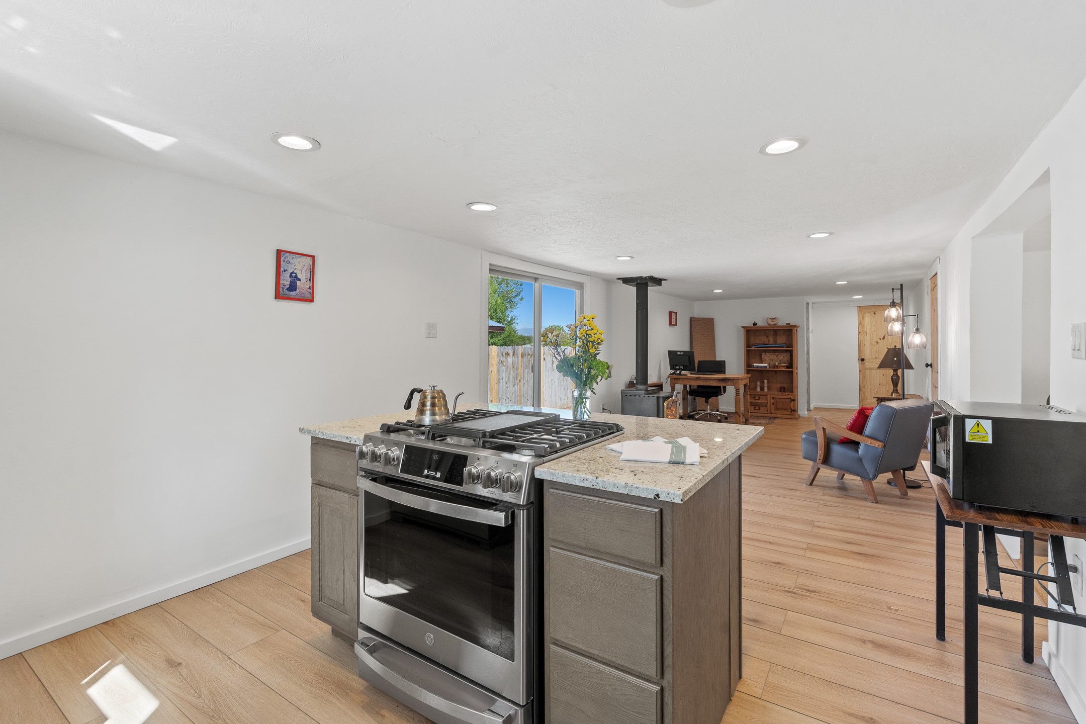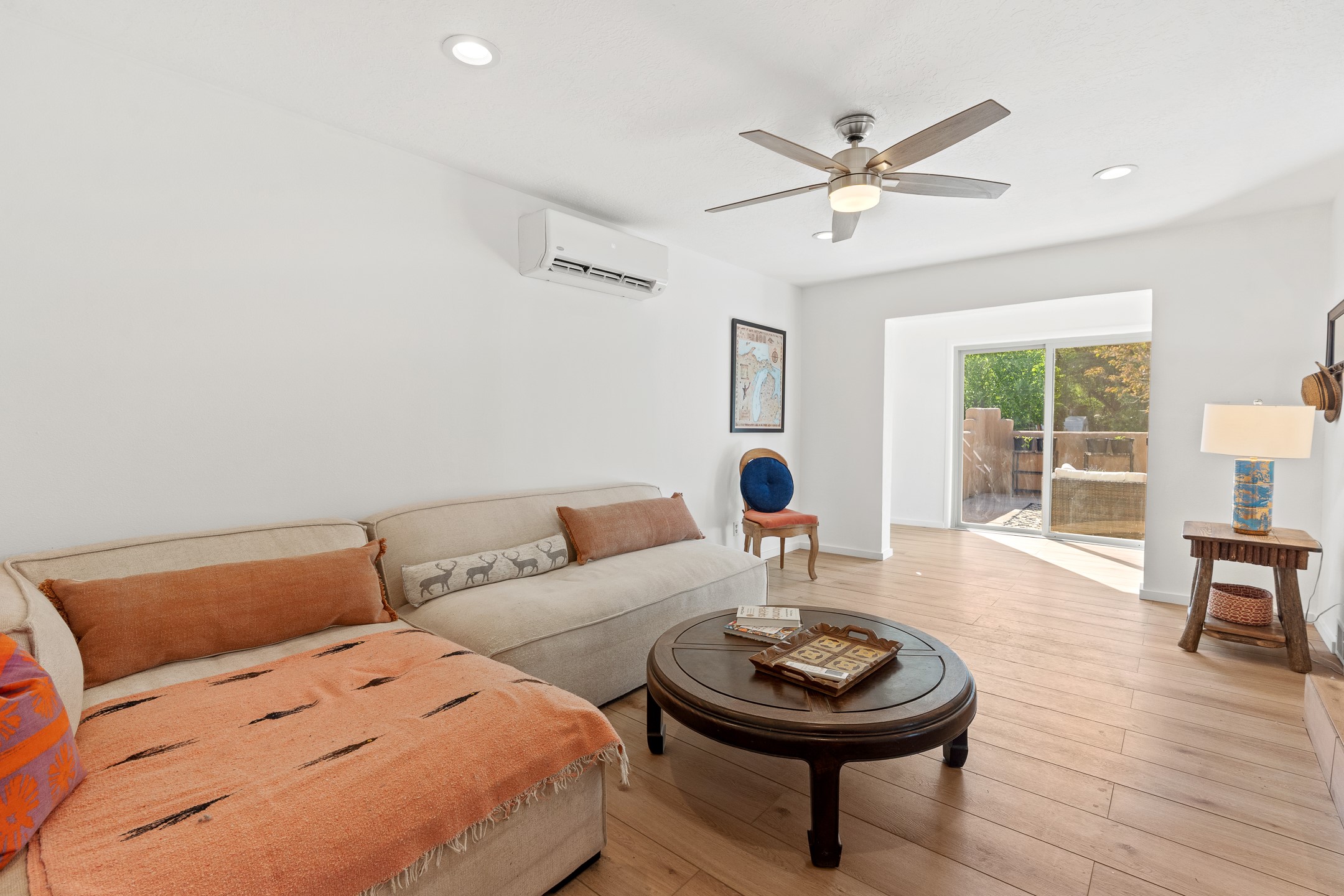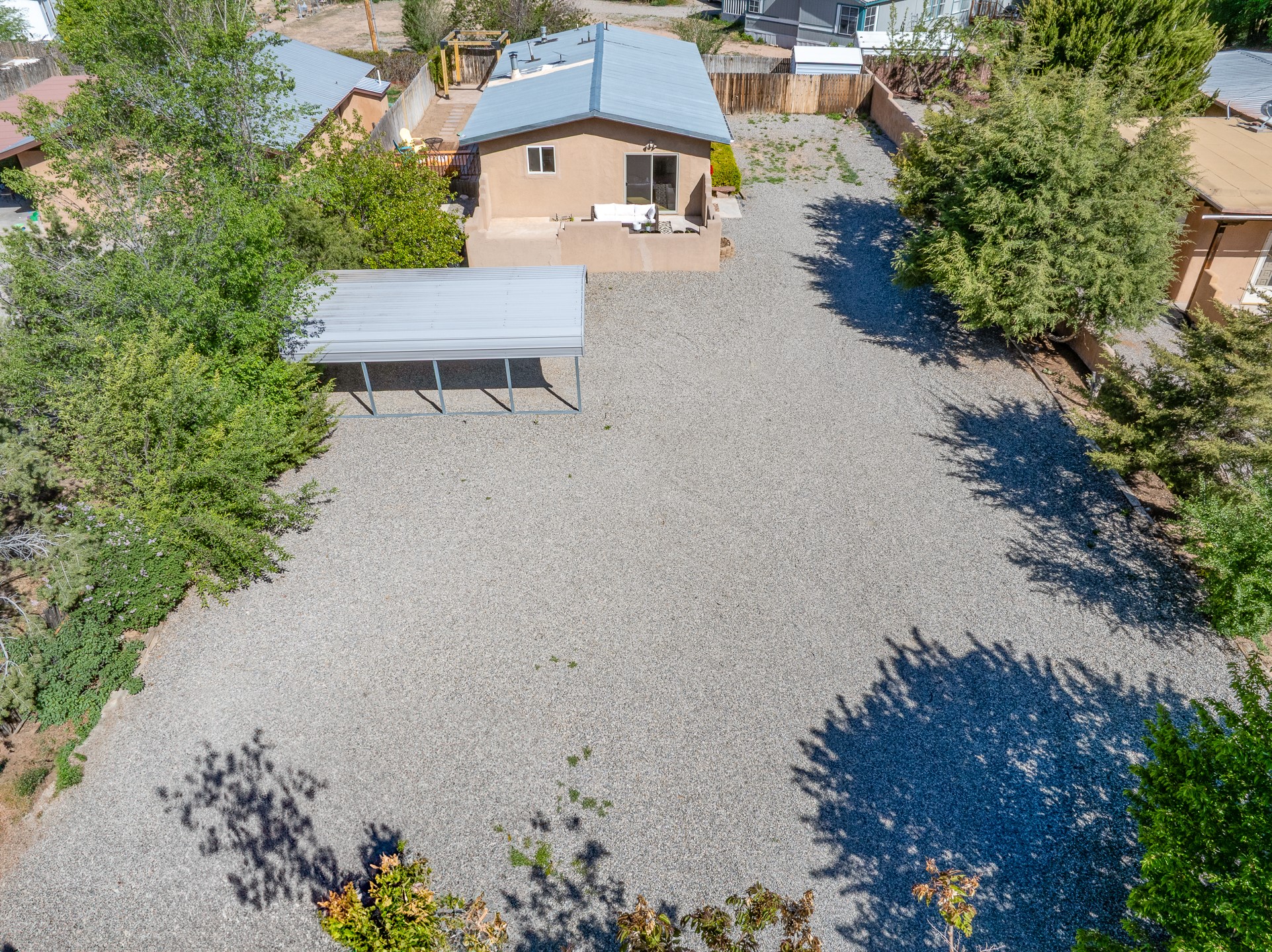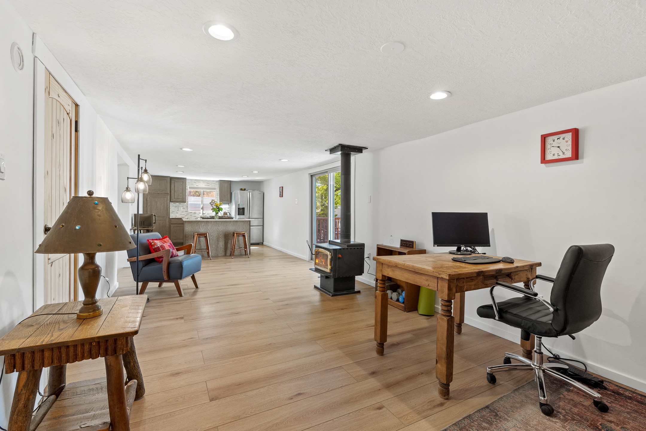 Tucked away in the tranquil beauty of Nambe, this recently renovated 1-bedroom, 1.5-bath home has 1,150 square feet of thoughtfully updated living space and is ideal for anyone seeking peace, privacy, and a connection to the land. Step inside to discover a host of modern upgrades including new flooring, doors, appliances, and efficient mini-split heating and cooling systems. A cozy wood-burning stove adds rustic charm and warmth for the cooler months. The home's layout is open and inviting, ideal for both relaxed living and casual entertaining. Outdoors, enjoy two dedicated entertaining areas perfect for dining under the stars or soaking in the serene surroundings. The fully fenced backyard provides privacy and space for pets or gardening. Green thumbs will appreciate the numerous fruit trees scattered throughout the property, apricot, apple, and cherry. This home proudly boasts a private well and additional surface water rights supplied by the nearby acequia, ensuring a sustainable and reliable water supply. Whether you're looking for a full-time residence, a peaceful retreat, or a smart investment, this Namb gem is ready to welcome you home.