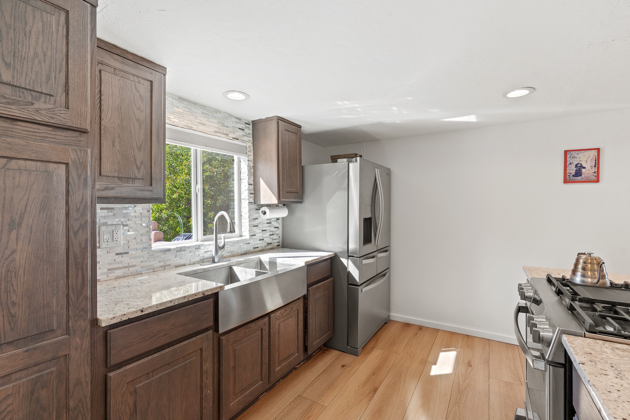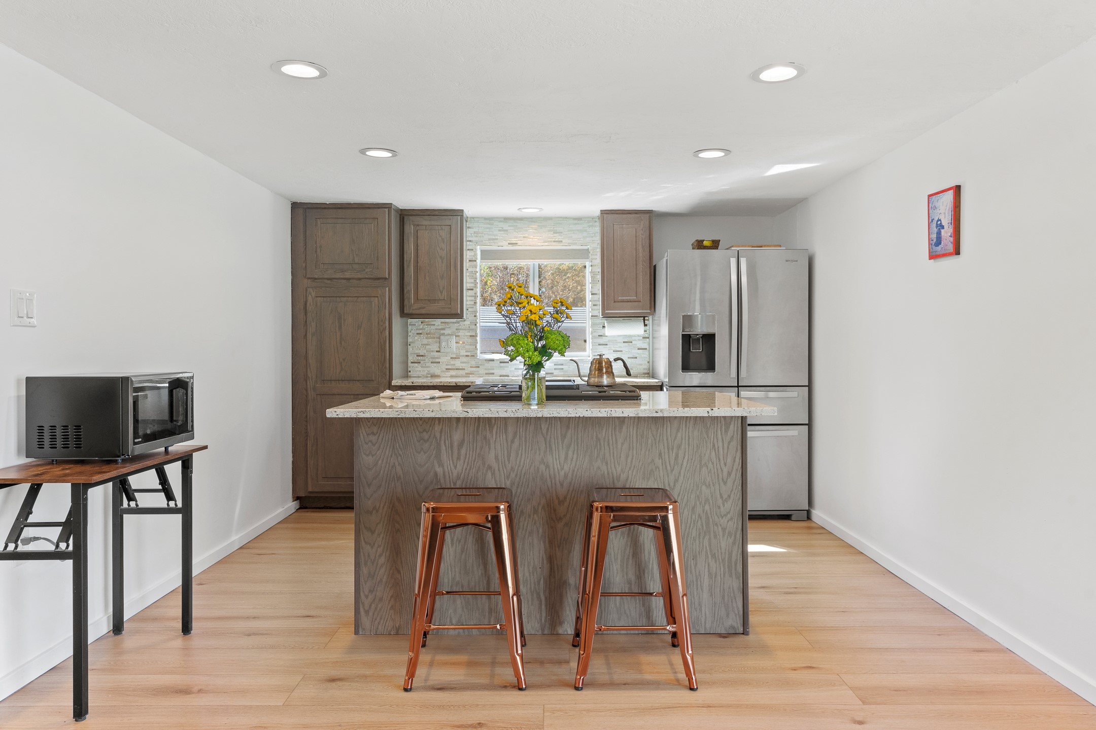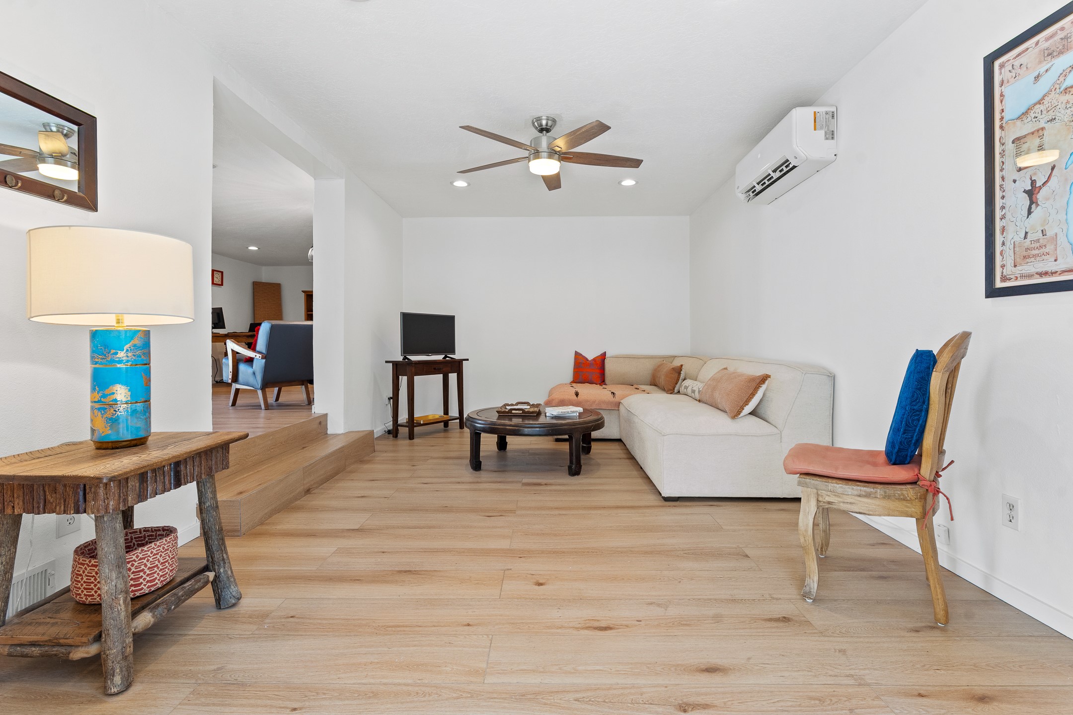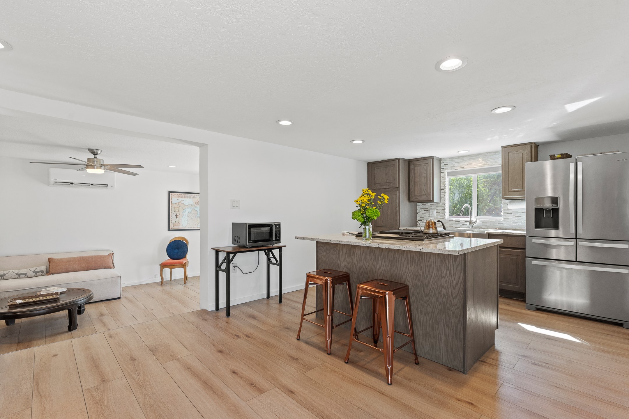 Tucked away in the tranquil beauty of Nambe, this recently renovated 1-bedroom, 1.5-bath home has 1,150 square feet of thoughtfully updated living space and is ideal for anyone seeking peace, privacy, and a connection to the land. Step inside to discover a host of modern upgrades including new flooring, doors, appliances, and efficient mini-split heating and cooling systems. A cozy wood-burning stove adds rustic charm and warmth for the cooler months. The home's layout is open and inviting, ideal for both relaxed living and casual entertaining. Outdoors, enjoy two dedicated entertaining areas perfect for dining under the stars or soaking in the serene surroundings. The fully fenced backyard provides privacy and space for pets or gardening. Green thumbs will appreciate the numerous fruit trees scattered throughout the property, apricot, apple, and cherry. This home proudly boasts a private well and additional surface water rights supplied by the nearby acequia, ensuring a sustainable and reliable water supply. Whether you're looking for a full-time residence, a peaceful retreat, or a smart investment, this Namb gem is ready to welcome you home.