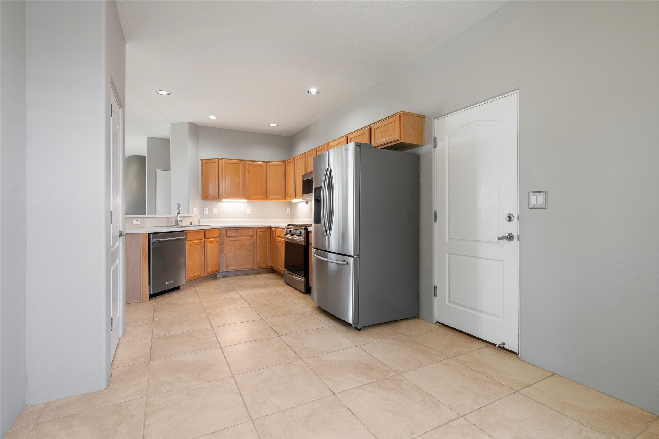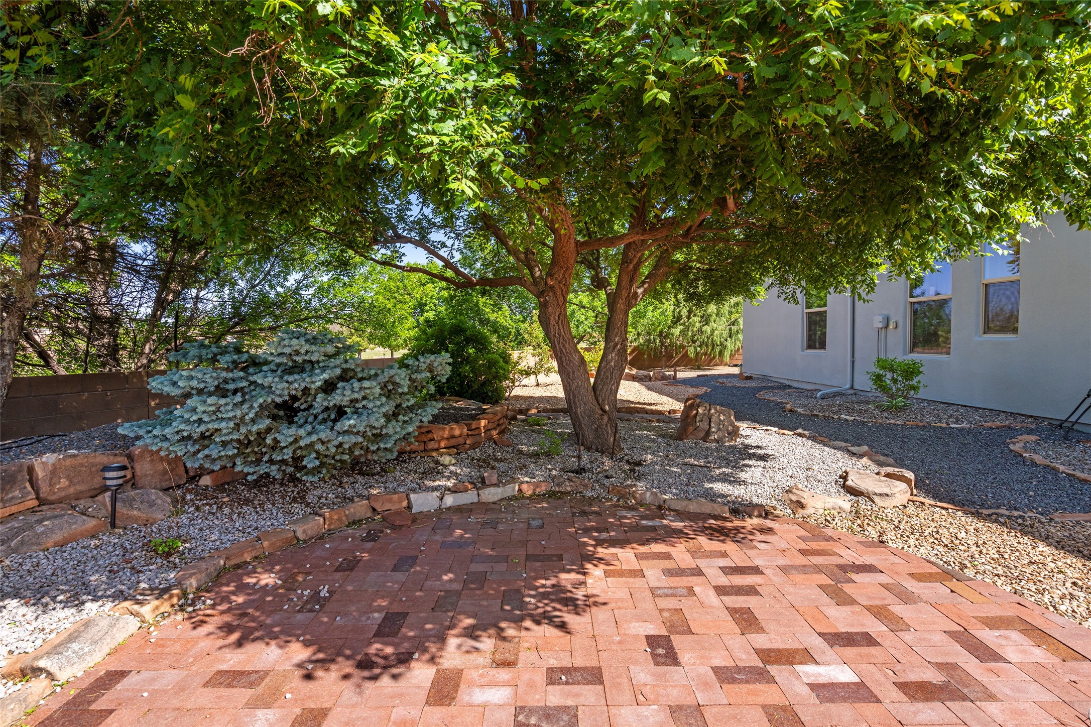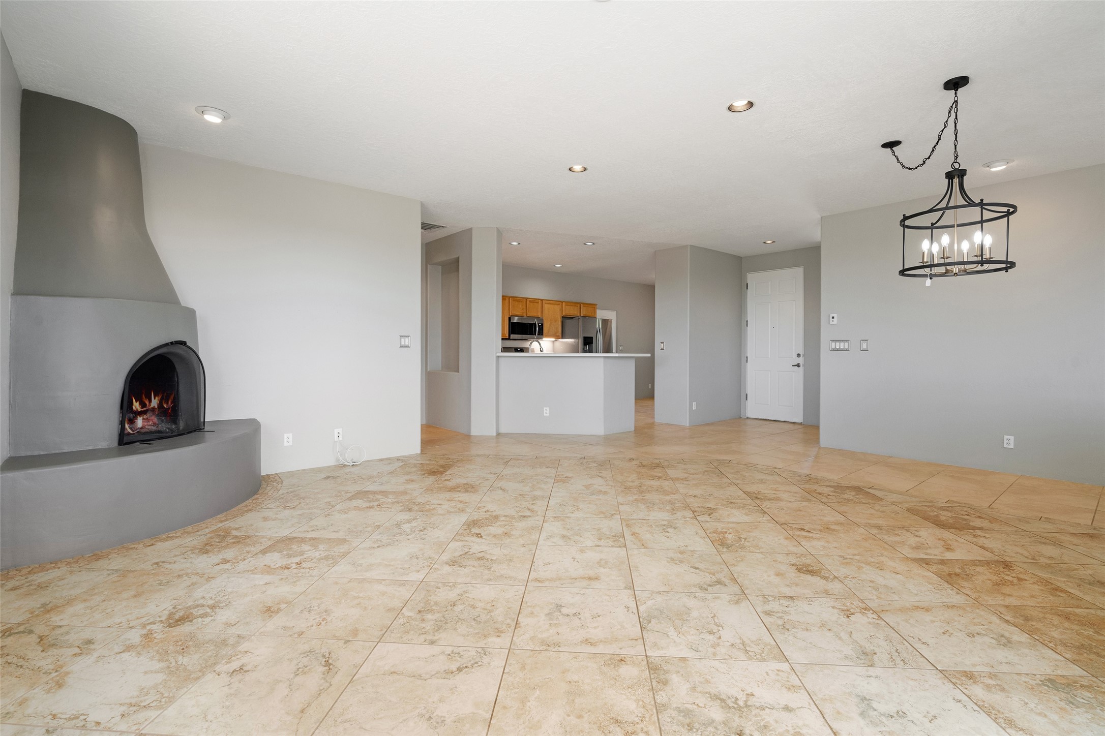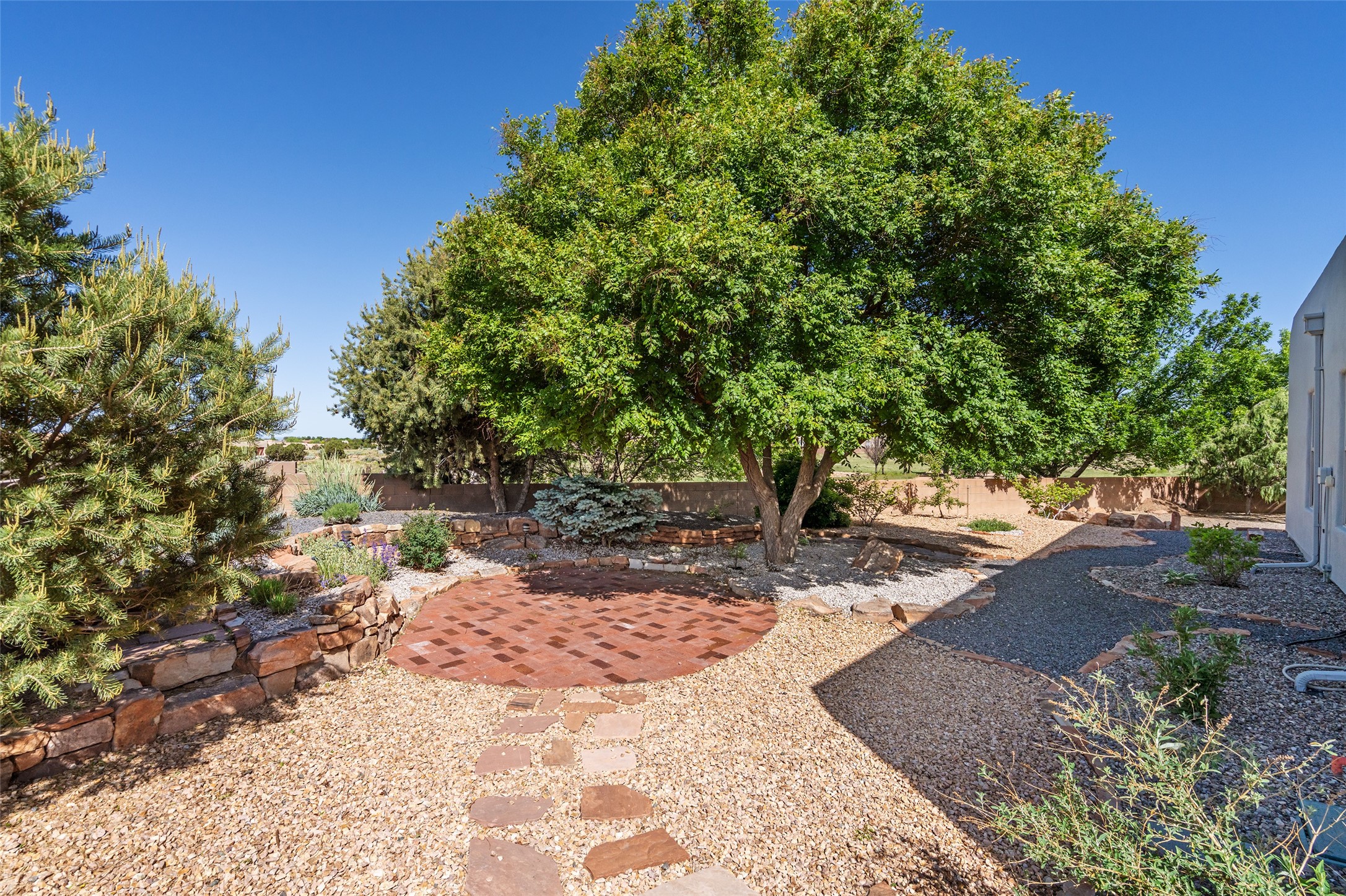 Enjoy panoramic views of the Ortiz and Sandia Mountains from this beautifully maintained single-level home in the sought-after community of Rancho Viejo. Thoughtfully designed for comfort and versatility, and painted to exude a contemporary flair, this open-concept residence features stylish tiled floors, a cozy kiva wood-burning fireplace, and abundant natural light throughout. The private primary suite is a true retreat, offering a fully updated bathroom with a stunning tiled walk-in shower, dual vanities, and a spacious walk-in closet. On the opposite side of the home, two additional bedrooms share a well-appointed guest bath--one of which makes an ideal home office or creative space. A flexible den just off the main living area provides additional options as a media room, formal dining space, hobby area, or second office--customize it to suit your lifestyle. Outside, the beautifully landscaped lot showcases native plants, mature trees, flowering rose bushes, and lovely flagstone patios and stone walkways. With no neighbors directly behind the home and views of a large community park and estate lots, the setting offers peace, privacy, and an exceptional sense of space. Rancho Viejo is a vibrant community offering over 15 miles of paved walking trails, several community parks, and well-maintained open spaces--all just 20 minutes from the Santa Fe Plaza. Dining, shopping, and daily conveniences are just minutes away. Don't miss the opportunity to own this serene and stylish home with unmatched views--schedule your showing today!
