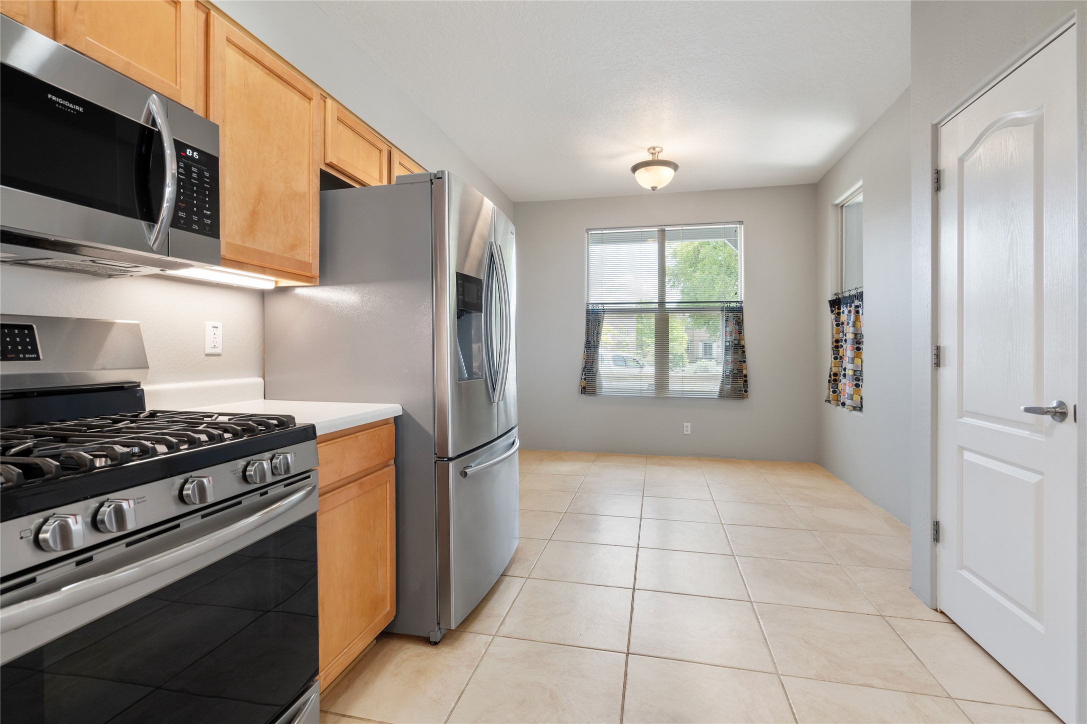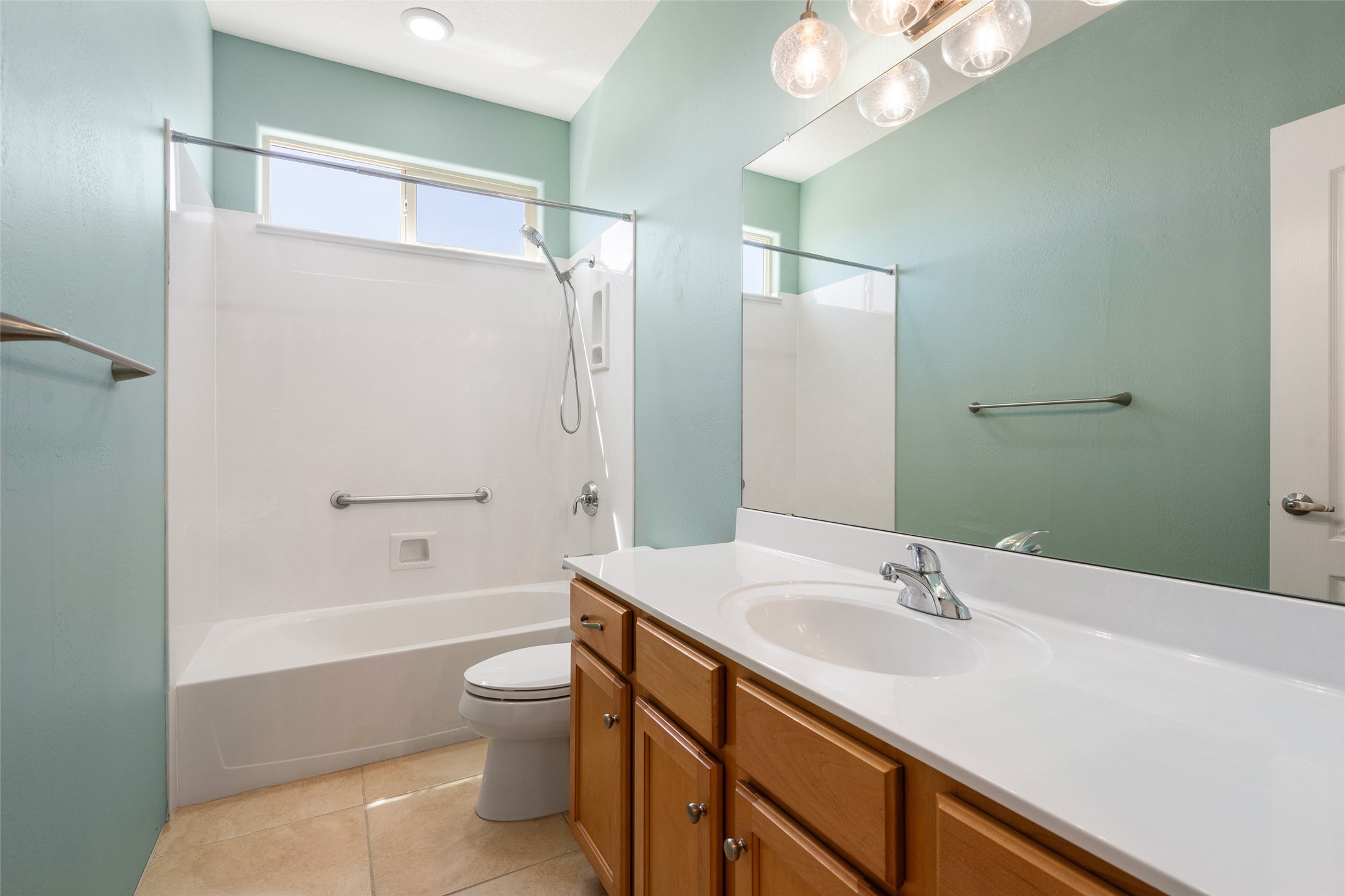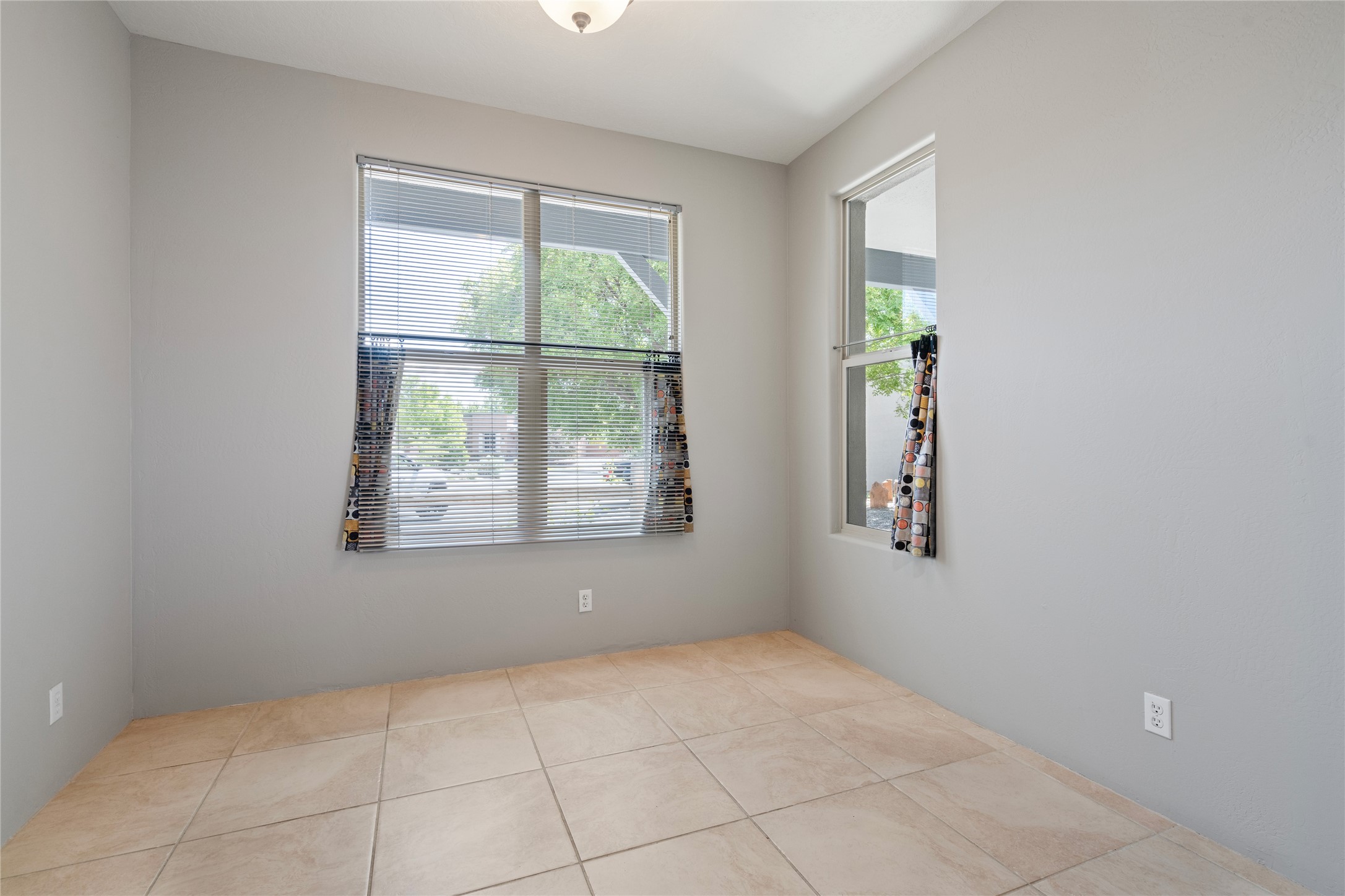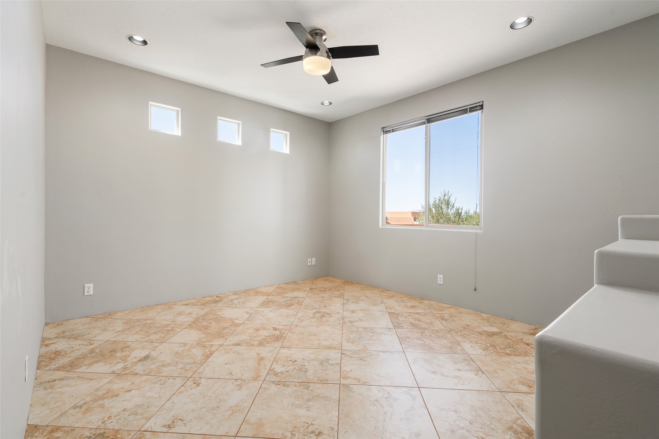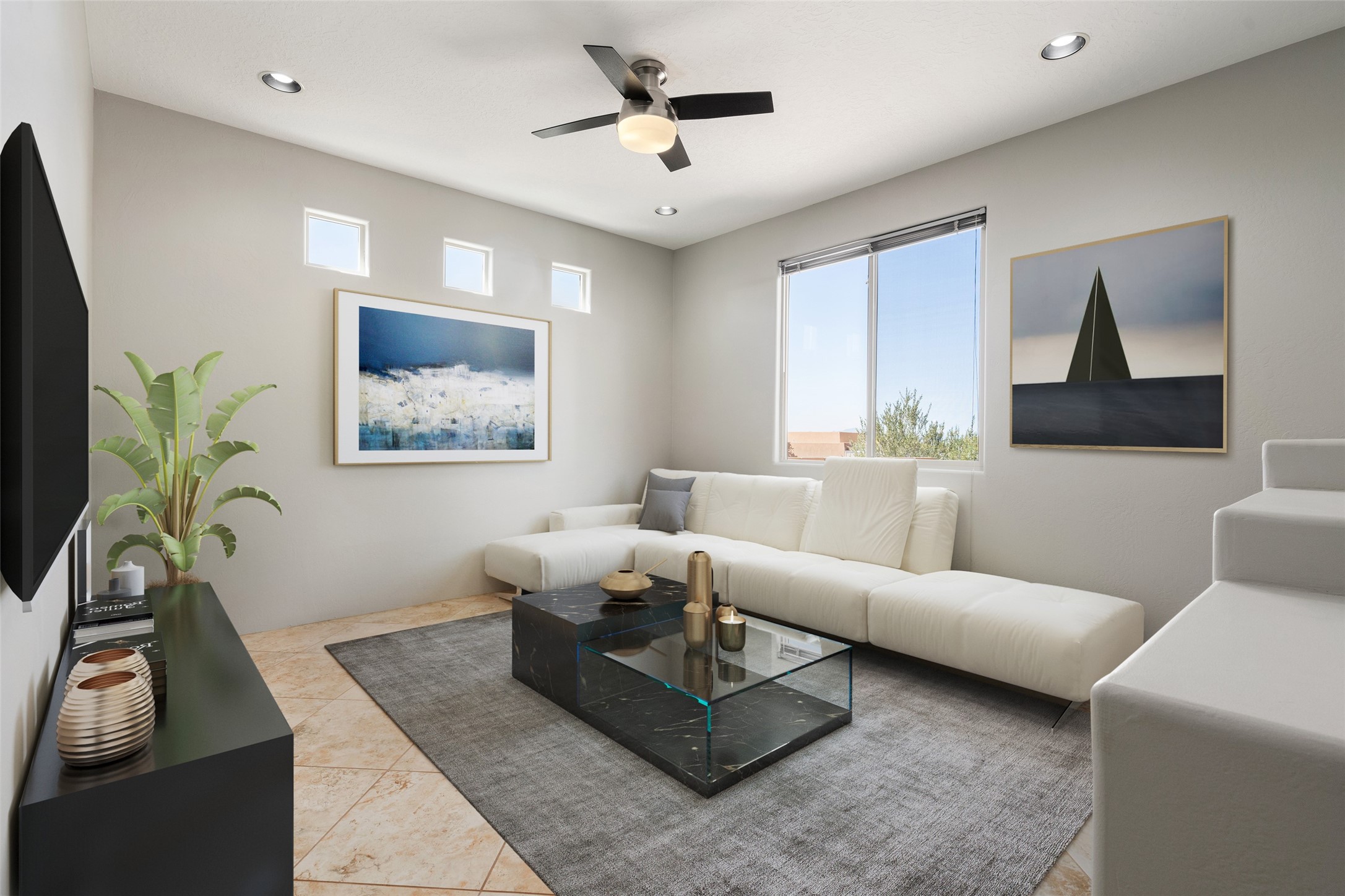 Enjoy panoramic views of the Ortiz and Sandia Mountains from this beautifully maintained single-level home in the sought-after community of Rancho Viejo. Thoughtfully designed for comfort and versatility, and painted to exude a contemporary flair, this open-concept residence features stylish tiled floors, a cozy kiva wood-burning fireplace, and abundant natural light throughout. The private primary suite is a true retreat, offering a fully updated bathroom with a stunning tiled walk-in shower, dual vanities, and a spacious walk-in closet. On the opposite side of the home, two additional bedrooms share a well-appointed guest bath--one of which makes an ideal home office or creative space. A flexible den just off the main living area provides additional options as a media room, formal dining space, hobby area, or second office--customize it to suit your lifestyle. Outside, the beautifully landscaped lot showcases native plants, mature trees, flowering rose bushes, and lovely flagstone patios and stone walkways. With no neighbors directly behind the home and views of a large community park and estate lots, the setting offers peace, privacy, and an exceptional sense of space. Rancho Viejo is a vibrant community offering over 15 miles of paved walking trails, several community parks, and well-maintained open spaces--all just 20 minutes from the Santa Fe Plaza. Dining, shopping, and daily conveniences are just minutes away. Don't miss the opportunity to own this serene and stylish home with unmatched views--schedule your showing today!