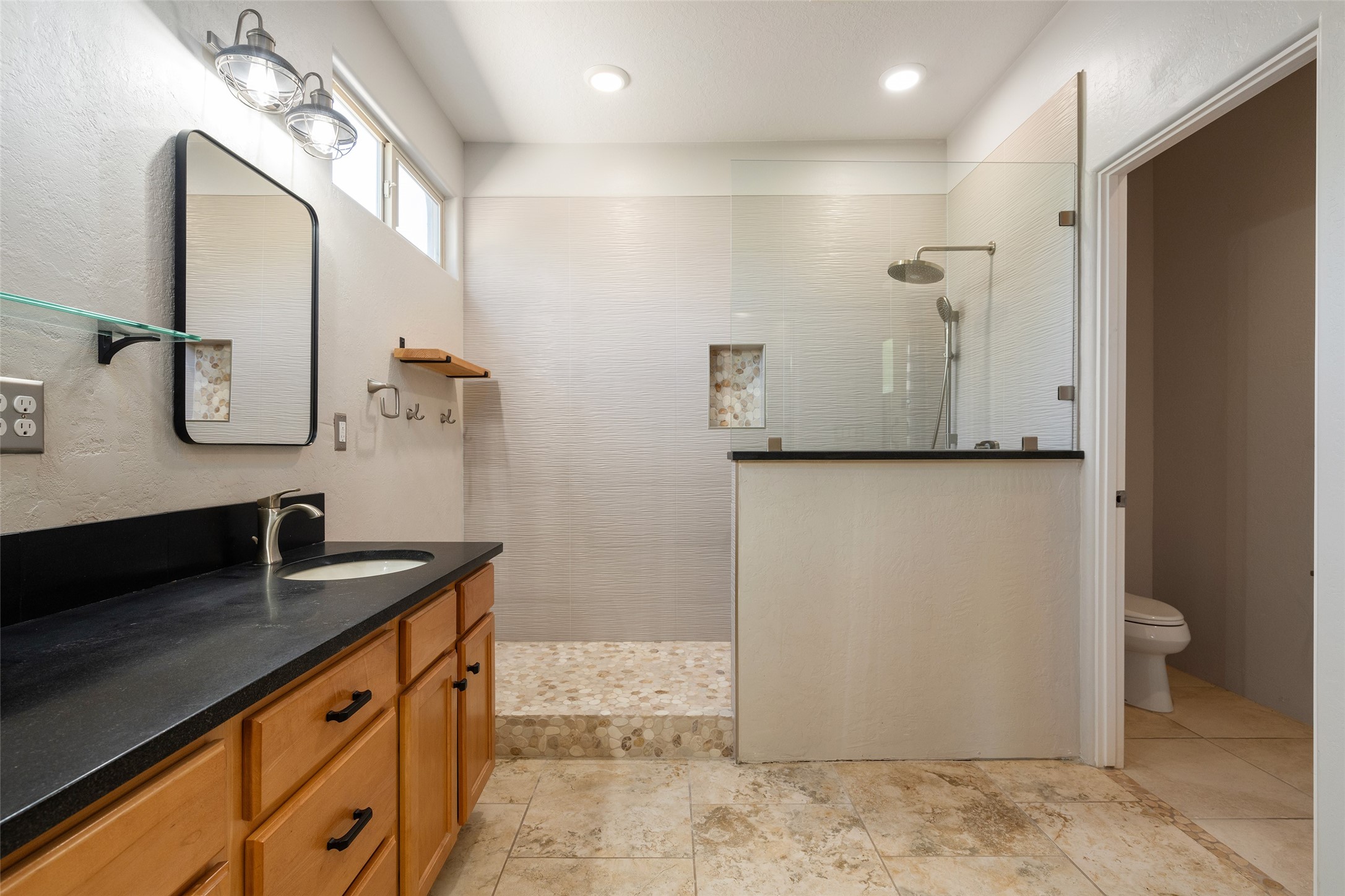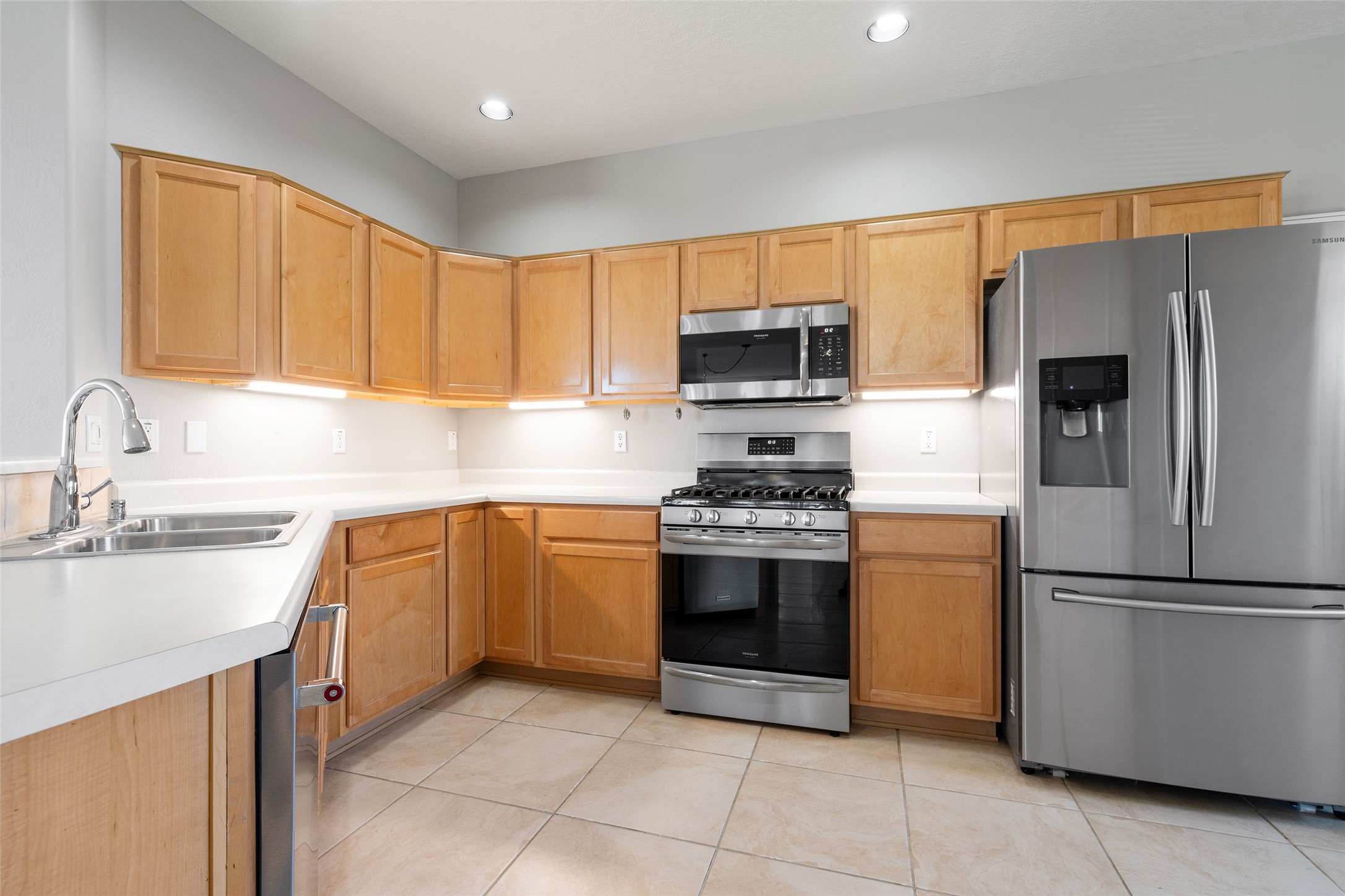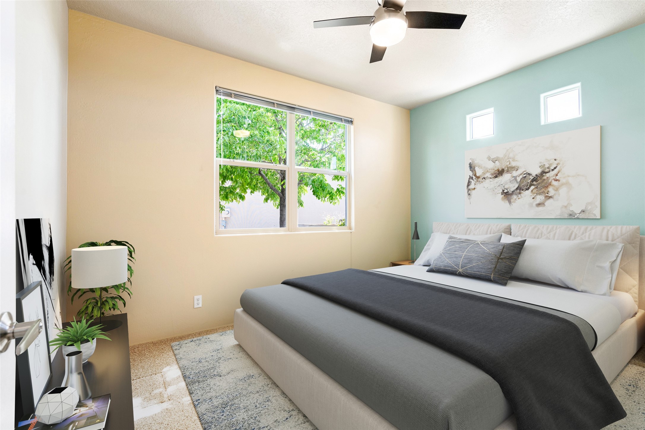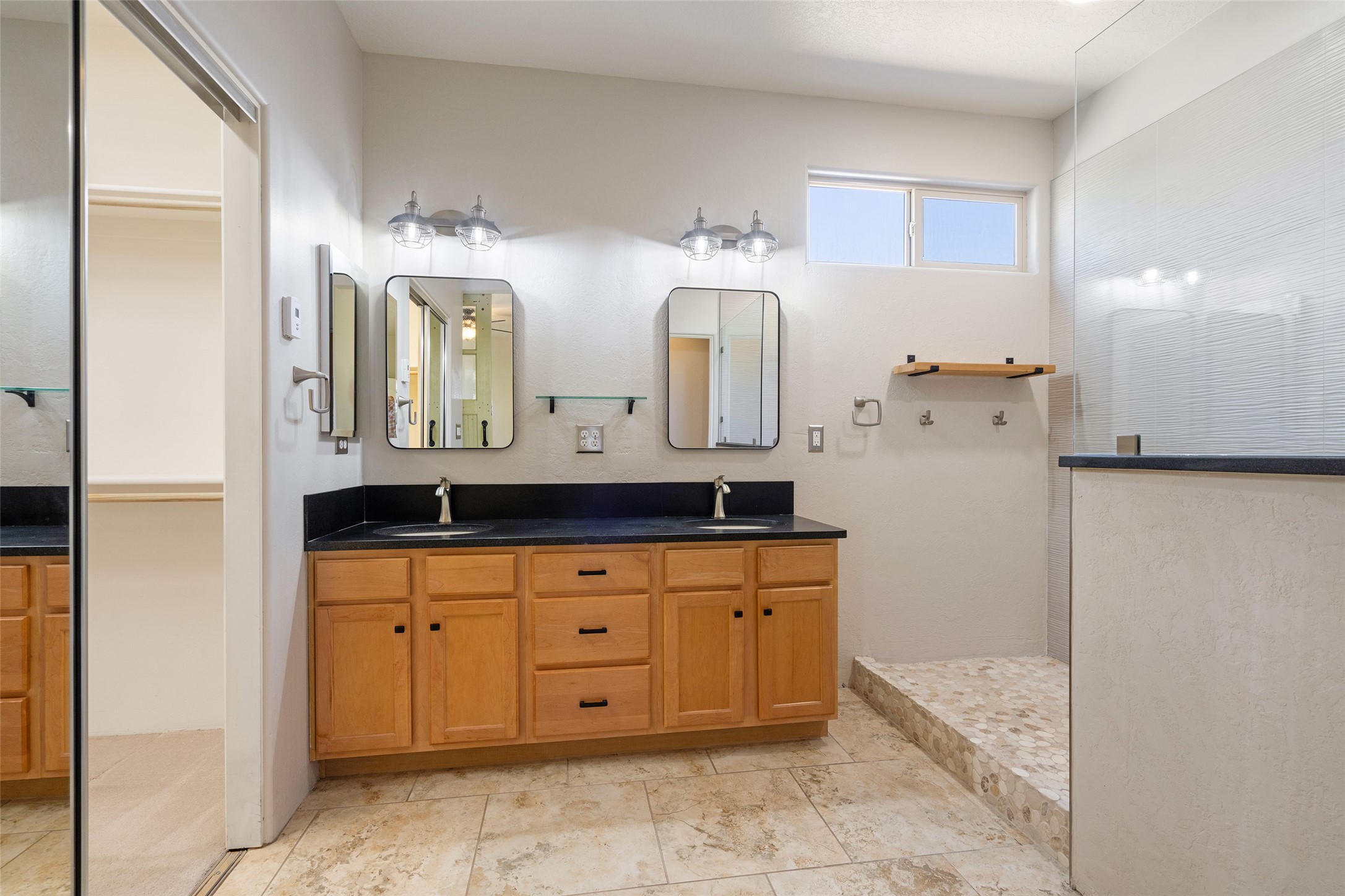 Enjoy panoramic views of the Ortiz and Sandia Mountains from this beautifully maintained single-level home in the sought-after community of Rancho Viejo. Thoughtfully designed for comfort and versatility, and painted to exude a contemporary flair, this open-concept residence features stylish tiled floors, a cozy kiva wood-burning fireplace, and abundant natural light throughout. The private primary suite is a true retreat, offering a fully updated bathroom with a stunning tiled walk-in shower, dual vanities, and a spacious walk-in closet. On the opposite side of the home, two additional bedrooms share a well-appointed guest bath--one of which makes an ideal home office or creative space. A flexible den just off the main living area provides additional options as a media room, formal dining space, hobby area, or second office--customize it to suit your lifestyle. Outside, the beautifully landscaped lot showcases native plants, mature trees, flowering rose bushes, and lovely flagstone patios and stone walkways. With no neighbors directly behind the home and views of a large community park and estate lots, the setting offers peace, privacy, and an exceptional sense of space. Rancho Viejo is a vibrant community offering over 15 miles of paved walking trails, several community parks, and well-maintained open spaces--all just 20 minutes from the Santa Fe Plaza. Dining, shopping, and daily conveniences are just minutes away. Don't miss the opportunity to own this serene and stylish home with unmatched views--schedule your showing today!