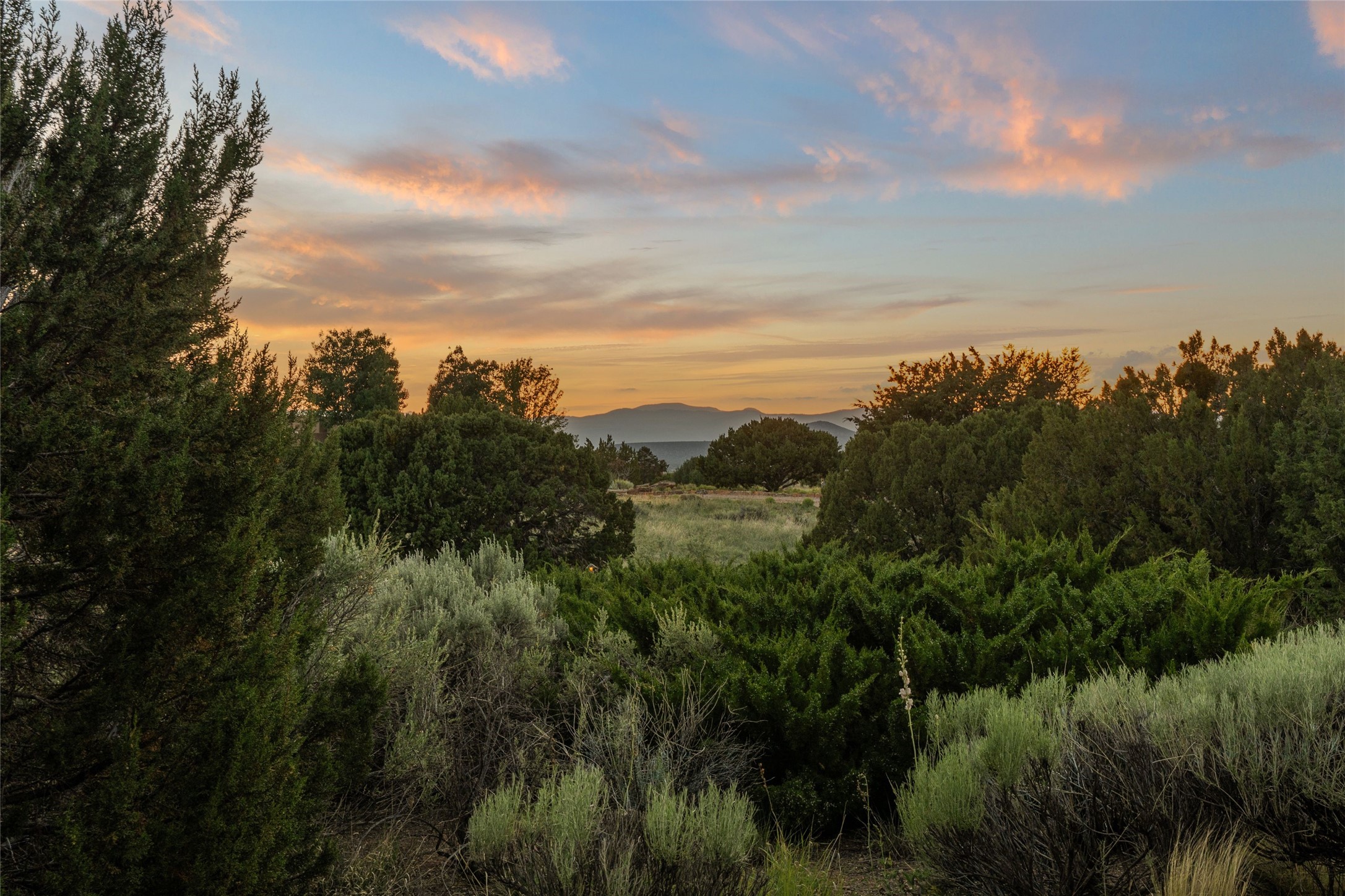 This Soft Contemporary 4-Bedroom / 3.5 Bath, Single-story home with No Steps built by locally-renowned Builder Kim Unger offers a Jemez & Sangre de Cristo View in gated Las Campanas. The Living Room has enough space for a Grand Piano & enjoys a Jemez Mountain view. The adjacent Dining Room showcases a stunning Anasazi-style fireplace & dramatic soaring ceiling. The Kitchen has stainless appliances, a large eating bar for socializing as well as an easy transition to the casual dining area with wet bar for entertaining. The nearby Family Room has a hand-built rock fireplace, TV / Media area & convenient built-in desk. The Main Suite includes a kiva fireplace, retreat area & a walk-in closet worthy of a retail establishment. The Main Bath offers a generously-sized soaking tub, walk-in shower, two-sink vanity & access to a private portal area. Three additional bedrooms provide ample space for friends & family to stay, one with an en-suite bath and another with a microwave, sink, under-counter refrigerator & outside entrance. Two adjoining 2-car garages provide a multitude of choices - Art Studio, Wood Shop, Work-Out area or space for that special collectible car. The spacious outdoor area includes a shaded portal area with wood-burning kiva fireplace, water feature, refreshing green grass lawn area, plus a spacious roof deck with 360-degree Mountain Views. This fabulous single-story home with No Steps checks all the boxes - 4 Bedrooms * Family Room * 3 Baths * 4-Car Garage * Roof Deck with 360-degree mountain views - Call for an appointment Today!