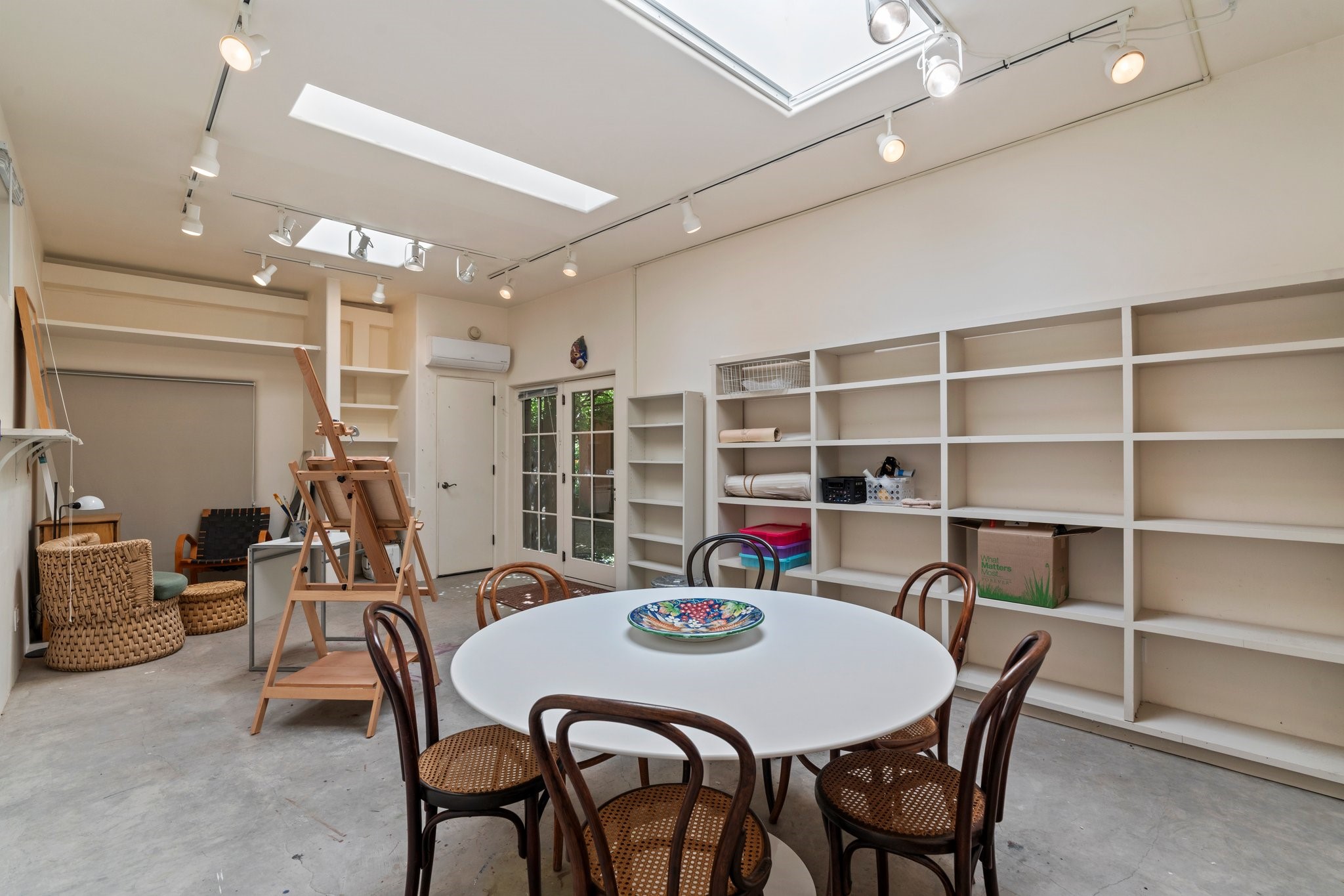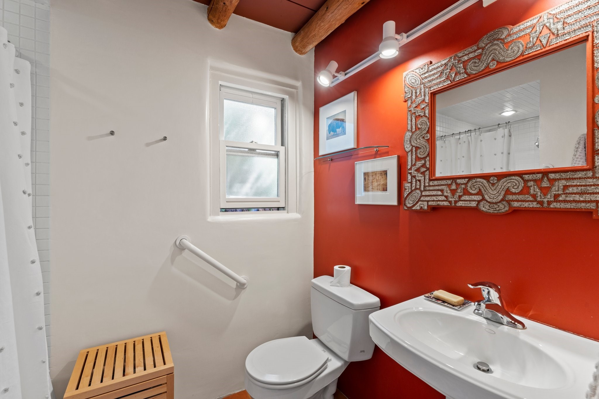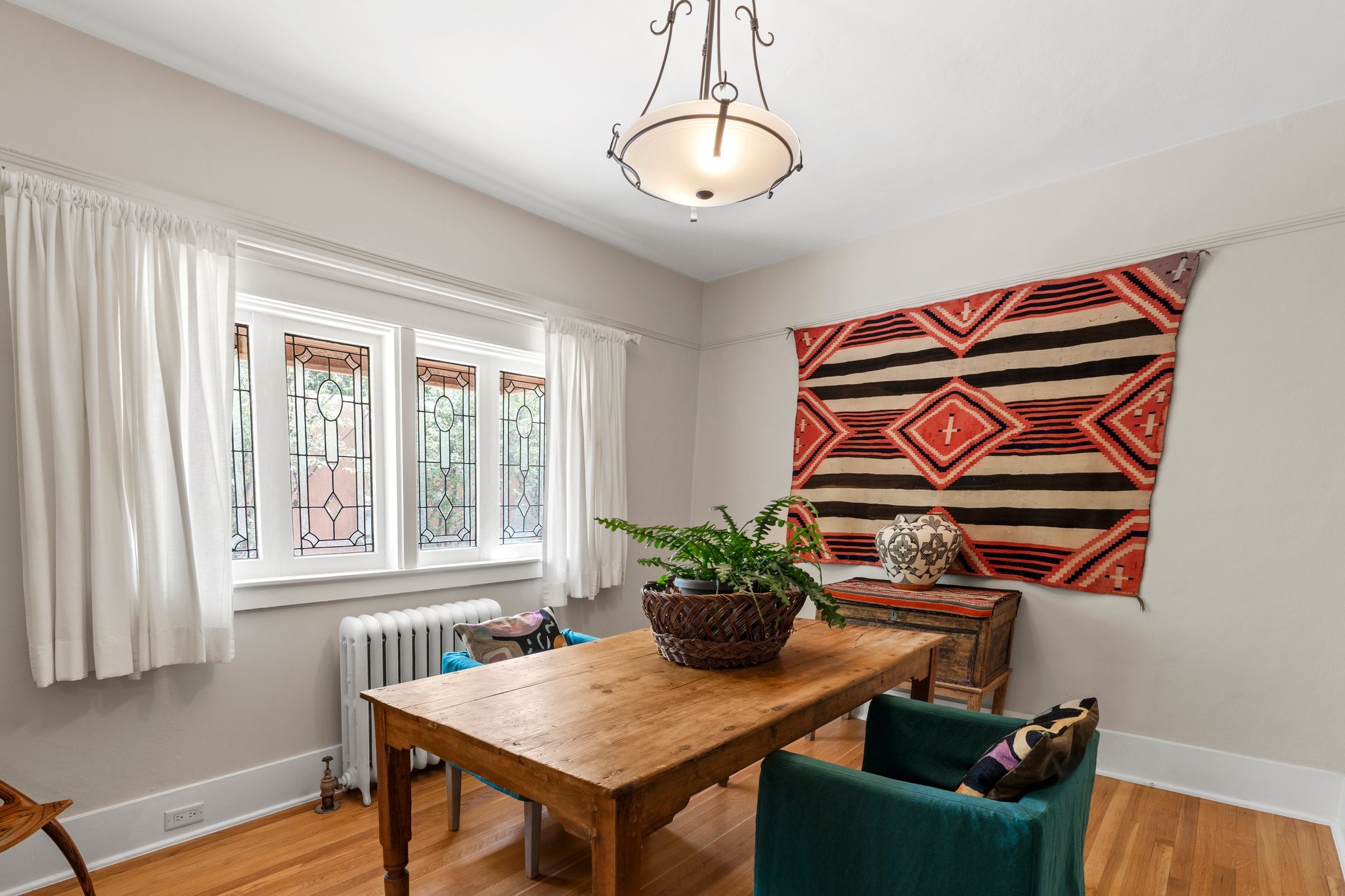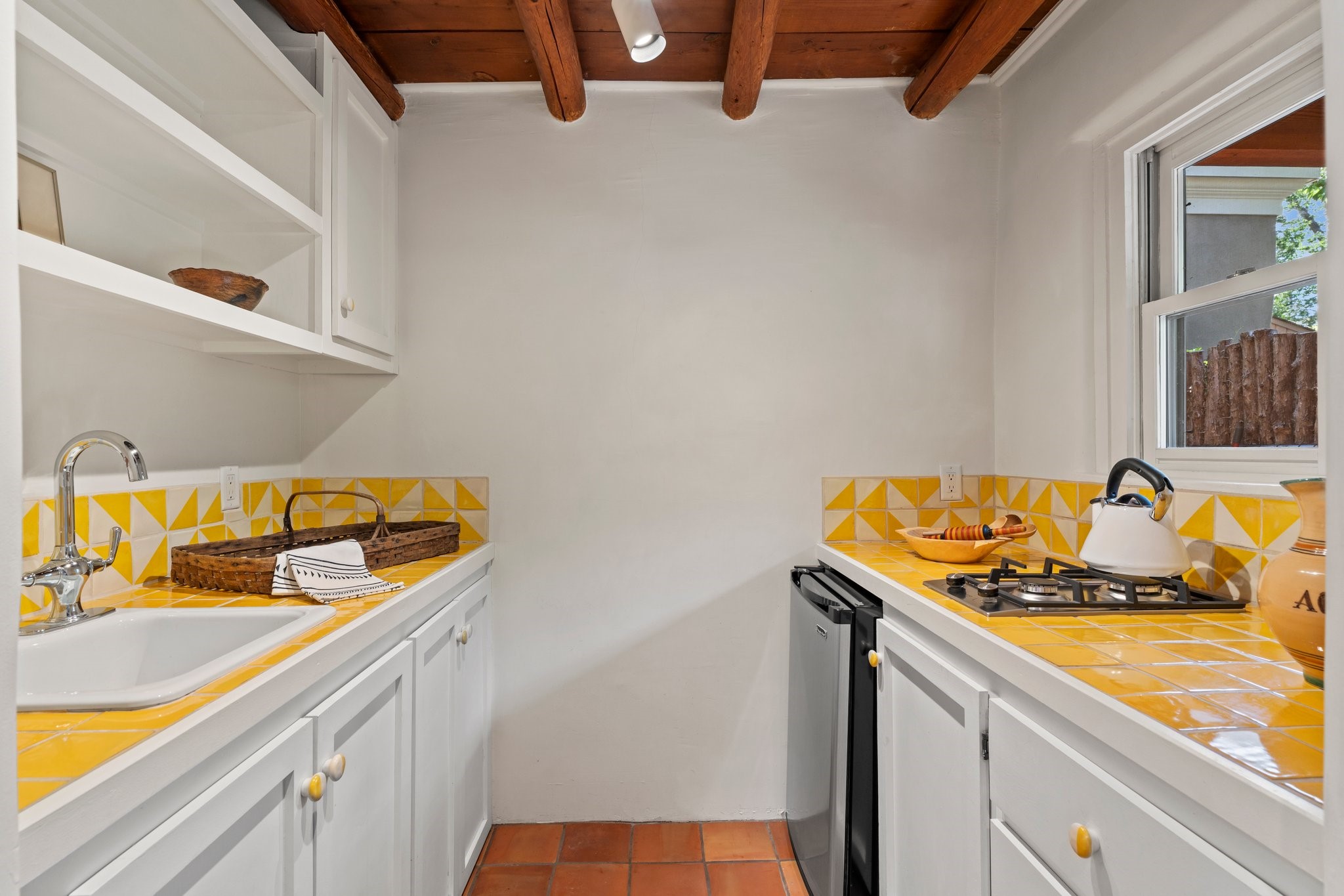 In the heart of Santa Fe's coveted Historic Eastside, this enchanting property offers the perfect blend of charm, versatility, and an unbeatable location. Just a short stroll to local favorites like Downtown Subscription and Garcia Street Books, the home is one of only two residences in the serene Berry Compound. The main house spans 1,866 square feet across a single level, featuring two bedrooms and two bathrooms. The two bedrooms are separated by a flexible area currently used as an office. Thoughtfully designed for comfort and connection to nature, it offers abundant natural light, hardwood floors, built-in bookshelves, and a seamless indoor-outdoor flow. A detached 528-square-foot guesthouse provides ideal accommodations for friends and family, complete with a cozy living room, bedroom, bathroom, and efficient kitchenette. Adjoining the guesthouse is a bright and spacious studio with its own plumbing and cooling--perfect for artists, remote work, or flexible live/work needs. Surrounded by mature landscaping and tranquil garden spaces, the outdoor areas invite year-round enjoyment. Highlights include a welcoming front courtyard, a lush backyard with climbing roses, a wisteria-draped arbor, and a variety of fruit trees including apple, quince, and cherry. Additional features include a steam shower, two dedicated off-street parking spaces, and a large usable basement offering ample storage. With timeless appeal and a location that puts you minutes from the Plaza and Canyon Road, this rare Eastside offering combines Santa Fe charm with modern livability.