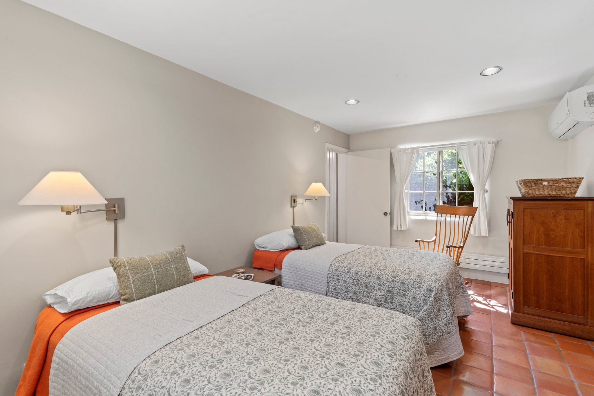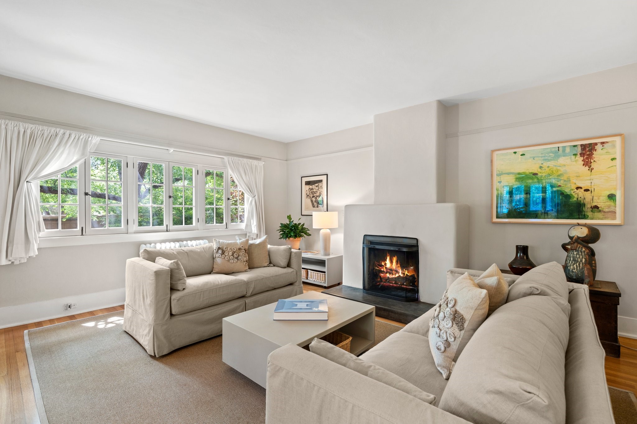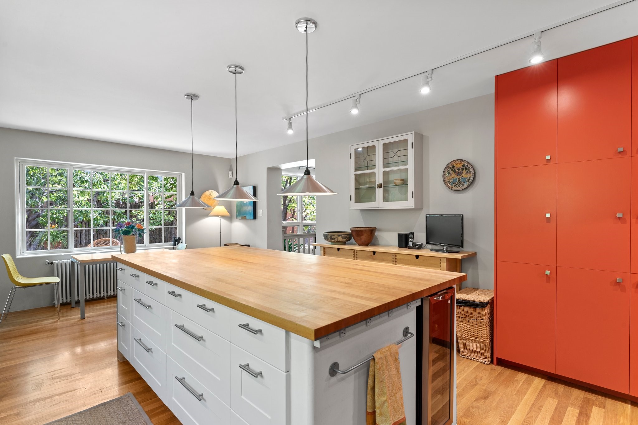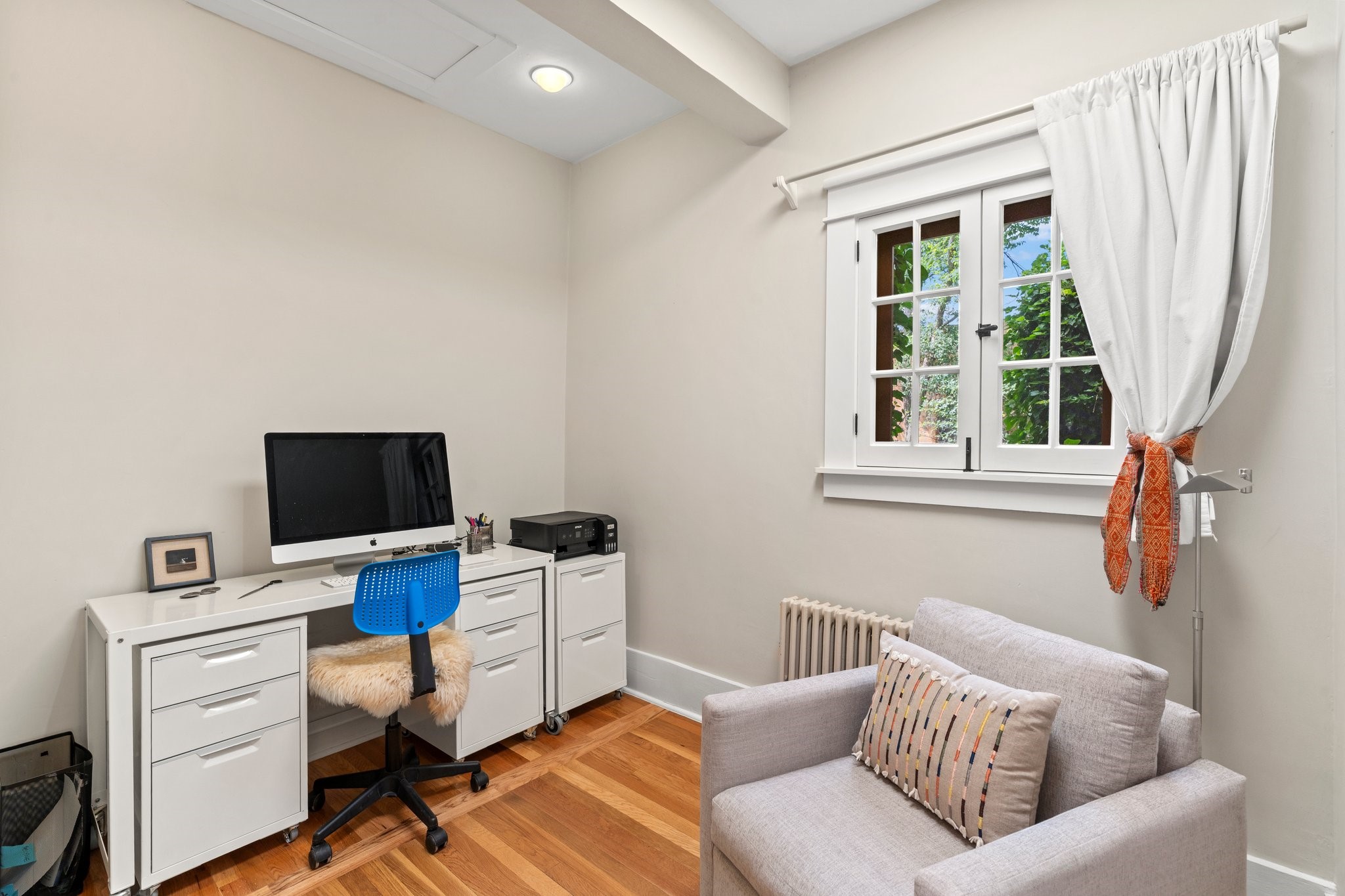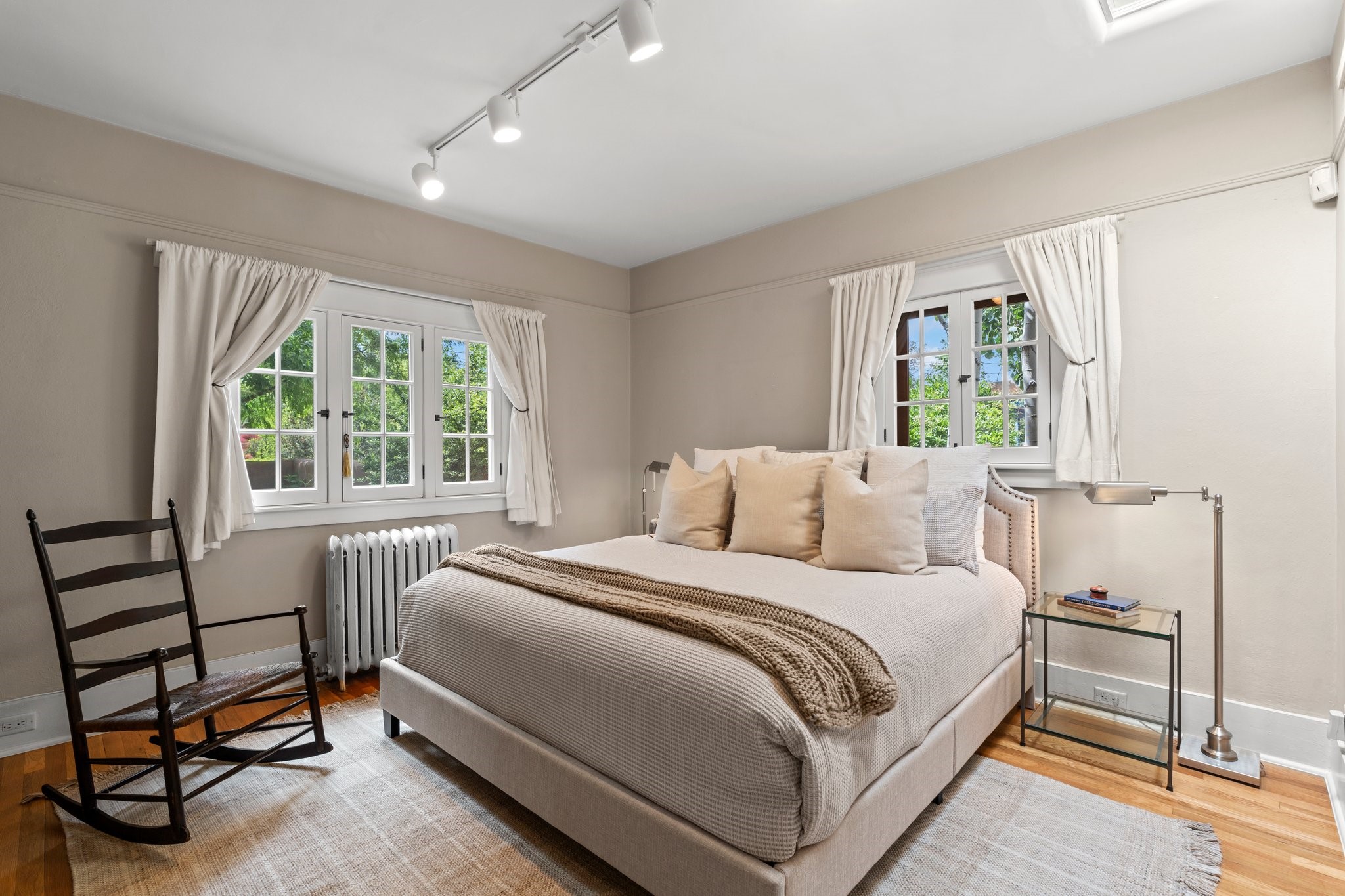 In the heart of Santa Fe's coveted Historic Eastside, this enchanting property offers the perfect blend of charm, versatility, and an unbeatable location. Just a short stroll to local favorites like Downtown Subscription and Garcia Street Books, the home is one of only two residences in the serene Berry Compound. The main house spans 1,866 square feet across a single level, featuring two bedrooms and two bathrooms. The two bedrooms are separated by a flexible area currently used as an office. Thoughtfully designed for comfort and connection to nature, it offers abundant natural light, hardwood floors, built-in bookshelves, and a seamless indoor-outdoor flow. A detached 528-square-foot guesthouse provides ideal accommodations for friends and family, complete with a cozy living room, bedroom, bathroom, and efficient kitchenette. Adjoining the guesthouse is a bright and spacious studio with its own plumbing and cooling--perfect for artists, remote work, or flexible live/work needs. Surrounded by mature landscaping and tranquil garden spaces, the outdoor areas invite year-round enjoyment. Highlights include a welcoming front courtyard, a lush backyard with climbing roses, a wisteria-draped arbor, and a variety of fruit trees including apple, quince, and cherry. Additional features include a steam shower, two dedicated off-street parking spaces, and a large usable basement offering ample storage. With timeless appeal and a location that puts you minutes from the Plaza and Canyon Road, this rare Eastside offering combines Santa Fe charm with modern livability.