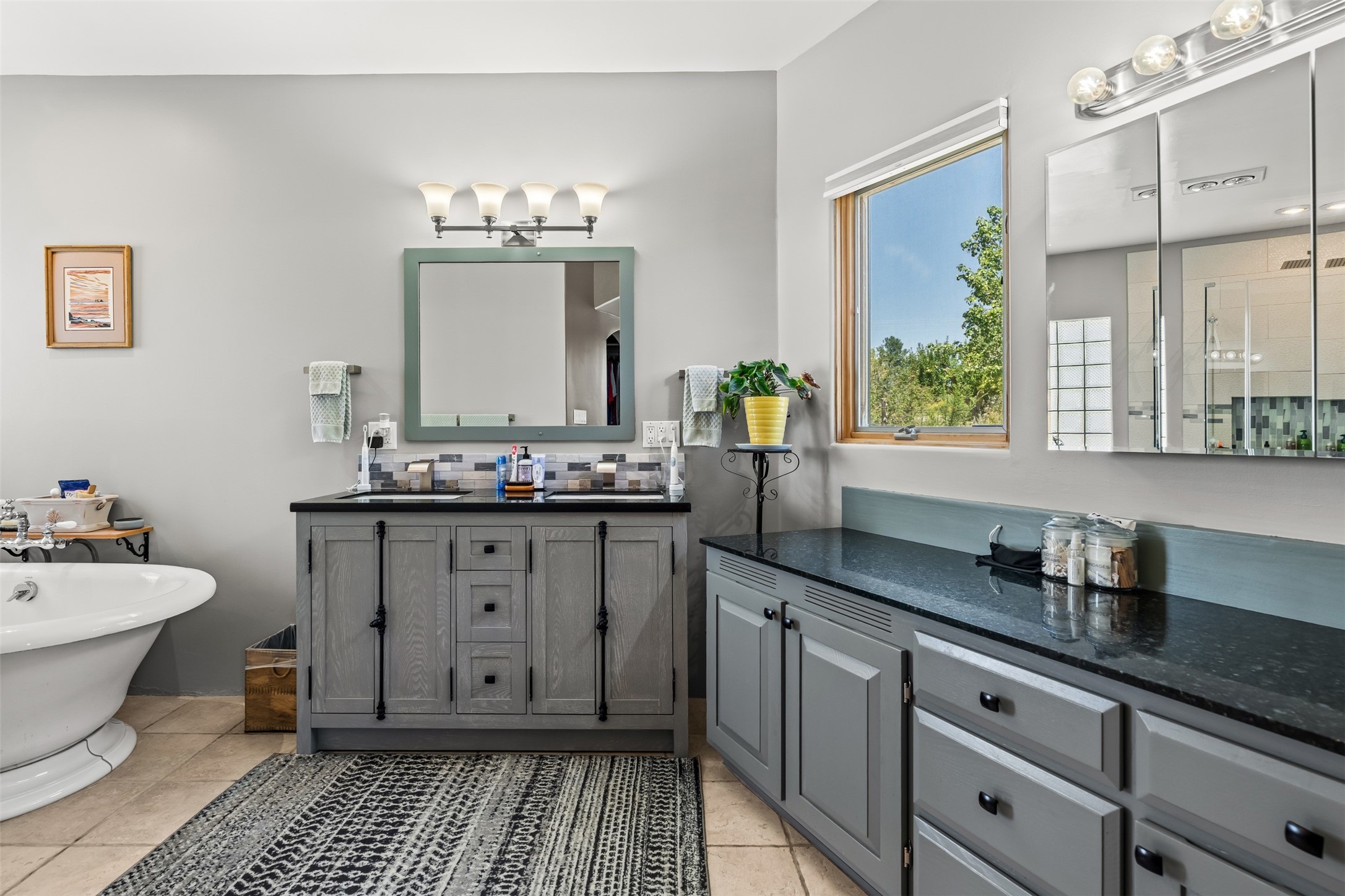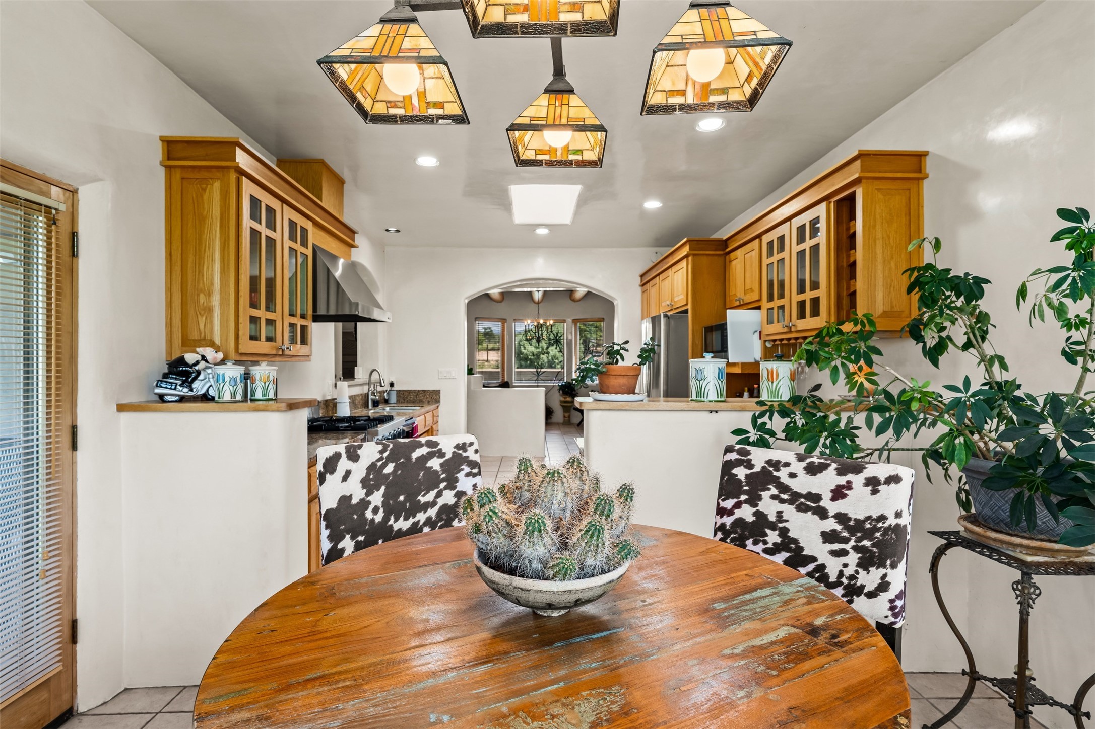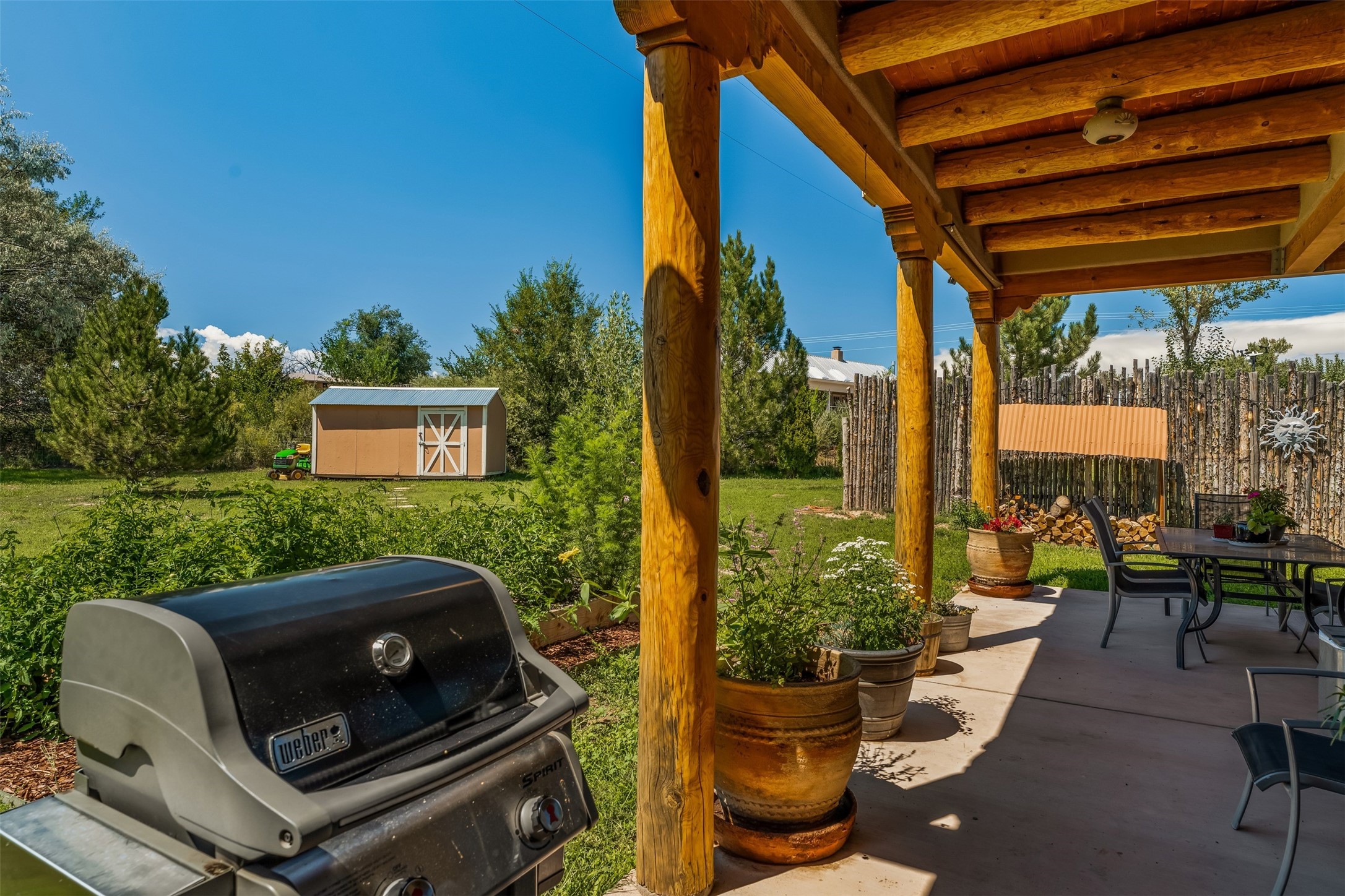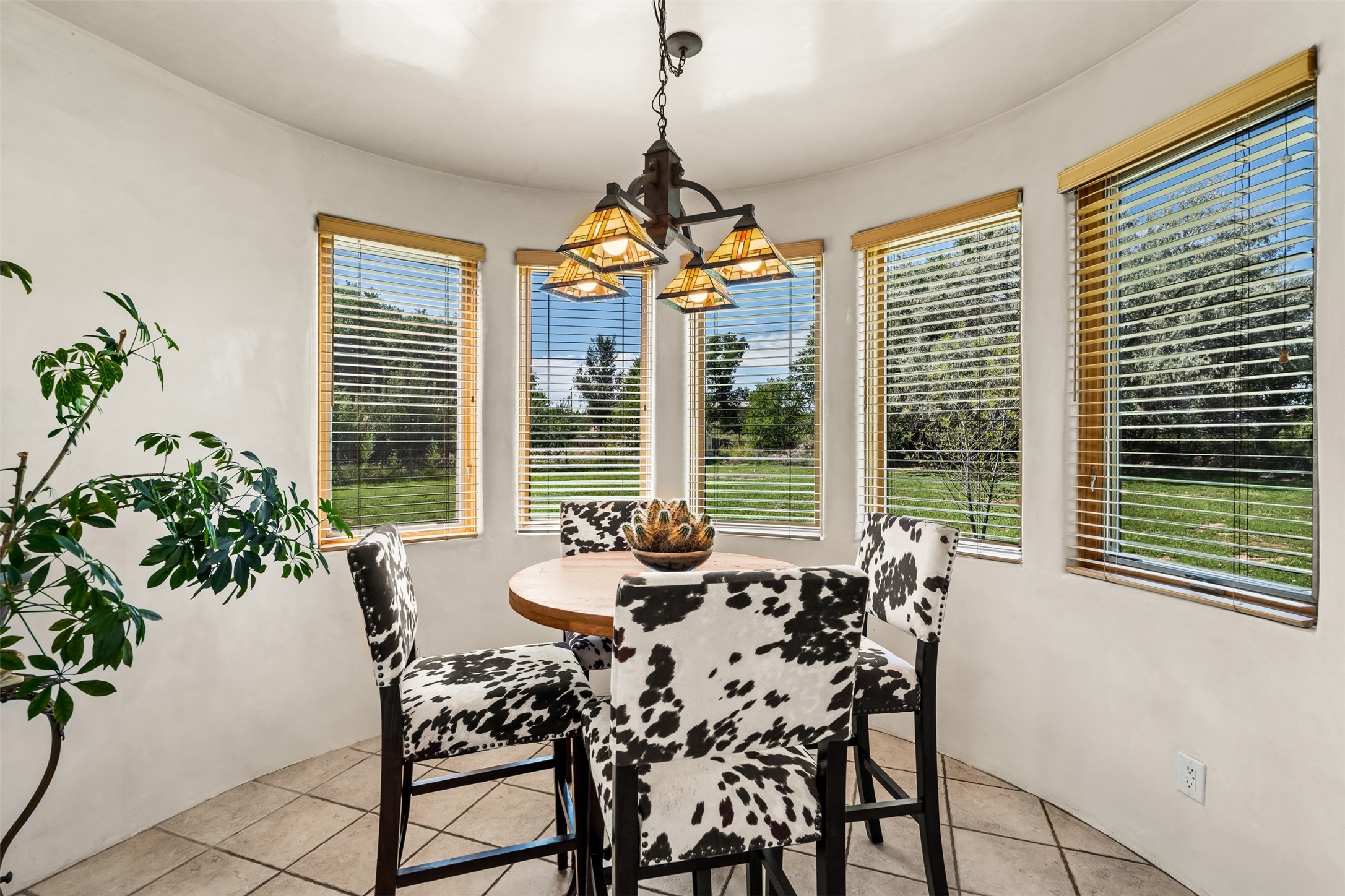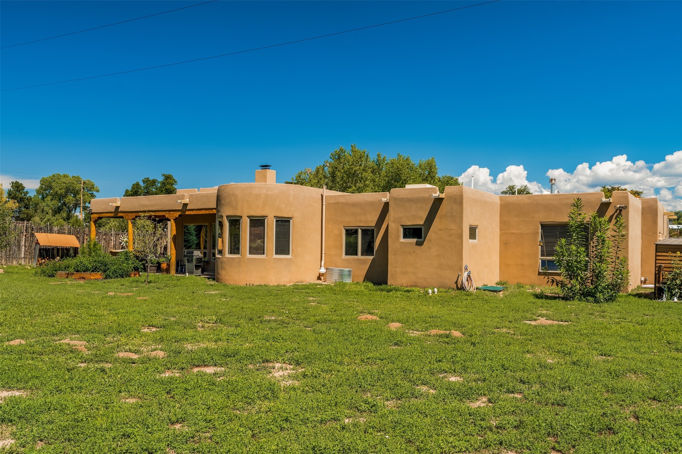 Refined Nambe Retreat with Premium Upgrades, Acreage & Iconic ViewsDiscover this exceptional Nambe property--now further elevated with thoughtful, high-end improvements that complement its natural charm and timeless Southwestern design. Nestled on over an acre of flat, lush land with a private well and acequia water rights, this home offers a lifestyle of comfort, beauty, and self-sufficiency.The property has been extensively upgraded to enhance both aesthetics and function, including a new professionally paved driveway, expanded water filtration with a reverse osmosis system, hot tub, and other improvements designed for long-term ease and enjoyment. Every enhancement reflects pride of ownership and investment in quality living. Step into the walled courtyard with mature landscaping and fruit trees, where sweeping mountain views and the iconic Sacred Heart Church create an unforgettable backdrop. Inside, the home is filled with natural light from skylights, smooth plaster walls, and charming Santa Fe architectural details like rounded walls and two traditional kiva fireplaces.The spacious, split-bedroom layout includes a luxurious primary suite featuring a soaking tub, walk-in closet, and direct access to the expansive wraparound portal--perfect for entertaining or relaxing outdoors in every season. The kitchen is a culinary highlight, boasting granite countertops, premium appliances, and a wall of windows that frame the surrounding beauty.A private guest wing offers flexibility with a bonus room ideal as a studio, office, or additional bedroom. Recent system upgrades also include a newer furnace, leach field, a 2022 roof with transferable warranty, and a pre-inspected structure for added peace of mind.With unparalleled views, water access, and a list of substantial enhancements, this move-in-ready home offers a rare blend of rural tranquility and refined living in one of Northern New Mexico's most scenic enclaves.