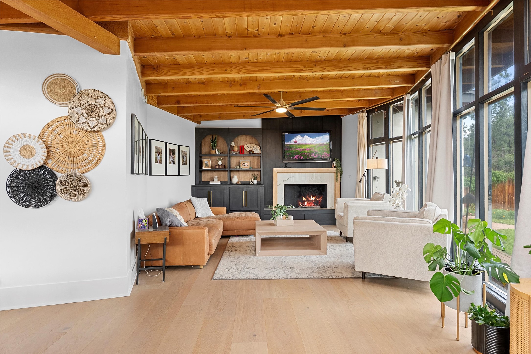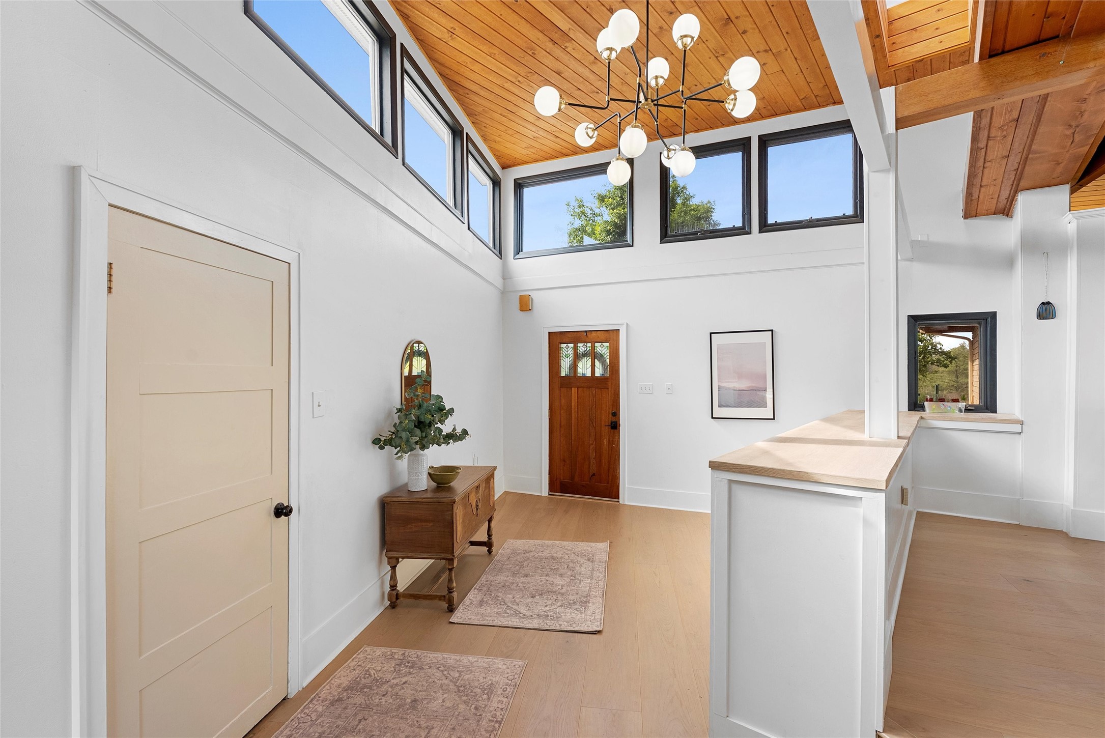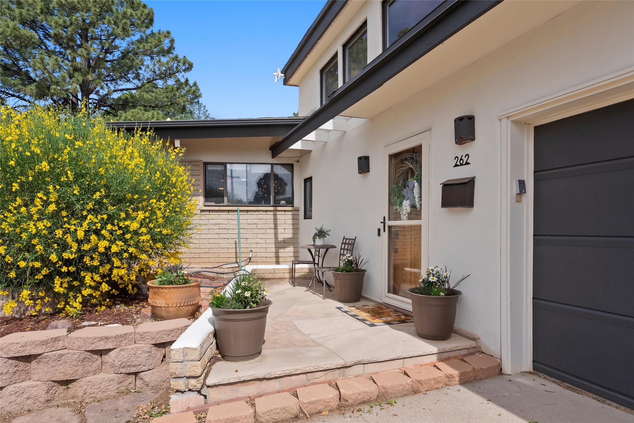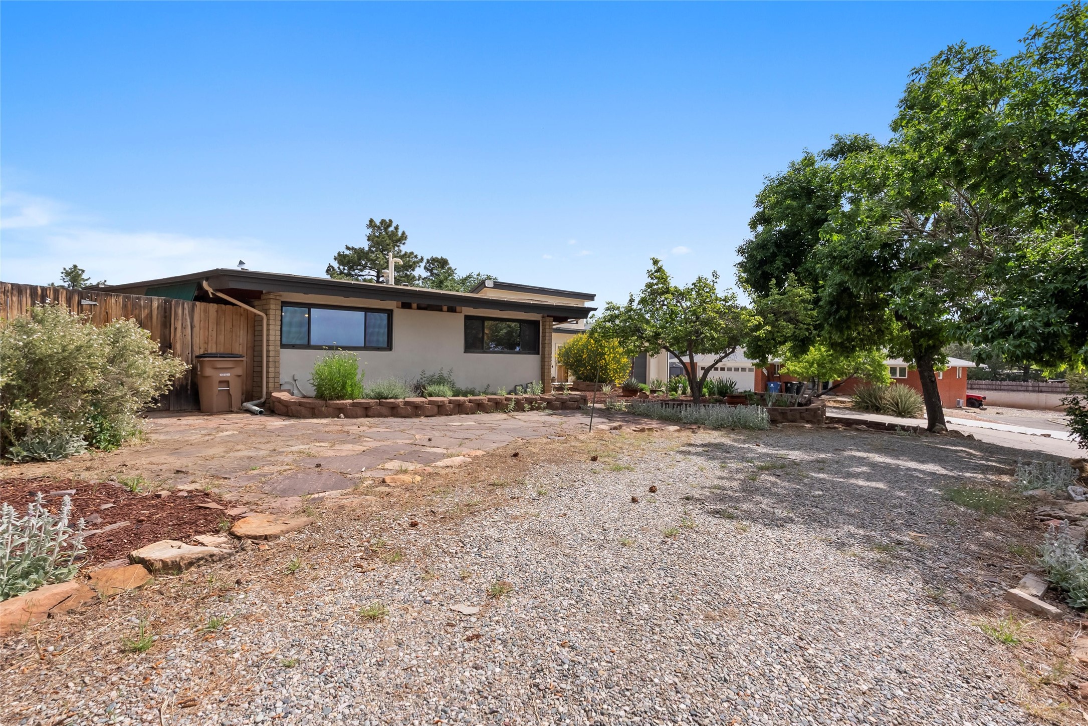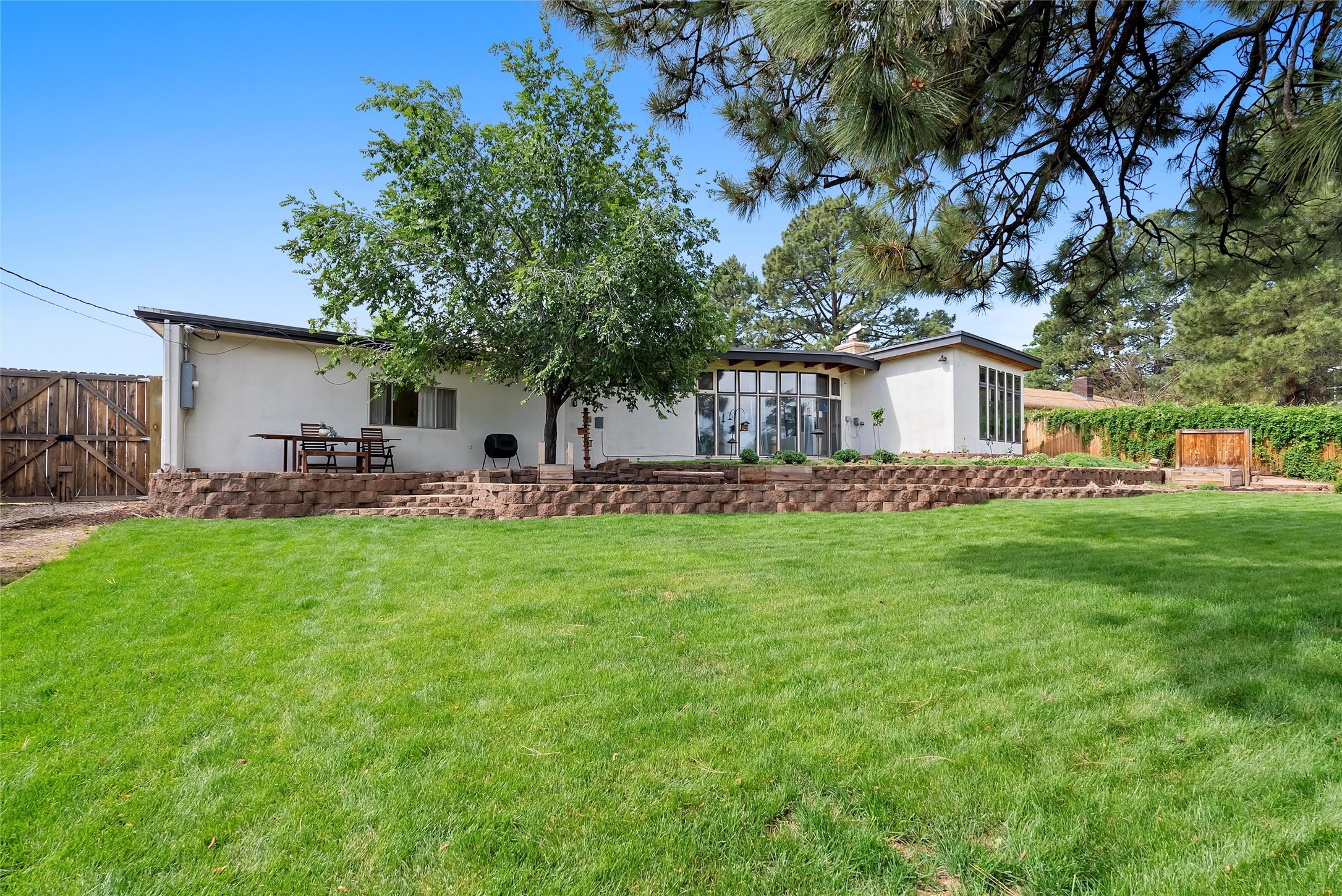 This stunning mid-century modern home on Barranca Mesa blends timeless architecture with thoughtful, high-quality updates. From the moment you step inside, floor-to-ceiling windows draw you in with natural light and stunning views, perfectly framing the beautifully renovated fireplace mantle at the heart of the open living space. High wood ceilings add warmth and dimension, making the space feel inviting and effortlessly cool.New flooring runs throughout the home, tying each room together with a clean, modern touch. The kitchen features newer appliances and a functional layout that complements the home's classic aesthetic. Central A/C keeps things comfortable year-round.The bedrooms are well-sized and versatile, with the fourth featuring a built-in Murphy bed, ideal for guests, a home office, or a flex space. The primary suite is a standout with a beautifully remodeled, spa-like bathroom and a convenient loft-style storage area accessible by ladder -- a clever and practical use of space.Step outside to a beautifully landscaped backyard, complete with a brand-new fence and a hot tub for relaxing under the stars. The walk-in basement, accessible from the exterior, offers ample storage for gear, tools, or hobbies. A circular driveway and a long, straight drive keep the home set back from the road, enhancing privacy and curb appeal.With its iconic design, smart updates, and seamless indoor-outdoor flow, this Barranca Mesa home is the perfect blend of character, comfort, and mid-century charm.