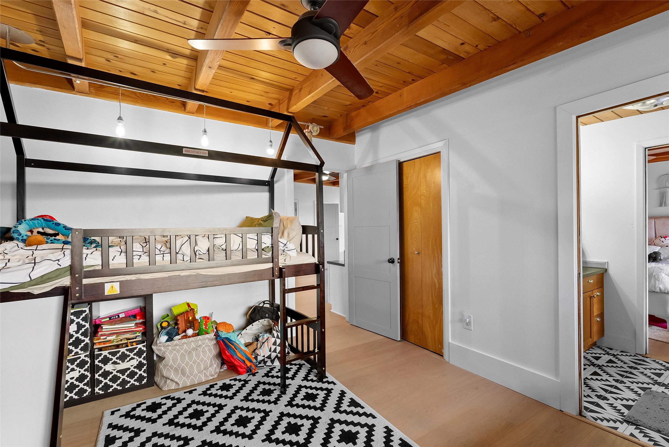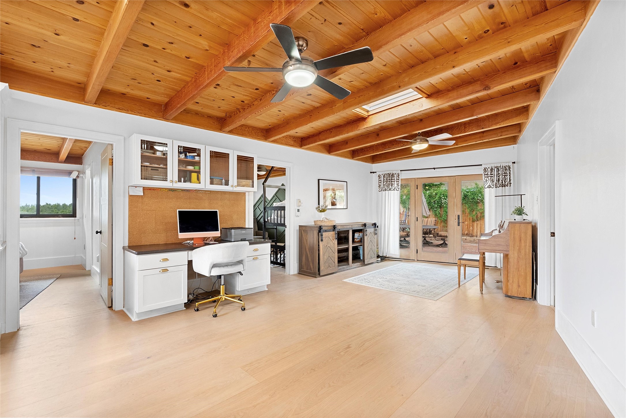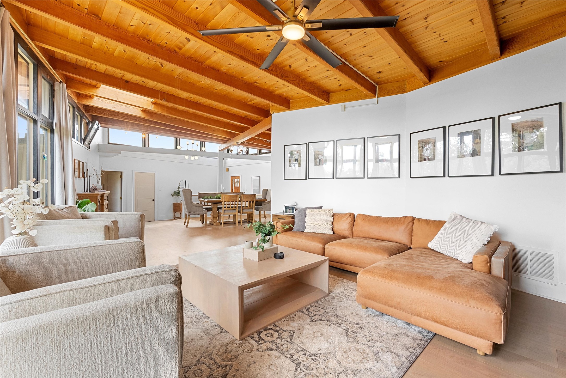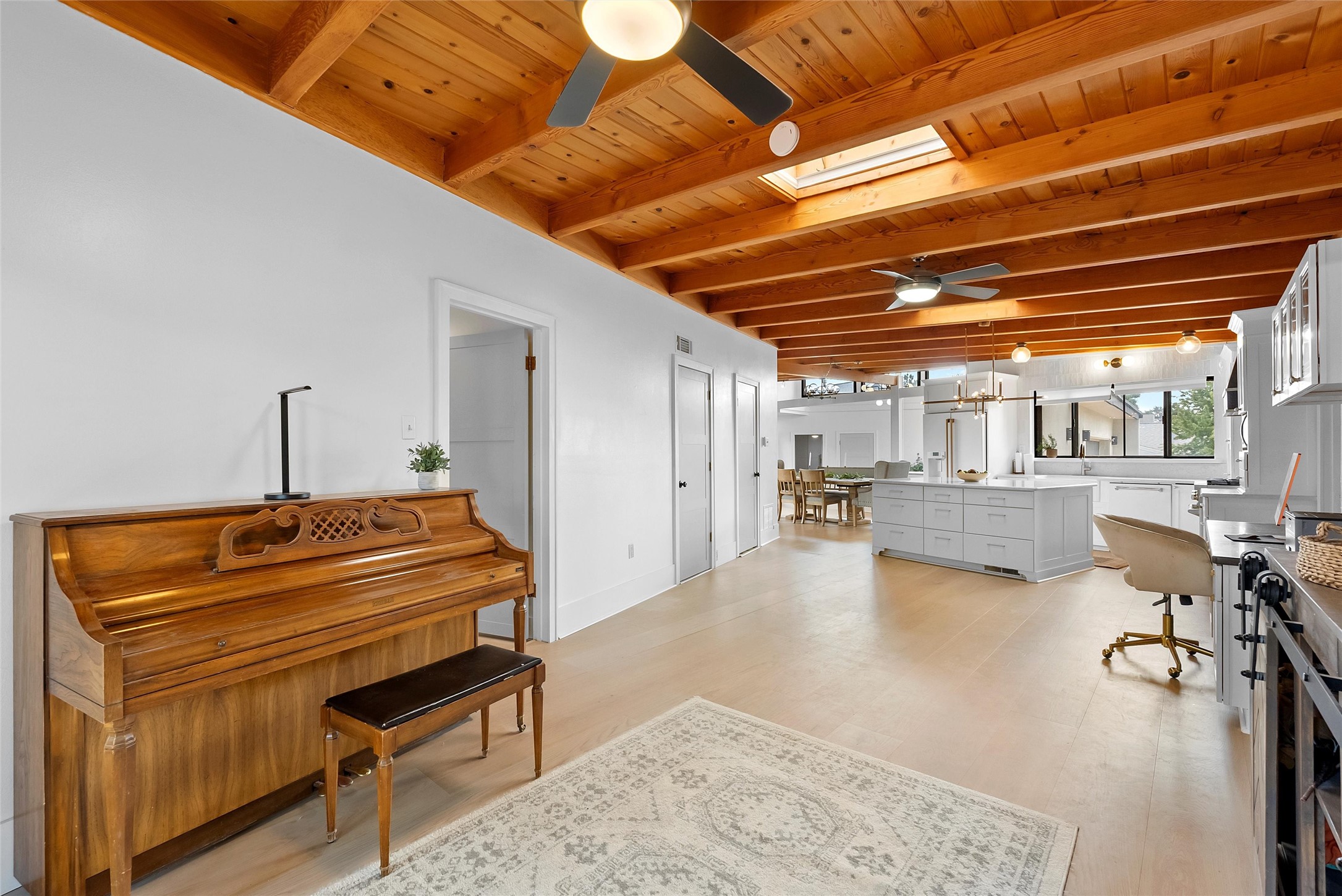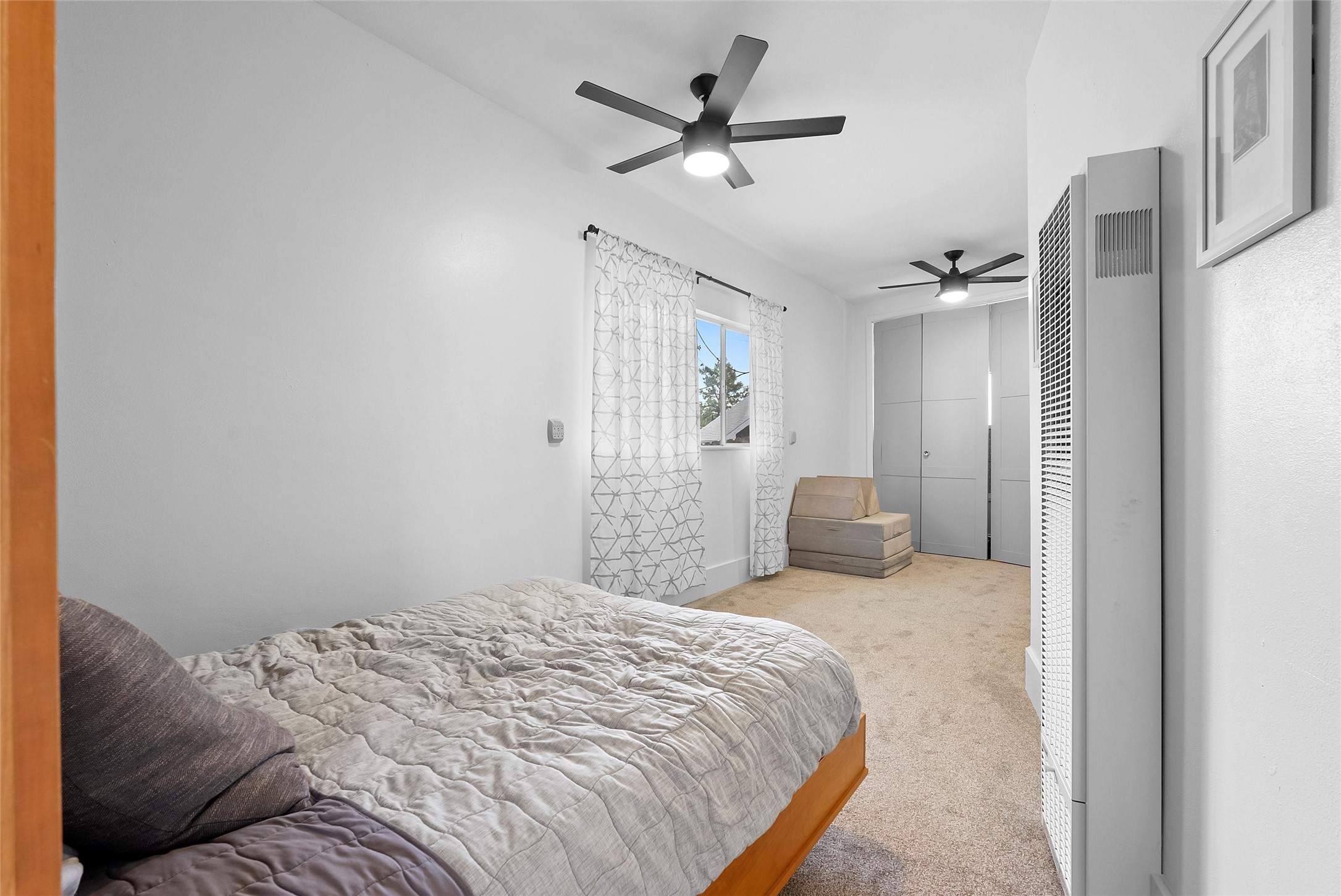 This stunning mid-century modern home on Barranca Mesa blends timeless architecture with thoughtful, high-quality updates. From the moment you step inside, floor-to-ceiling windows draw you in with natural light and stunning views, perfectly framing the beautifully renovated fireplace mantle at the heart of the open living space. High wood ceilings add warmth and dimension, making the space feel inviting and effortlessly cool.New flooring runs throughout the home, tying each room together with a clean, modern touch. The kitchen features newer appliances and a functional layout that complements the home's classic aesthetic. Central A/C keeps things comfortable year-round.The bedrooms are well-sized and versatile, with the fourth featuring a built-in Murphy bed, ideal for guests, a home office, or a flex space. The primary suite is a standout with a beautifully remodeled, spa-like bathroom and a convenient loft-style storage area accessible by ladder -- a clever and practical use of space.Step outside to a beautifully landscaped backyard, complete with a brand-new fence and a hot tub for relaxing under the stars. The walk-in basement, accessible from the exterior, offers ample storage for gear, tools, or hobbies. A circular driveway and a long, straight drive keep the home set back from the road, enhancing privacy and curb appeal.With its iconic design, smart updates, and seamless indoor-outdoor flow, this Barranca Mesa home is the perfect blend of character, comfort, and mid-century charm.