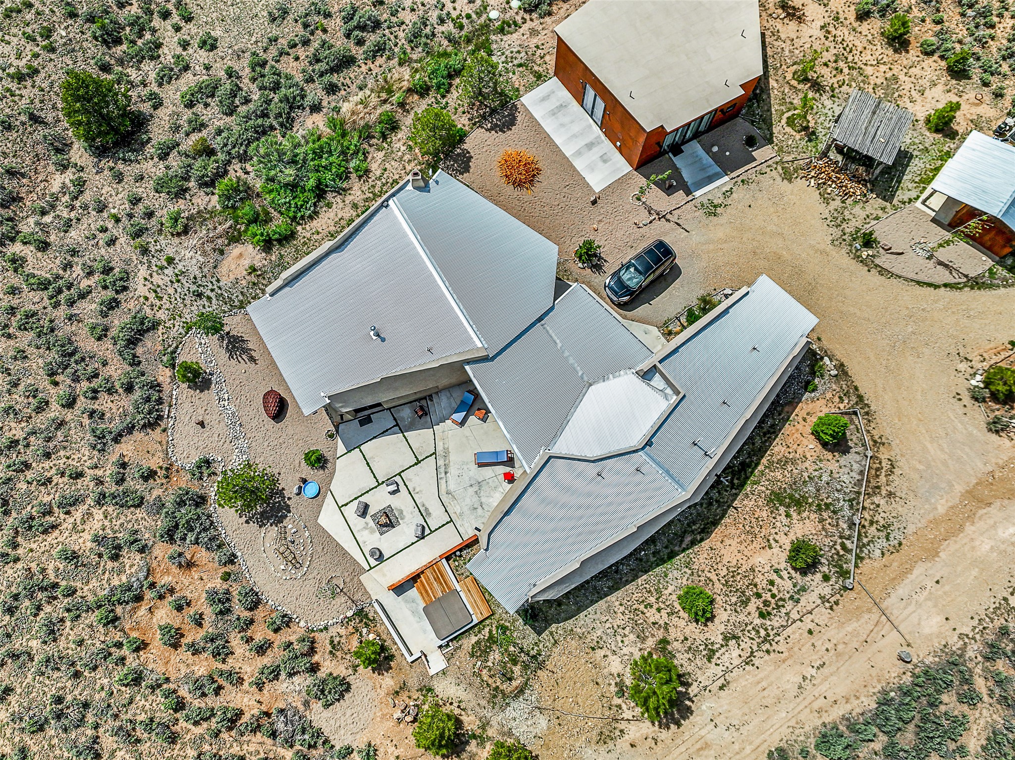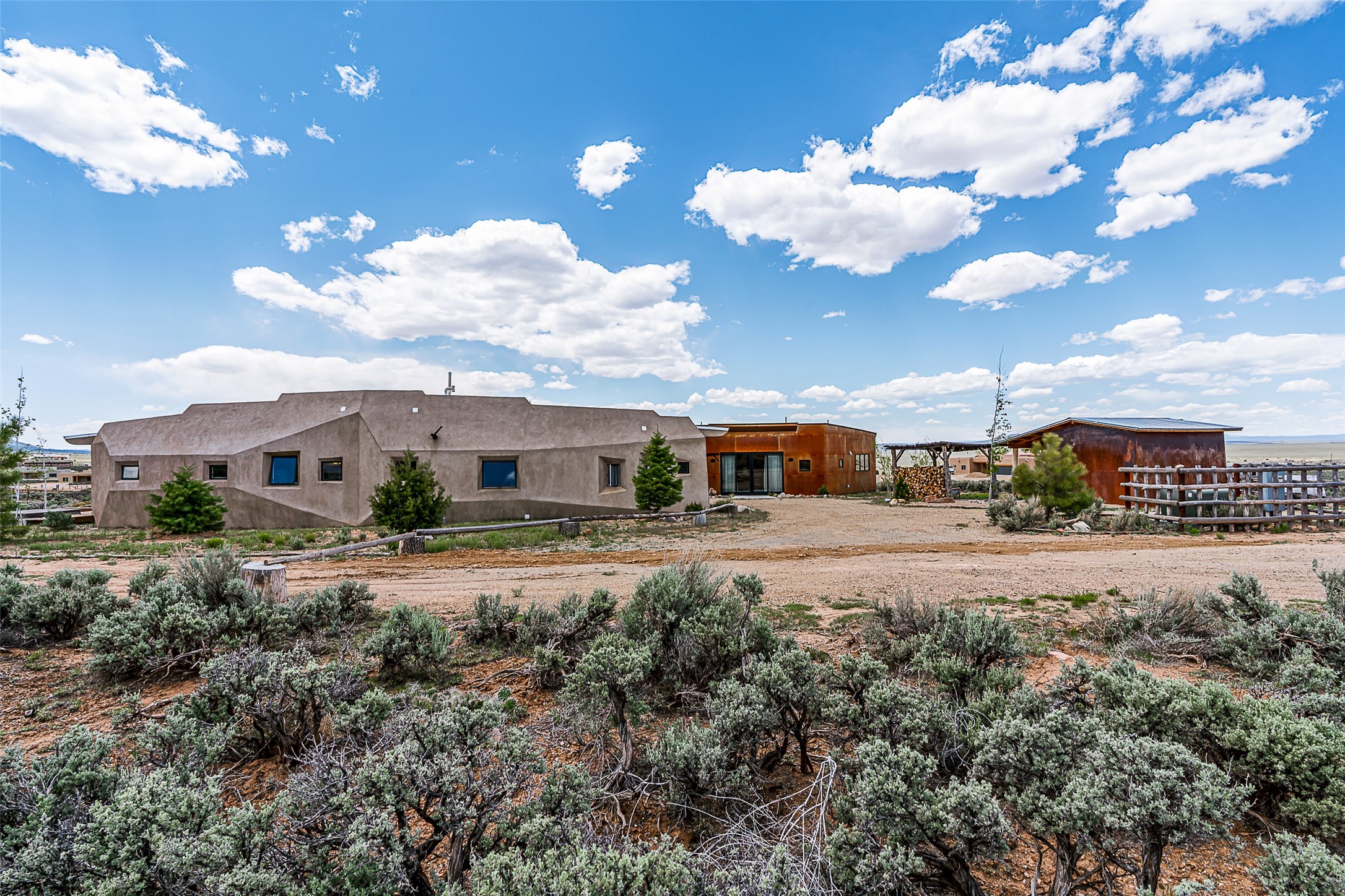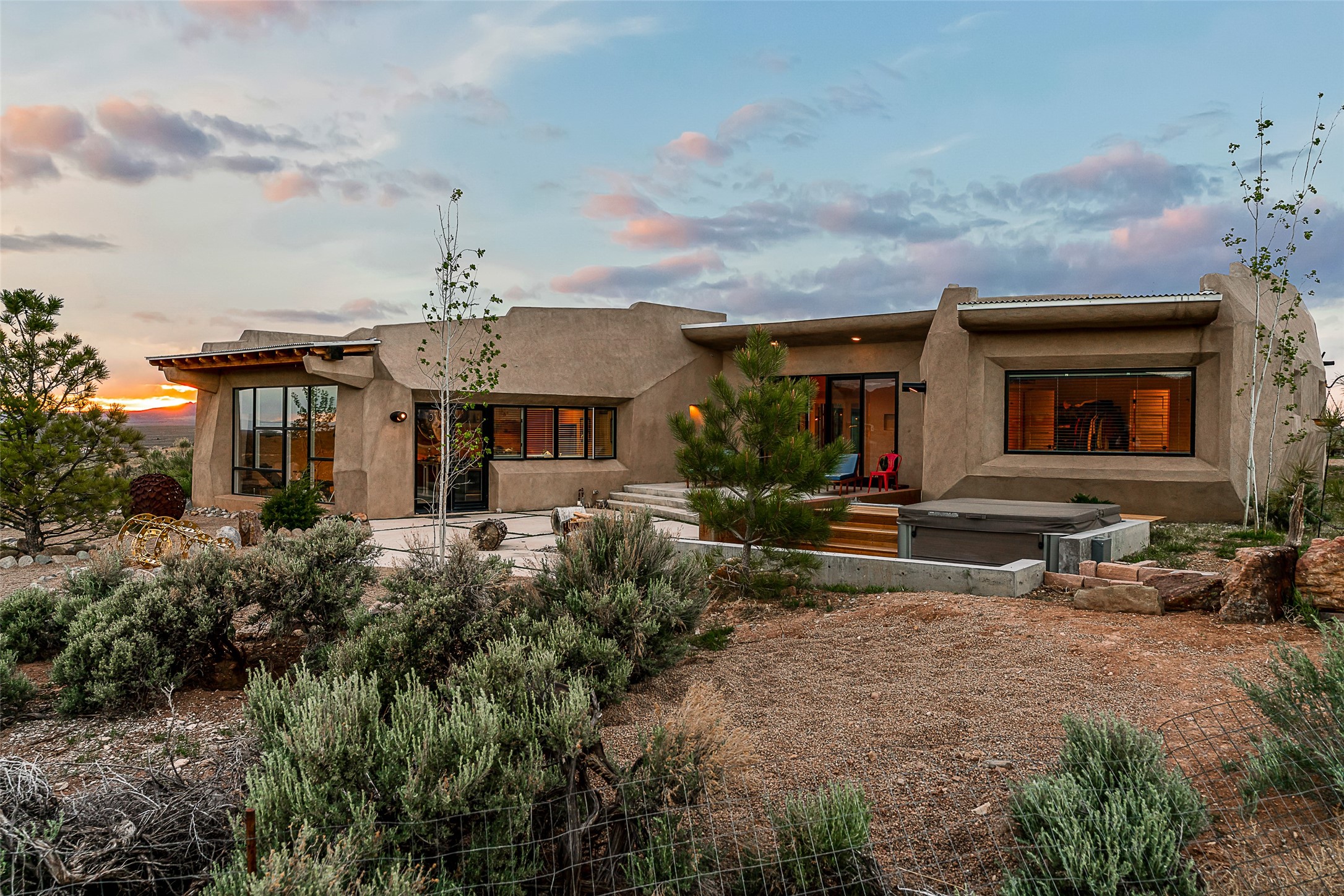 Live inside a work of art in this Artist's Dream Dwelling in Taos. Welcome to ATOMICA- a home unlike any other- where art, nature and architecture meet in perfect, unconventional harmony. Designed and built by internationally acclaimed visionary artist Allan Packer, this inspiring Taos retreat is anything but ordinary. The property consists of a house, a guesthouse, and a studio on 3 acres. Organic, off beat and unconventional in the best possible way. Sculpted thick pumice walls and large windows incorporate and frame the stunning views into a magical, serene space imagined to inspire. The layout defies expectation- fluid and intuitive, built to honor light, shadow and the surrounding land. The main house consists of 2 suites radiating off a large great room made up of an impressive kitchen space and a cozy sunken living room anchored by a whimsical fireplace. Step right out onto the stunning back patio with a firepit, hot tub and jaw dropping views in every direction. The guesthouse is fully equipped with a kitchen and has an established history of rental income. Set atop a peaceful rise, tucked near the edge of the Rio Grande del Norte National Monument, you're just minutes from breathtaking hikes where bighorn sheep roam, epic mountain biking trails, and the quiet power of the river below. The home also overlooks the 16th hole of the Taos Country Club and golf course, blending wild nature with wide-open fairways. This is not just a home-it's a living, breathing work of art. It's a space for dreamers, makers and seekers. Whether you're an artist, writer, hardcore recreationalist or someone simply craving authenticity and soul in a sea of sameness, this home offers something rare: a chance to live in art, not just hang it on the wall.One-of-a-kind. Off the beaten path. Totally Taos. Serious inquiries only. Magic lives here.