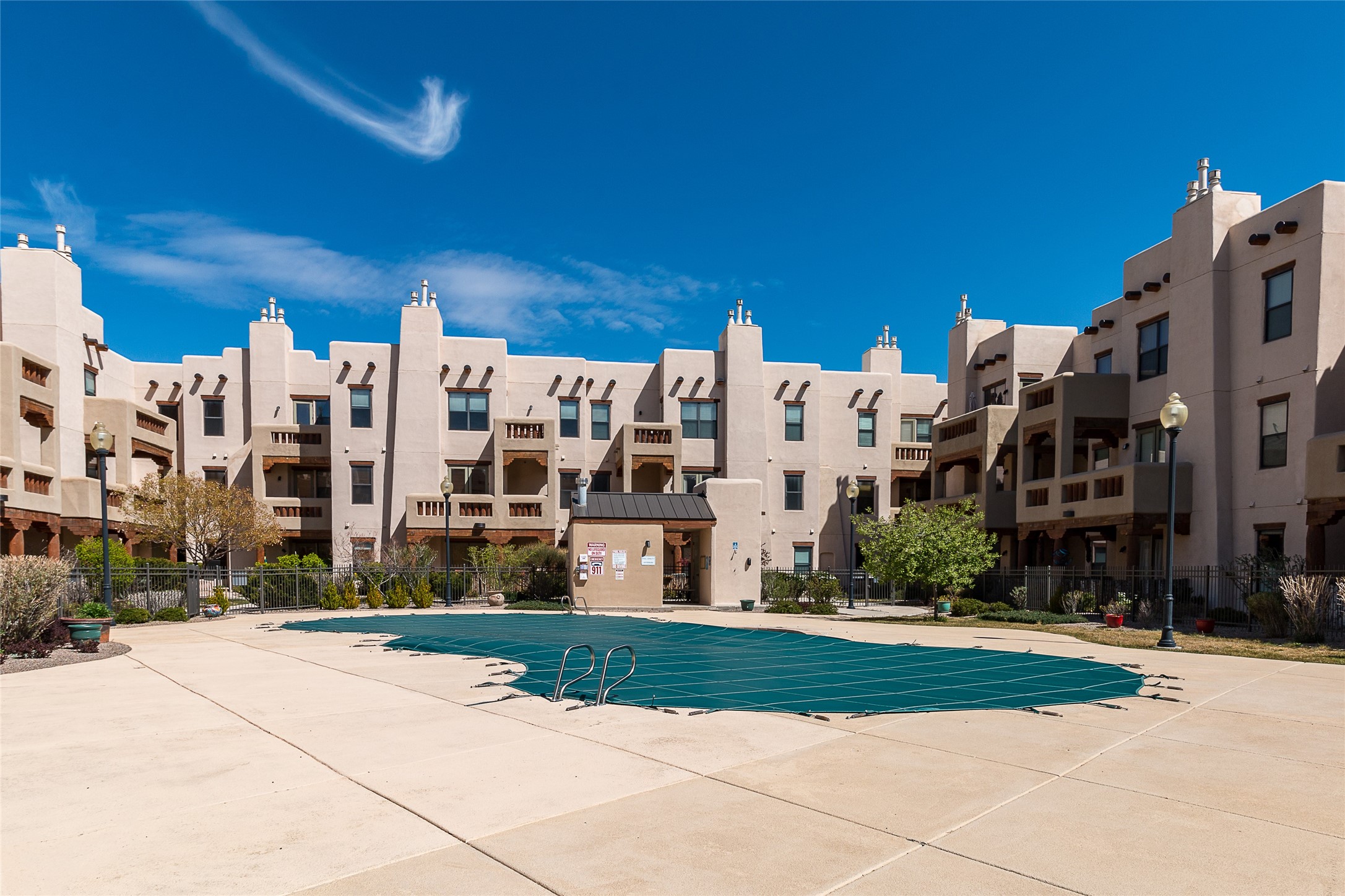 Welcome to 1405 Vegas Verdes #136, a beautifully maintained 1-bedroom, 1.5-bath condo located in the gated community of The Alameda. This ground-floor unit offers the perfect blend of Southwest character and everyday functionality, with features like wood vigas, a cozy corner fireplace, and a spacious open layout that flows from the kitchen to the living area. Step through the glass door to your private patio an ideal space for relaxing, dining al fresco, or unloading groceries. This unit has a storage unit as well, providing ample space for your vehicle, bikes, or extra belongings. Inside, you'll find a well-appointed kitchen with granite countertops and stainless steel appliances, a comfortable primary suite with full bath, and a separate powder room for guests. Additional conveniences include an in-unit washer and dryer, central air, and plenty of natural light throughout. Residents of The Alameda enjoy resort-style amenities including a swimming pool, fitness center, clubhouse, beautifully landscaped grounds, and secure gated access. Located near Santa Fe Place Mall, grocery stores, restaurants, and with easy access to Hwy 599, this condo offers low-maintenance living in one of Santa Fe's most desirable communities. Whether you're looking for a full-time residence, a lock-and-leave home, or a smart investment, this one has it all.