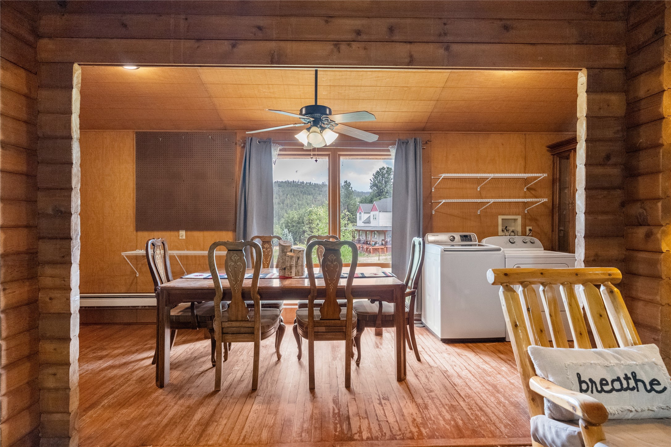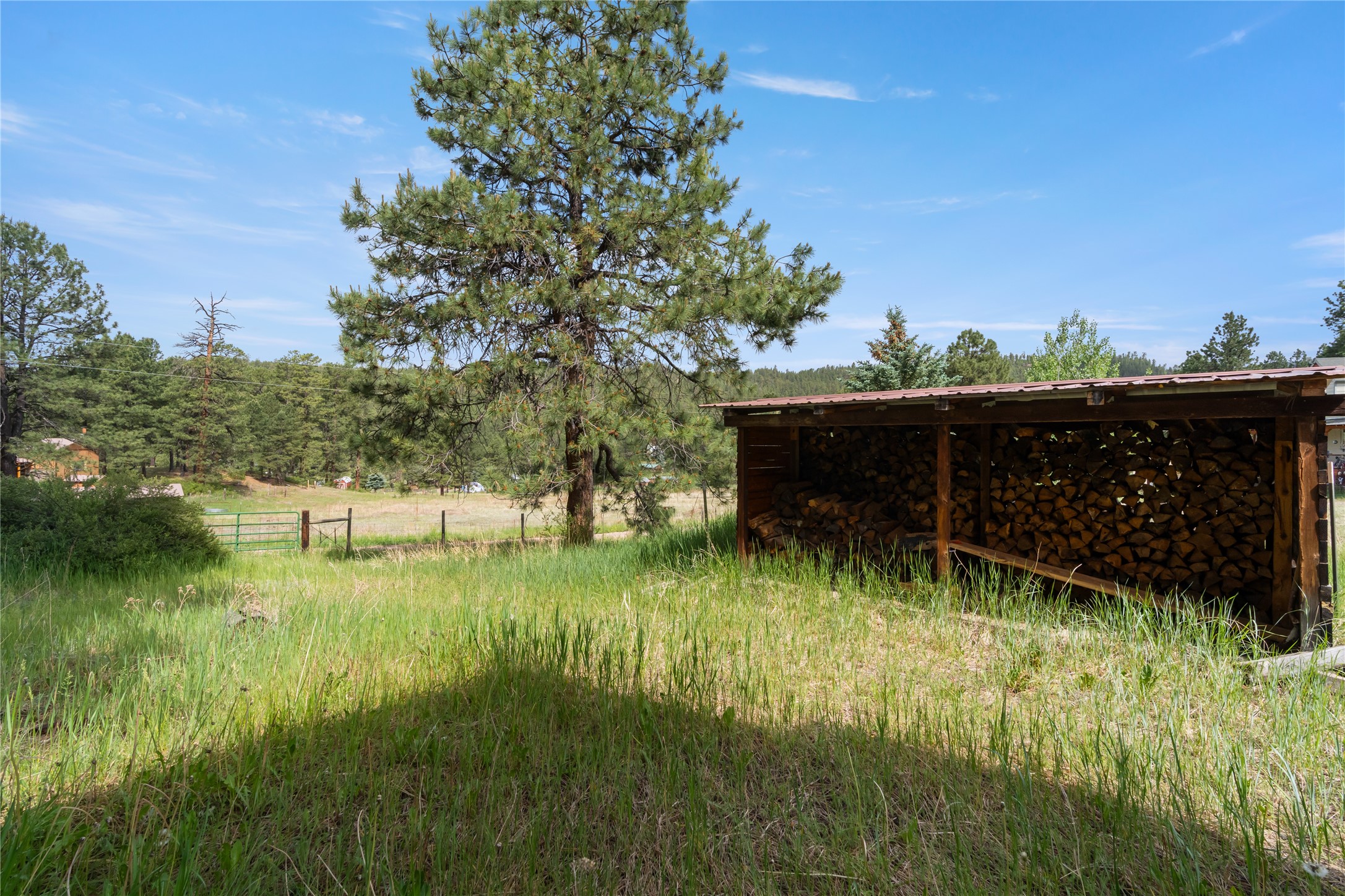 Lucky enough to live in the mountains...then you're lucky enough! This 2-bedroom, 1-bath 2,219 sq ft log cabin on 1.2 acres in La Cueva is the perfect spot! Originally a 3-bedroom, one room was opened up to expand the primary suite--but it could easily be converted back. The fabulous Panabode cabin with its interlocking log design blends modern living with traditional. From the wagon wheel-antler chandelier to the arched doorways & rustic warm interiors, the cedar tongue-&-groove cathedral wood ceiling, & the inviting rocking chair wrap-around covered porch, every detail enhances the home's irresistible charm! The spacious main bedroom is perfect to add in a cozy reading nook or office. Walk-out basement offers endless possibilities--finish it for extra bedrooms or a rec room or keep it as a workshop. You won't find a better location for a sweet weekend getaway or a full-time residence!