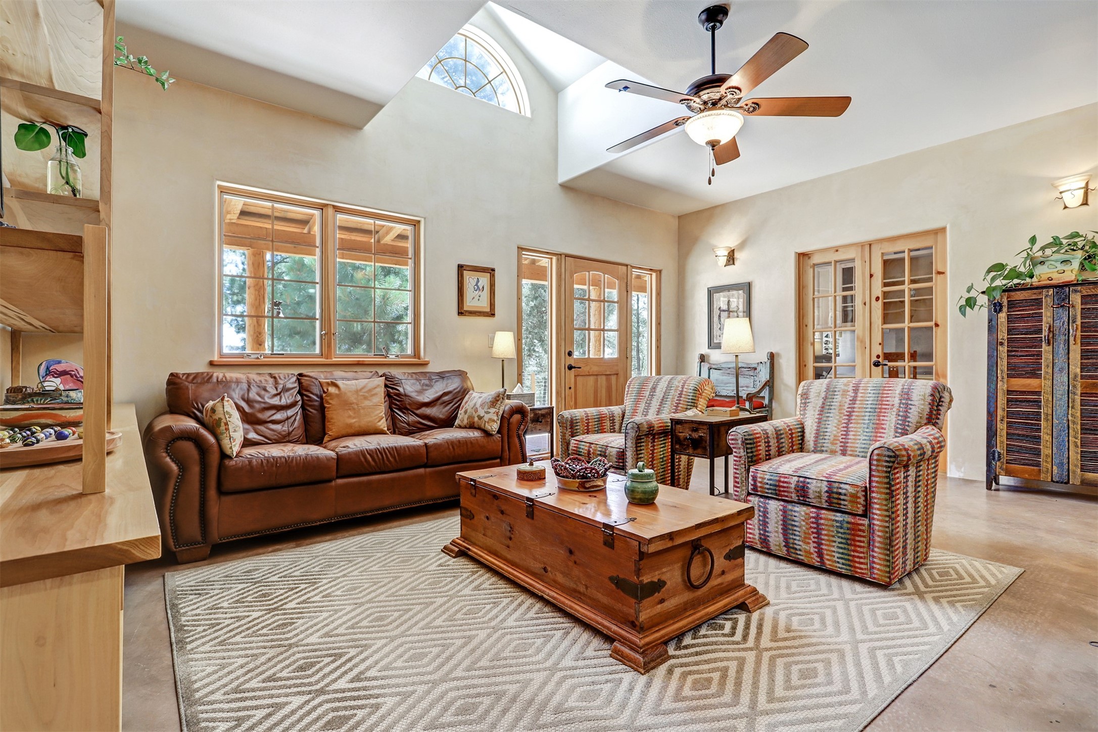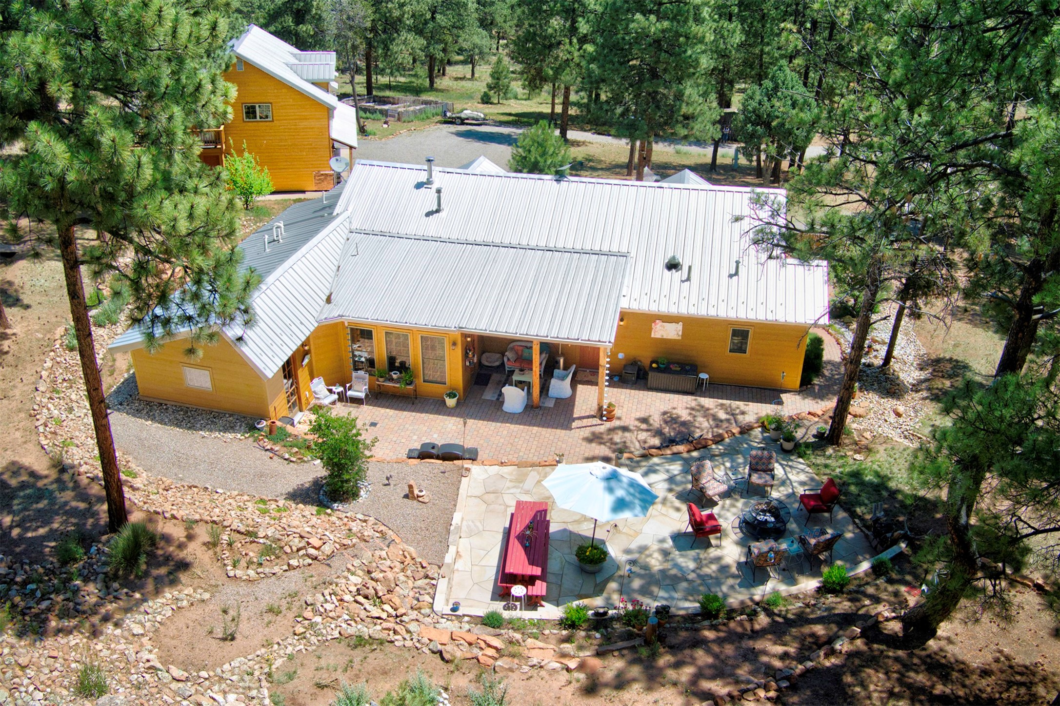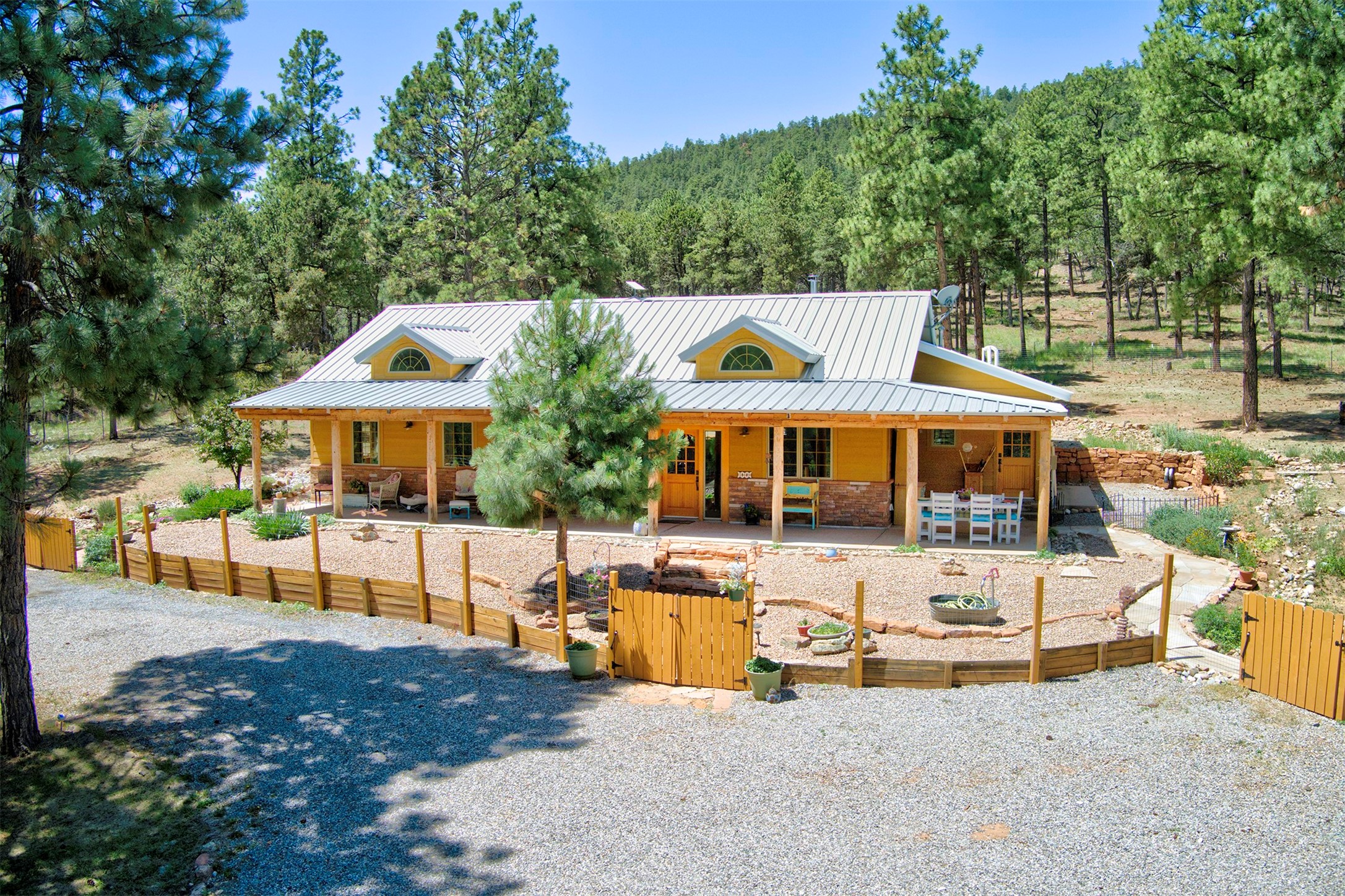 Attention Mountain Bikers and Horse Enthusiasts! Serene 12.5-Acre Retreat with mountain views! Main house and guest casita over garage is just 25 minutes from downtown Santa Fe. Nestled at the base of the stunning Glorieta Mesa this exceptional property with private well offers access to miles of scenic trails perfect for mountain biking and horseback riding. Located across the highway from the famous Glorieta Mountain Biking Trails, this property is ideally located for outdoor lovers. The main home blends rustic charm with modern comfort, featuring a spacious living area, two primary suites, a dedicated office, and a convenient dog bath. The tranquil, private setting makes it ideal for full-time living or a weekend getaway. Step outside to the elevated sandstone terrace--a perfect space for dining, relaxing, or taking in the panoramic mountain views. A standout feature is the 800 sq. ft. casita above the garage, complete with a strong rental history--ideal as an income-producing long-term rental or a welcoming guest suite.Additional highlights include a fully fenced yard, ample RV parking, direct access to the Santa Fe National Forest, and horse-friendly property making it easy to enjoy trail riding and open space right from your property.Whether you're seeking a serene lifestyle, an investment opportunity, or proximity to Santa Fe's rich cultural and outdoor offerings, this unique property delivers on all fronts.