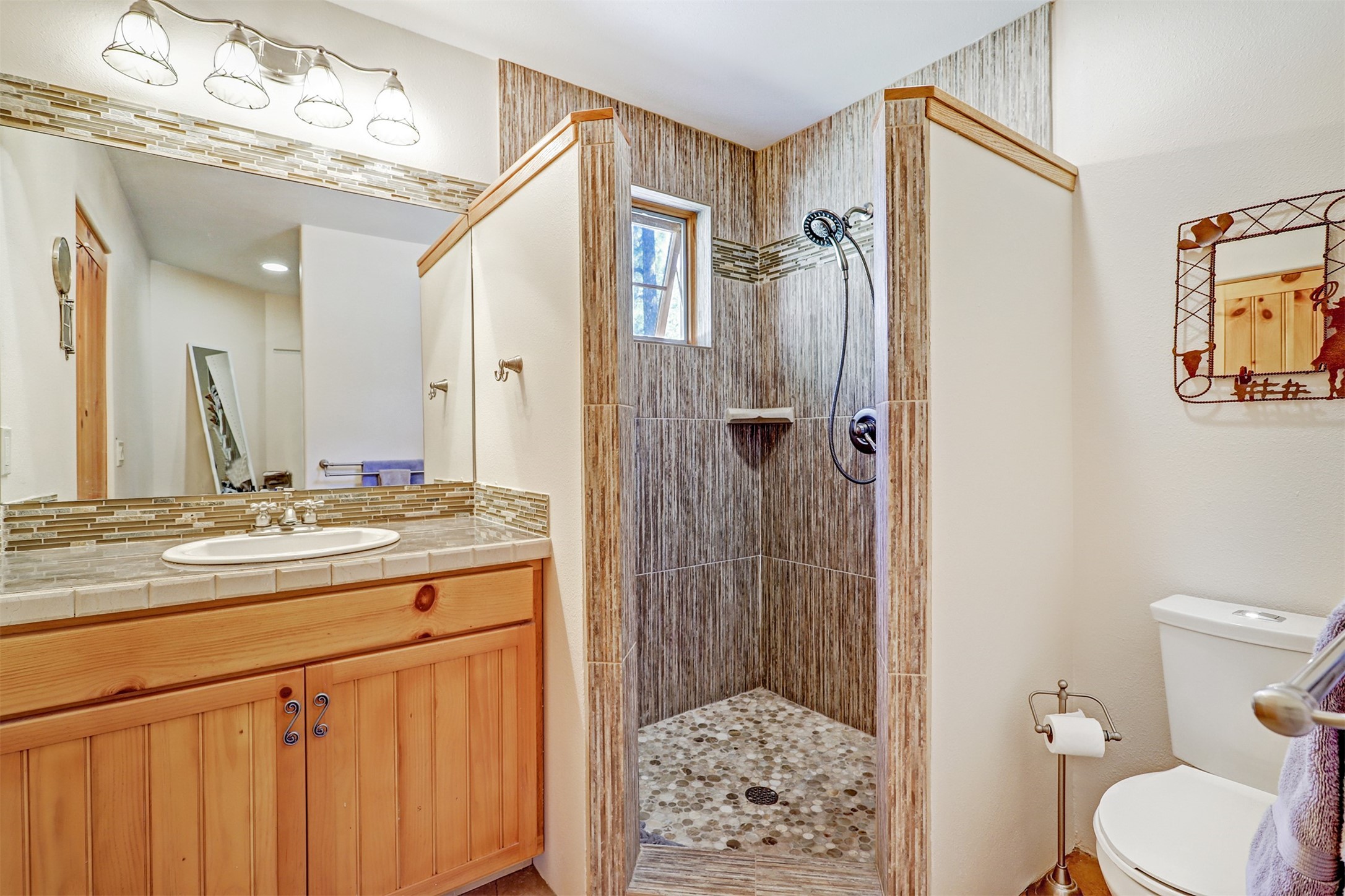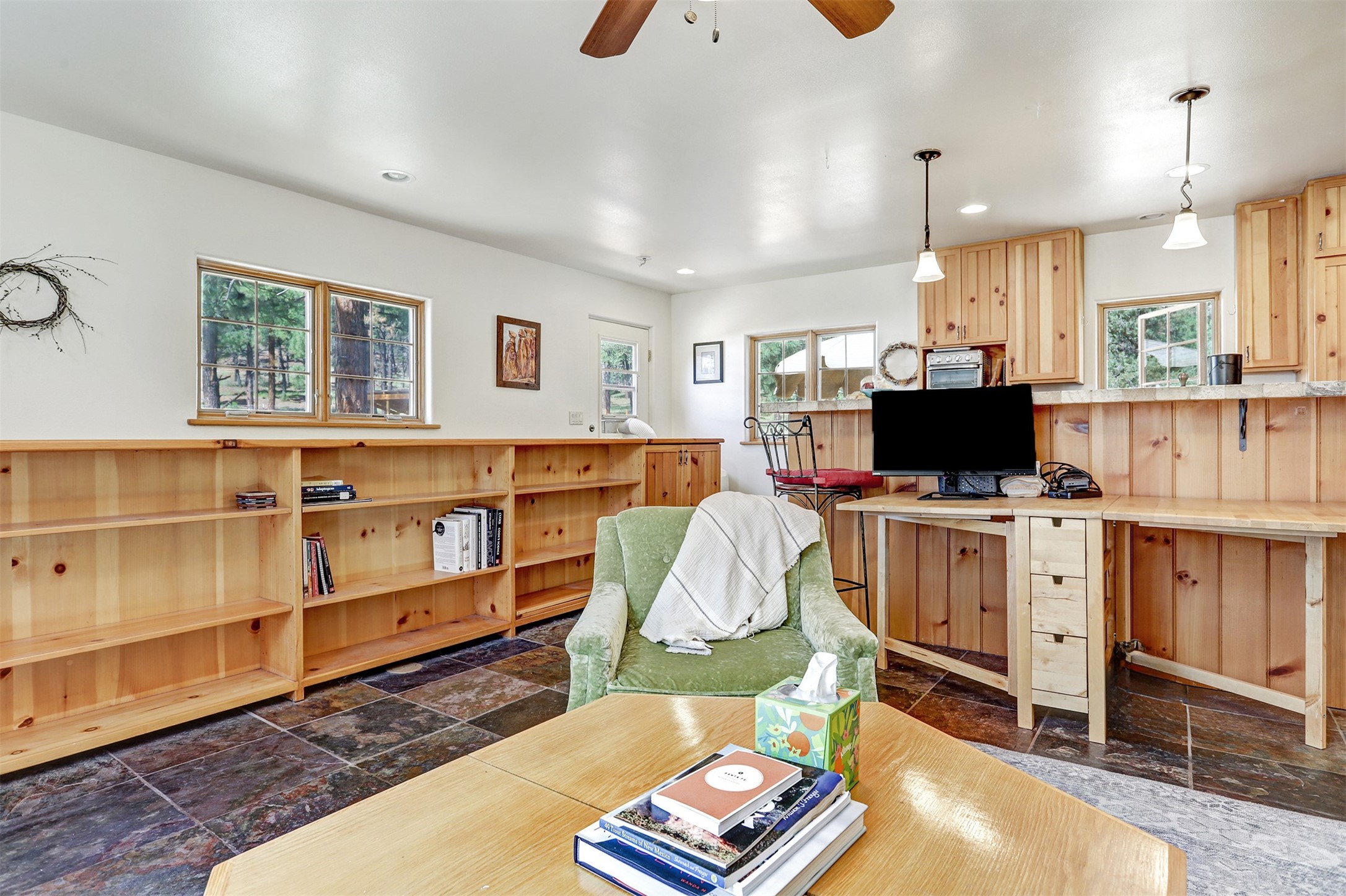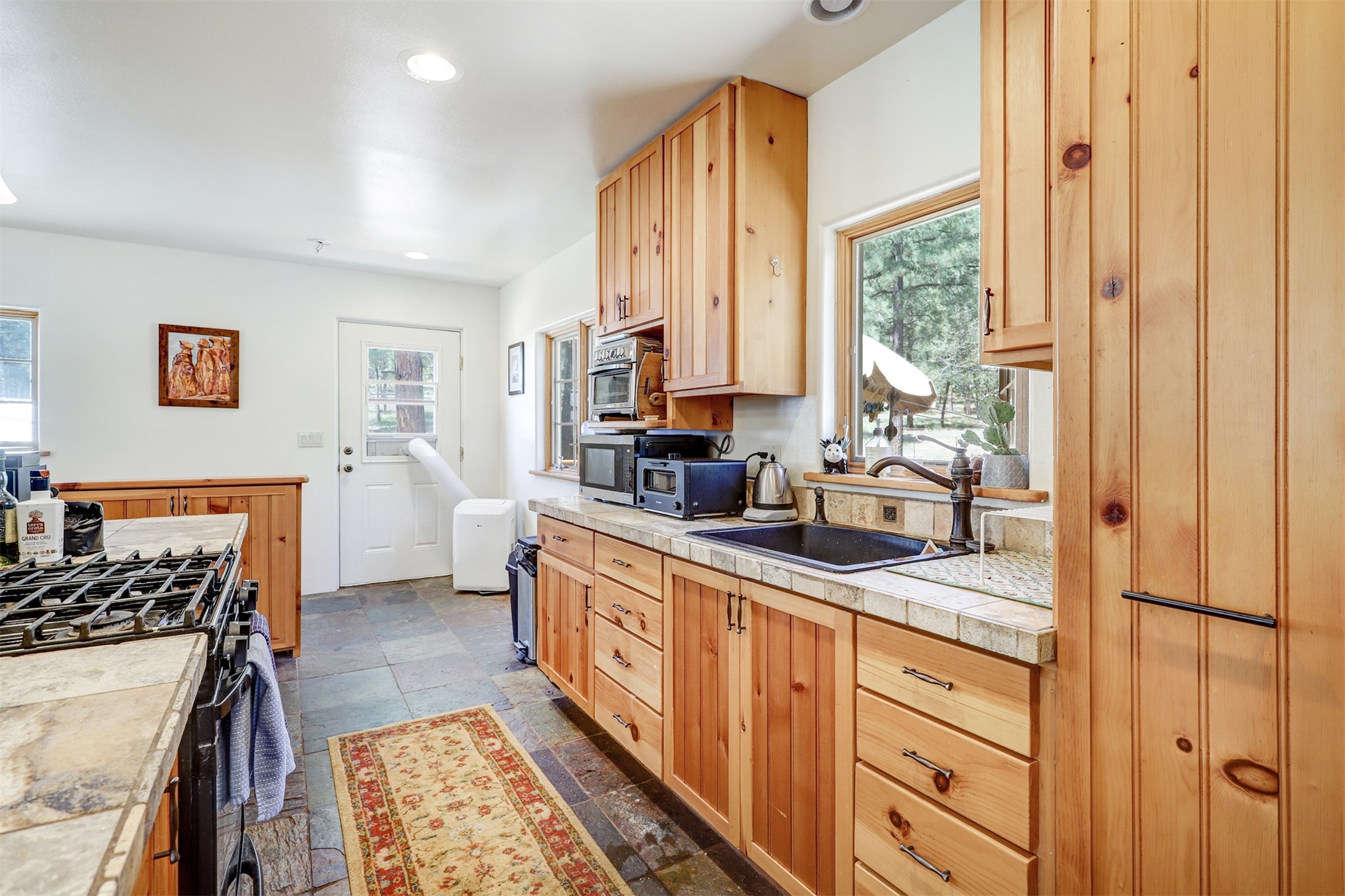 Attention Mountain Bikers and Horse Enthusiasts! Serene 12.5-Acre Retreat with mountain views! Main house and guest casita over garage is just 25 minutes from downtown Santa Fe. Nestled at the base of the stunning Glorieta Mesa this exceptional property with private well offers access to miles of scenic trails perfect for mountain biking and horseback riding. Located across the highway from the famous Glorieta Mountain Biking Trails, this property is ideally located for outdoor lovers. The main home blends rustic charm with modern comfort, featuring a spacious living area, two primary suites, a dedicated office, and a convenient dog bath. The tranquil, private setting makes it ideal for full-time living or a weekend getaway. Step outside to the elevated sandstone terrace--a perfect space for dining, relaxing, or taking in the panoramic mountain views. A standout feature is the 800 sq. ft. casita above the garage, complete with a strong rental history--ideal as an income-producing long-term rental or a welcoming guest suite.Additional highlights include a fully fenced yard, ample RV parking, direct access to the Santa Fe National Forest, and horse-friendly property making it easy to enjoy trail riding and open space right from your property.Whether you're seeking a serene lifestyle, an investment opportunity, or proximity to Santa Fe's rich cultural and outdoor offerings, this unique property delivers on all fronts.