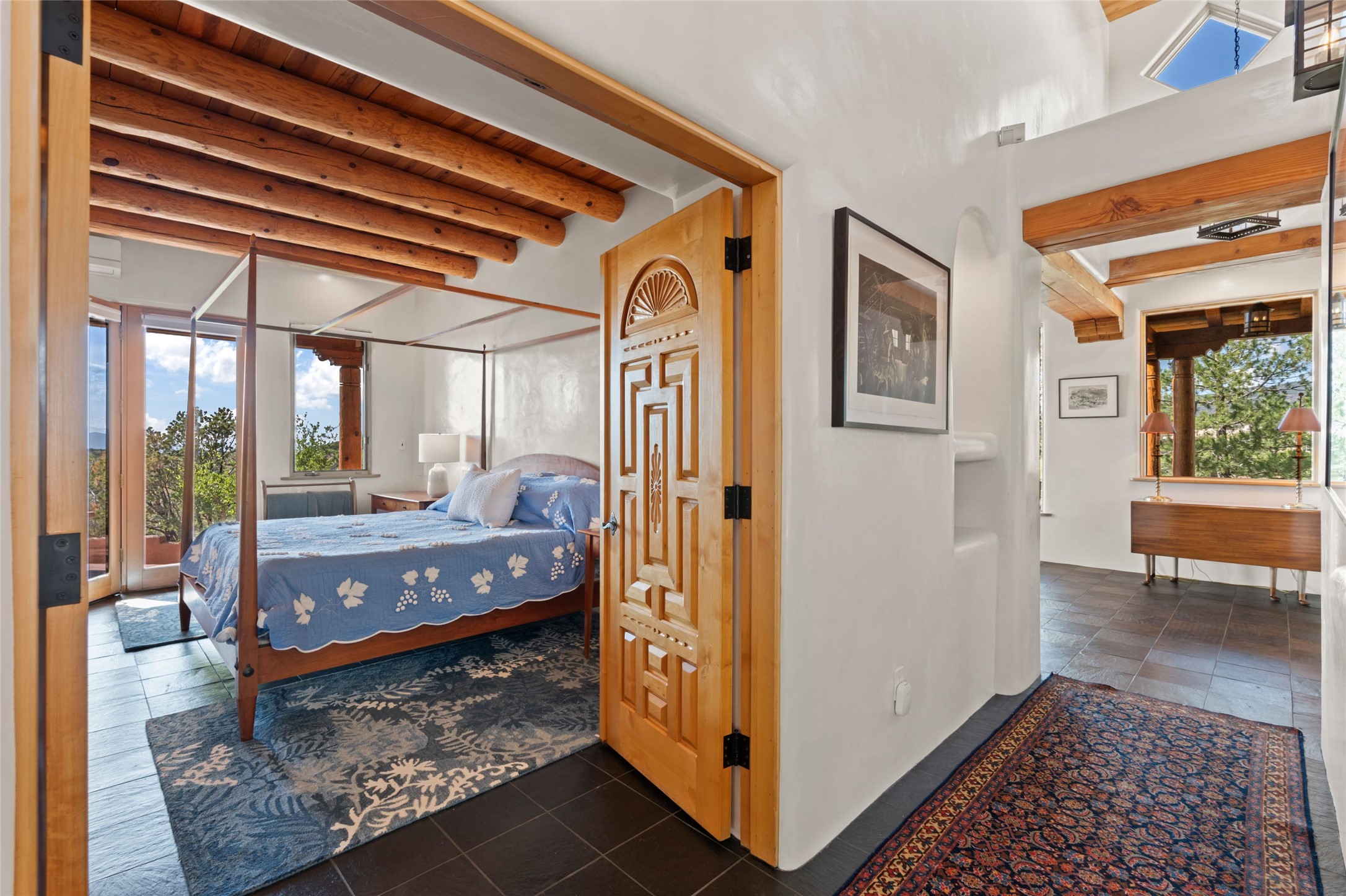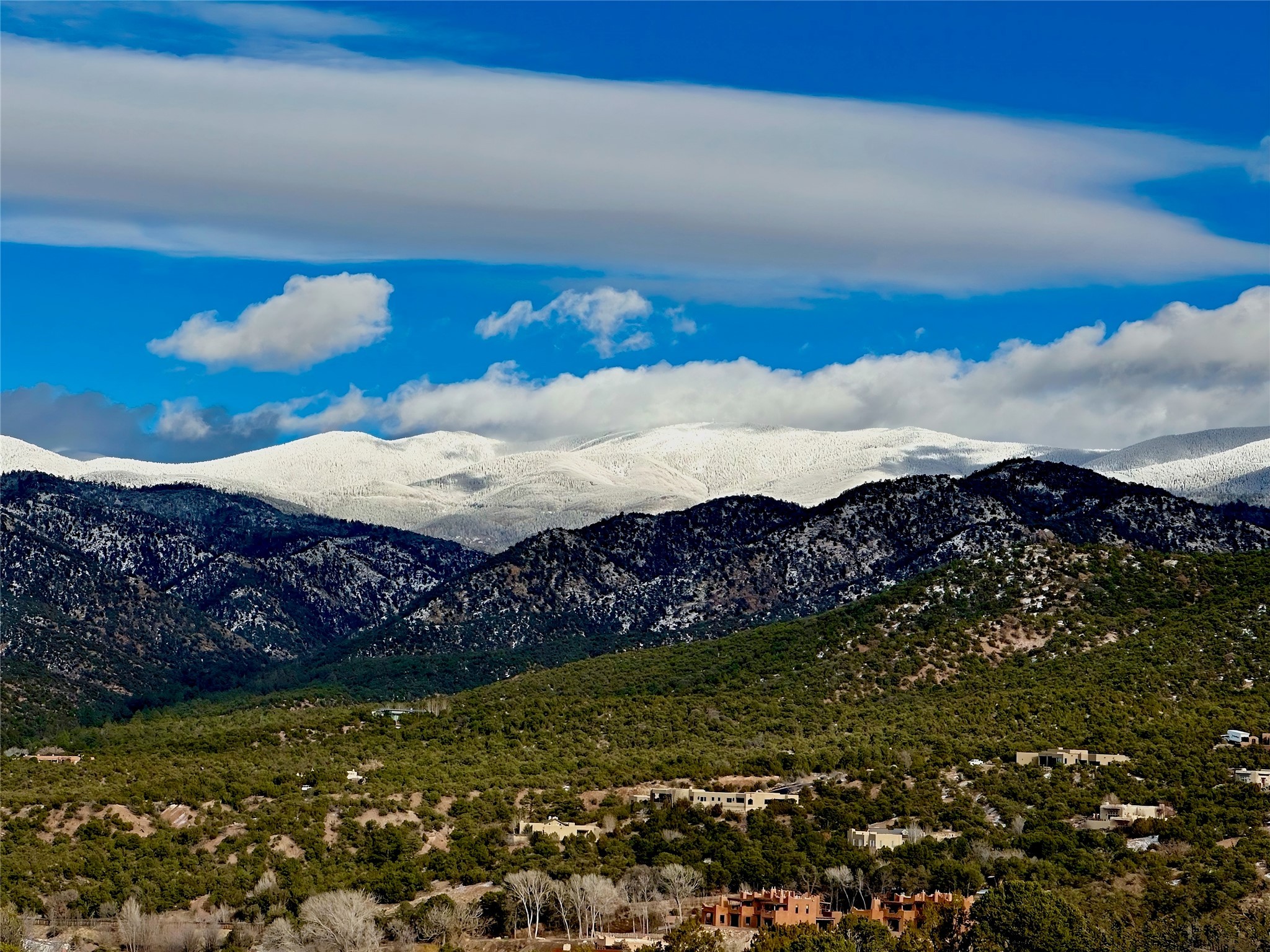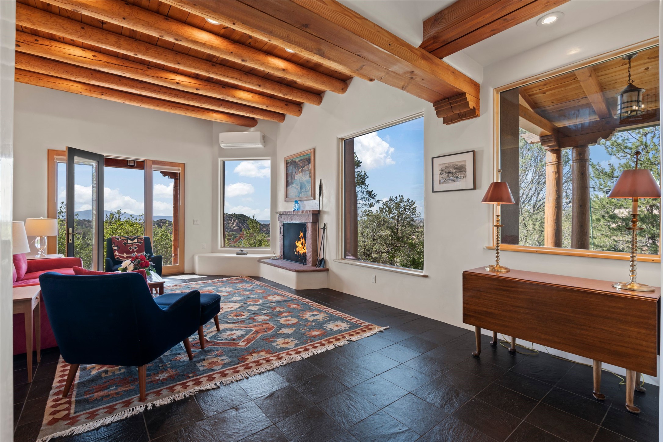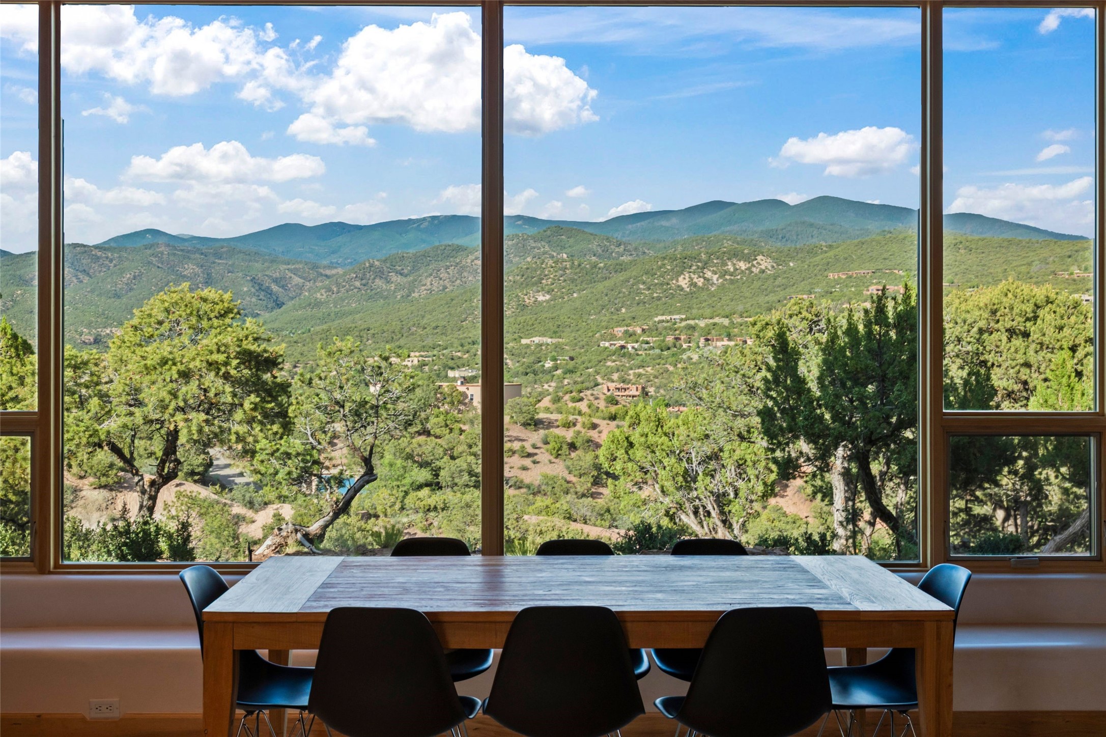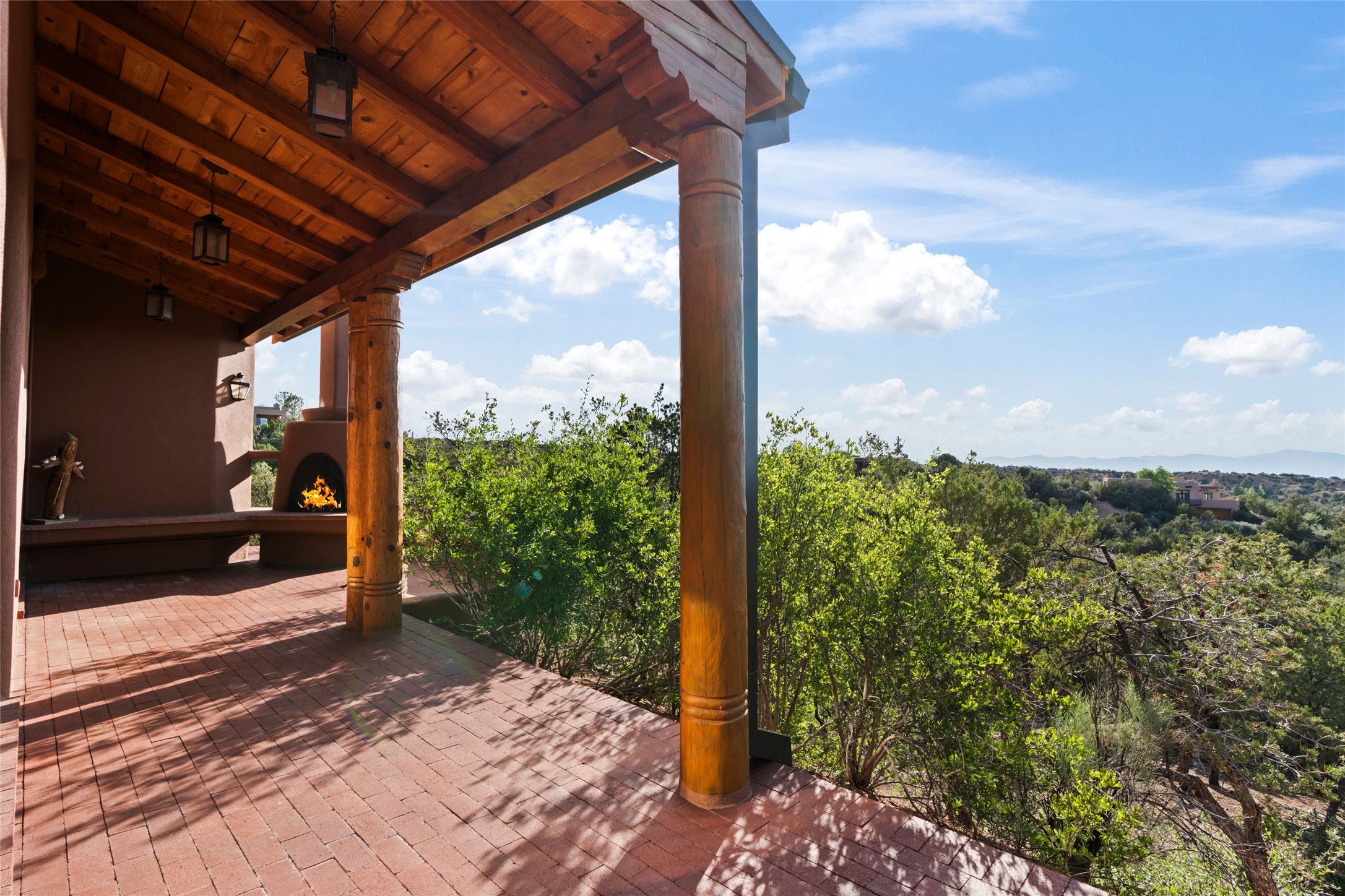 With spectacular mountain views in three directions and an enviable location just seven minutes from the Plaza, this recently remodeled home, originally constructed by noted builder Will Prull, is an exceptional estate. The 4,000-foot, 4-Bed + Office / 3.5 Bath Main House and spacious 1,700-foot 1-Bed / 2-Bath Guest House / Studio have gorgeous wood, stone, and tile finishes throughout. Nestled on a hilltop site within the exclusive Bishop Lodge Estates gated community, the property is located on 2.24 acres that overlook the storied Bishops Lodge and the National Forest. It enjoys unsurpassed, close-up views of the Sangre de Cristo mountains as well as stunning vistas of the Badlands and Jemez Mountains. It is in truly move-in condition having just undergone a comprehensive remodel in 2024-25 that includes new TPO roofs & stucco, new heating & cooling system, solar panels with battery backup, and much more. A short walk takes you to the Bishops Lodge, with numerous complimentary Club Privileges extended to the owners in this particular community. This exquisite, updated home represents a rare opportunity to live in a sought-after, gated community where properties rarely change hands. Call today to experience this extraordinary property.