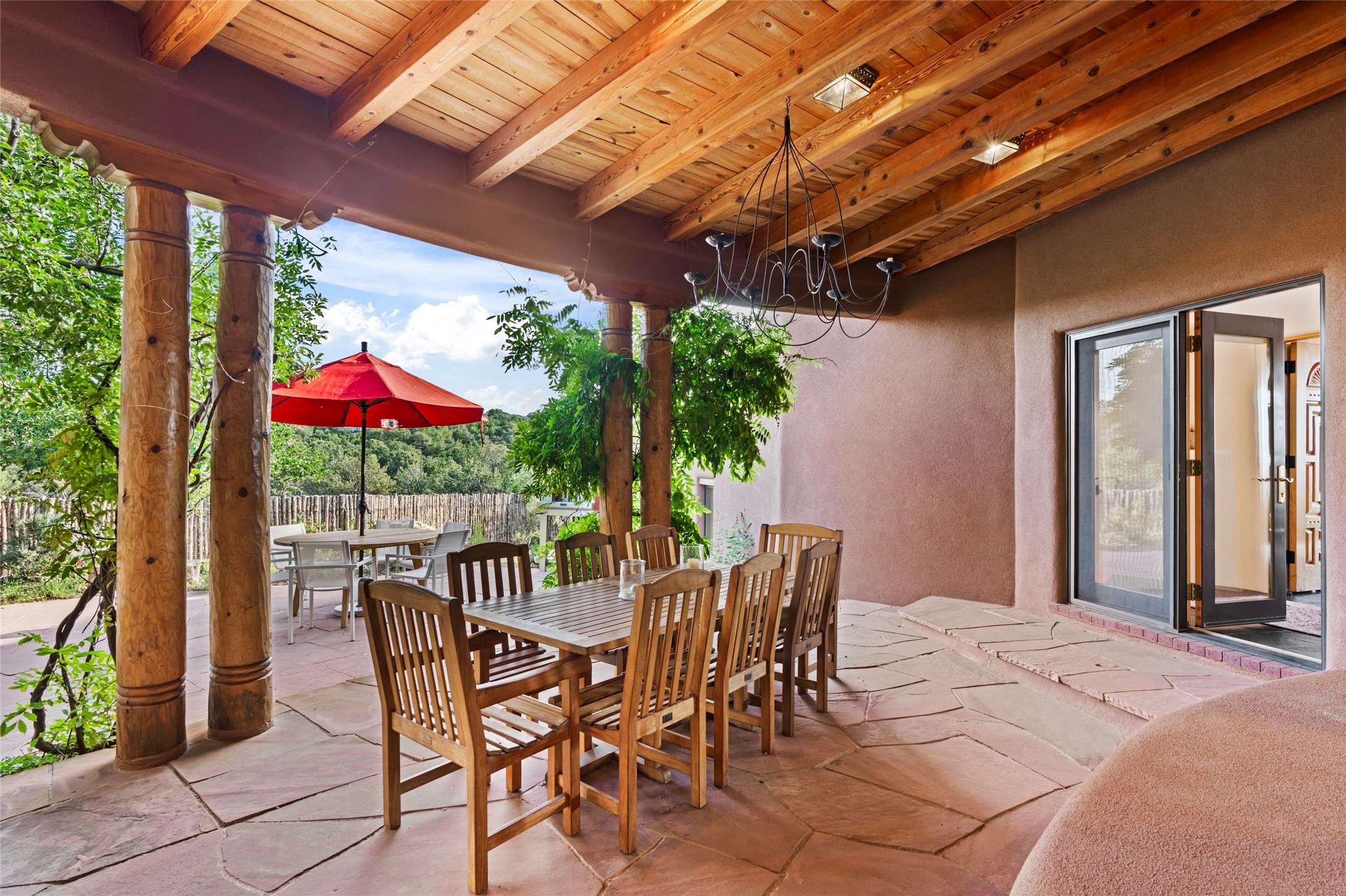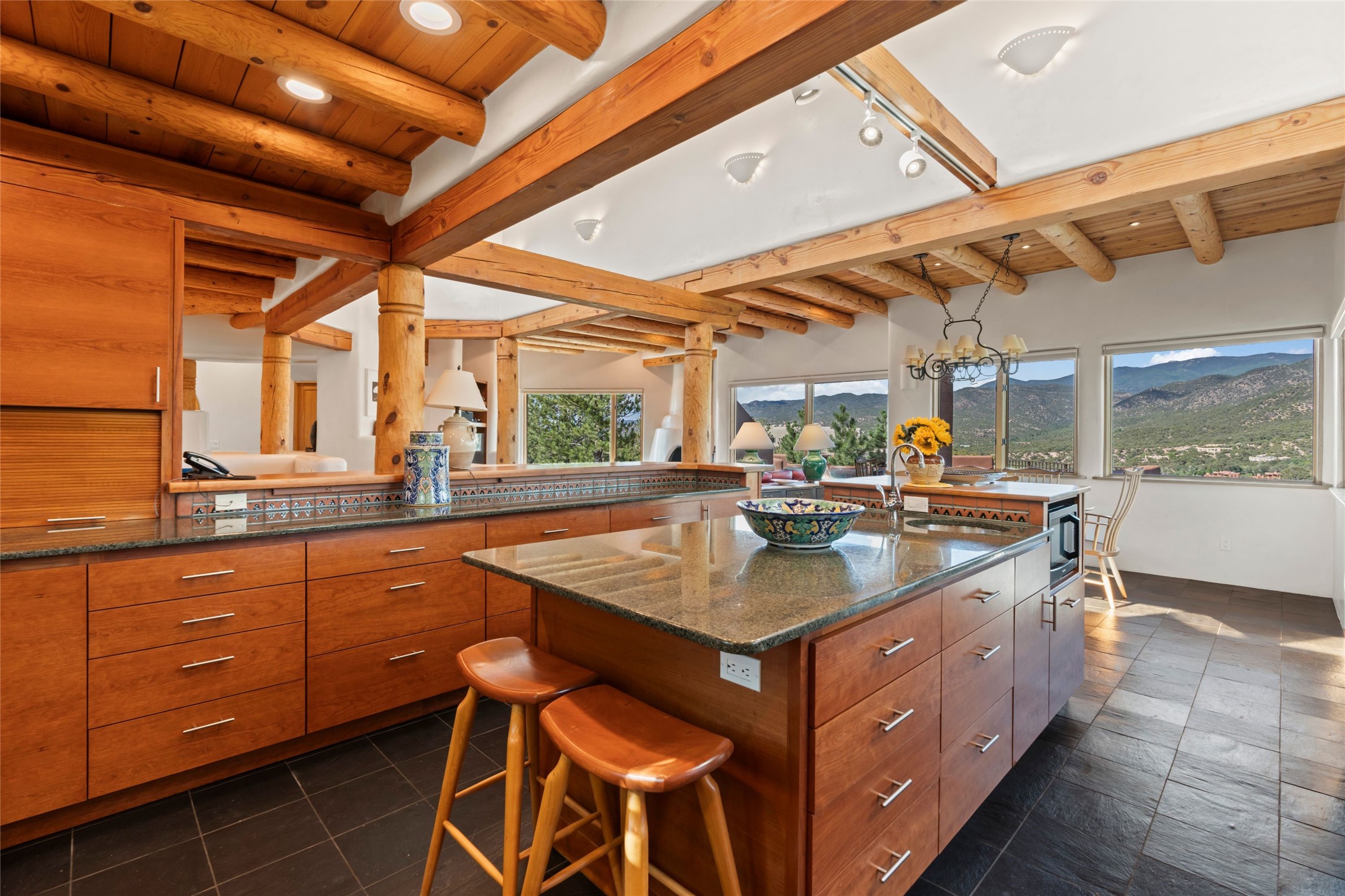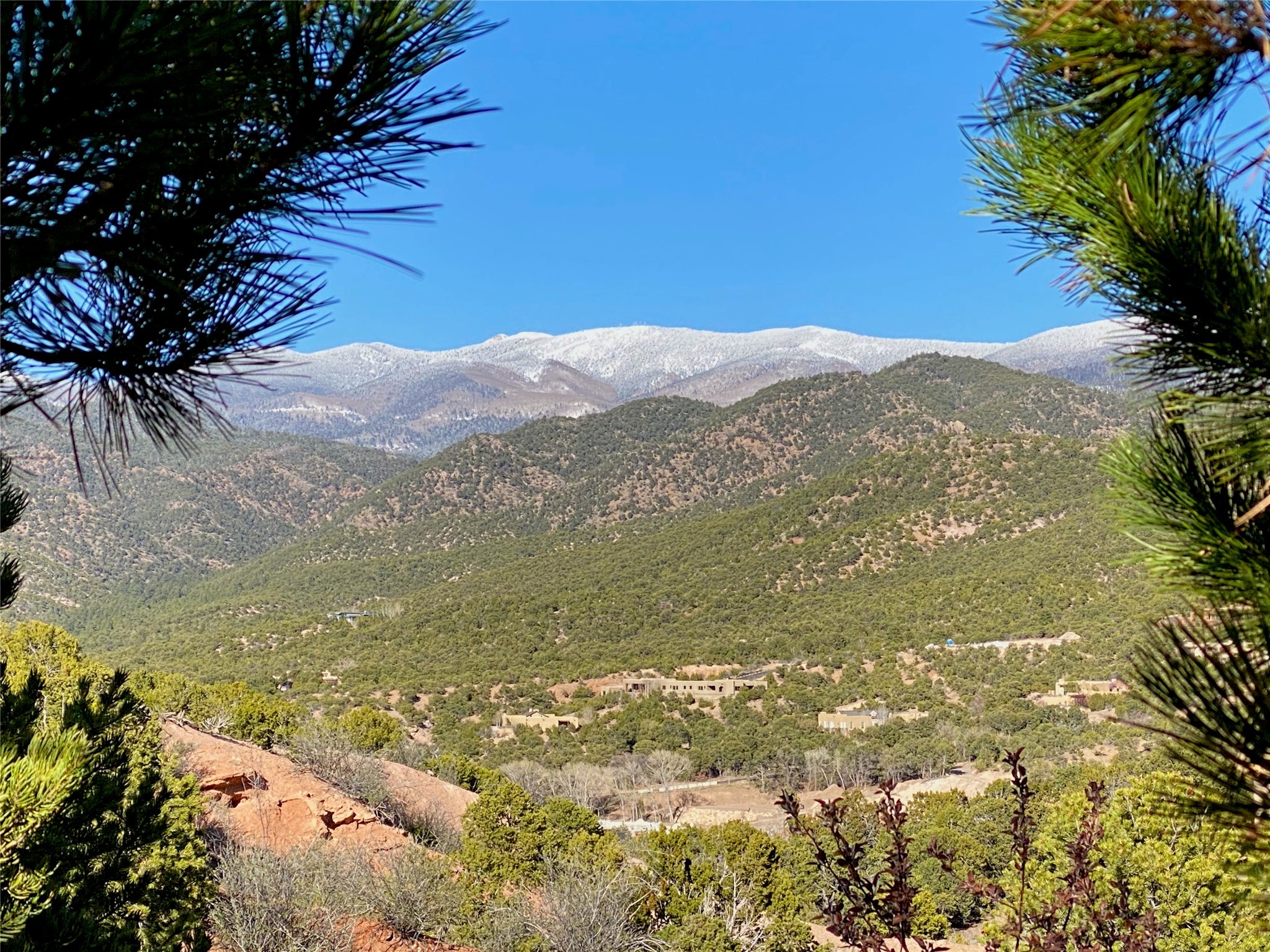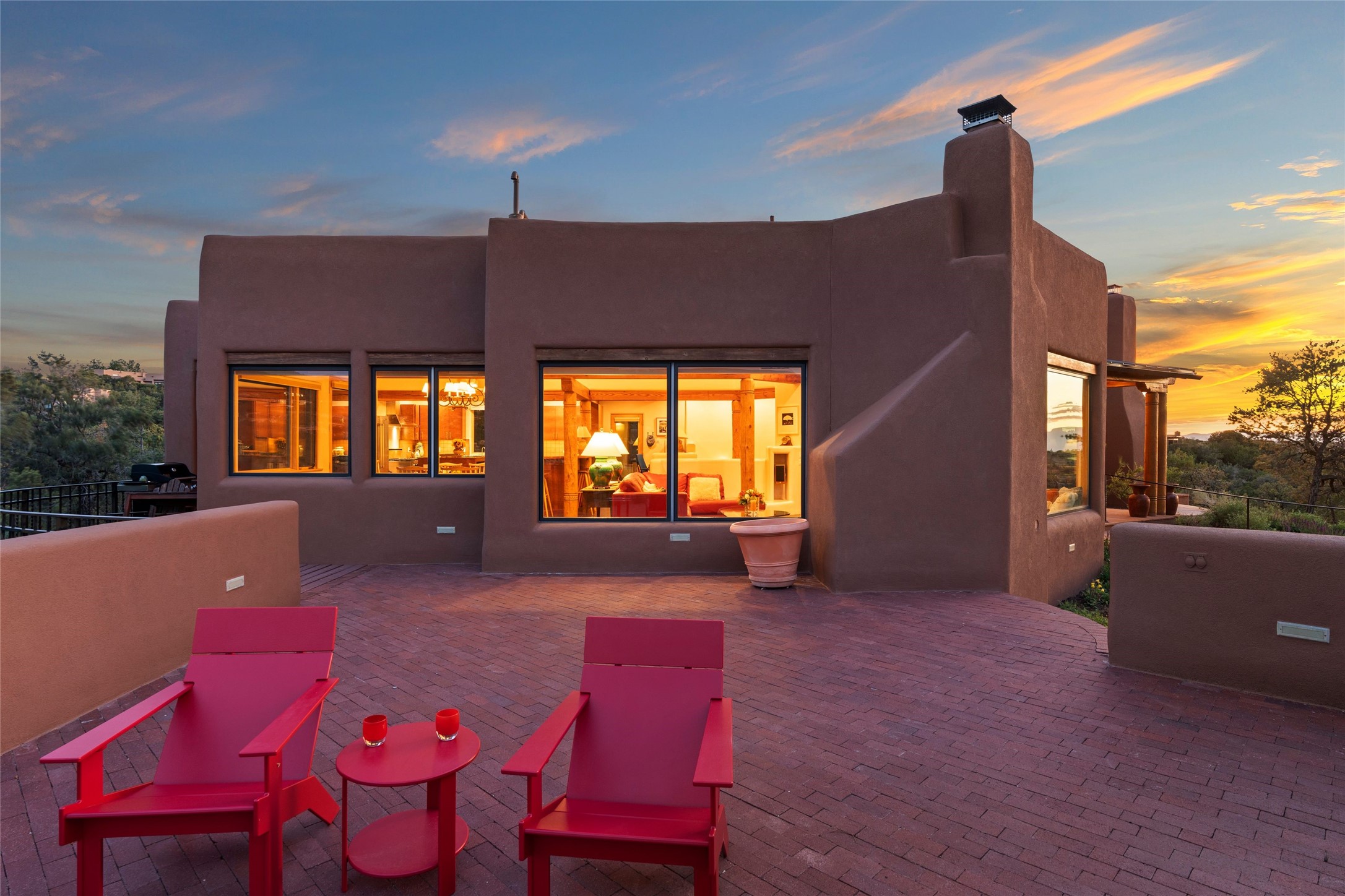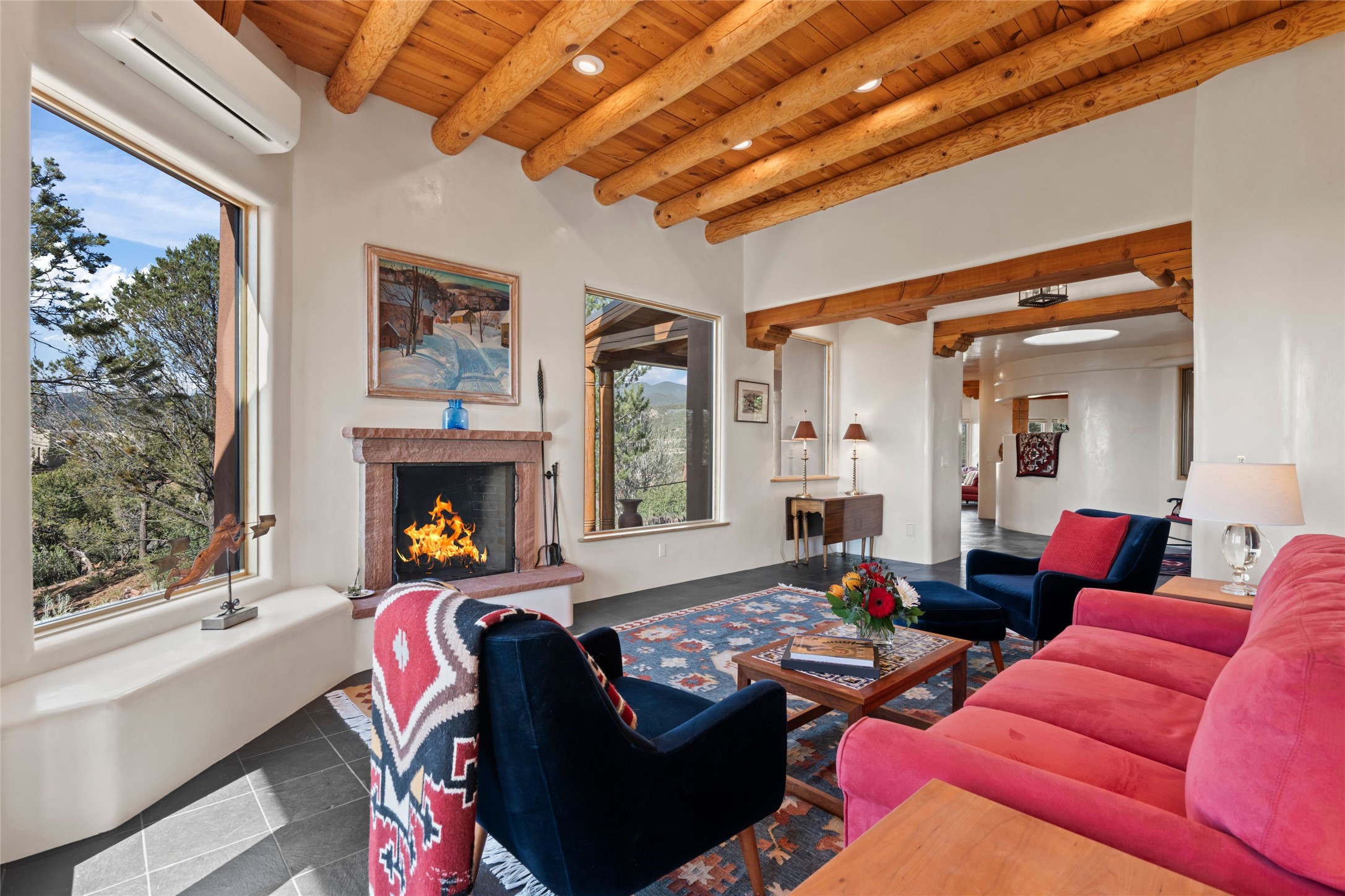 With spectacular mountain views in three directions and an enviable location just seven minutes from the Plaza, this recently remodeled home, originally constructed by noted builder Will Prull, is an exceptional estate. The 4,000-foot, 4-Bed + Office / 3.5 Bath Main House and spacious 1,700-foot 1-Bed / 2-Bath Guest House / Studio have gorgeous wood, stone, and tile finishes throughout. Nestled on a hilltop site within the exclusive Bishop Lodge Estates gated community, the property is located on 2.24 acres that overlook the storied Bishops Lodge and the National Forest. It enjoys unsurpassed, close-up views of the Sangre de Cristo mountains as well as stunning vistas of the Badlands and Jemez Mountains. It is in truly move-in condition having just undergone a comprehensive remodel in 2024-25 that includes new TPO roofs & stucco, new heating & cooling system, solar panels with battery backup, and much more. A short walk takes you to the Bishops Lodge, with numerous complimentary Club Privileges extended to the owners in this particular community. This exquisite, updated home represents a rare opportunity to live in a sought-after, gated community where properties rarely change hands. Call today to experience this extraordinary property.