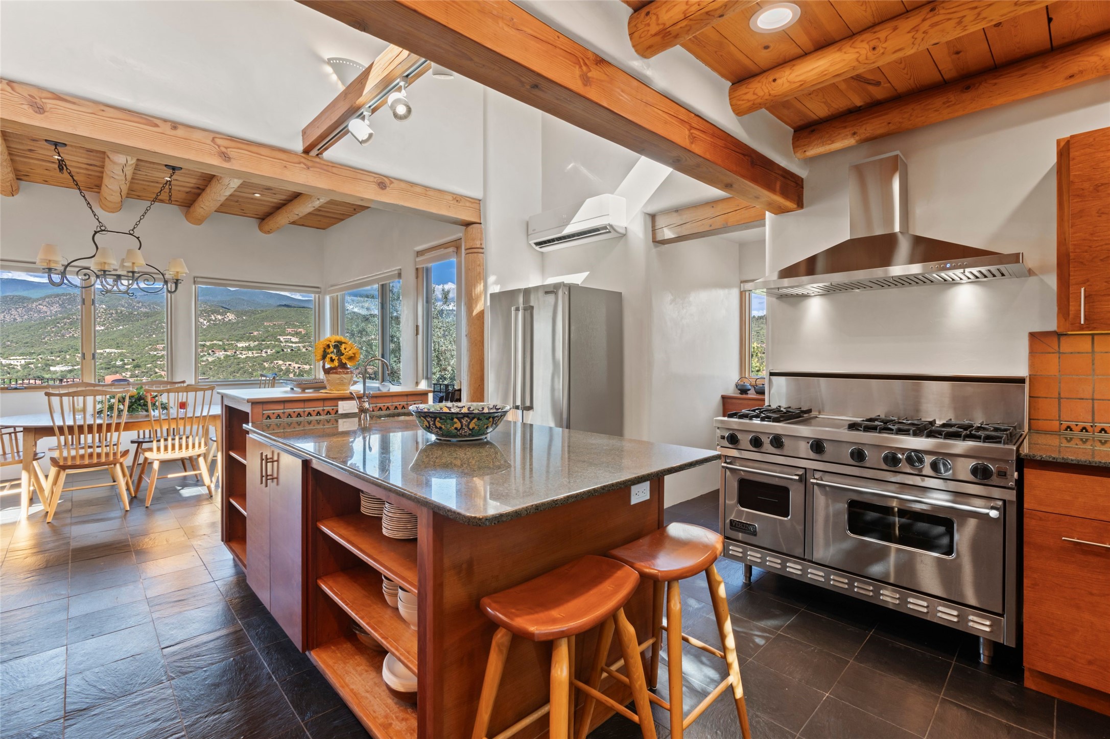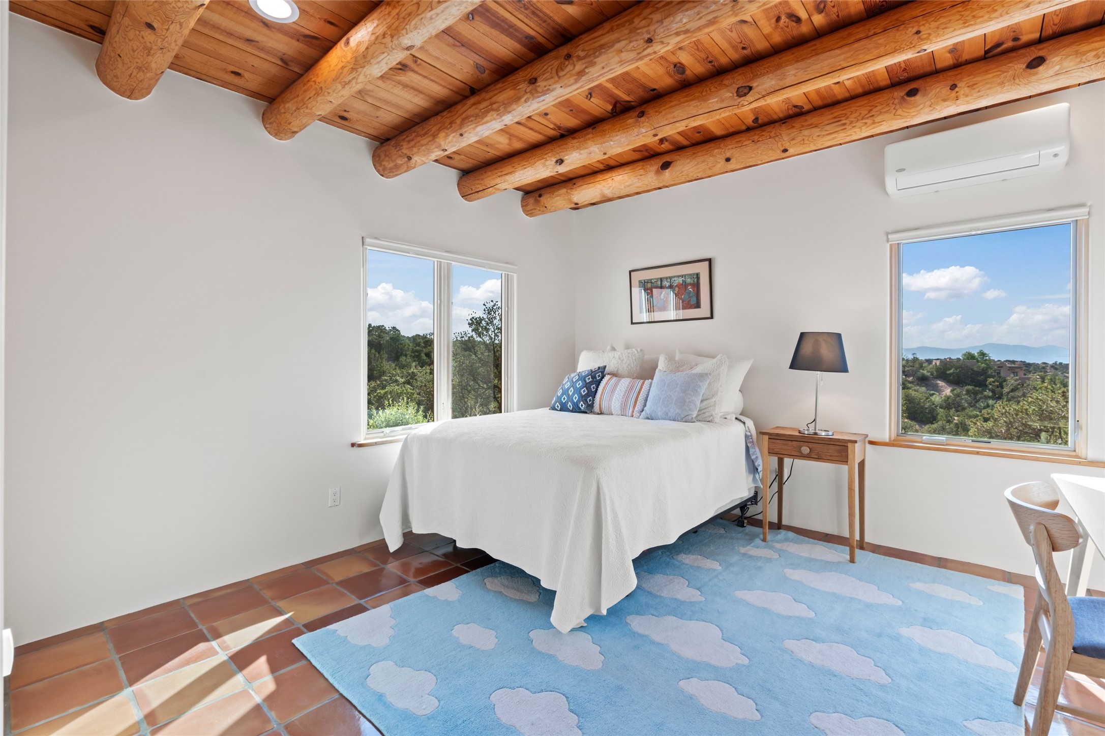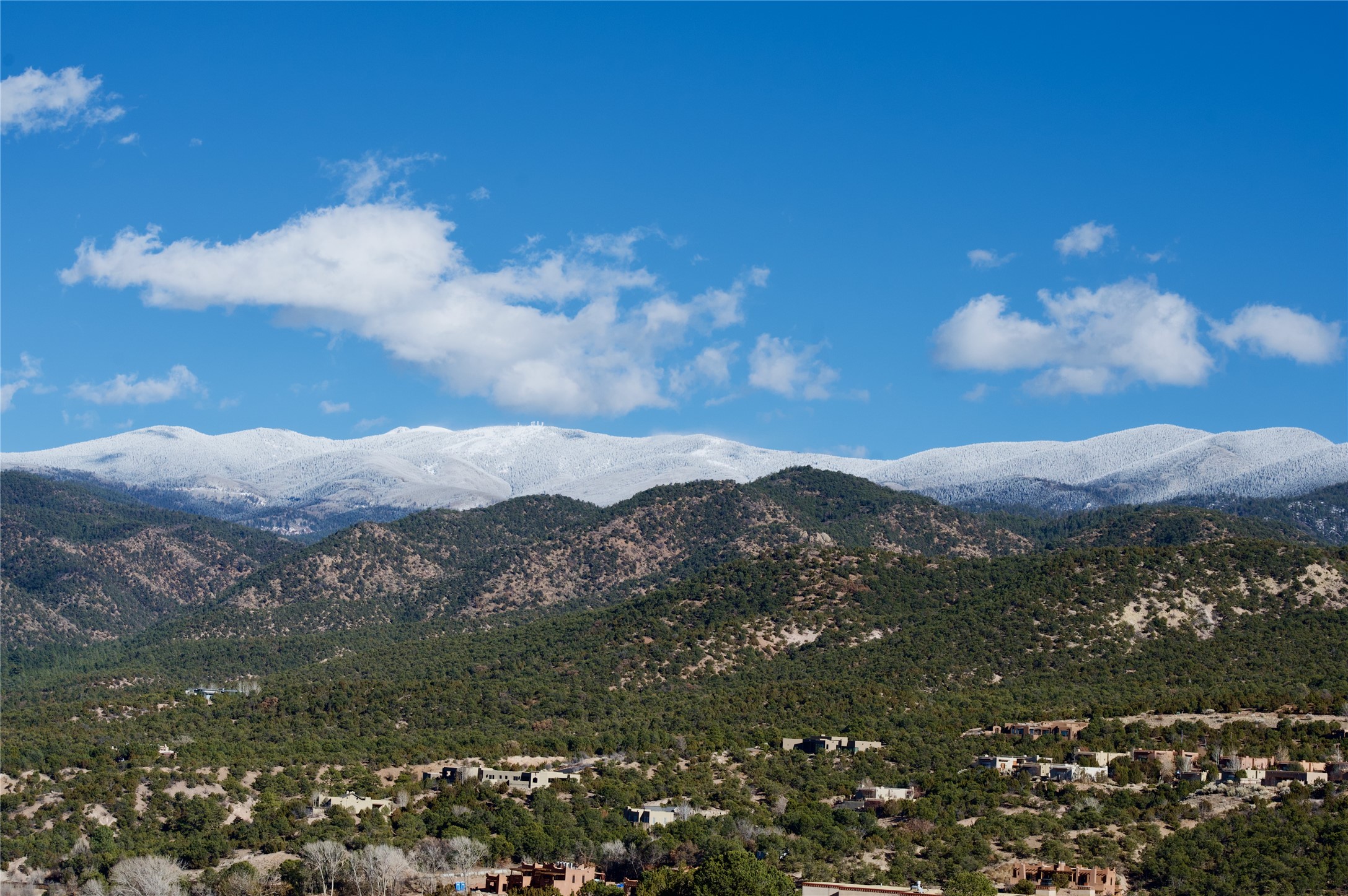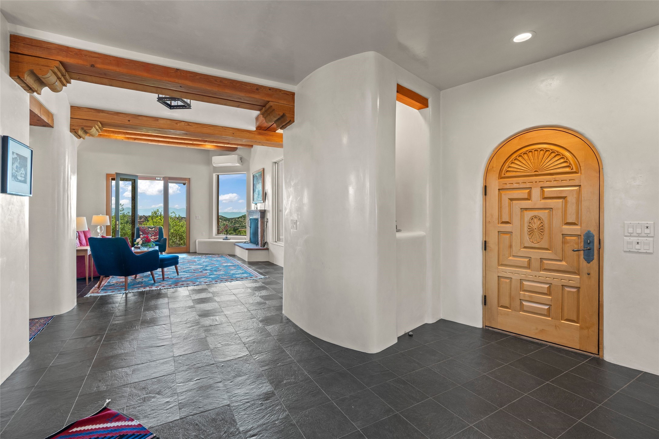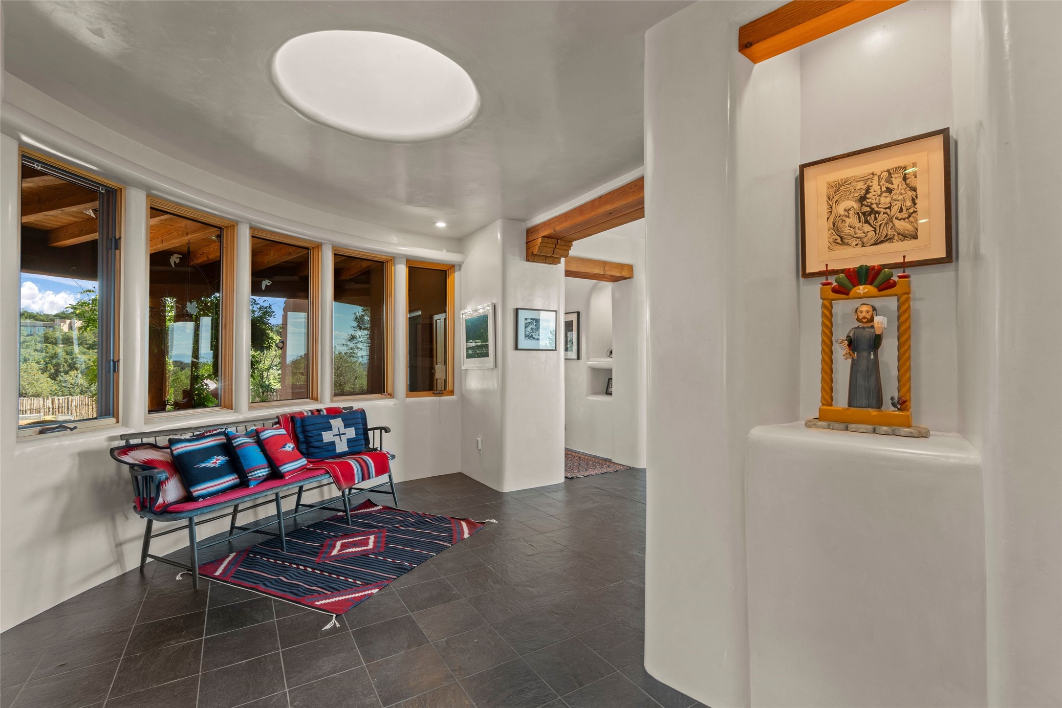 With spectacular mountain views in three directions and an enviable location just seven minutes from the Plaza, this recently remodeled home, originally constructed by noted builder Will Prull, is an exceptional estate. The 4,000-foot, 4-Bed + Office / 3.5 Bath Main House and spacious 1,700-foot 1-Bed / 2-Bath Guest House / Studio have gorgeous wood, stone, and tile finishes throughout. Nestled on a hilltop site within the exclusive Bishop Lodge Estates gated community, the property is located on 2.24 acres that overlook the storied Bishops Lodge and the National Forest. It enjoys unsurpassed, close-up views of the Sangre de Cristo mountains as well as stunning vistas of the Badlands and Jemez Mountains. It is in truly move-in condition having just undergone a comprehensive remodel in 2024-25 that includes new TPO roofs & stucco, new heating & cooling system, solar panels with battery backup, and much more. A short walk takes you to the Bishops Lodge, with numerous complimentary Club Privileges extended to the owners in this particular community. This exquisite, updated home represents a rare opportunity to live in a sought-after, gated community where properties rarely change hands. Call today to experience this extraordinary property.