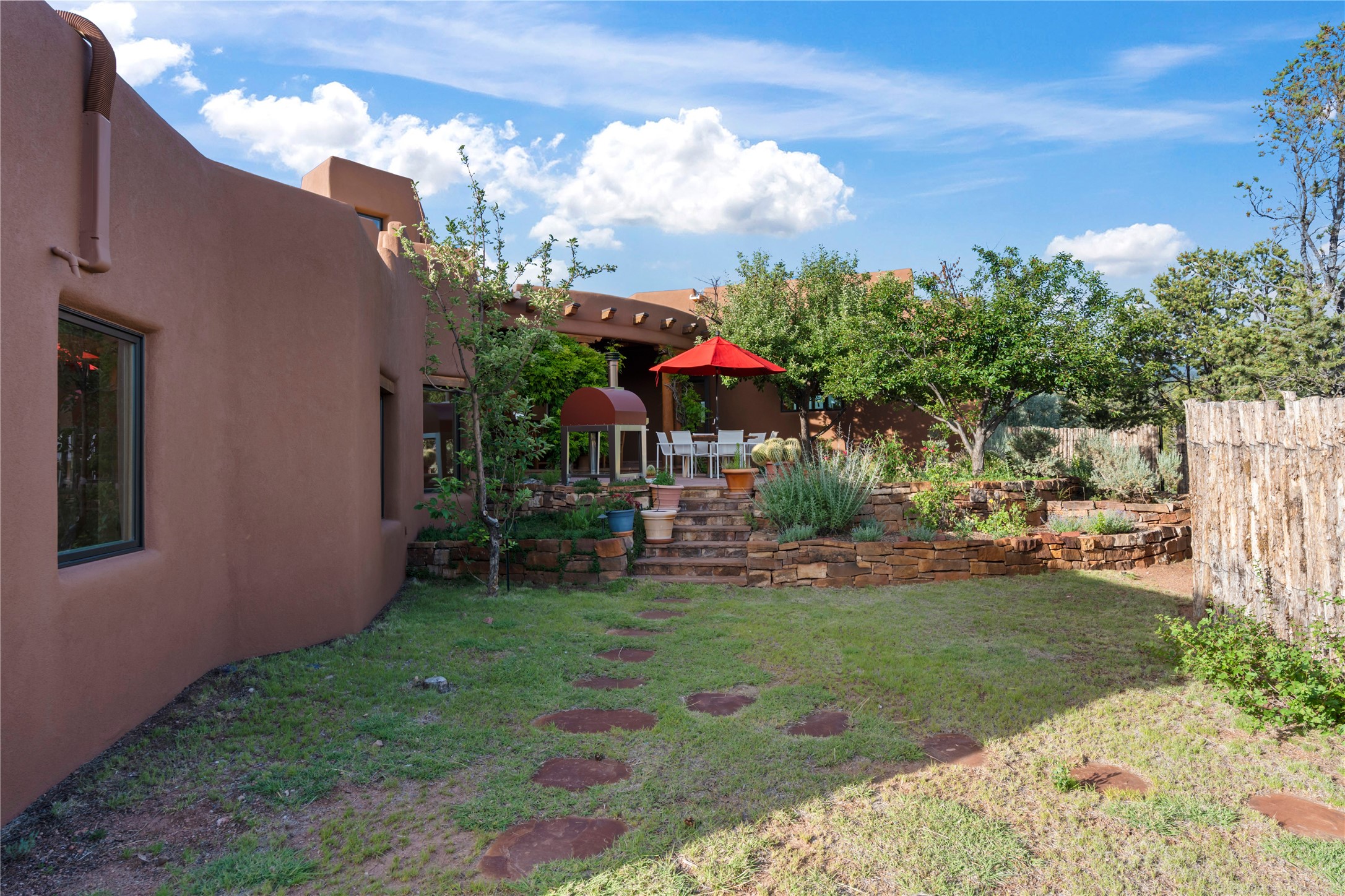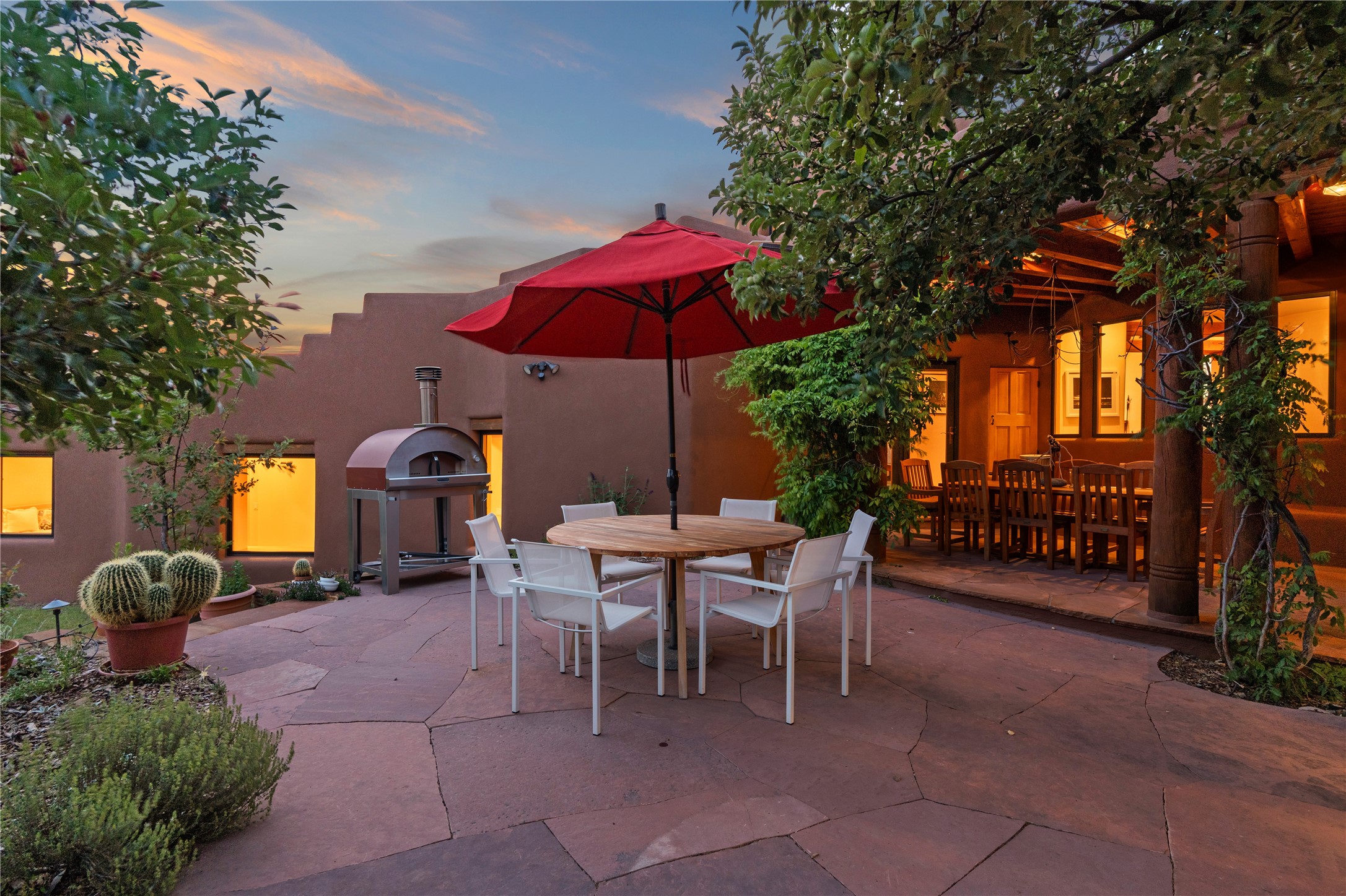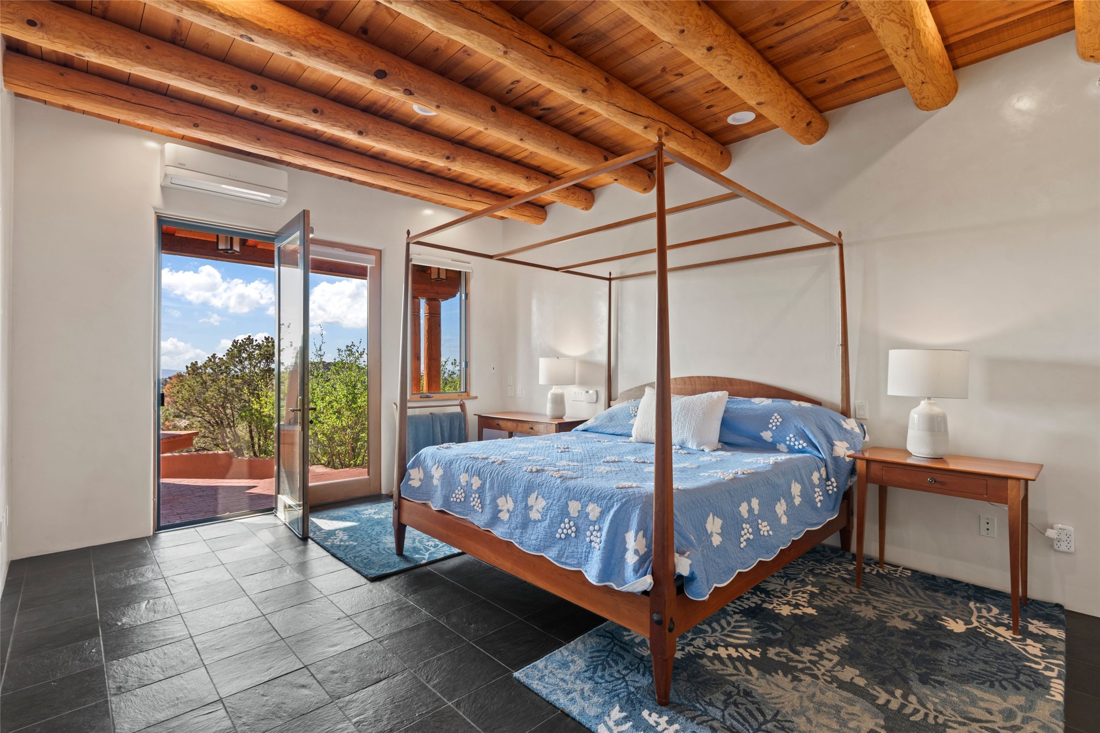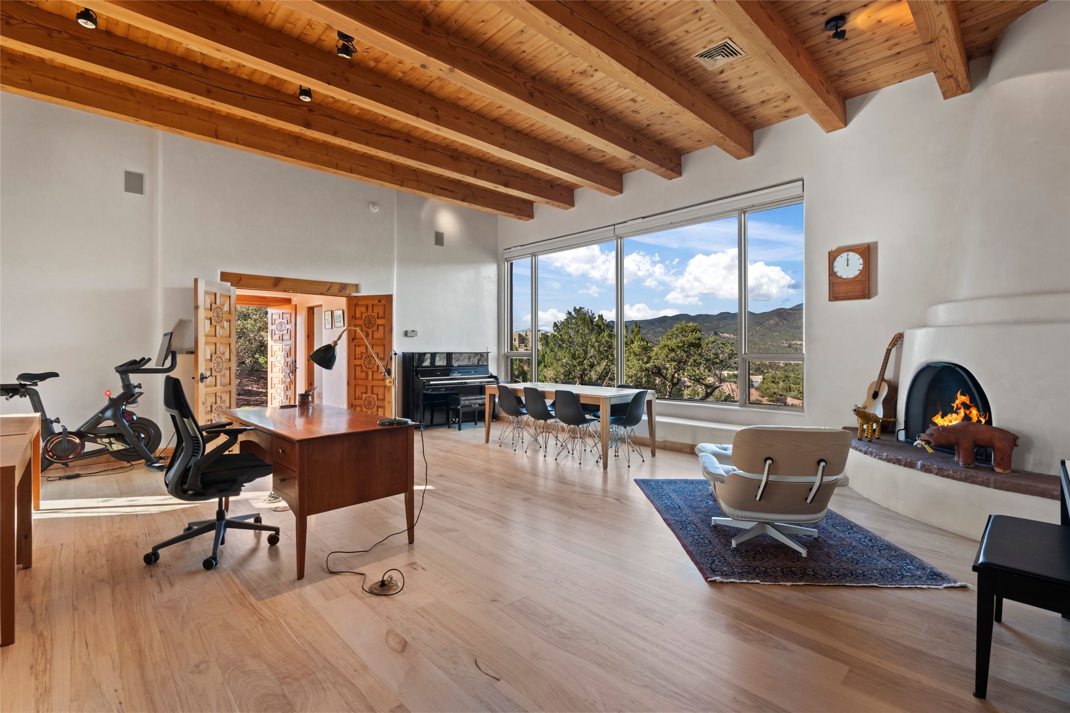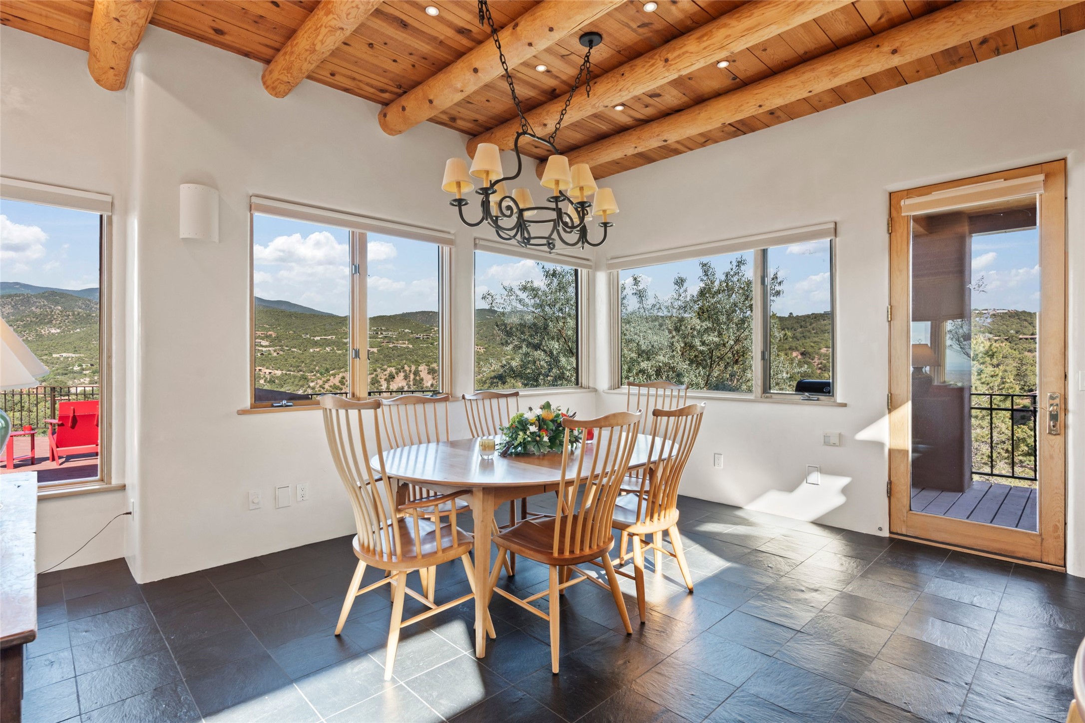 With spectacular mountain views in three directions and an enviable location just seven minutes from the Plaza, this recently remodeled home, originally constructed by noted builder Will Prull, is an exceptional estate. The 4,000-foot, 4-Bed + Office / 3.5 Bath Main House and spacious 1,700-foot 1-Bed / 2-Bath Guest House / Studio have gorgeous wood, stone, and tile finishes throughout. Nestled on a hilltop site within the exclusive Bishop Lodge Estates gated community, the property is located on 2.24 acres that overlook the storied Bishops Lodge and the National Forest. It enjoys unsurpassed, close-up views of the Sangre de Cristo mountains as well as stunning vistas of the Badlands and Jemez Mountains. It is in truly move-in condition having just undergone a comprehensive remodel in 2024-25 that includes new TPO roofs & stucco, new heating & cooling system, solar panels with battery backup, and much more. A short walk takes you to the Bishops Lodge, with numerous complimentary Club Privileges extended to the owners in this particular community. This exquisite, updated home represents a rare opportunity to live in a sought-after, gated community where properties rarely change hands. Call today to experience this extraordinary property.