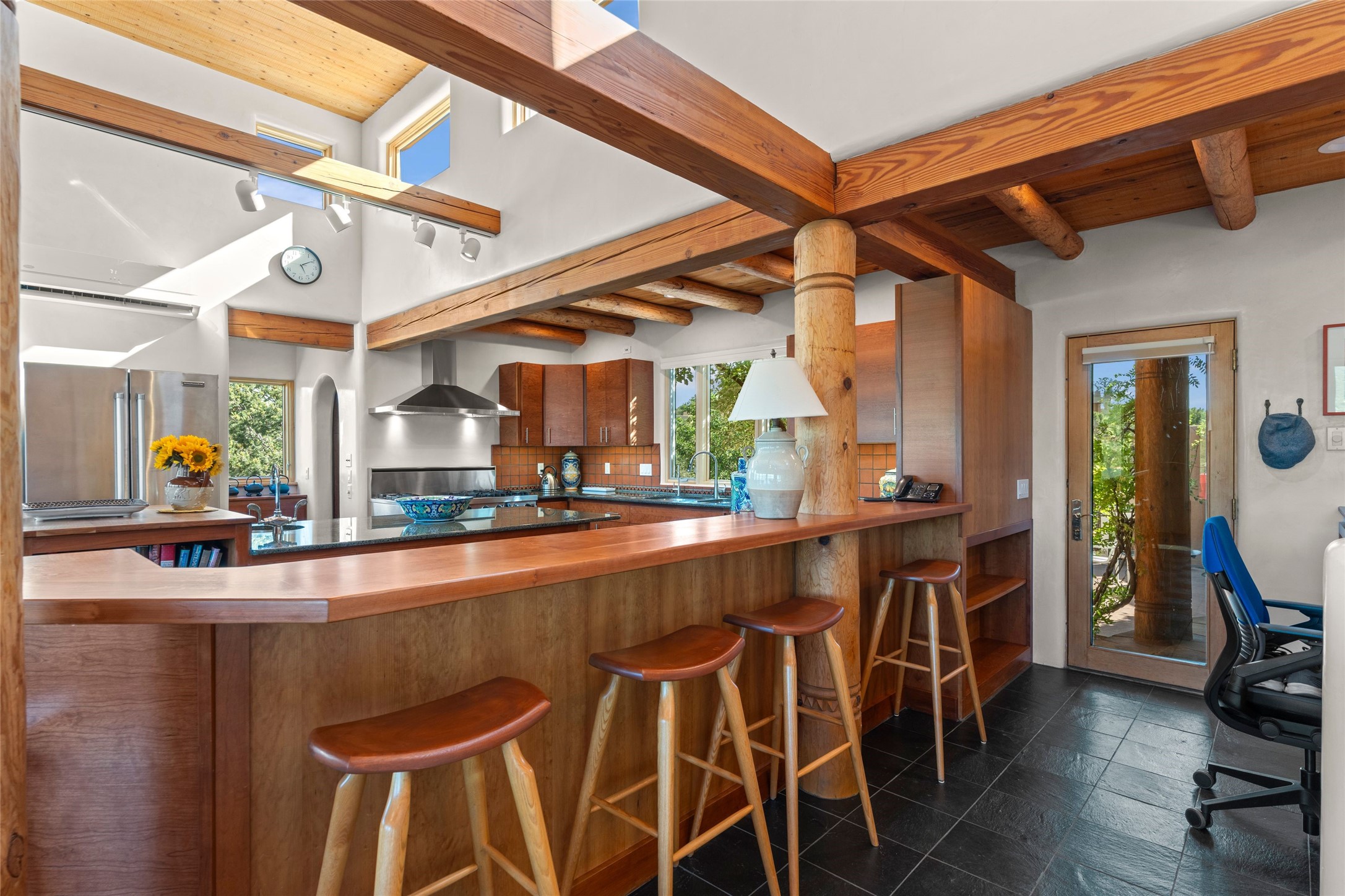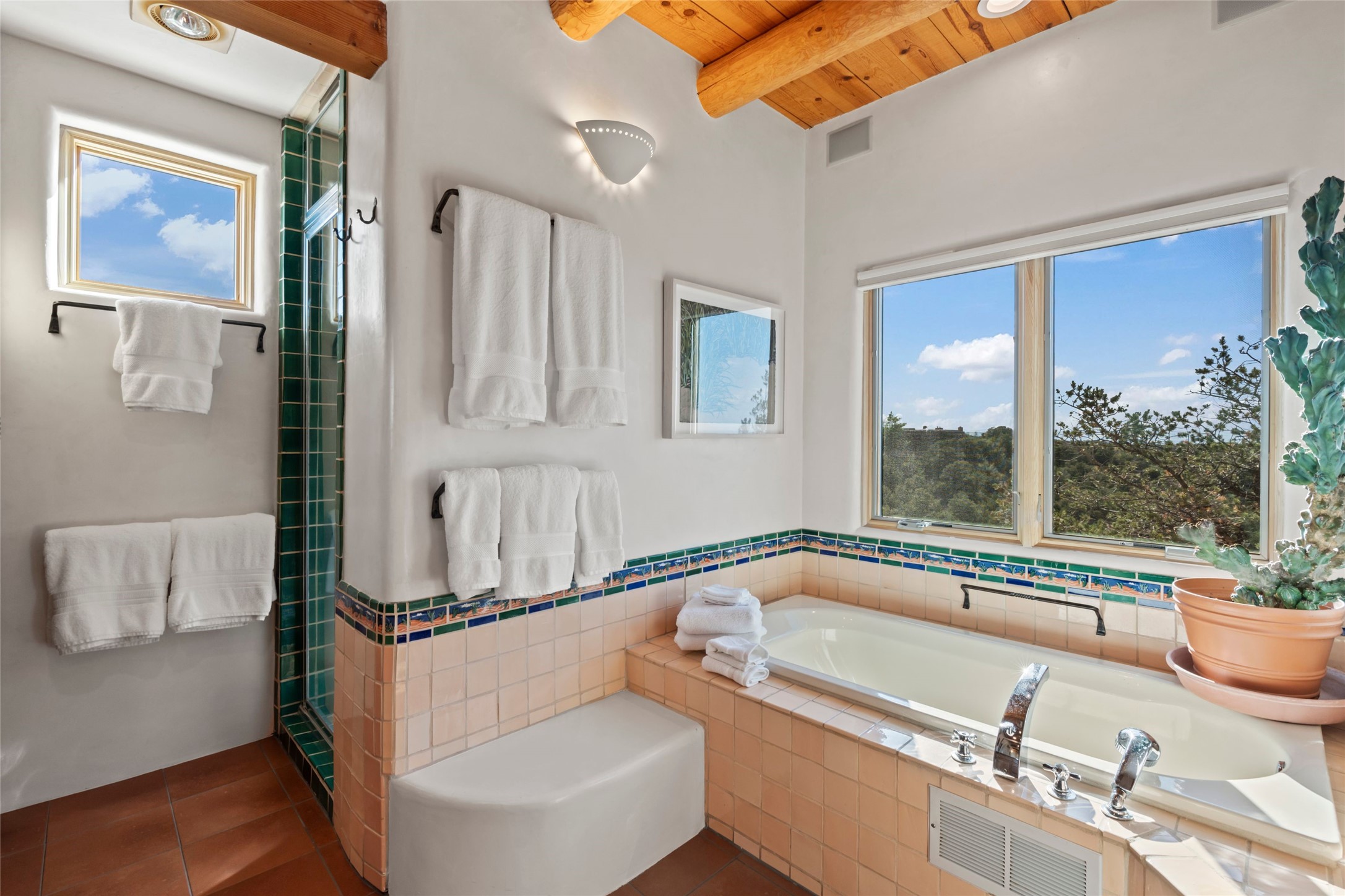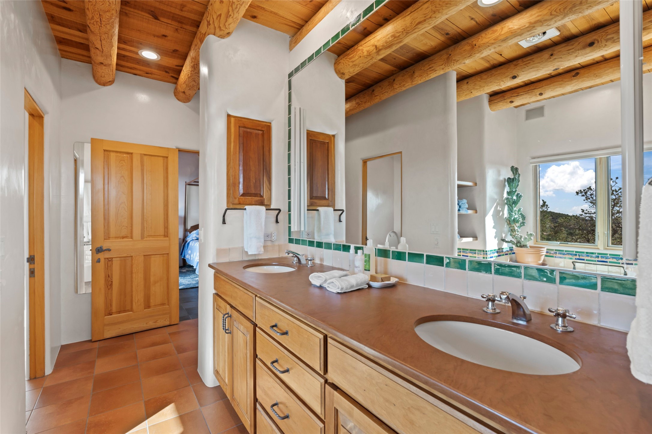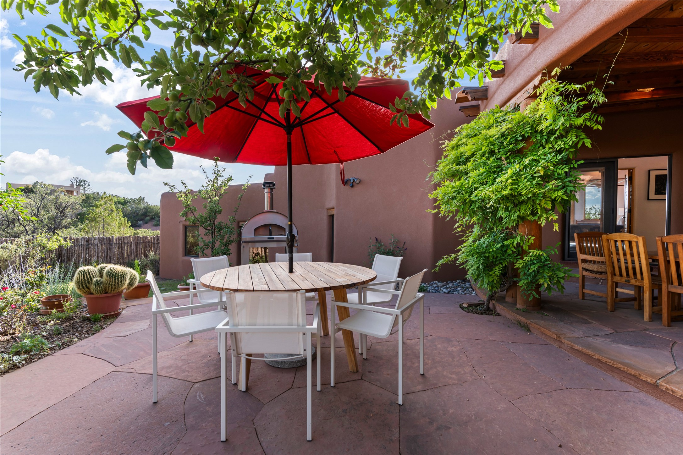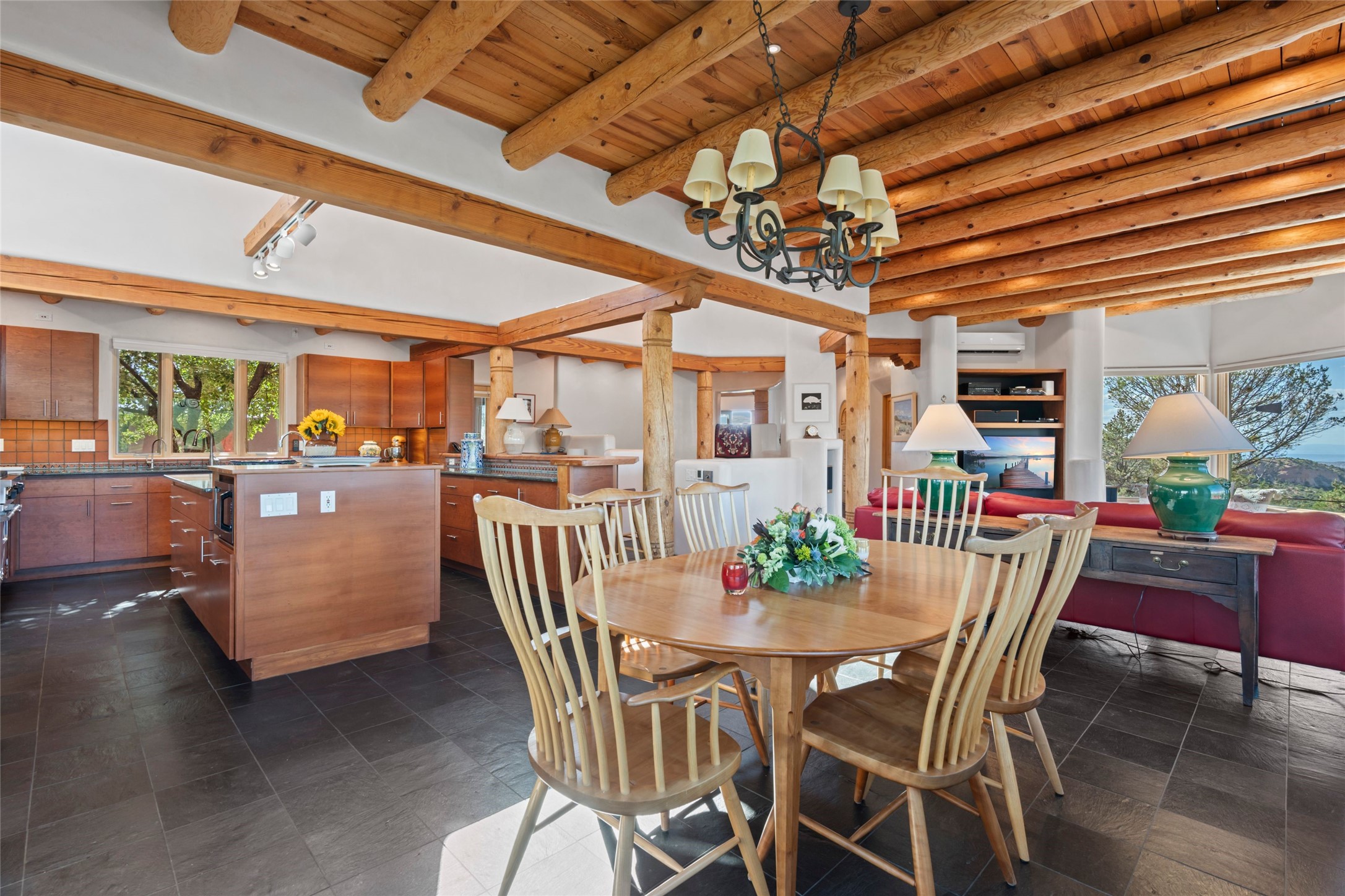With spectacular mountain views in three directions and an enviable location just seven minutes from the Plaza, this recently remodeled home, originally constructed by noted builder Will Prull, is an exceptional estate. The 4,000-foot, 4-Bed + Office / 3.5 Bath Main House and spacious 1,700-foot 1-Bed / 2-Bath Guest House / Studio have gorgeous wood, stone, and tile finishes throughout. Nestled on a hilltop site within the exclusive Bishop Lodge Estates gated community, the property is located on 2.24 acres that overlook the storied Bishops Lodge and the National Forest. It enjoys unsurpassed, close-up views of the Sangre de Cristo mountains as well as stunning vistas of the Badlands and Jemez Mountains. It is in truly move-in condition having just undergone a comprehensive remodel in 2024-25 that includes new TPO roofs & stucco, new heating & cooling system, solar panels with battery backup, and much more. A short walk takes you to the Bishops Lodge, with numerous complimentary Club Privileges extended to the owners in this particular community. This exquisite, updated home represents a rare opportunity to live in a sought-after, gated community where properties rarely change hands. Call today to experience this extraordinary property.