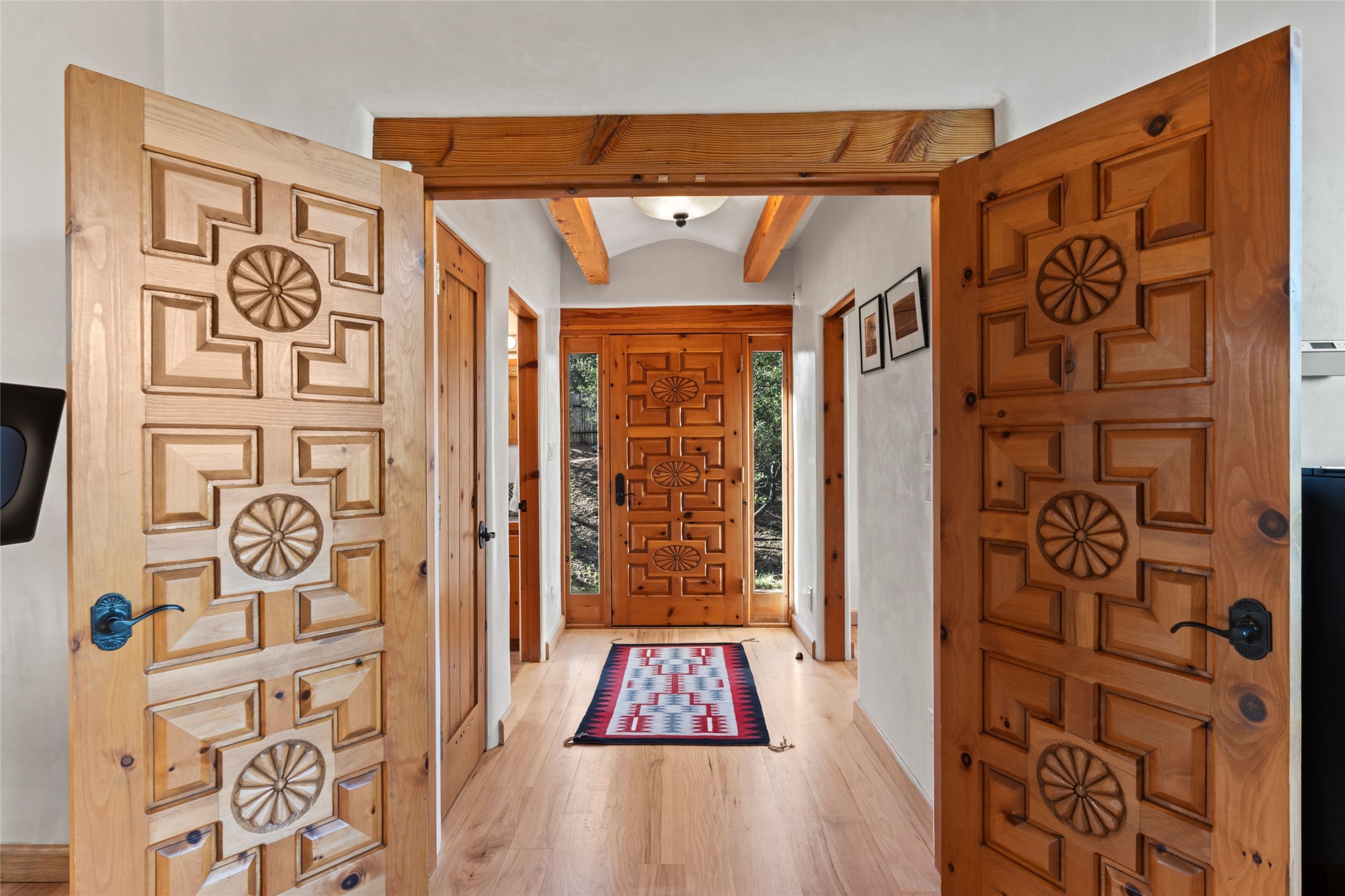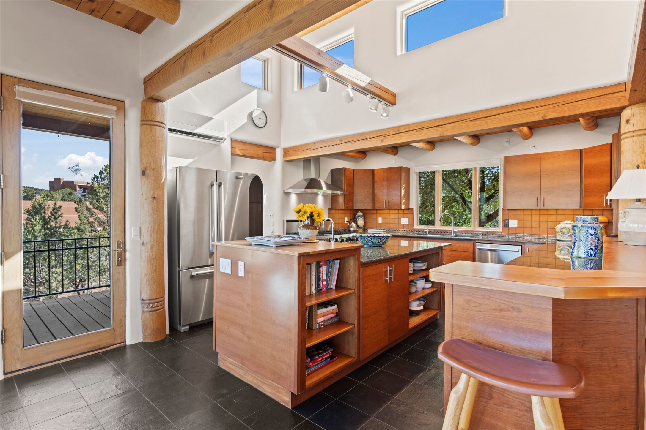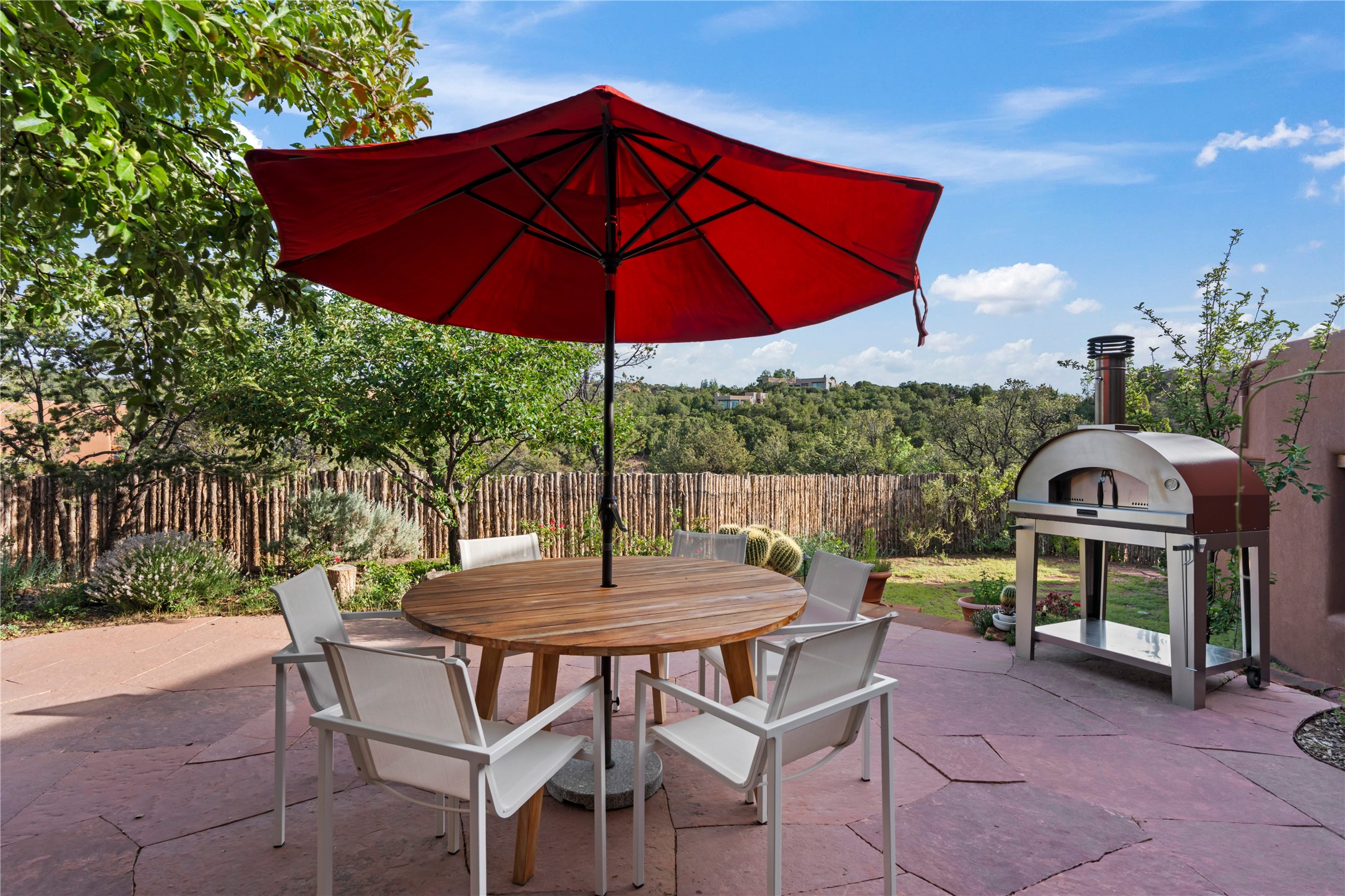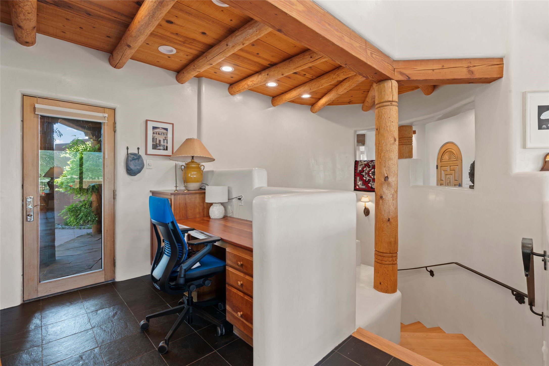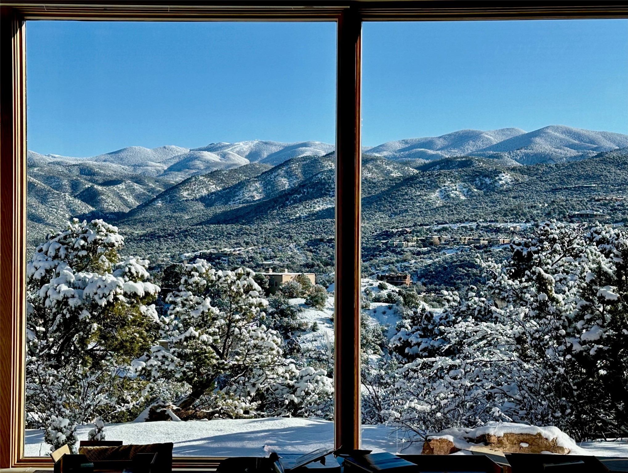 With spectacular mountain views in three directions and an enviable location just seven minutes from the Plaza, this recently remodeled home, originally constructed by noted builder Will Prull, is an exceptional estate. The 4,000-foot, 4-Bed + Office / 3.5 Bath Main House and spacious 1,700-foot 1-Bed / 2-Bath Guest House / Studio have gorgeous wood, stone, and tile finishes throughout. Nestled on a hilltop site within the exclusive Bishop Lodge Estates gated community, the property is located on 2.24 acres that overlook the storied Bishops Lodge and the National Forest. It enjoys unsurpassed, close-up views of the Sangre de Cristo mountains as well as stunning vistas of the Badlands and Jemez Mountains. It is in truly move-in condition having just undergone a comprehensive remodel in 2024-25 that includes new TPO roofs & stucco, new heating & cooling system, solar panels with battery backup, and much more. A short walk takes you to the Bishops Lodge, with numerous complimentary Club Privileges extended to the owners in this particular community. This exquisite, updated home represents a rare opportunity to live in a sought-after, gated community where properties rarely change hands. Call today to experience this extraordinary property.
