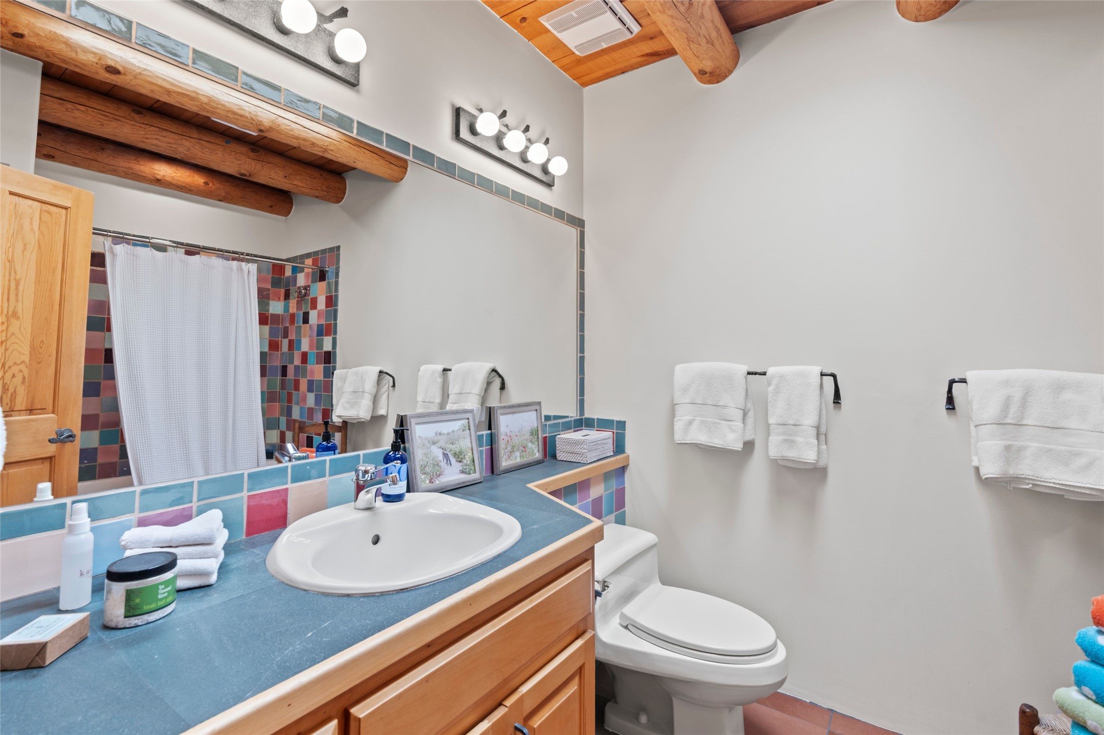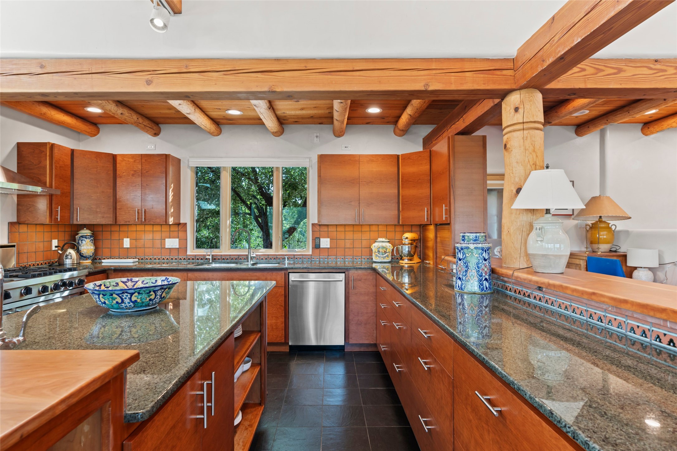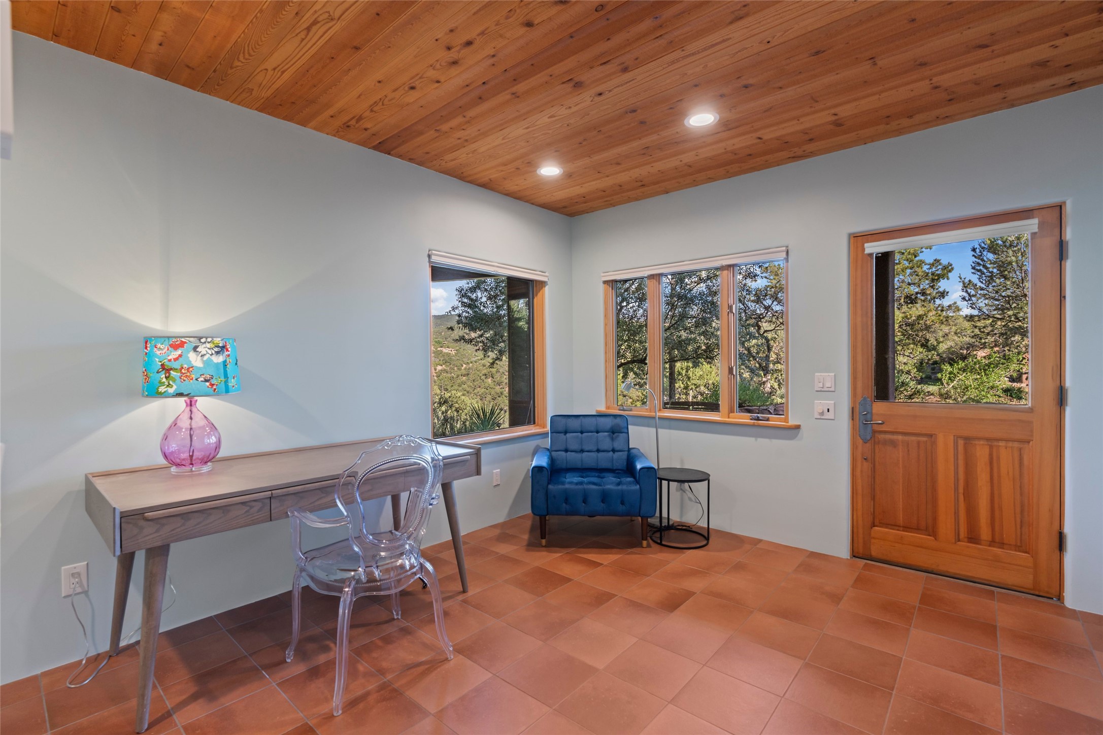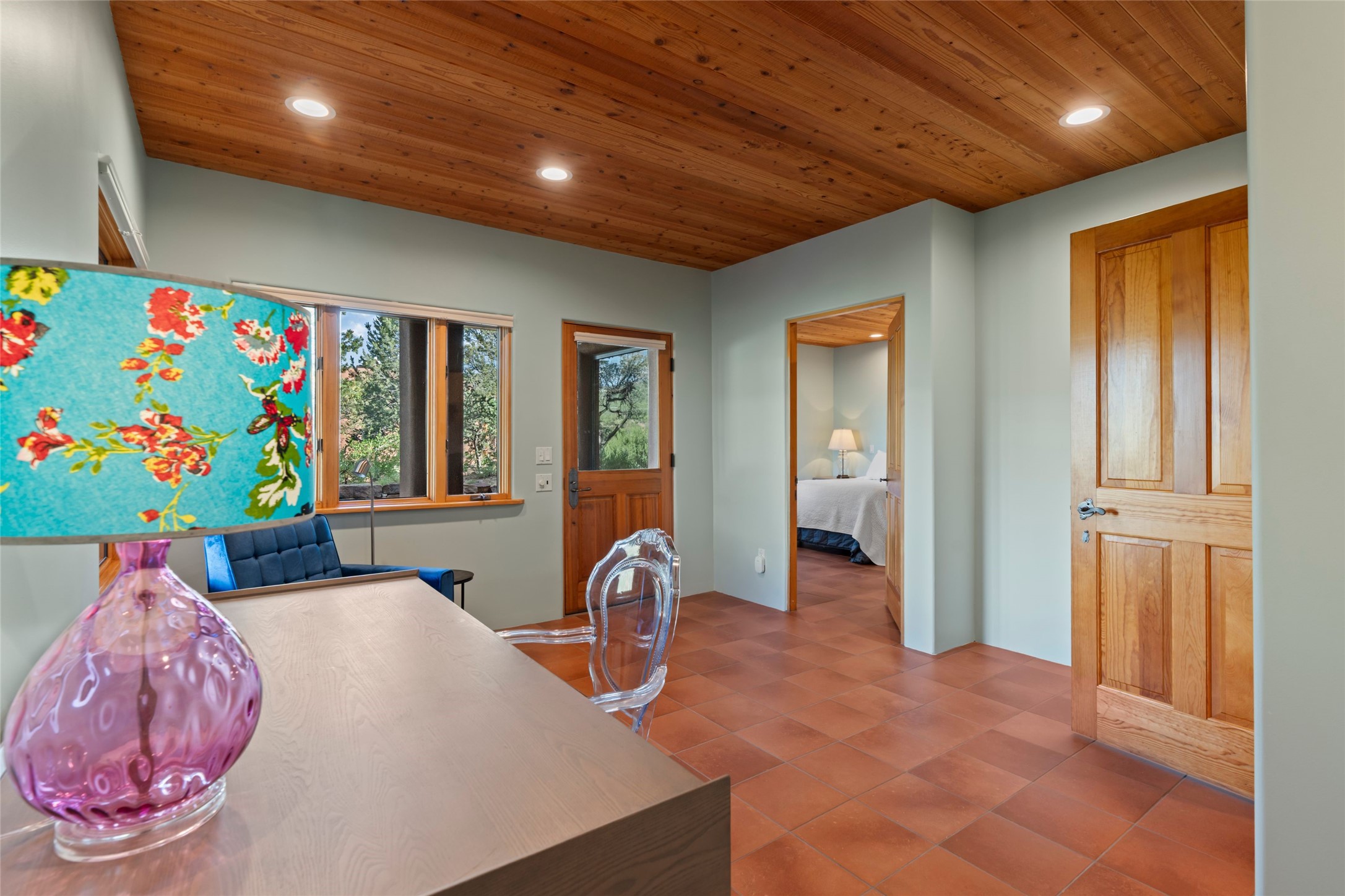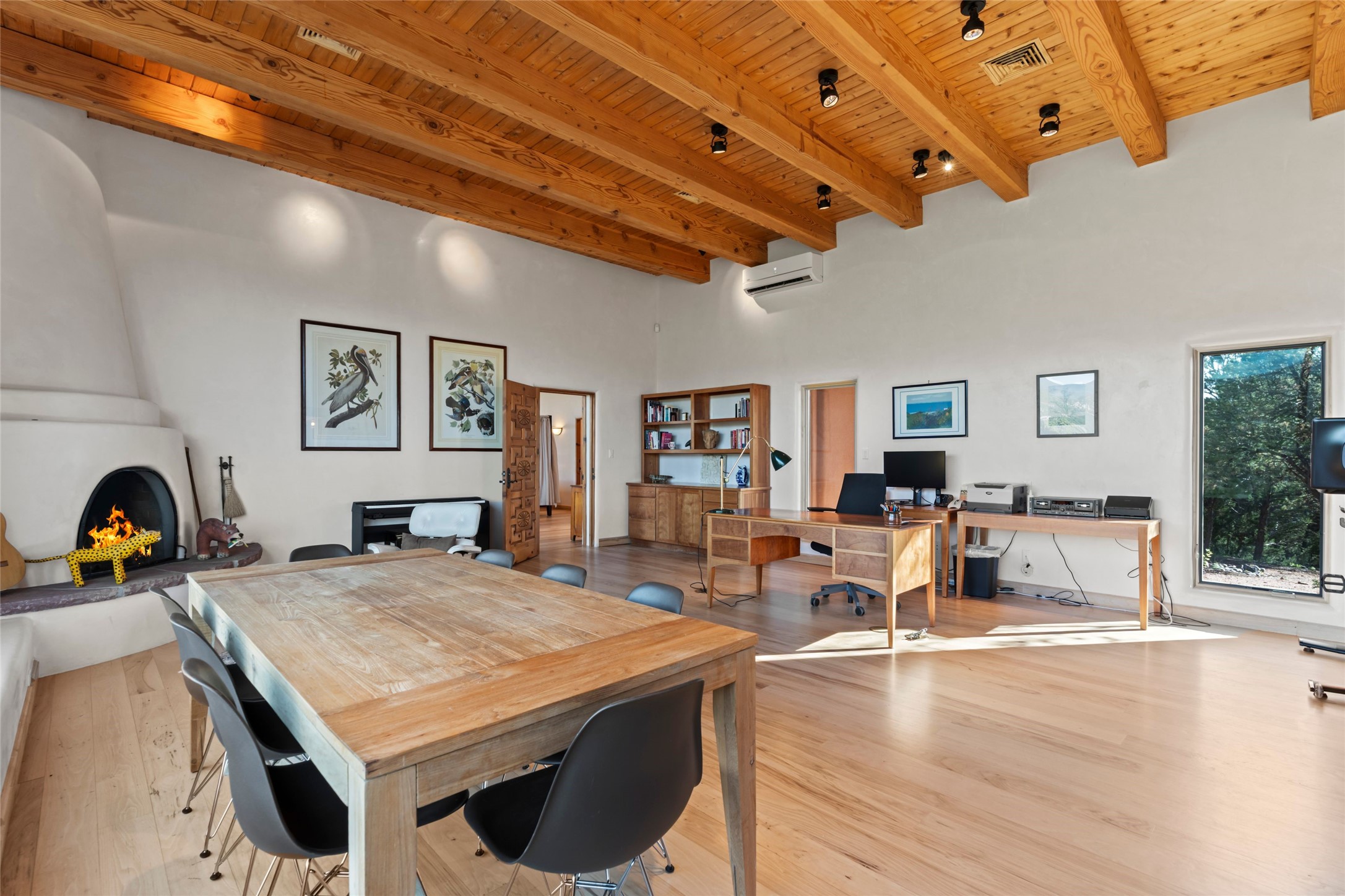 With spectacular mountain views in three directions and an enviable location just seven minutes from the Plaza, this recently remodeled home, originally constructed by noted builder Will Prull, is an exceptional estate. The 4,000-foot, 4-Bed + Office / 3.5 Bath Main House and spacious 1,700-foot 1-Bed / 2-Bath Guest House / Studio have gorgeous wood, stone, and tile finishes throughout. Nestled on a hilltop site within the exclusive Bishop Lodge Estates gated community, the property is located on 2.24 acres that overlook the storied Bishops Lodge and the National Forest. It enjoys unsurpassed, close-up views of the Sangre de Cristo mountains as well as stunning vistas of the Badlands and Jemez Mountains. It is in truly move-in condition having just undergone a comprehensive remodel in 2024-25 that includes new TPO roofs & stucco, new heating & cooling system, solar panels with battery backup, and much more. A short walk takes you to the Bishops Lodge, with numerous complimentary Club Privileges extended to the owners in this particular community. This exquisite, updated home represents a rare opportunity to live in a sought-after, gated community where properties rarely change hands. Call today to experience this extraordinary property.