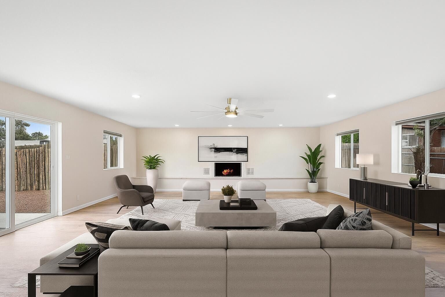 Seller will do owner financing!! You do not want to miss out on this single story 3 bed, 2 bath all updated home! New stucco, paint, bathrooms, kitchen w/stainless steel appliances, beautiful quartz countertops, & custom cabinets. New mini split systems throughout home. Enjoy this great layout with a large oversized living/family room w/ample space! Cozy up to the fireplace with quartz surround during the winter season! Large backyard! Newly stuccoed and fenced front private yard! This home is move in ready and will not last long! Nearby mall, shopping, & a 10 minute drive to the plaza/freeway! Schedule your tour today!
