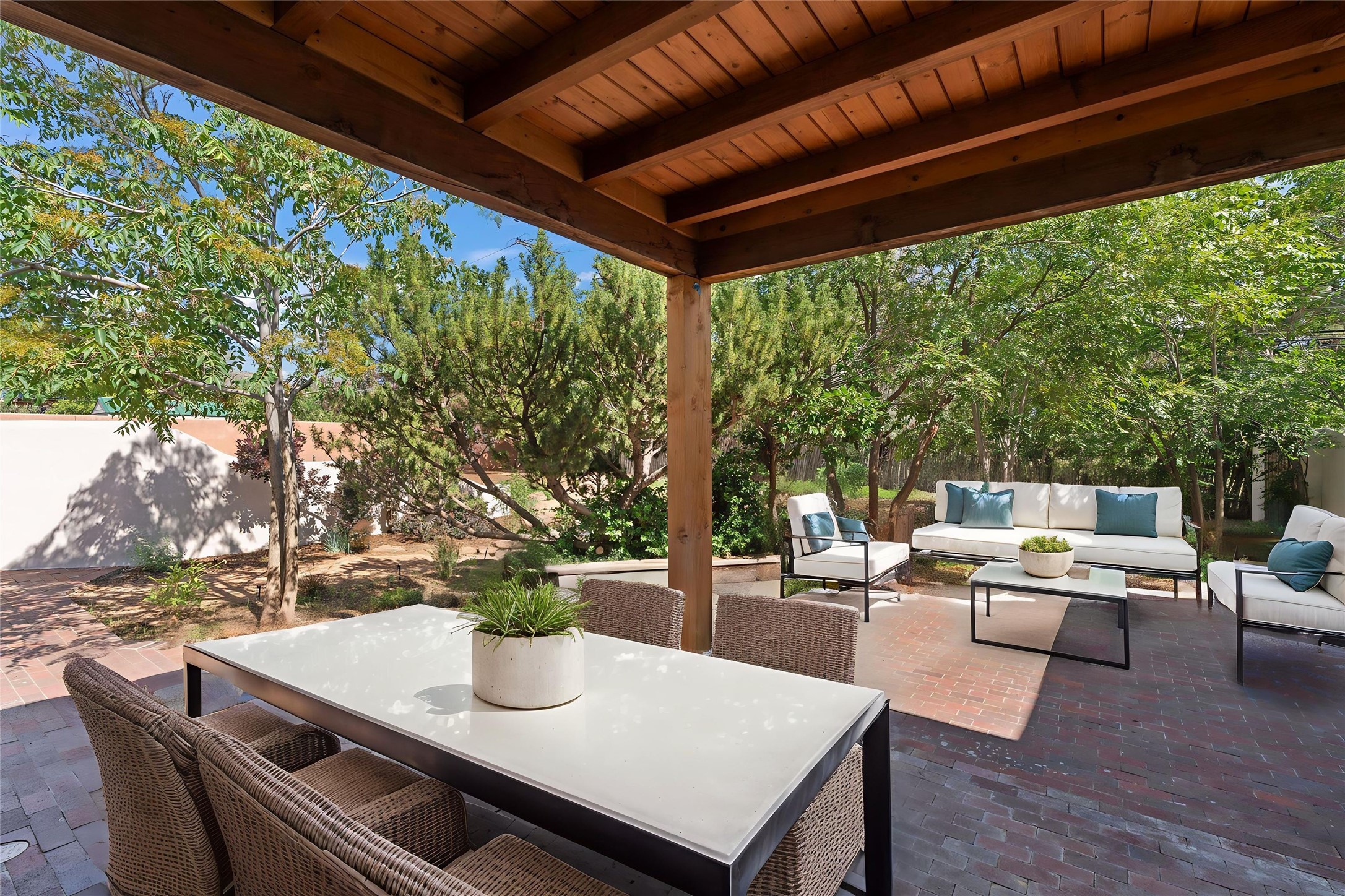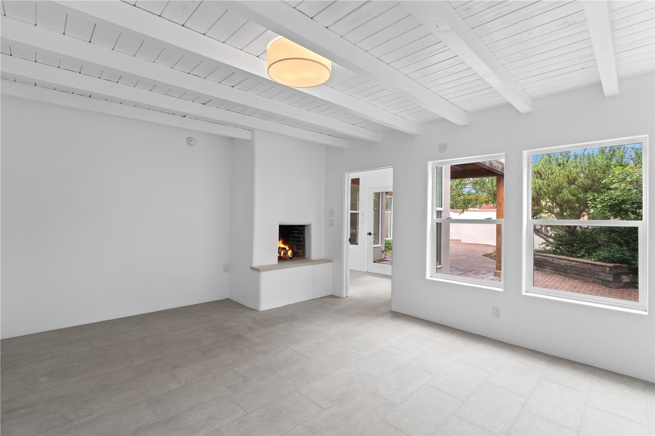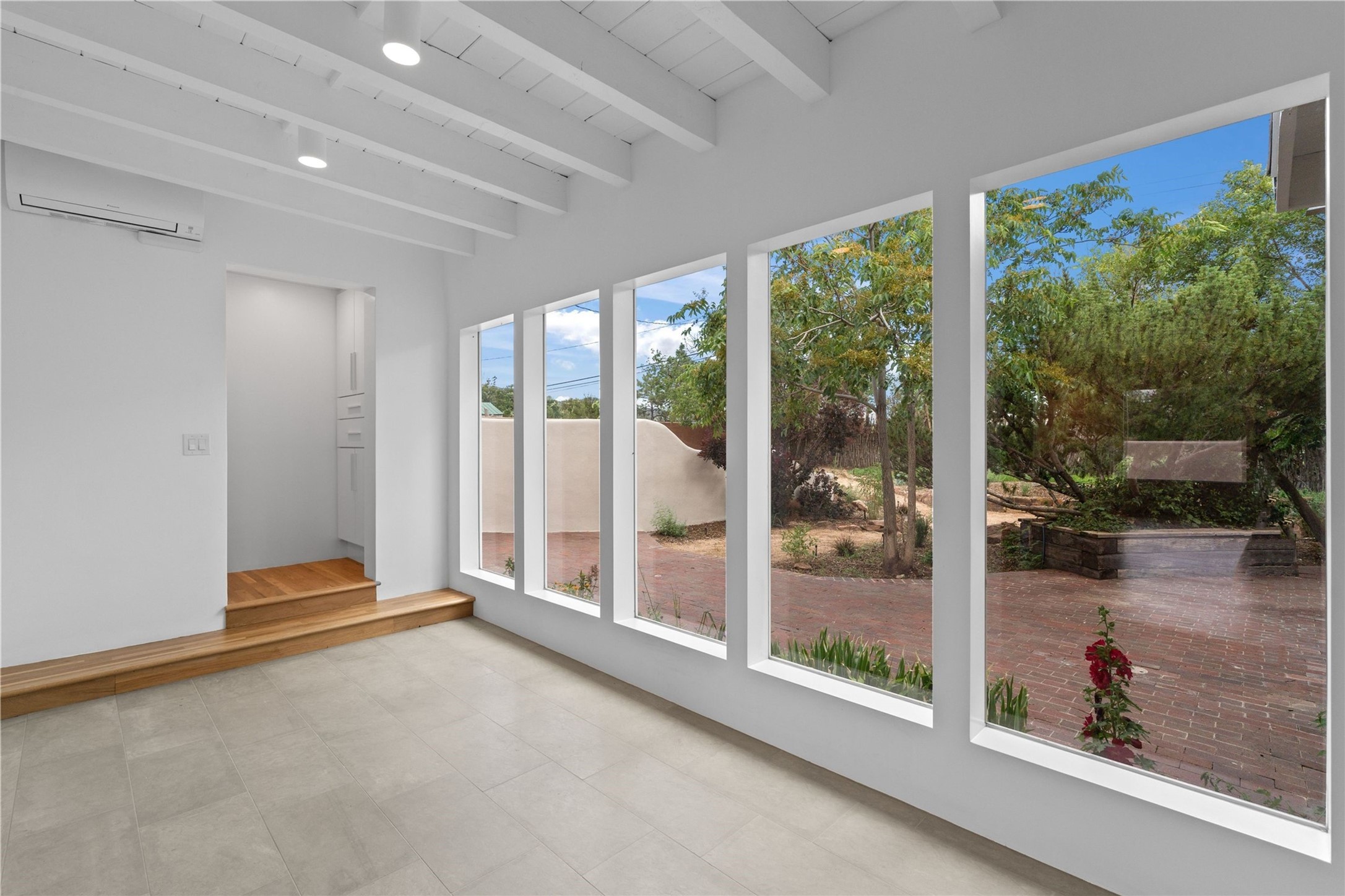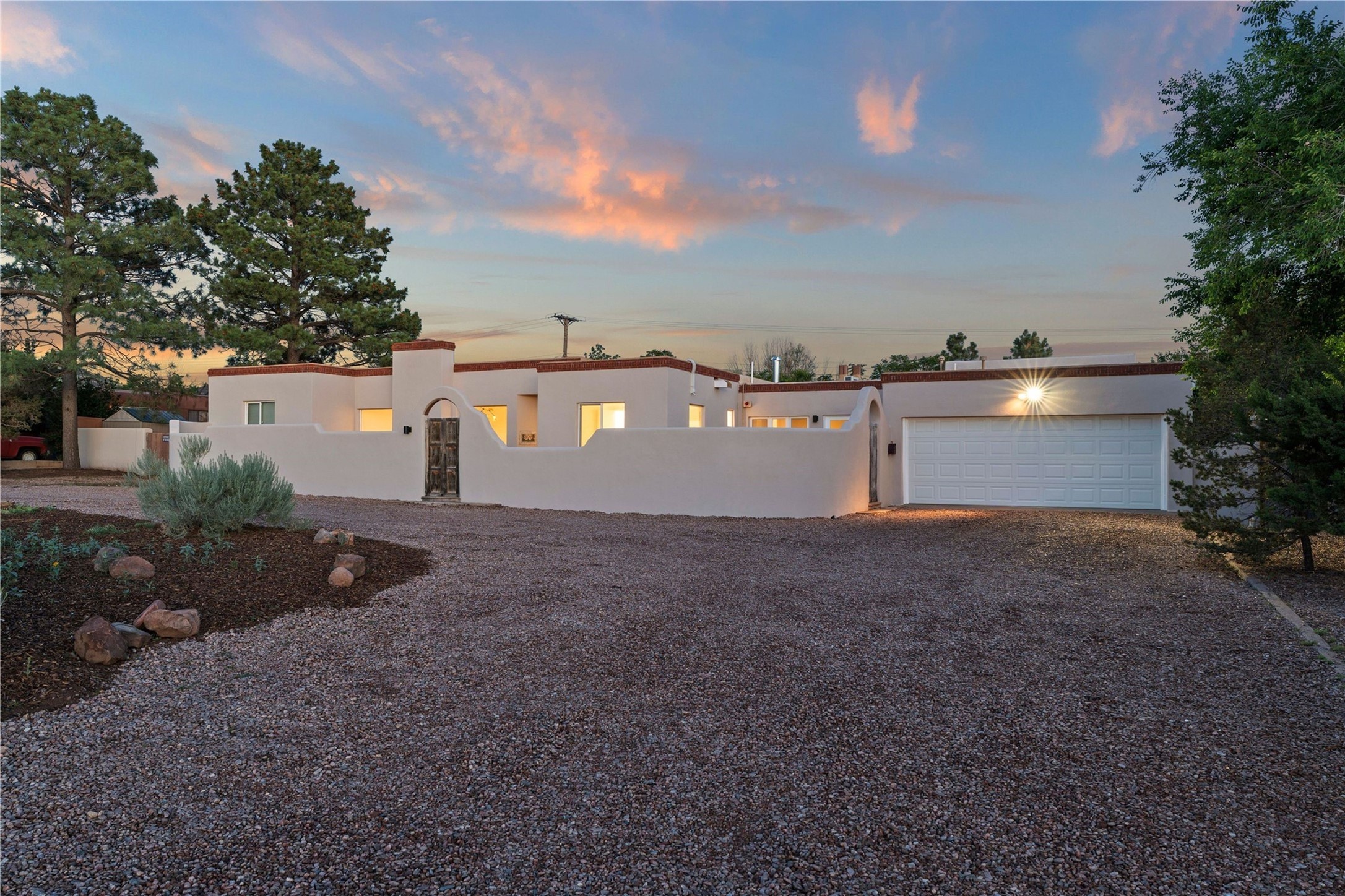 Discover a stunning 3-bedroom, 2.5-bath home paired with a charming 1-bedroom, 1-bath casita all located in the desirable San Mateo neighborhood. This residence has undergone a high-end complete renovation showcasing exquisite designer finishes throughout. Step inside to find blue Bateig honed limestone tile floors and original refinished wood floors that create a seamless flow across the spacious living areas. The gourmet kitchen features carbon grey honed granite counters, and a striking island topped with Nuage honed quartzite. Equipped with top-of-the-line appliances, including a Viking range and double oven and Forno Maderno French door refrigerator/freezer, this kitchen is designed for both functionality and style. Custom wood cabinets, a stylish bar area with a stainless-steel wine fridge and an elegant built-in wine rack complete the space. Primary bedroom includes a soaking tub, limestone shower, a freestanding double vanity, and dual custom-built closets, providing ample storage. Guest bedroom features an en-suite bath and wood burning fireplace. A third bedroom serves as versatile flex space, ideal for an office or studio. Half bath features authentic Terrazzo floor tile and custom-made concrete floating sink. New boiler, tankless water heater and 9 new ductless AC/heating units. 1/2-acre lot with a large backyard with custom fire pit, designated garden area, storage shed, mature fruit trees and a partially covered large brick patio. 2-car garage. Conveniently located close to the Santa Fe Plaza, Museum Hill, and the Railyard.