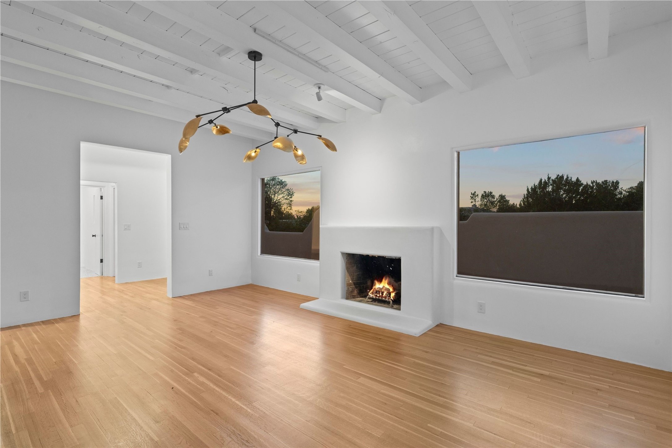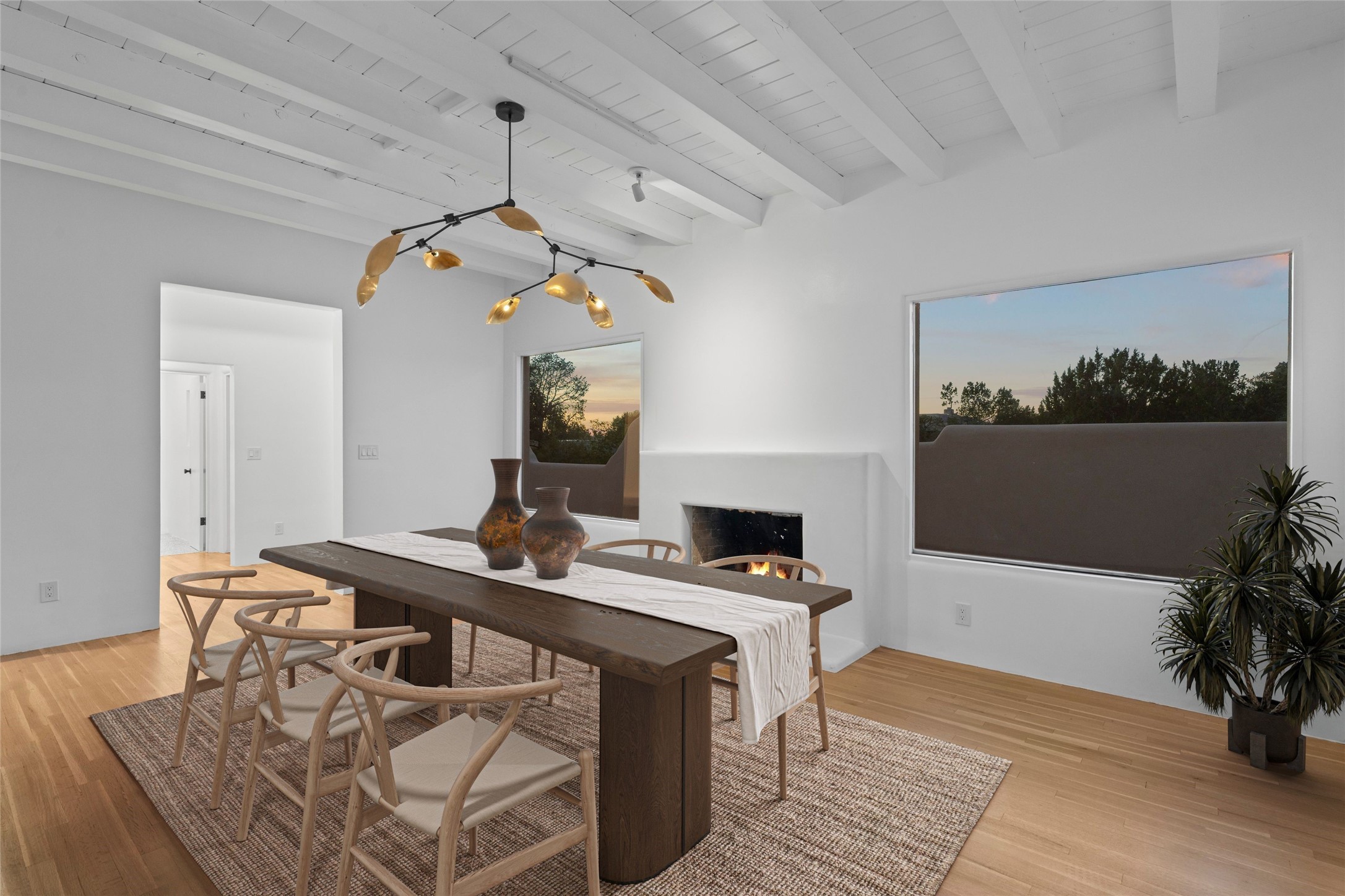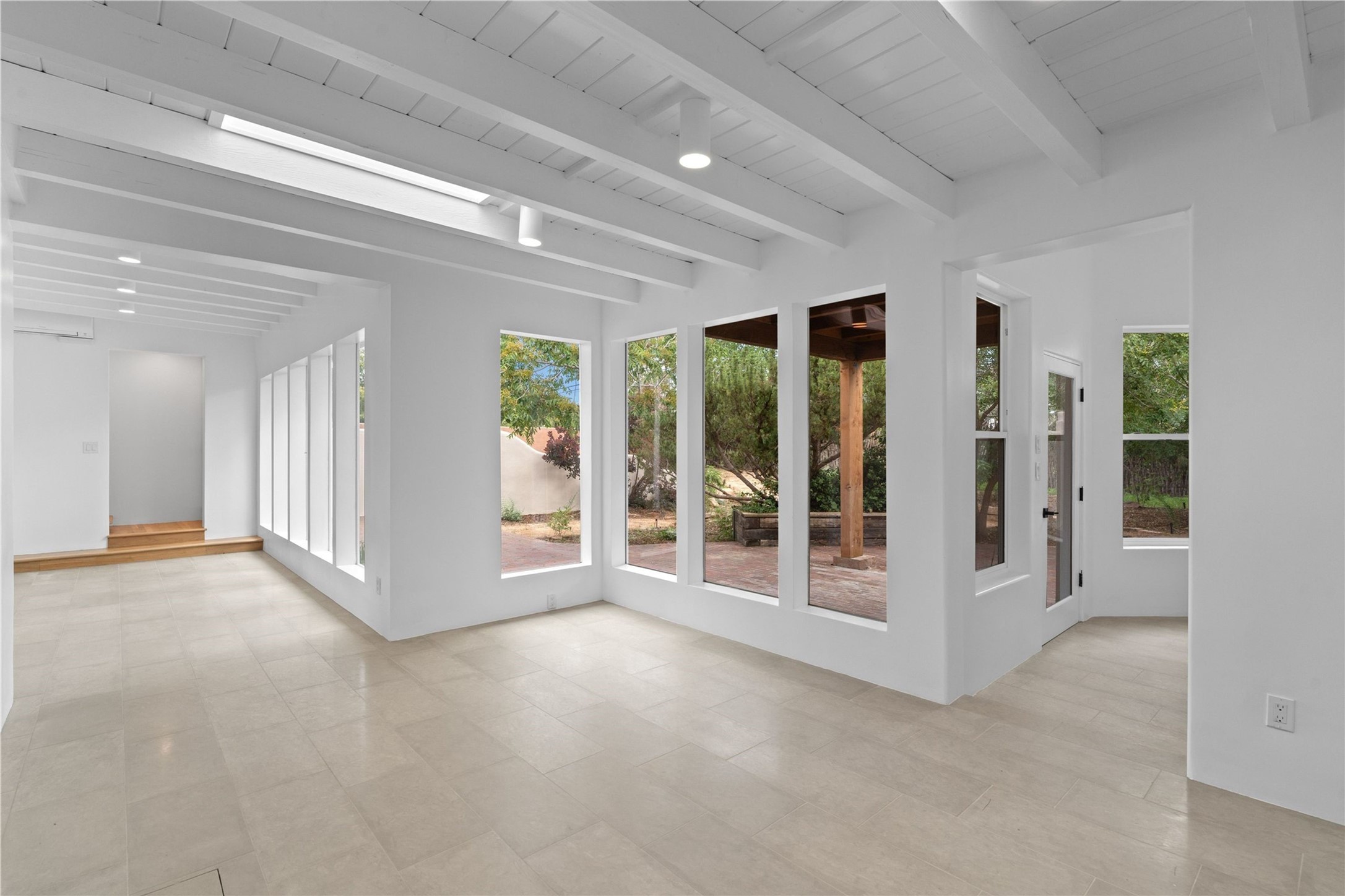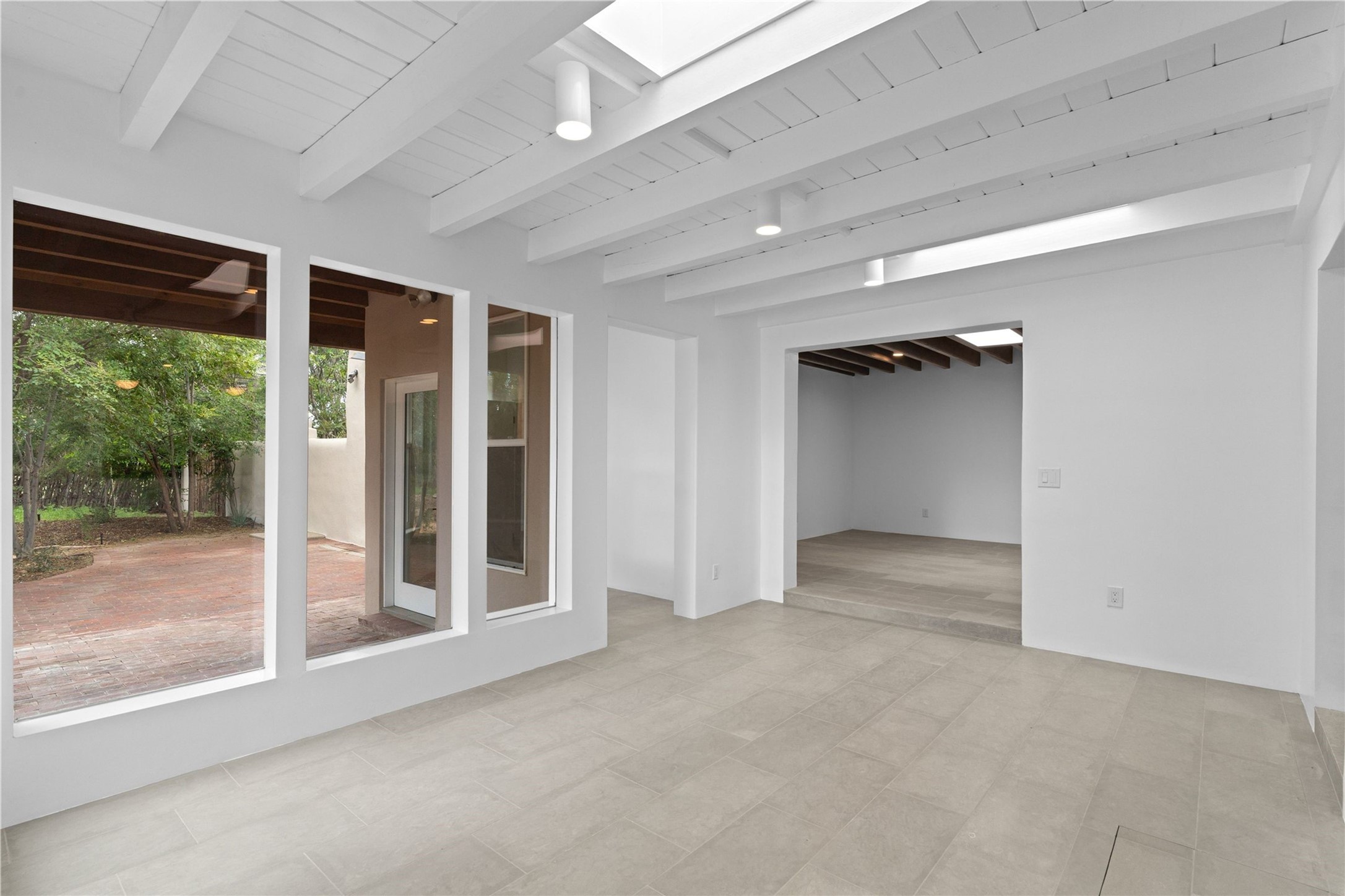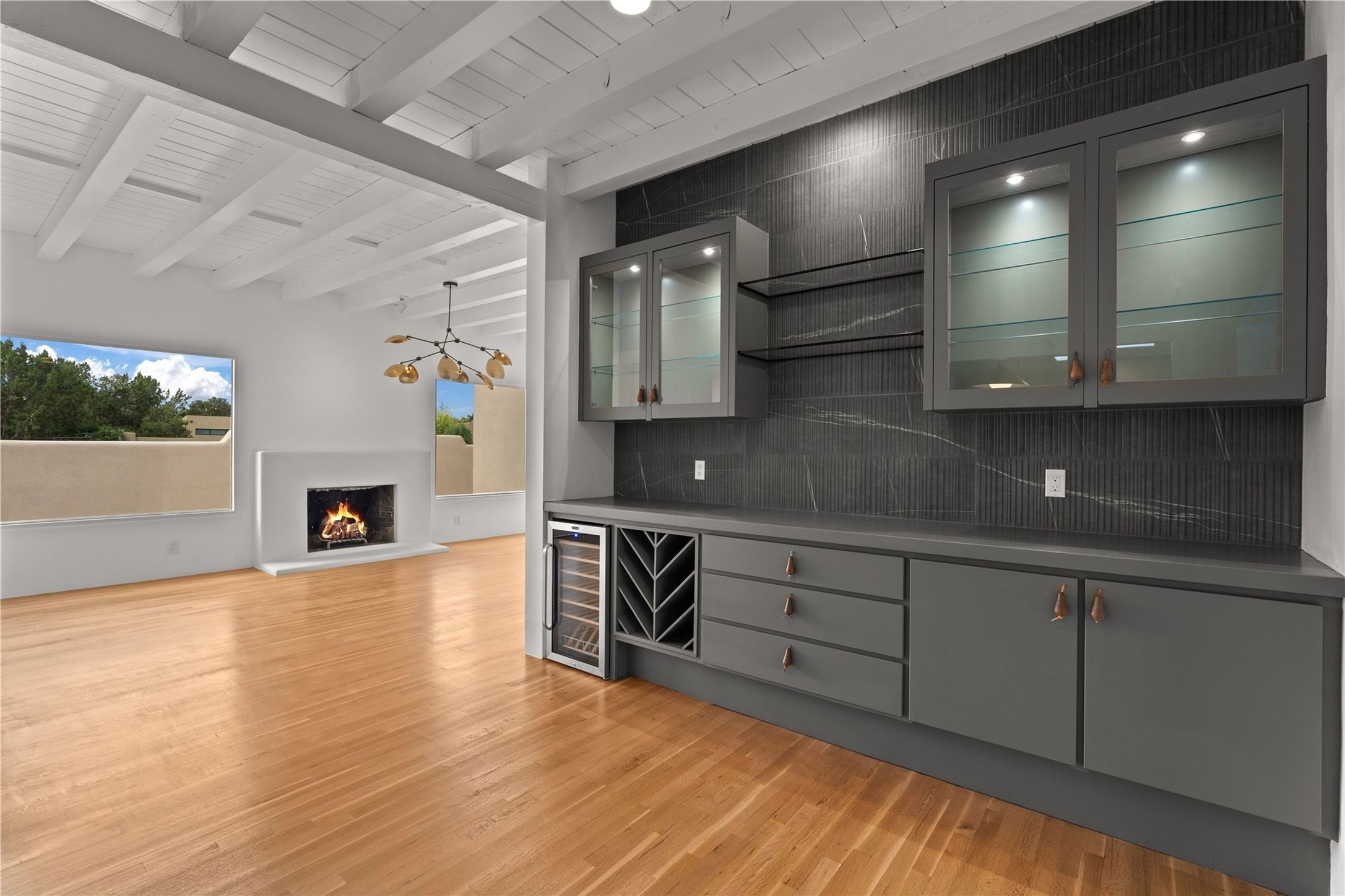 Discover a stunning 3-bedroom, 2.5-bath home paired with a charming 1-bedroom, 1-bath casita all located in the desirable San Mateo neighborhood. This residence has undergone a high-end complete renovation showcasing exquisite designer finishes throughout. Step inside to find blue Bateig honed limestone tile floors and original refinished wood floors that create a seamless flow across the spacious living areas. The gourmet kitchen features carbon grey honed granite counters, and a striking island topped with Nuage honed quartzite. Equipped with top-of-the-line appliances, including a Viking range and double oven and Forno Maderno French door refrigerator/freezer, this kitchen is designed for both functionality and style. Custom wood cabinets, a stylish bar area with a stainless-steel wine fridge and an elegant built-in wine rack complete the space. Primary bedroom includes a soaking tub, limestone shower, a freestanding double vanity, and dual custom-built closets, providing ample storage. Guest bedroom features an en-suite bath and wood burning fireplace. A third bedroom serves as versatile flex space, ideal for an office or studio. Half bath features authentic Terrazzo floor tile and custom-made concrete floating sink. New boiler, tankless water heater and 9 new ductless AC/heating units. 1/2-acre lot with a large backyard with custom fire pit, designated garden area, storage shed, mature fruit trees and a partially covered large brick patio. 2-car garage. Conveniently located close to the Santa Fe Plaza, Museum Hill, and the Railyard.