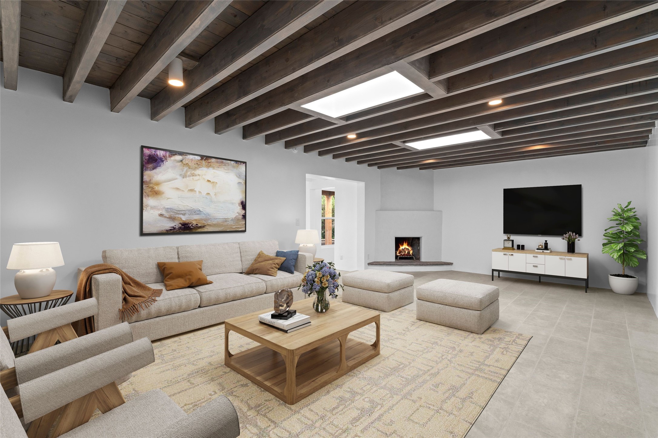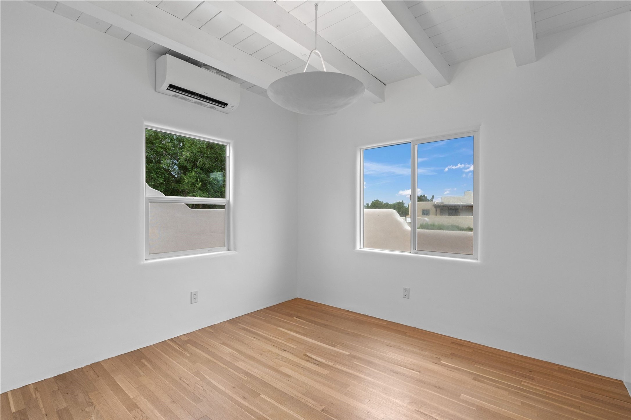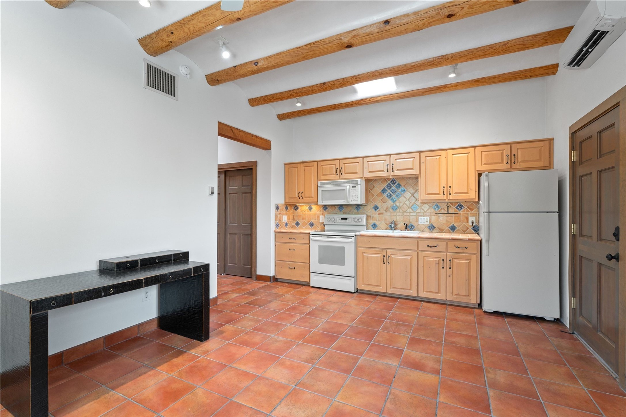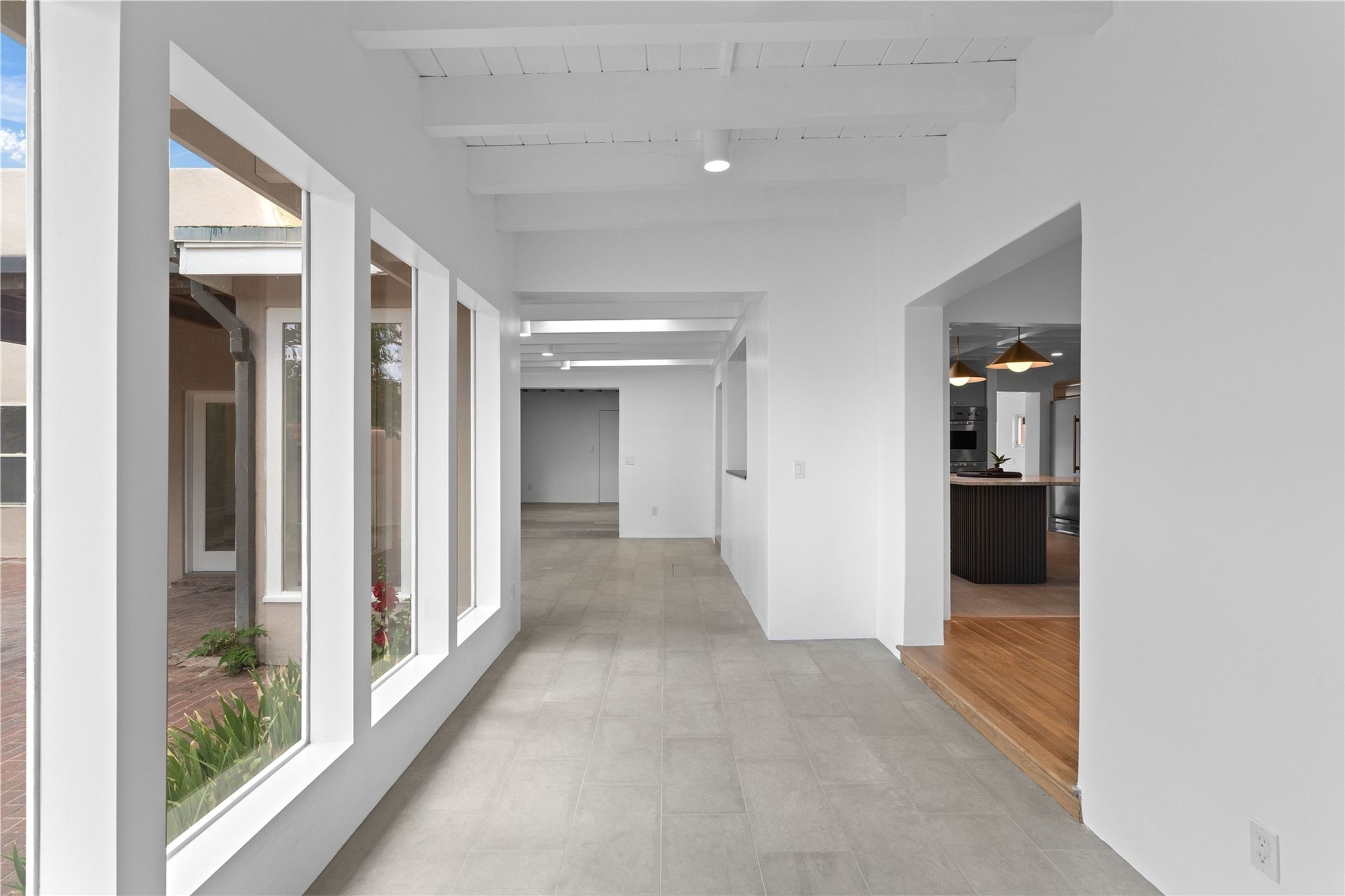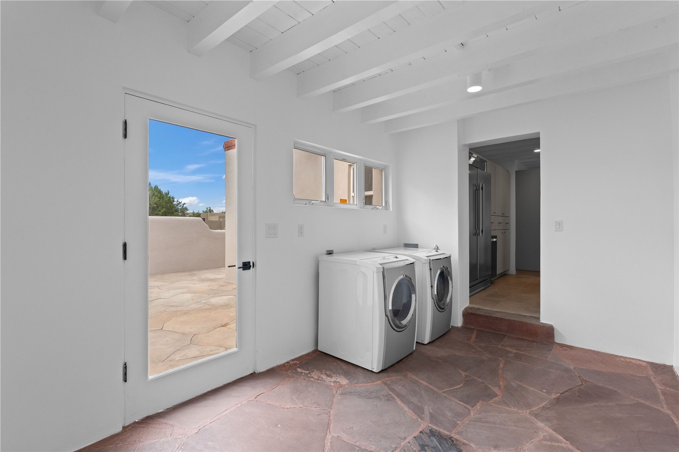 Discover a stunning 3-bedroom, 2.5-bath home paired with a charming 1-bedroom, 1-bath casita all located in the desirable San Mateo neighborhood. This residence has undergone a high-end complete renovation showcasing exquisite designer finishes throughout. Step inside to find blue Bateig honed limestone tile floors and original refinished wood floors that create a seamless flow across the spacious living areas. The gourmet kitchen features carbon grey honed granite counters, and a striking island topped with Nuage honed quartzite. Equipped with top-of-the-line appliances, including a Viking range and double oven and Forno Maderno French door refrigerator/freezer, this kitchen is designed for both functionality and style. Custom wood cabinets, a stylish bar area with a stainless-steel wine fridge and an elegant built-in wine rack complete the space. Primary bedroom includes a soaking tub, limestone shower, a freestanding double vanity, and dual custom-built closets, providing ample storage. Guest bedroom features an en-suite bath and wood burning fireplace. A third bedroom serves as versatile flex space, ideal for an office or studio. Half bath features authentic Terrazzo floor tile and custom-made concrete floating sink. New boiler, tankless water heater and 9 new ductless AC/heating units. 1/2-acre lot with a large backyard with custom fire pit, designated garden area, storage shed, mature fruit trees and a partially covered large brick patio. 2-car garage. Conveniently located close to the Santa Fe Plaza, Museum Hill, and the Railyard.