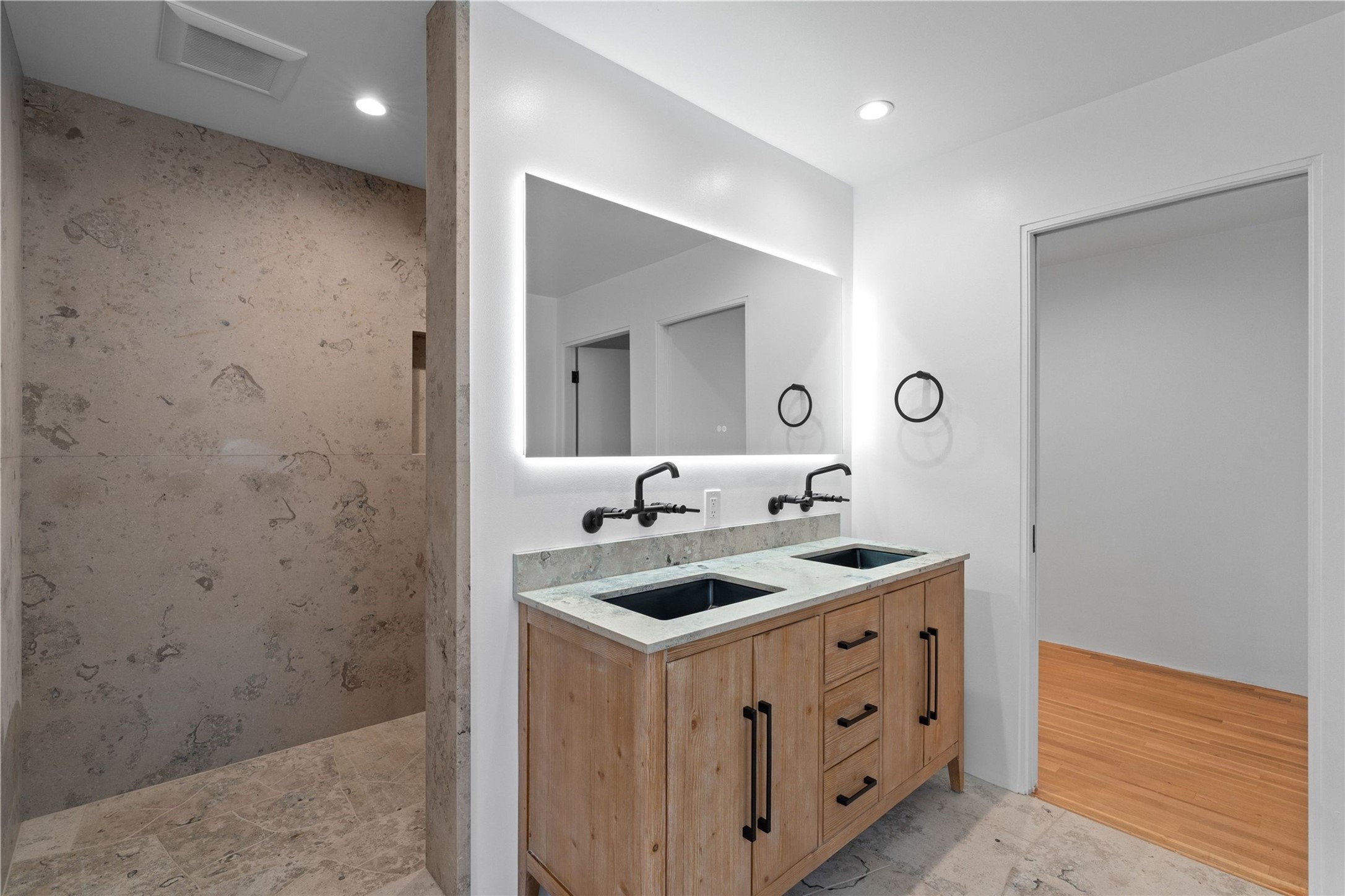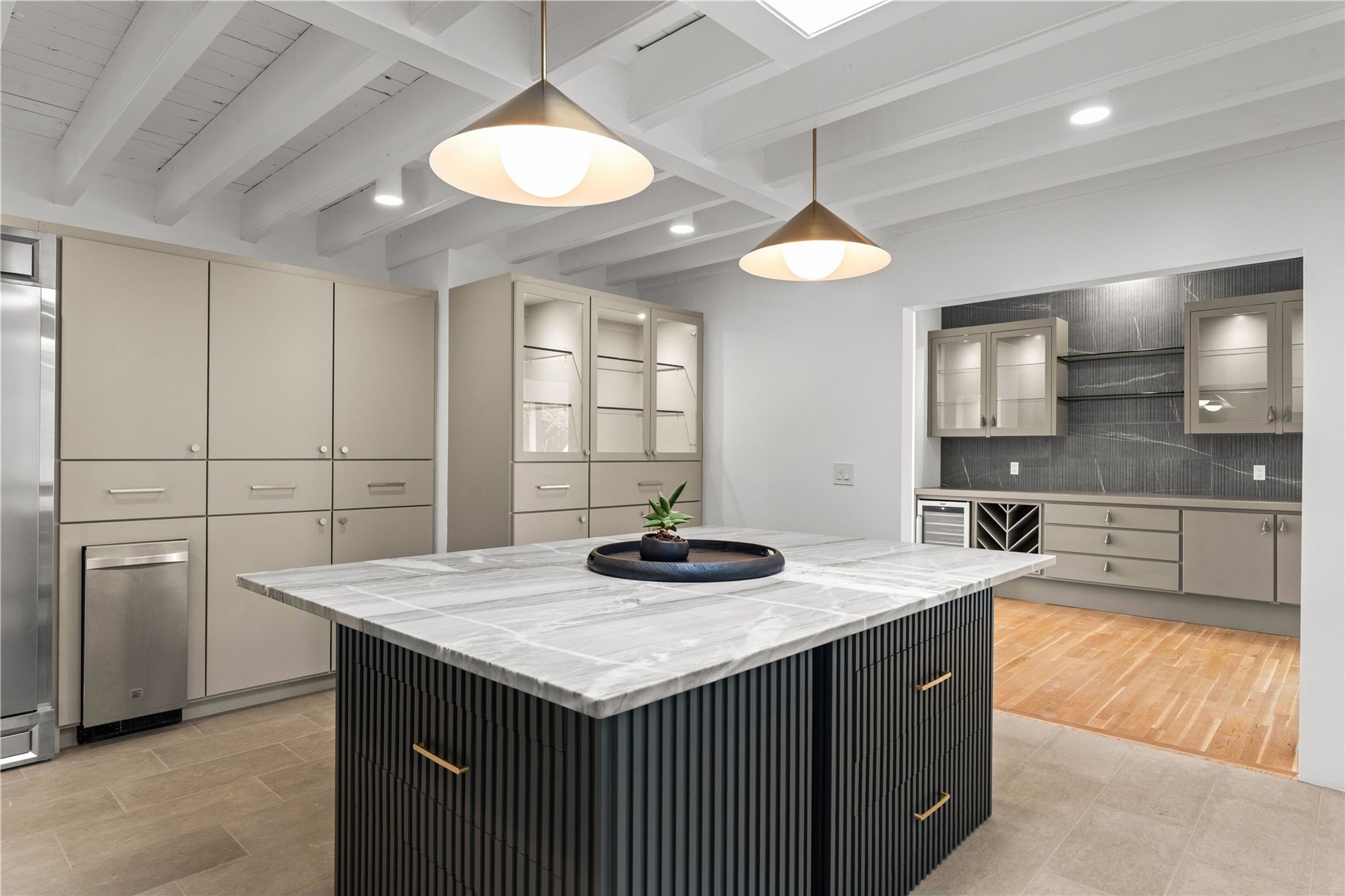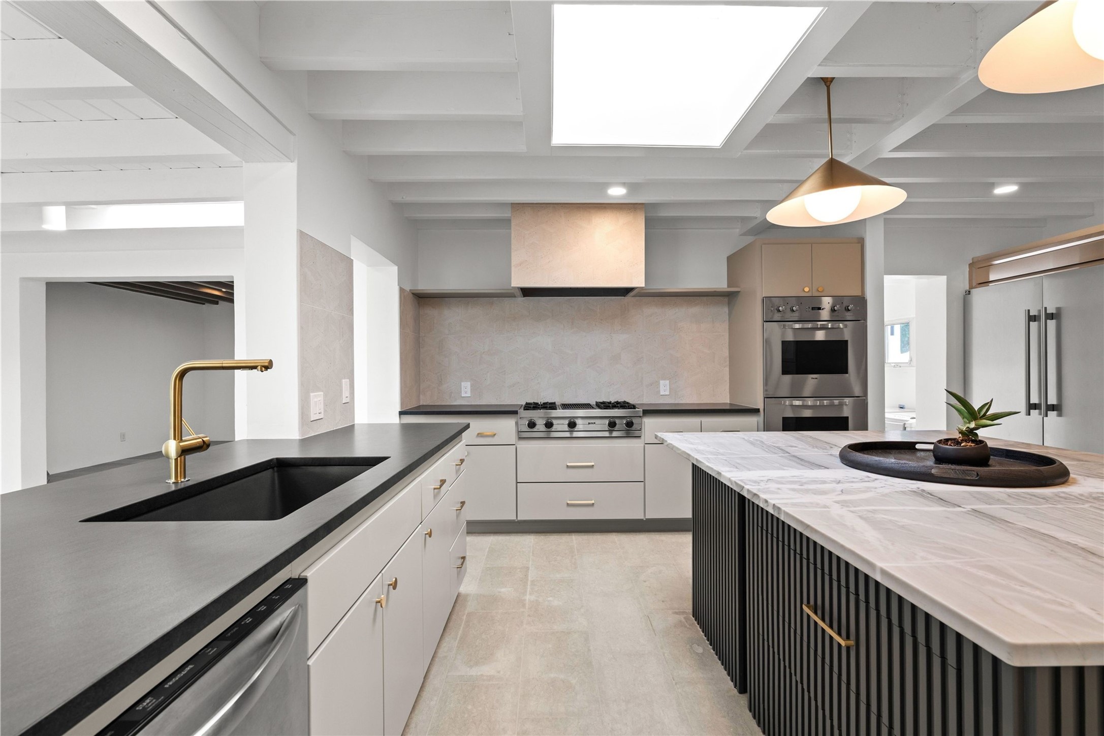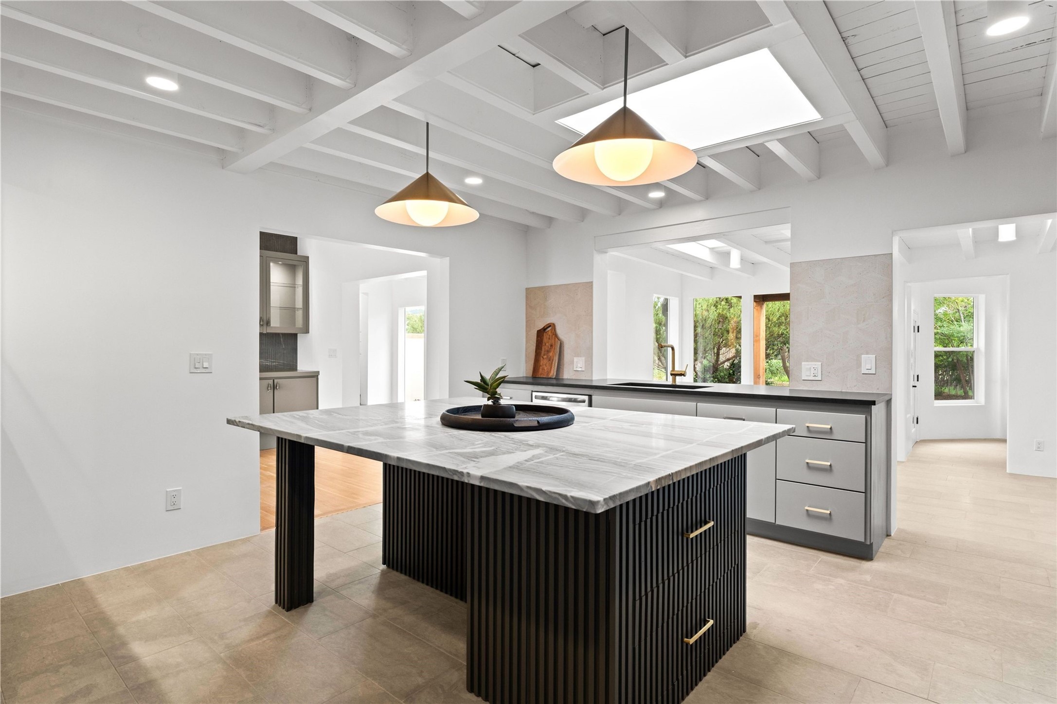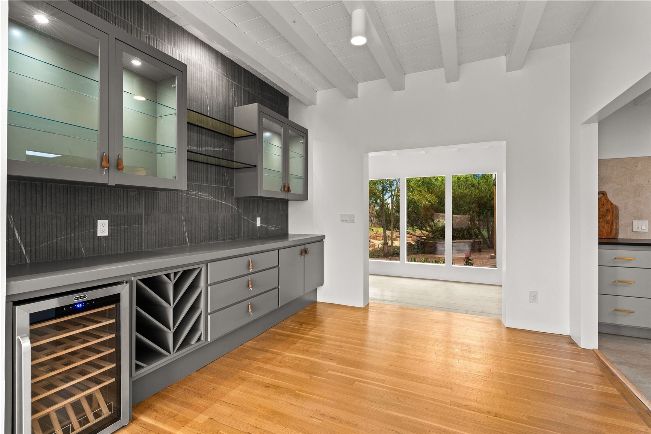 Discover a stunning 3-bedroom, 2.5-bath home paired with a charming 1-bedroom, 1-bath casita all located in the desirable San Mateo neighborhood. This residence has undergone a high-end complete renovation showcasing exquisite designer finishes throughout. Step inside to find blue Bateig honed limestone tile floors and original refinished wood floors that create a seamless flow across the spacious living areas. The gourmet kitchen features carbon grey honed granite counters, and a striking island topped with Nuage honed quartzite. Equipped with top-of-the-line appliances, including a Viking range and double oven and Forno Maderno French door refrigerator/freezer, this kitchen is designed for both functionality and style. Custom wood cabinets, a stylish bar area with a stainless-steel wine fridge and an elegant built-in wine rack complete the space. Primary bedroom includes a soaking tub, limestone shower, a freestanding double vanity, and dual custom-built closets, providing ample storage. Guest bedroom features an en-suite bath and wood burning fireplace. A third bedroom serves as versatile flex space, ideal for an office or studio. Half bath features authentic Terrazzo floor tile and custom-made concrete floating sink. New boiler, tankless water heater and 9 new ductless AC/heating units. 1/2-acre lot with a large backyard with custom fire pit, designated garden area, storage shed, mature fruit trees and a partially covered large brick patio. 2-car garage. Conveniently located close to the Santa Fe Plaza, Museum Hill, and the Railyard.