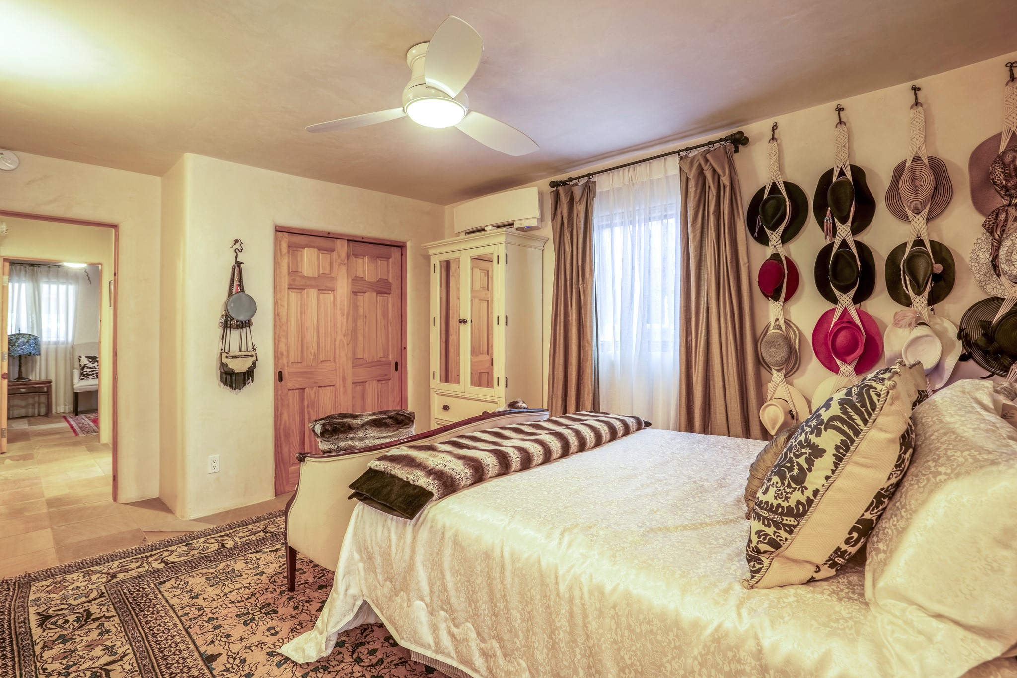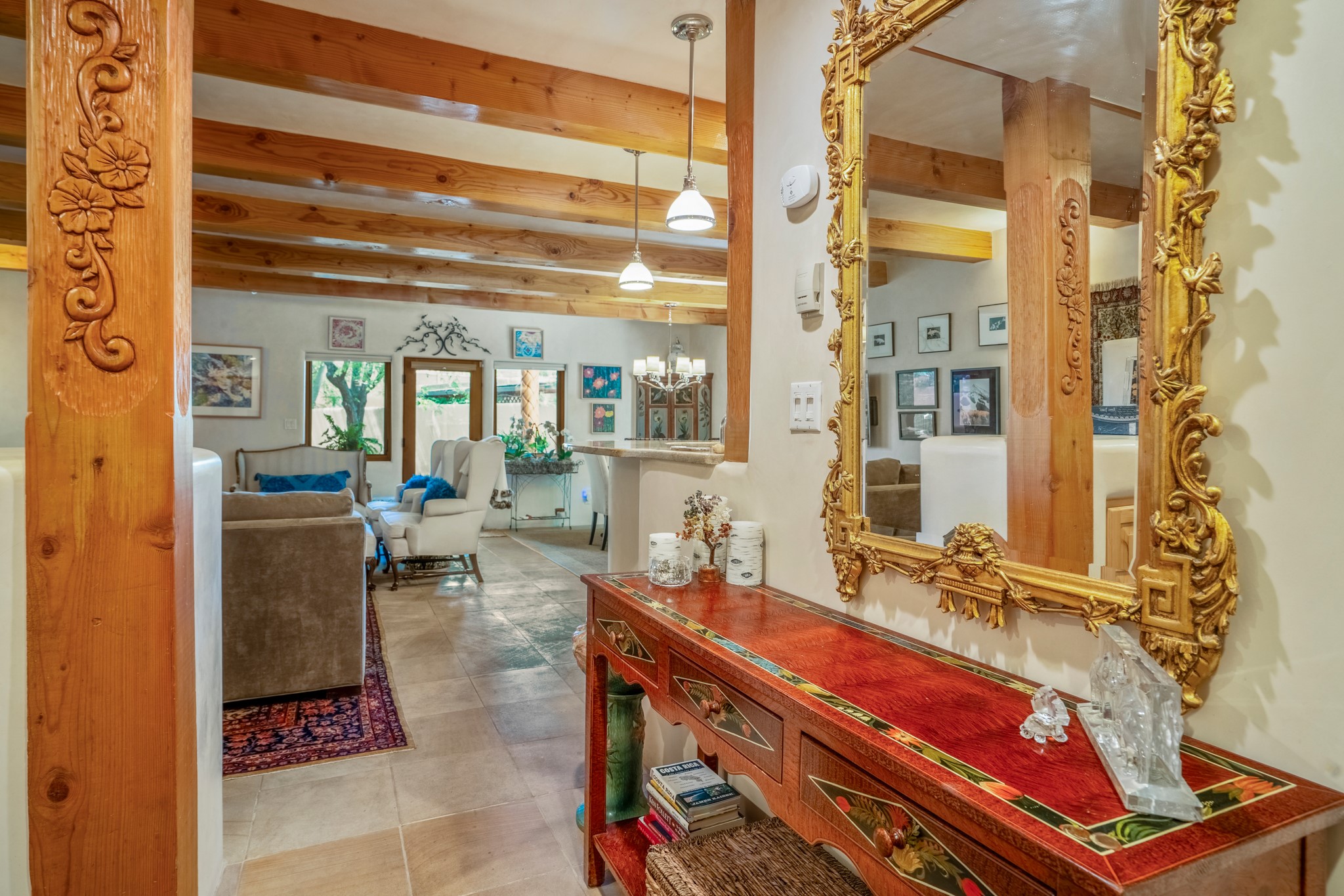 Beautifully maintained and updated, these 2 separate condominium units being sold together comprise the full Homeowners Association. Each unit features two bedrooms and two bathrooms (one full and one three-quarter bathroom), separate on-demand water heaters, and mini-splits. Plaster walls, upscale countertops, sandstone, and upscale flooring complement each unit. En-suite bathrooms are in the primary bedrooms, along with ample closet space. The backyard has a fabulous covered patio with a kiva fireplace. Fully landscaped and gated, the property has been impeccably maintained by its current owner. Walk to the Plaza, countless retail stores and restaurants, and to Ft Marcy complex.