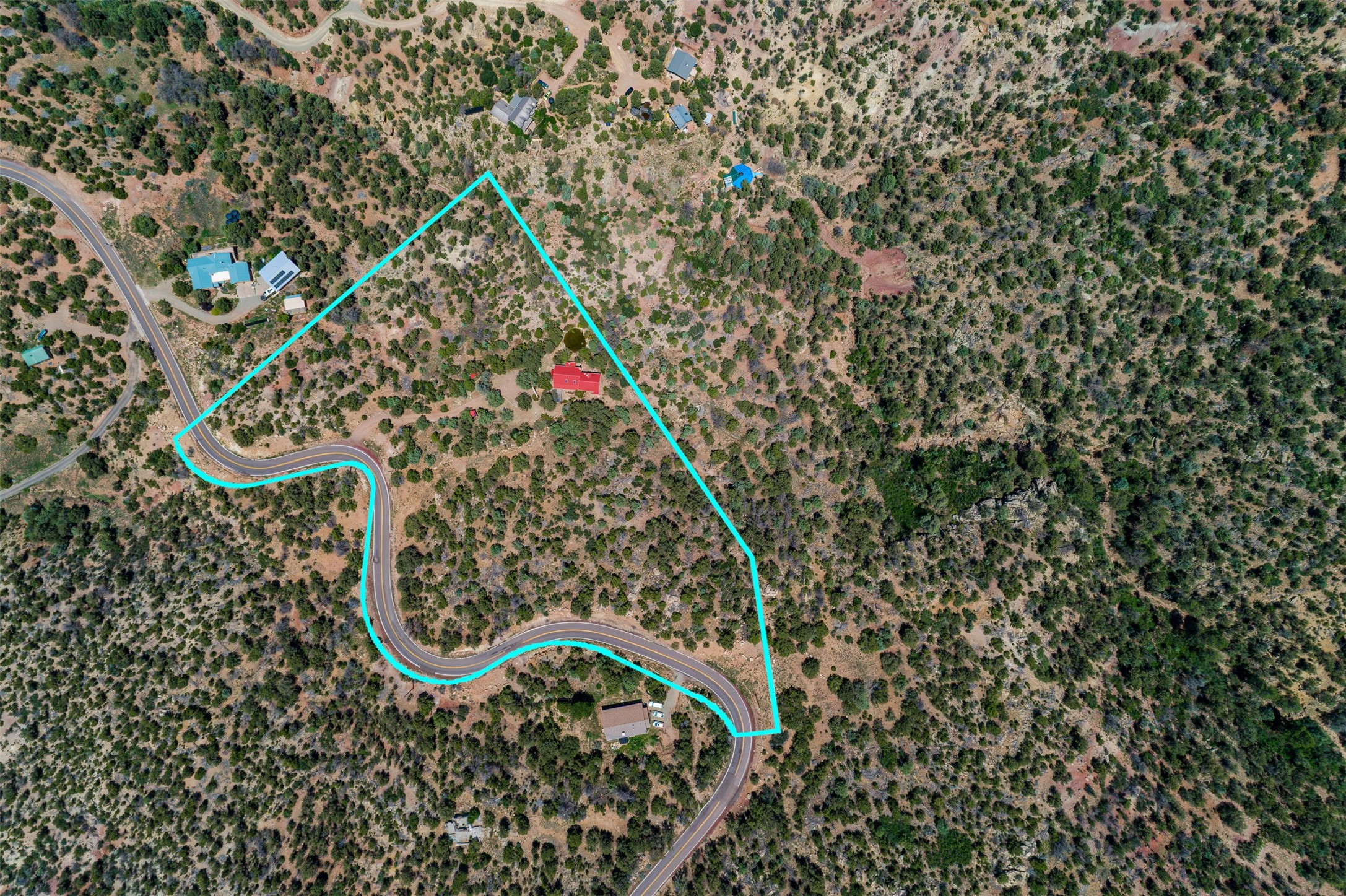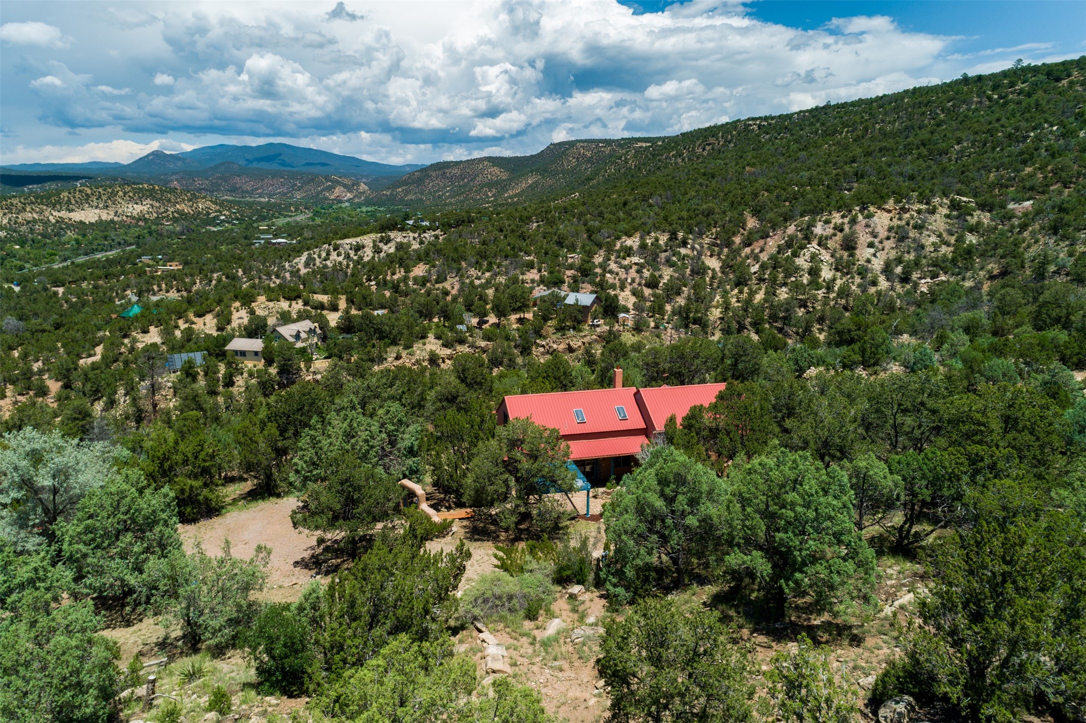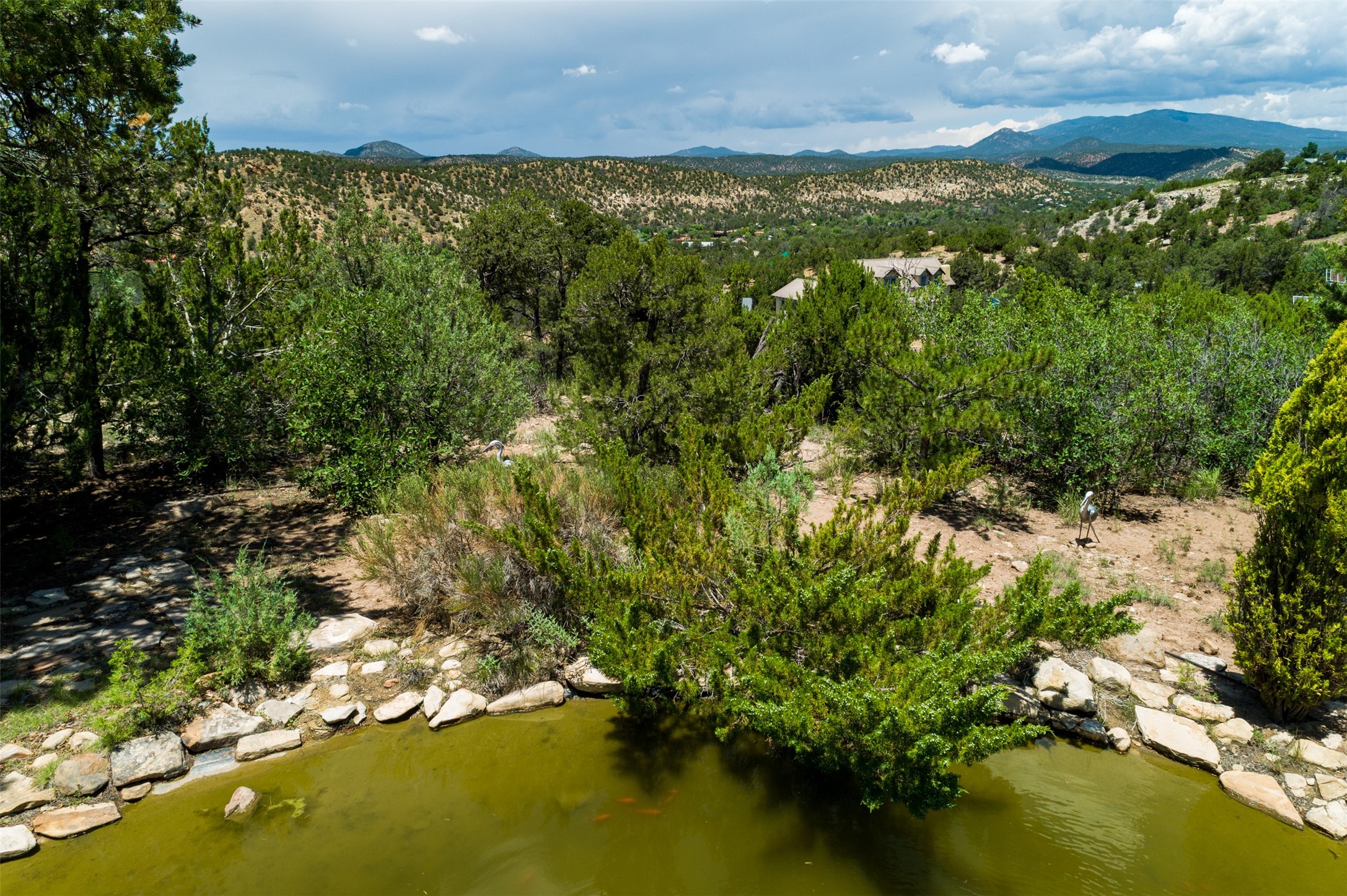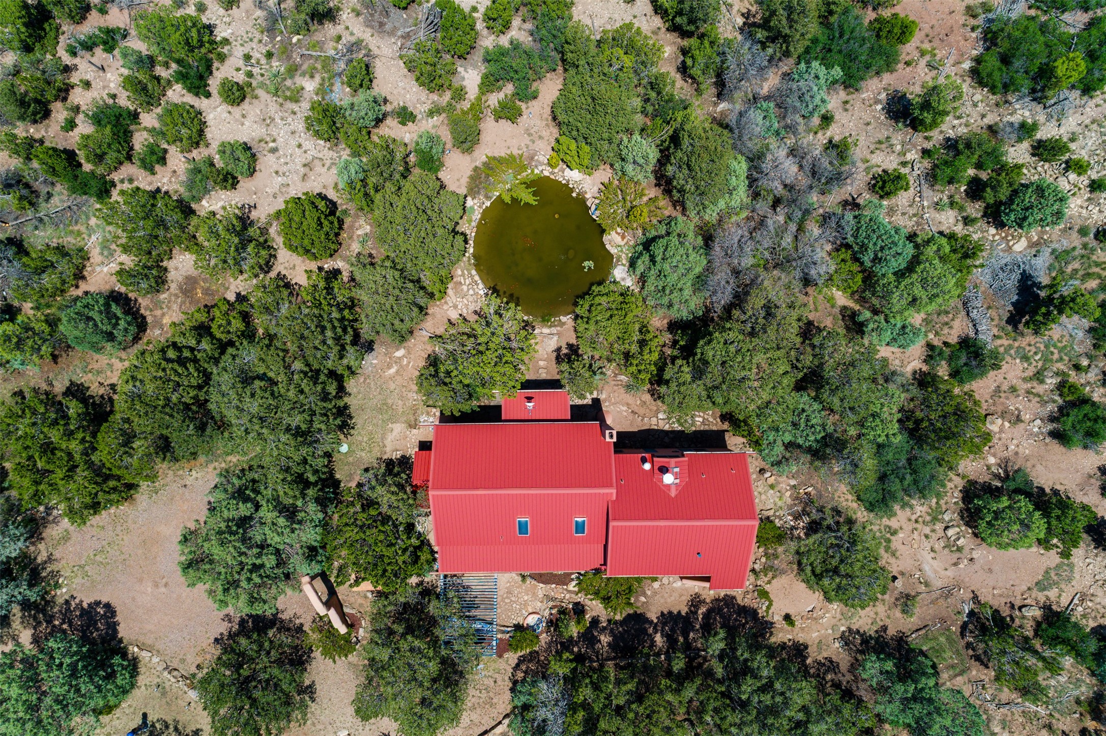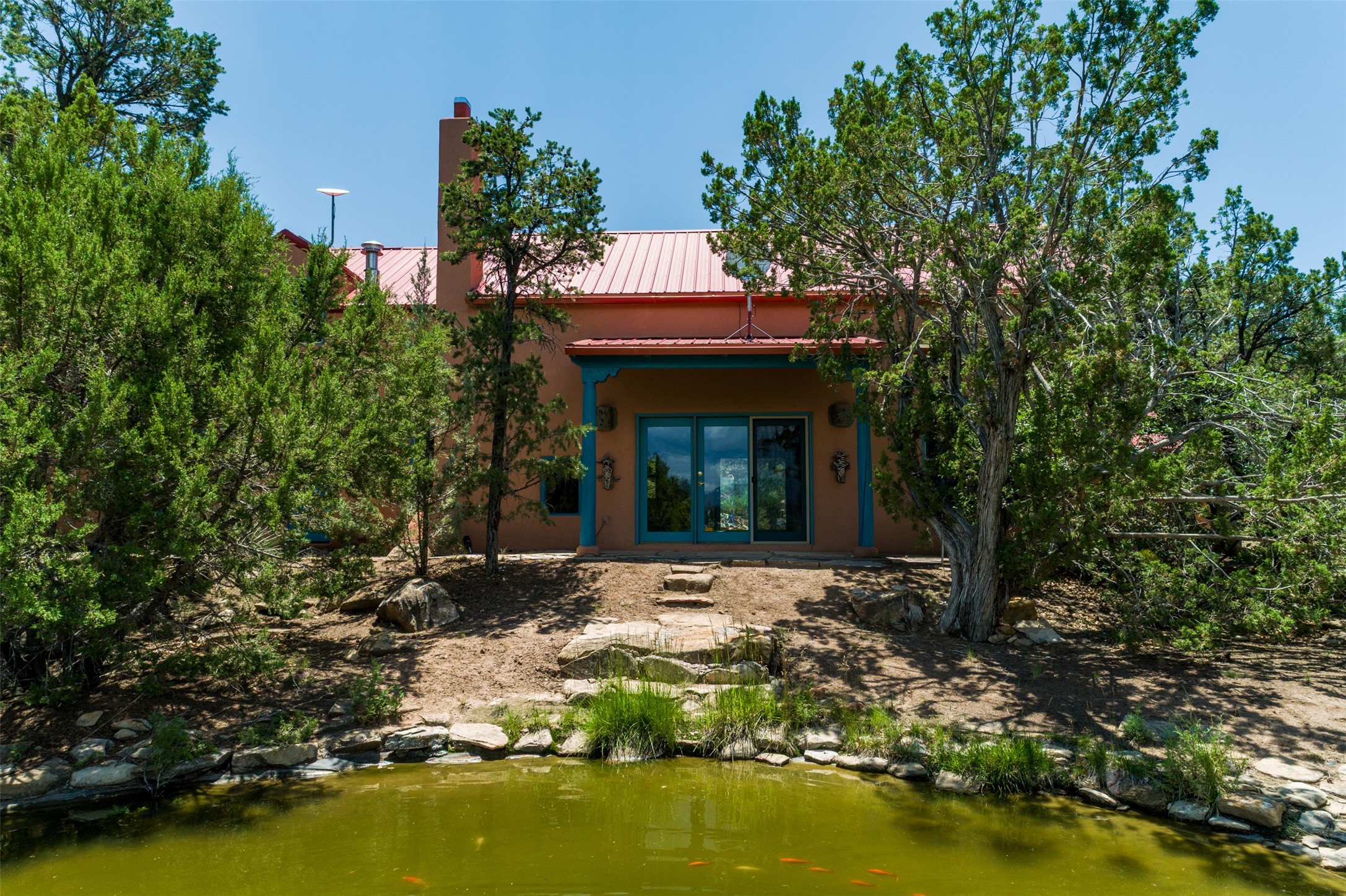 Nestled in the serene hills of Caoncito, this 3-bed, 2-bath Rastra home sits on 5.99 private wooded acres with a thriving koi pond, private well, and sweeping Sangre de Cristo views -- offering a rare value-add opportunity.Owner-built and on the market for the first time since 1998, this home blends craftsmanship and artistic detail throughout. Soaring ceilings, a striking fireplace, and expansive windows define the main living space, while a lofted study/library offers a quiet retreat. The home was intentionally designed to be divided into two living areas, with pre-installed utility connections ready to support the setup.A workroom with slop sink, two storage sheds -- including one with an electrical backup generator -- add functionality. With a new septic system recently installed and an updated well system, this property offers a strong infrastructure base to build upon.Just 10 minutes to Eldorado and 25 to downtown Santa Fe, with nearby trails and 100 mbps internet available. A peaceful retreat and a rare chance to add real value.
